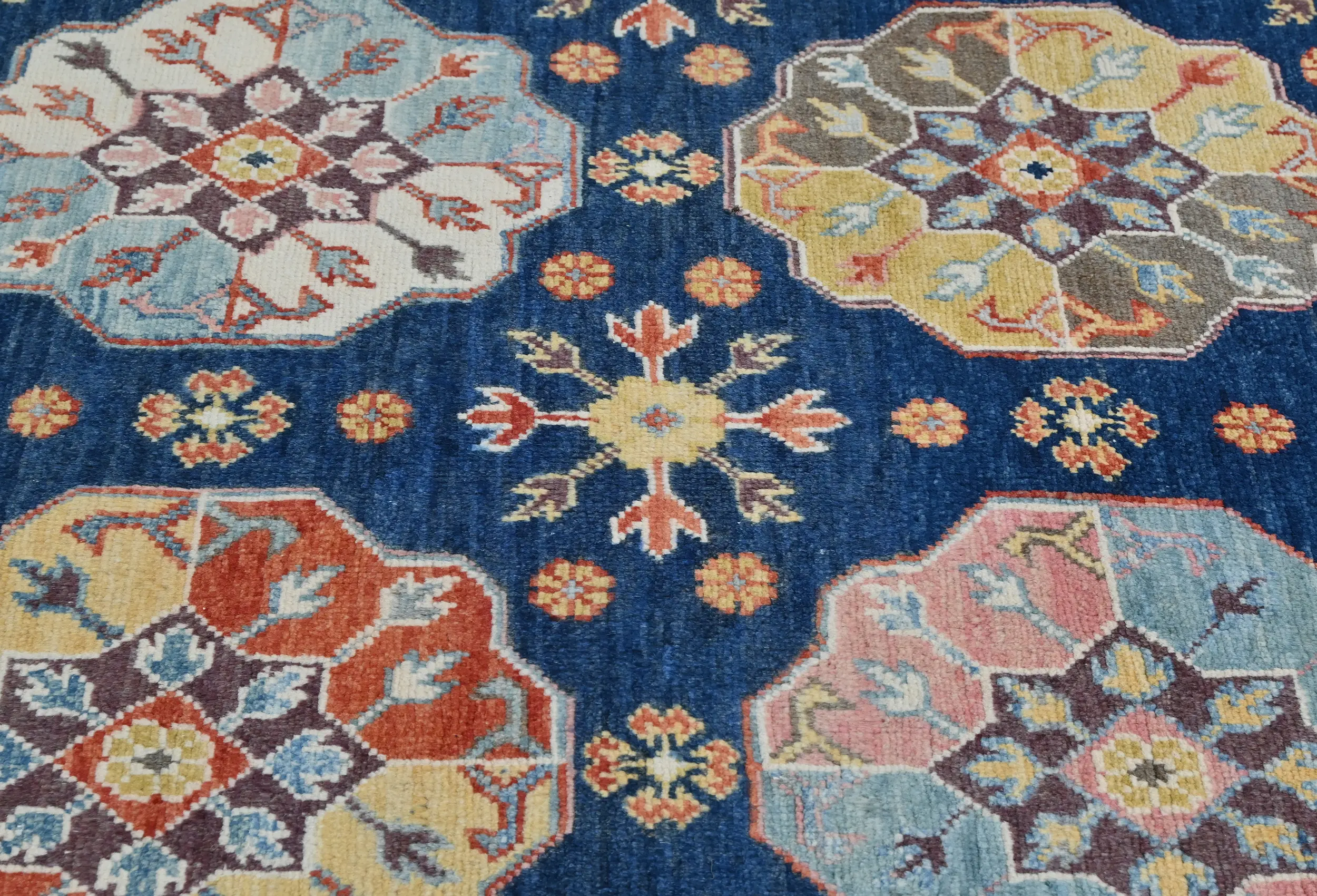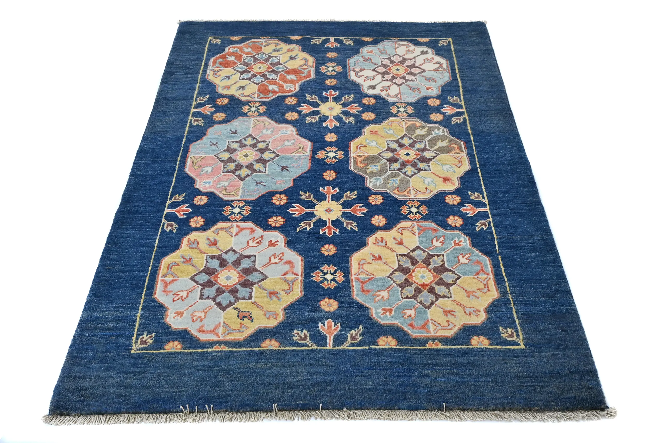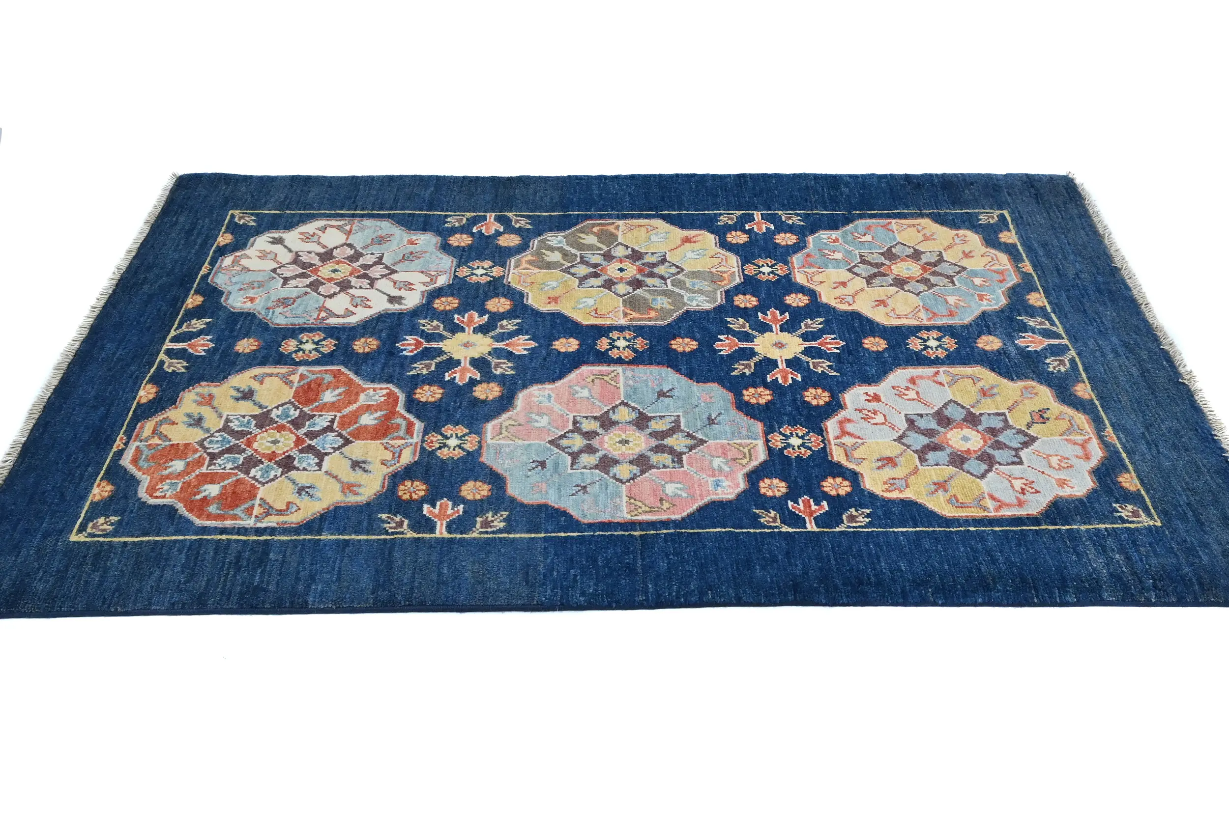Navy Blue Geometric Modern 3X5 Kazak Pakistan Rug