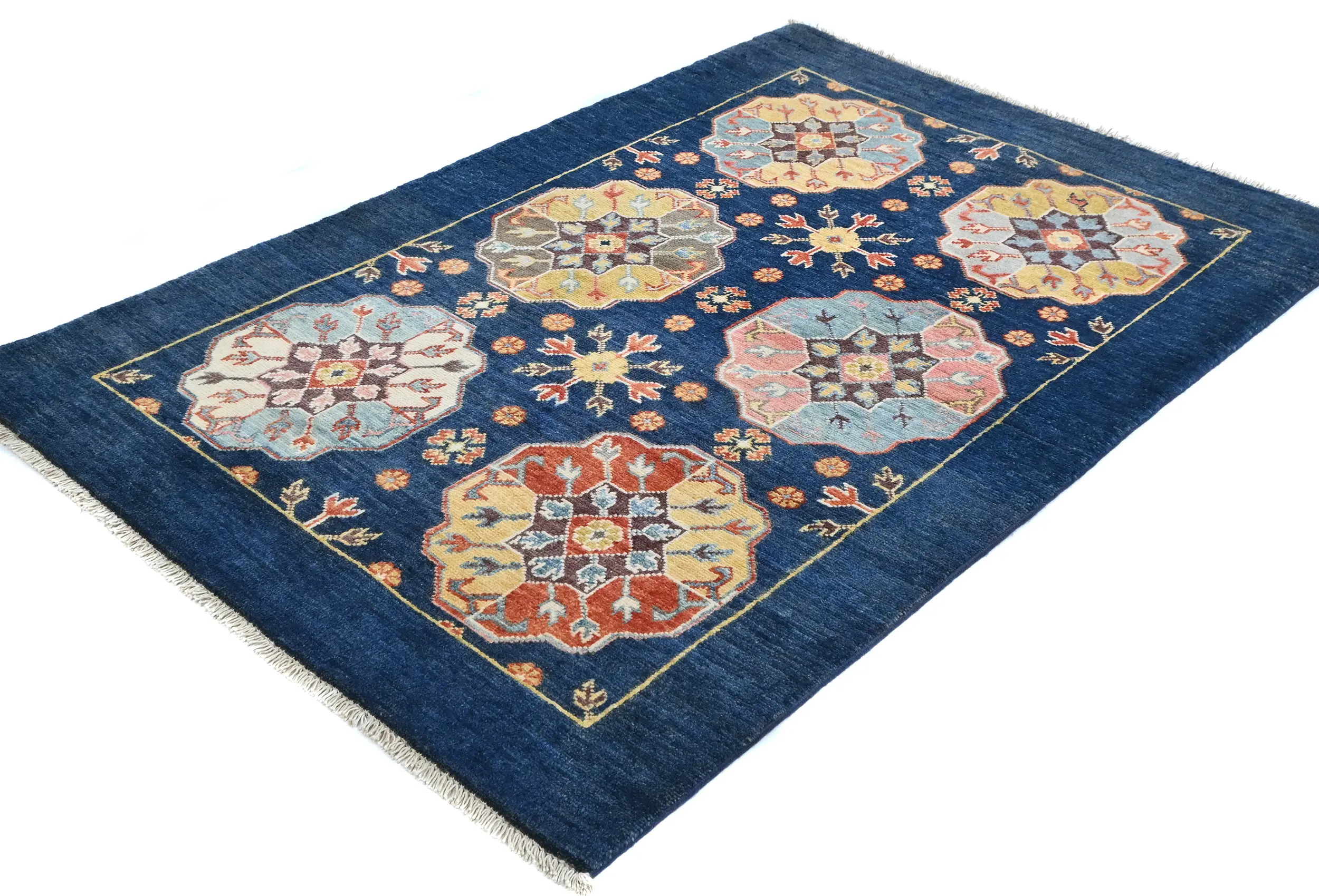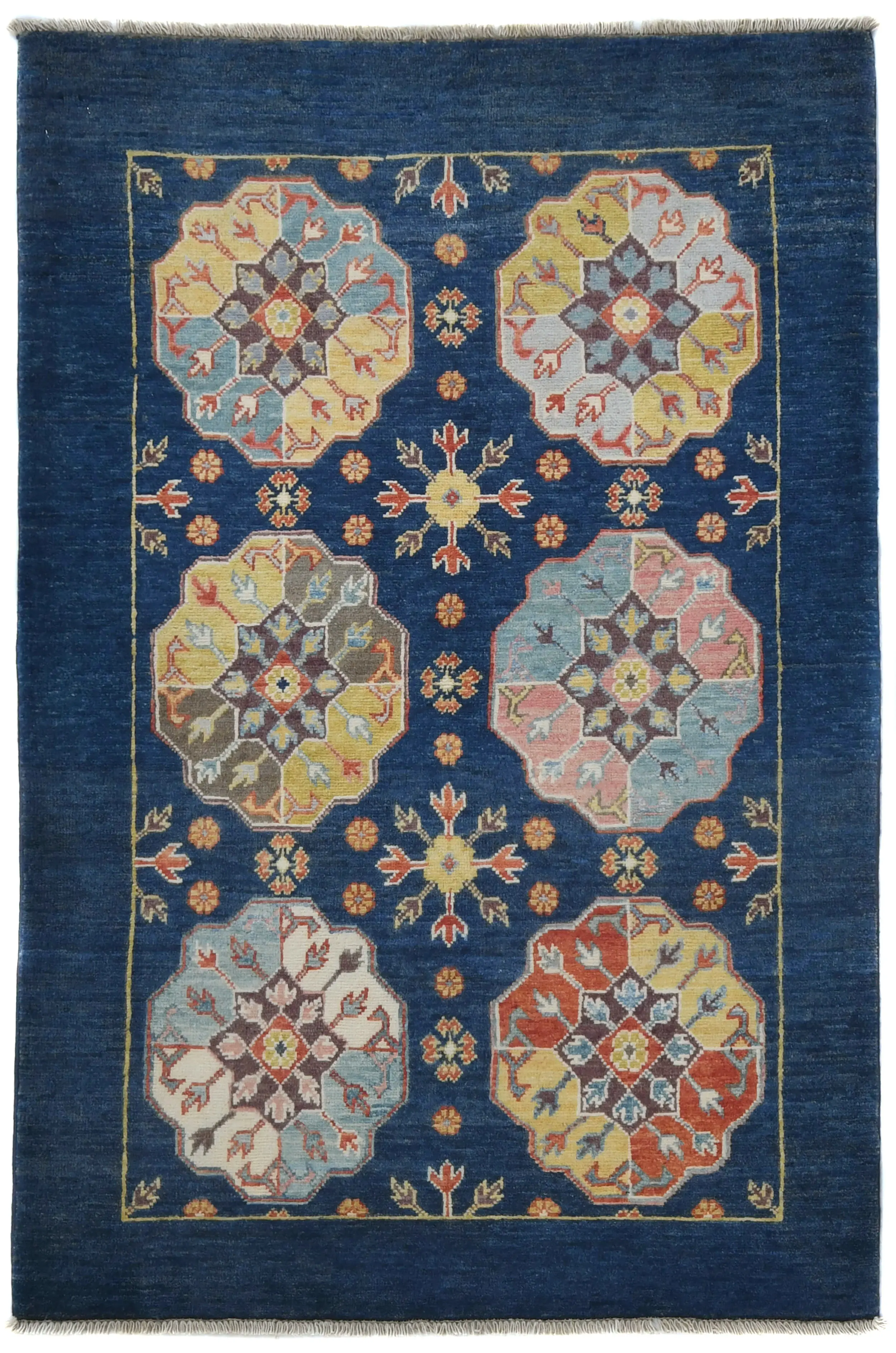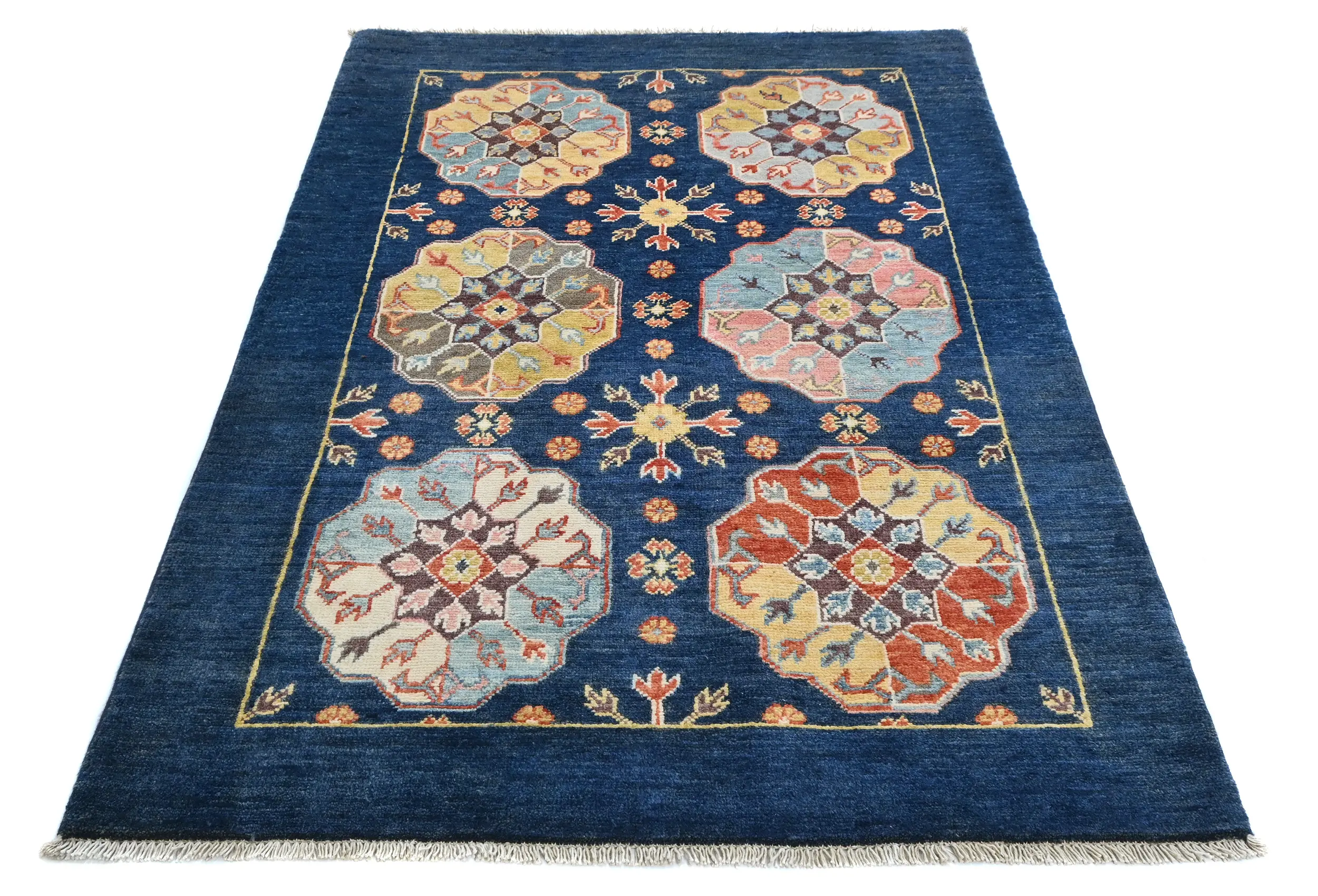 Navy Blue Geometric Modern 3X5 Kazak Pakistan Rug
