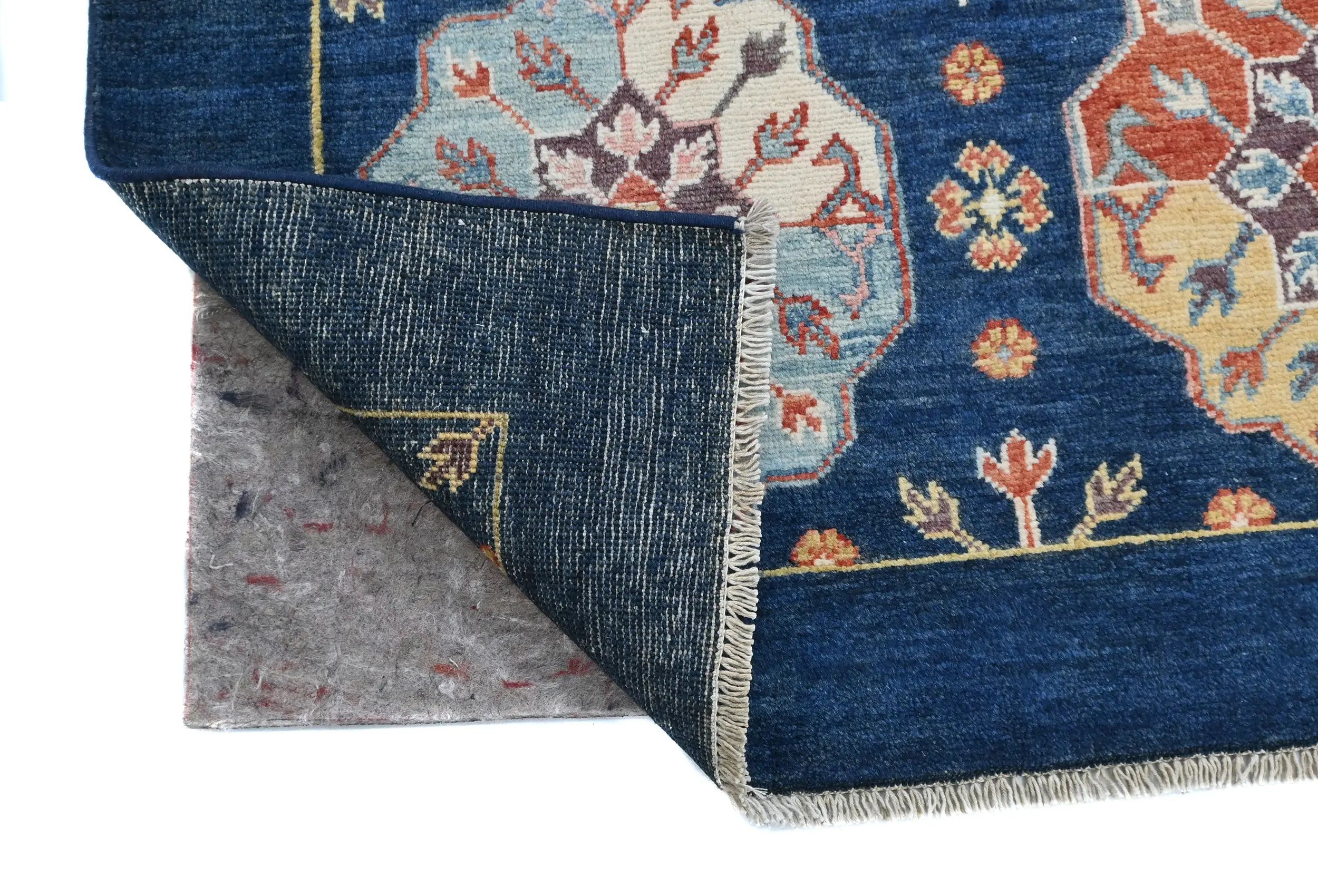 This authentic 3X5 navy blue Oriental rug was crafted by the hands of skilled weavers enthused by a variety of lovely artistic designs, to recreate the aged look of the unique piece with a richness of color and beautifully elaborated background field. What set this vintage style Oriental area rug from the others are the material and dye used (wool pile and cotton foundation), knot count, ancient designs, fantastic grades, and its regional historical connection: it has deep roots, from the story of the people who produced it to the meaning of the symbols and colors displayed across its canvas that have been praised for centuries. This Indian home décor carpet will be completely cozy and inviting that never will go out of style! Also, this Oriental rug would be among your most valuable treasures, it is a great investment that increase in value over time, and it will last for generations because was woven with high-quality, all-natural wool. Environmentally friendly, opulent yet affordable; this rug will give you a thorough amount of character to help define your living space with sophistication and warmth that will capture the eyes and attention of your audience (homeowners, designers, decorators, family and friends). RT-7713