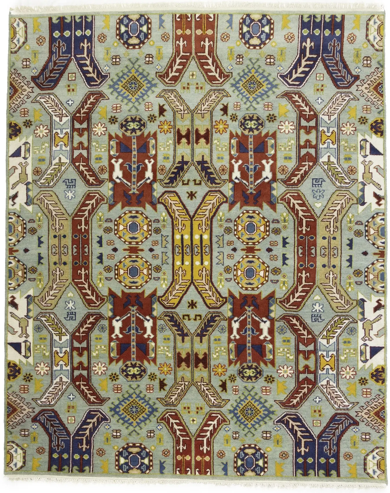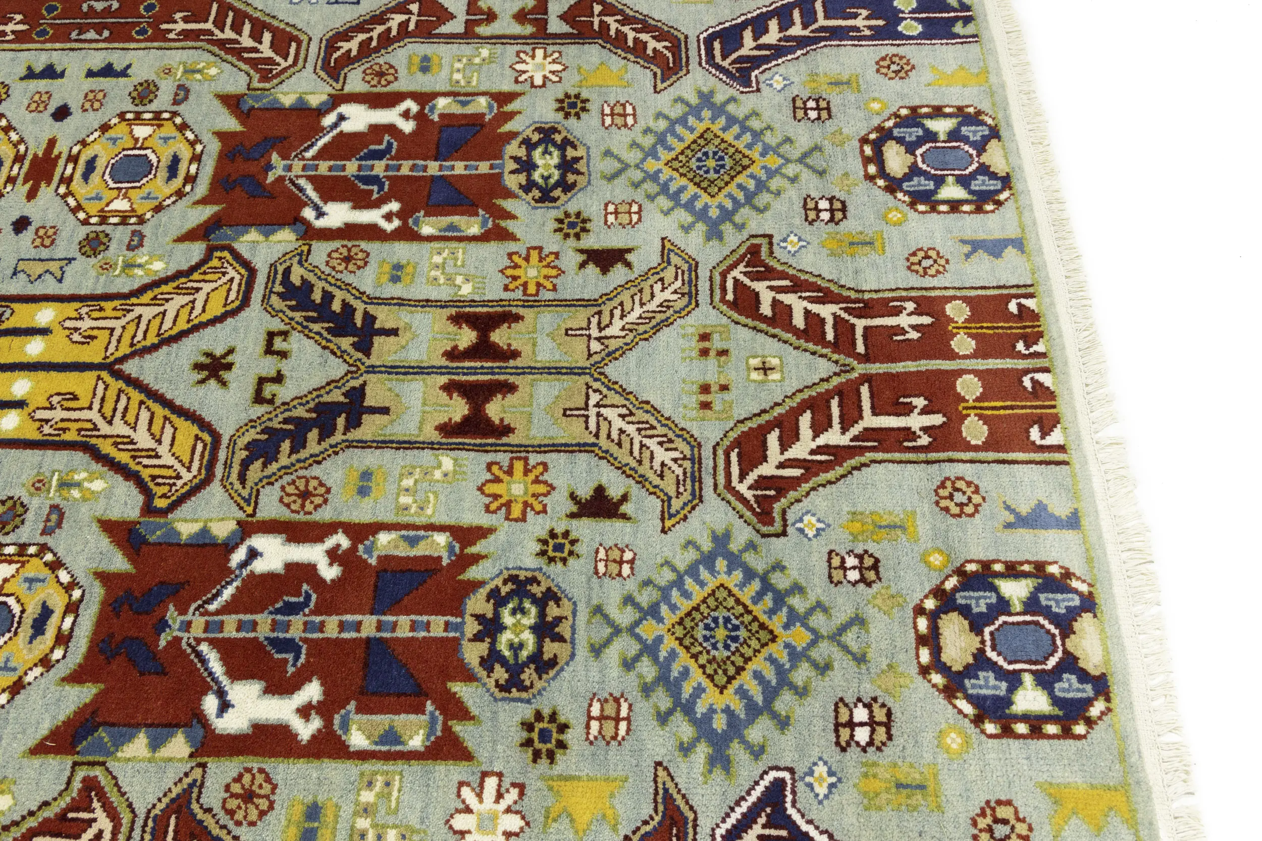Handmade 8X10 blue Oriental rug made with vegetable dyes (fine wool pile and cotton foundation), superior knot count, and appealing ancient designs. This Oriental rug/runner never will go out of style and would be among your most valuable treasures.