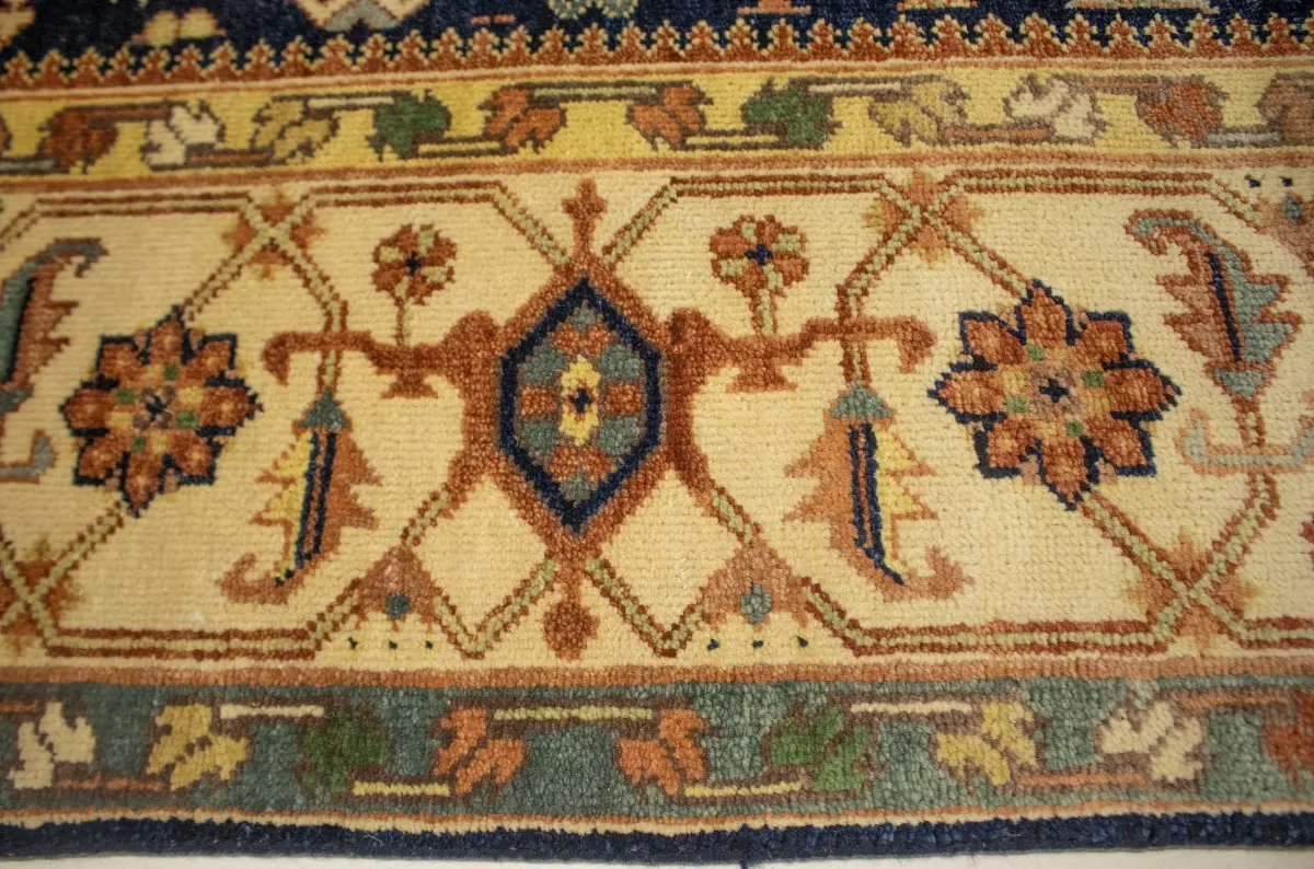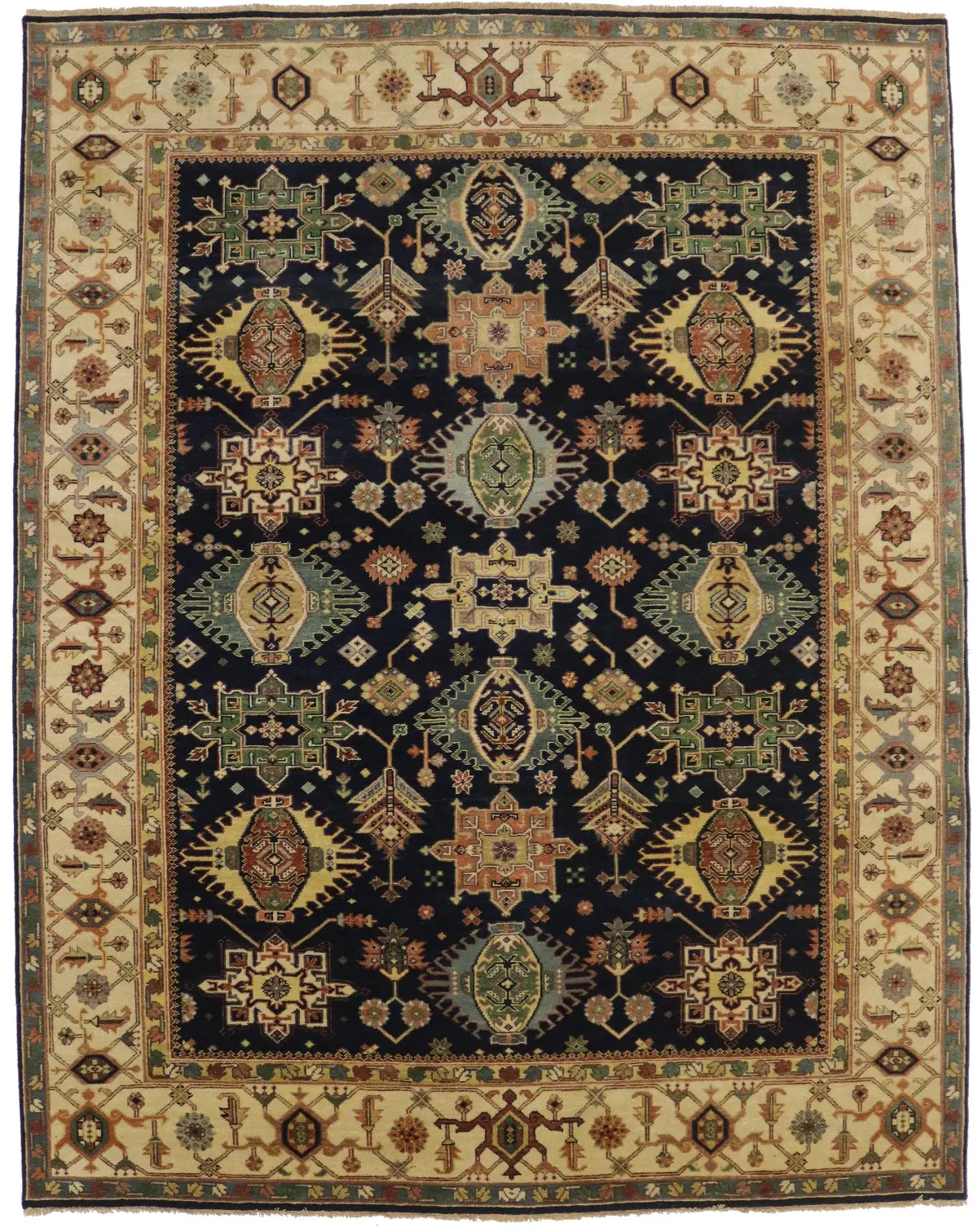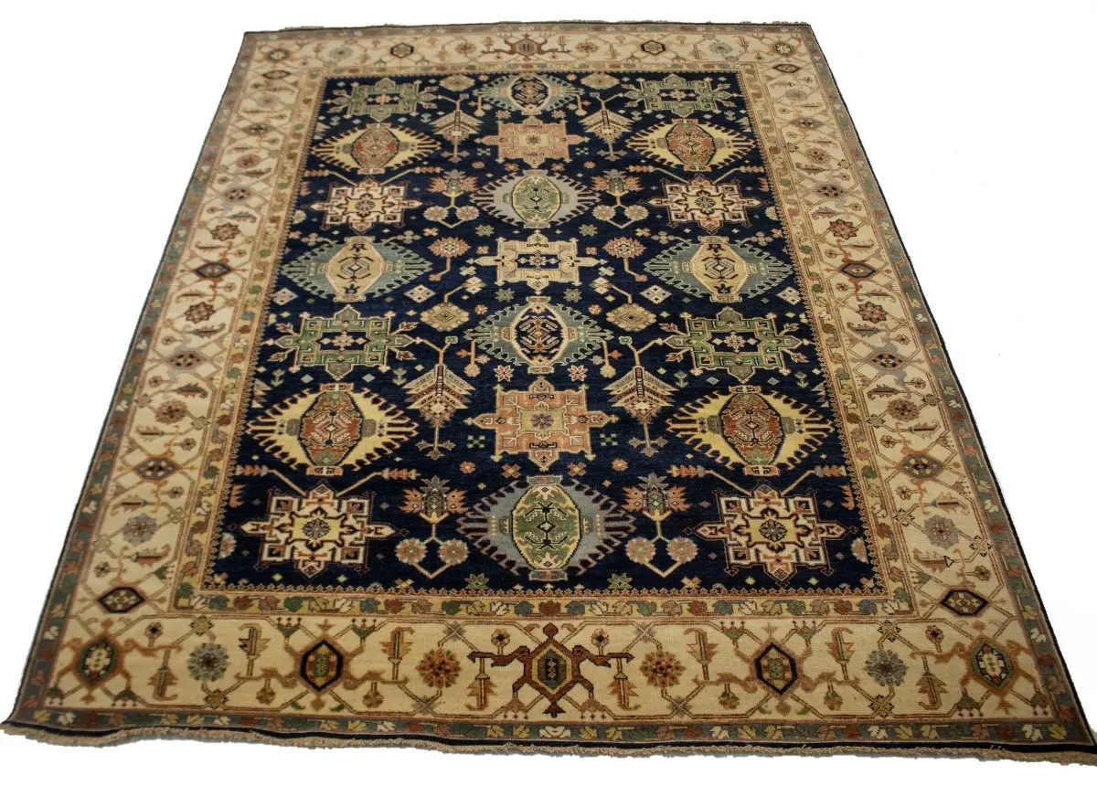 Navy & Cream Tribal Geometric 8X10 Indo-Karajeh Oriental Rug