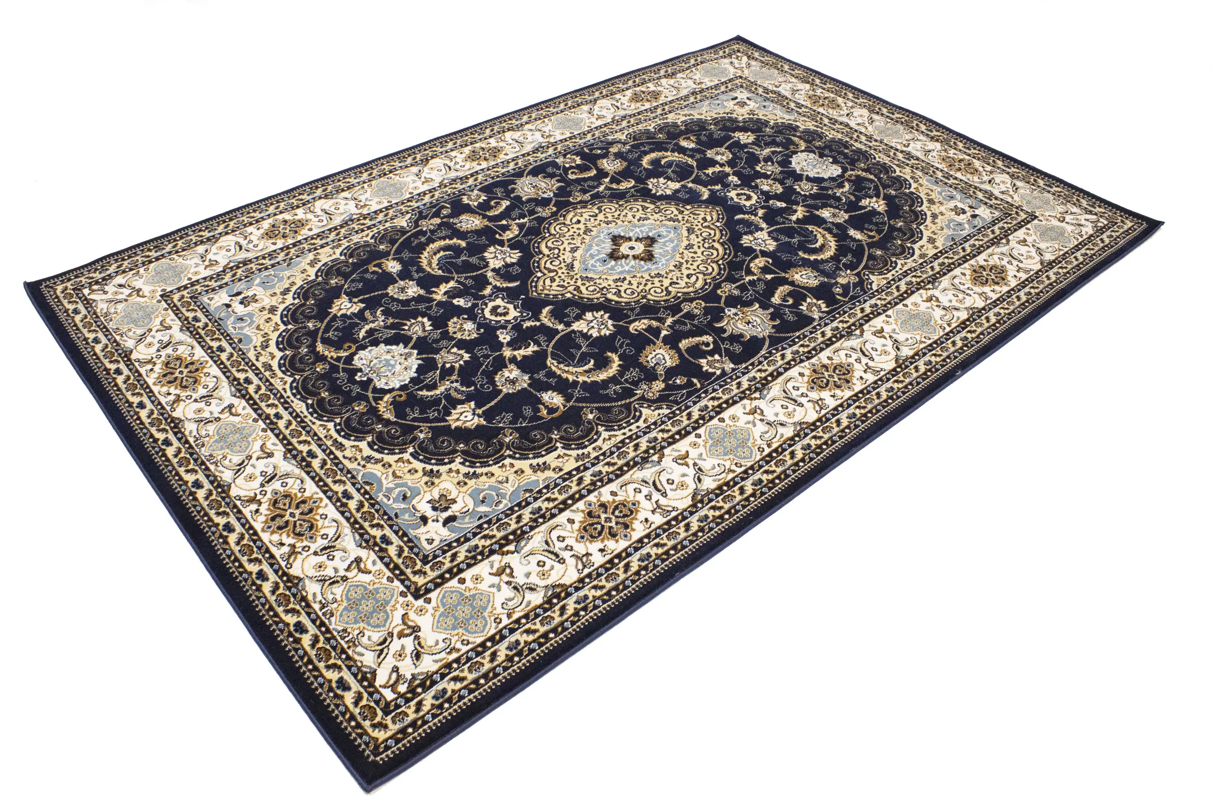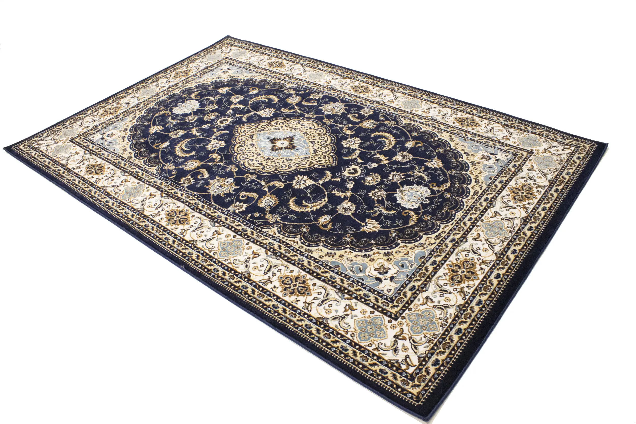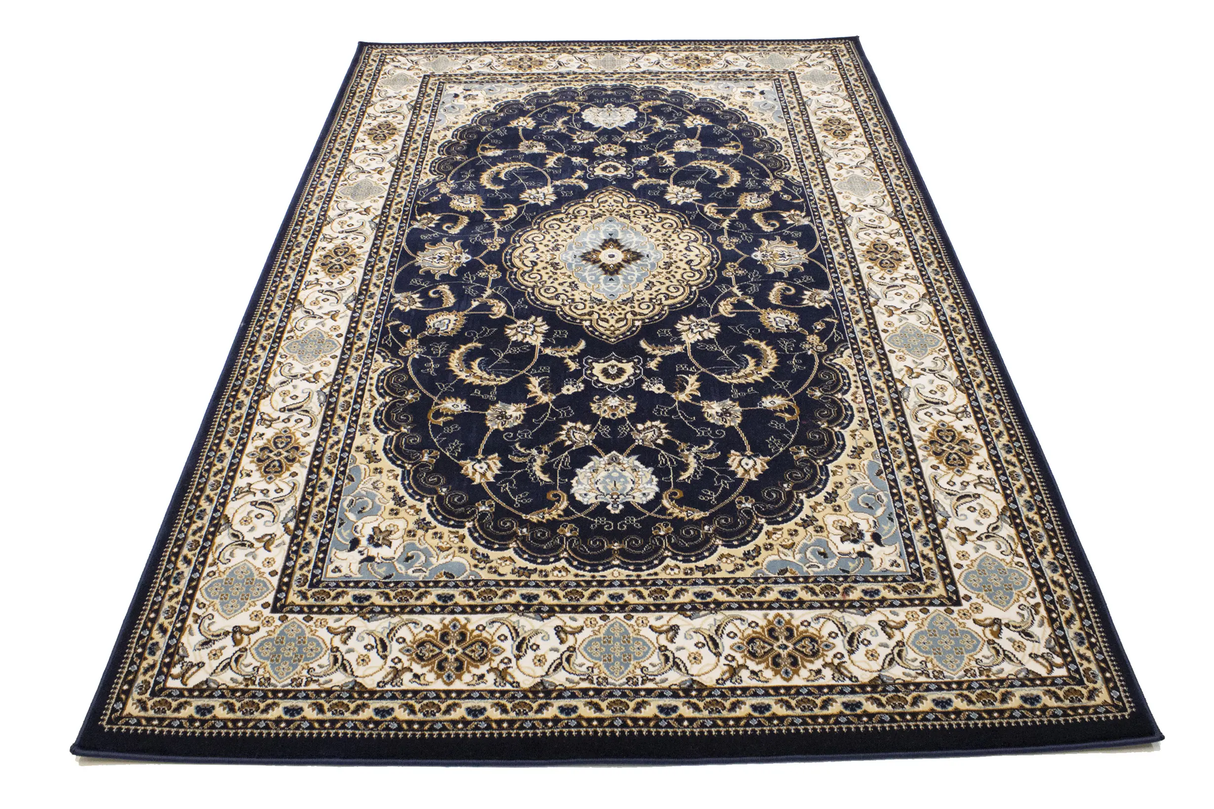 Navy Floral Oriental Style 5X8 Machine-Made Rug