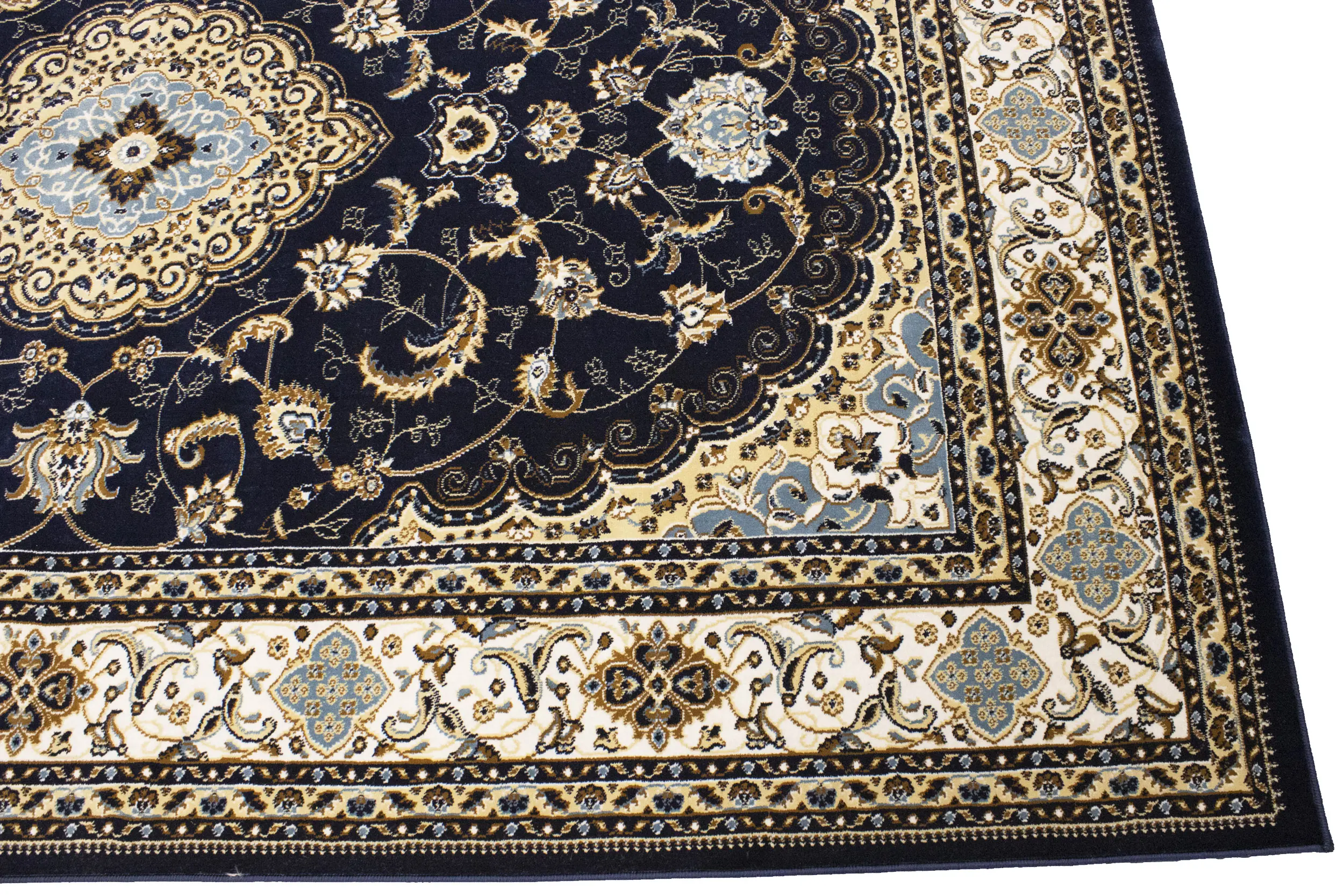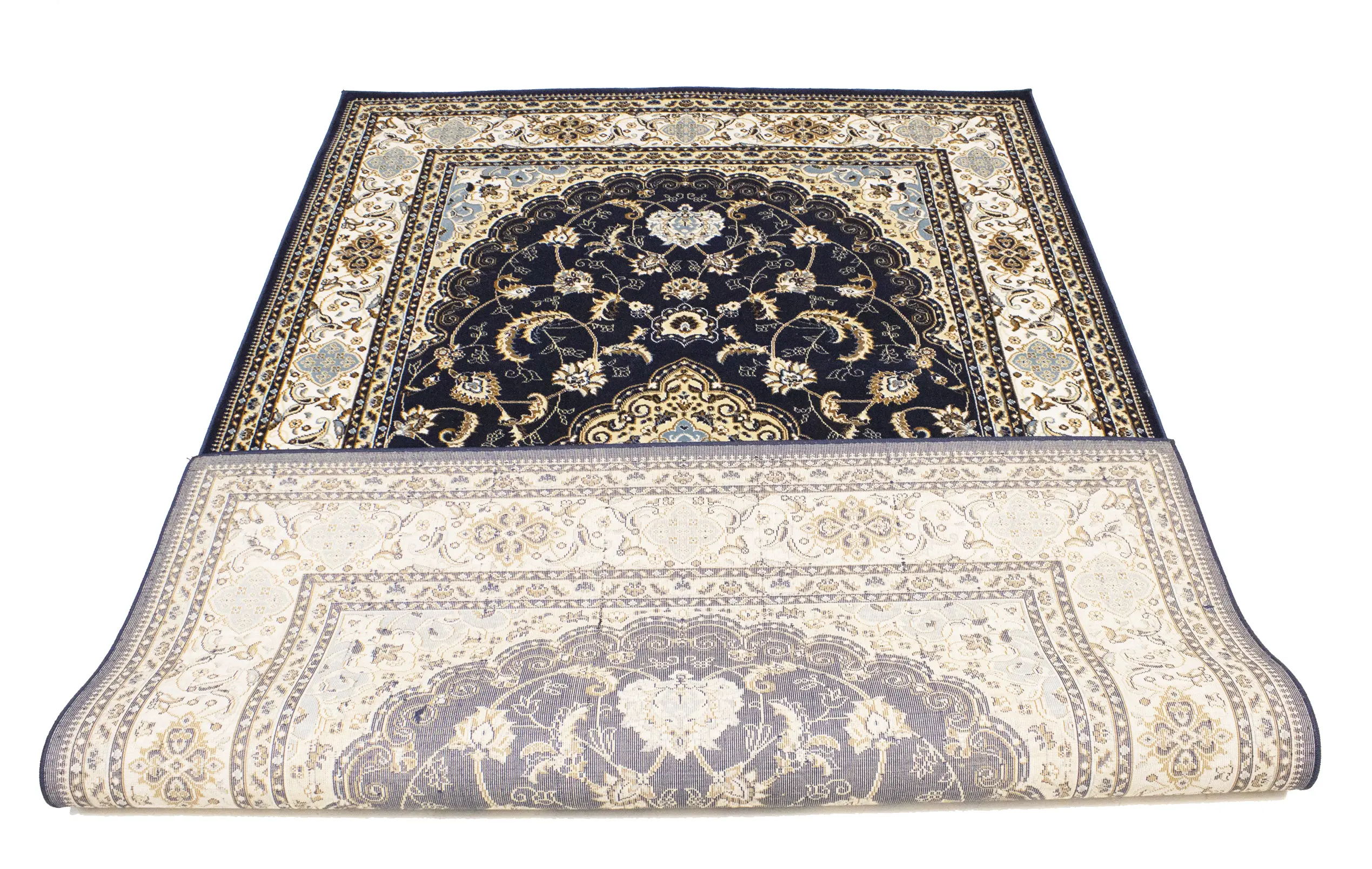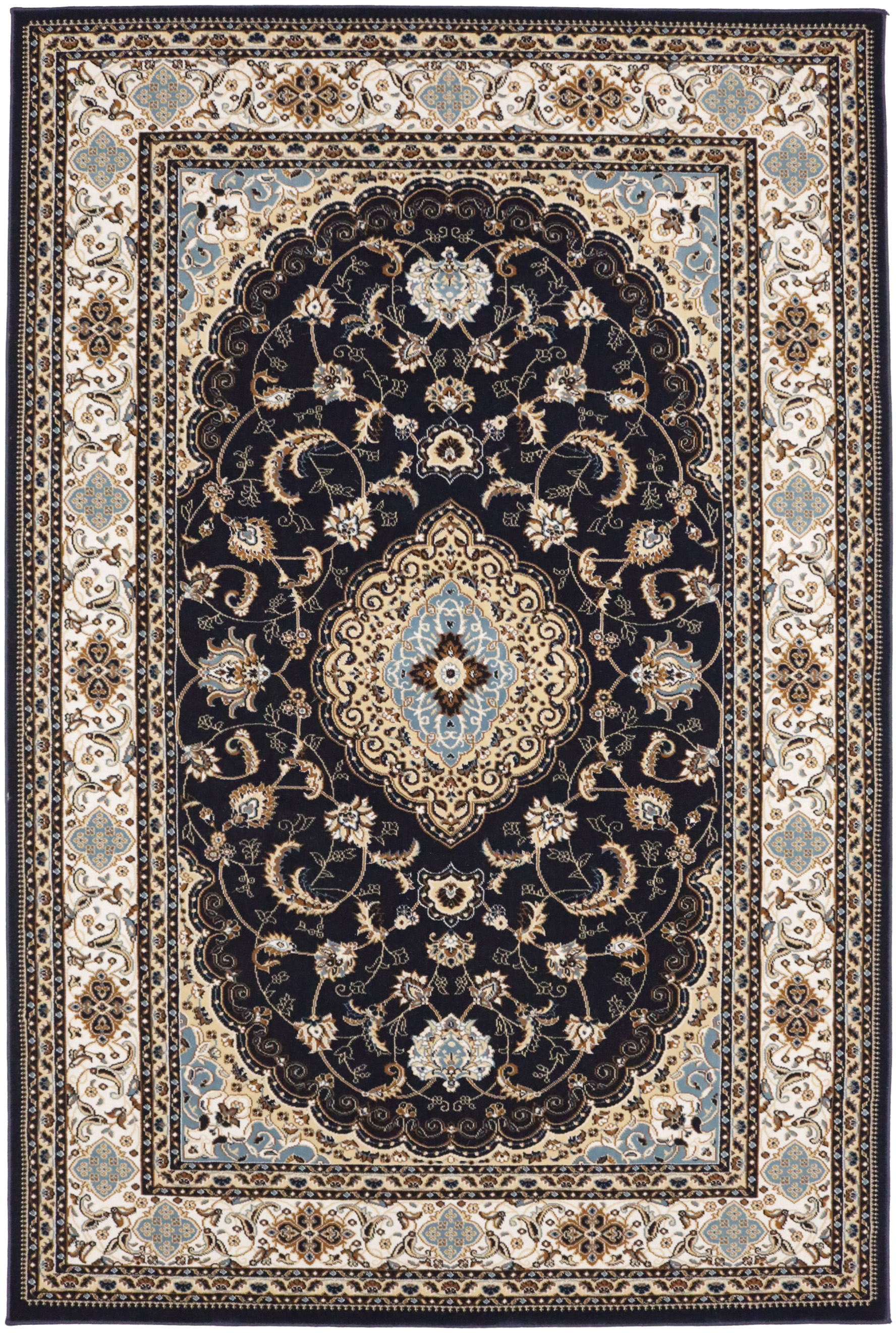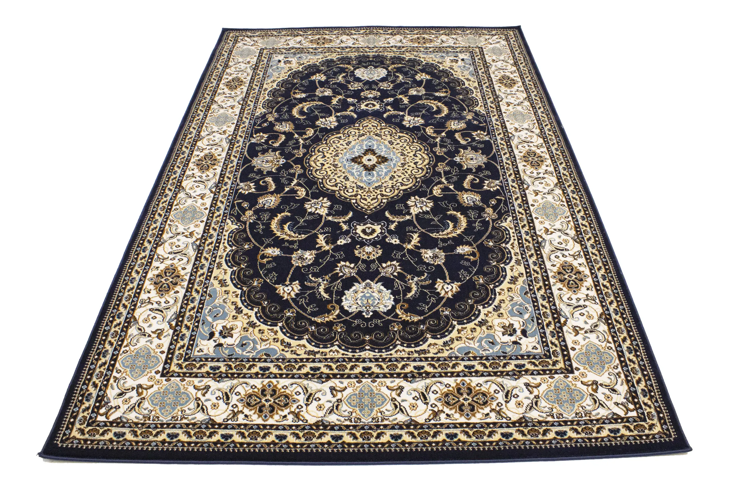 Navy Floral Oriental Style 5X8 Machine-Made Rug