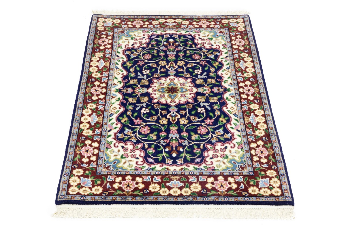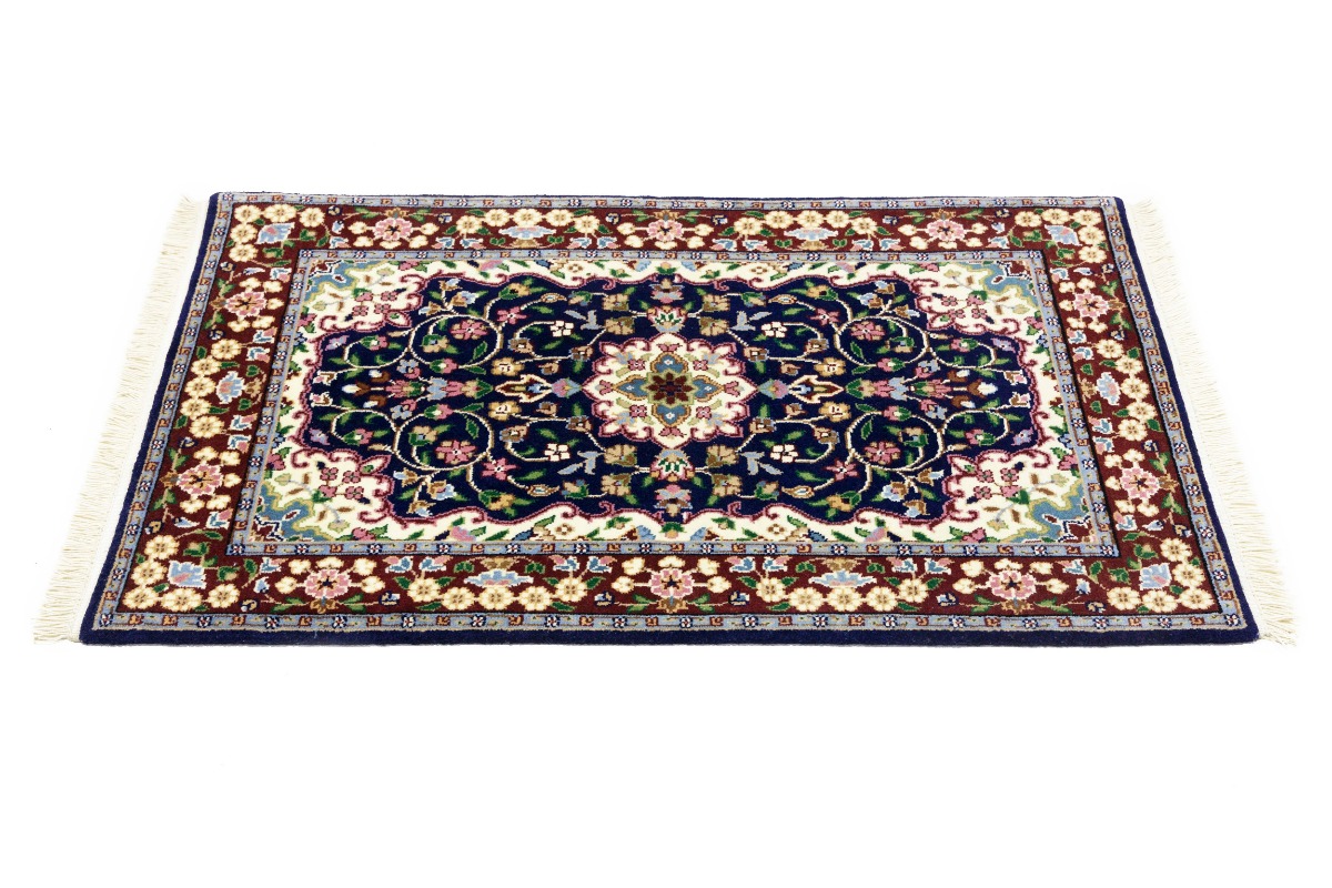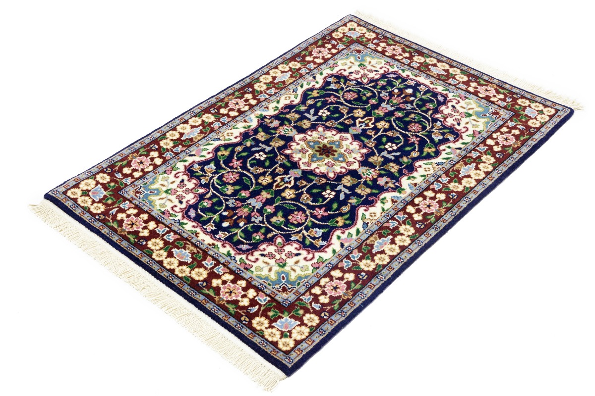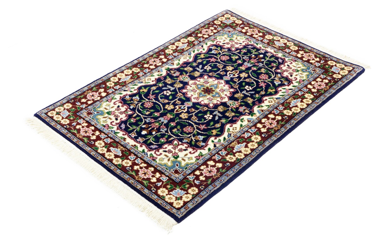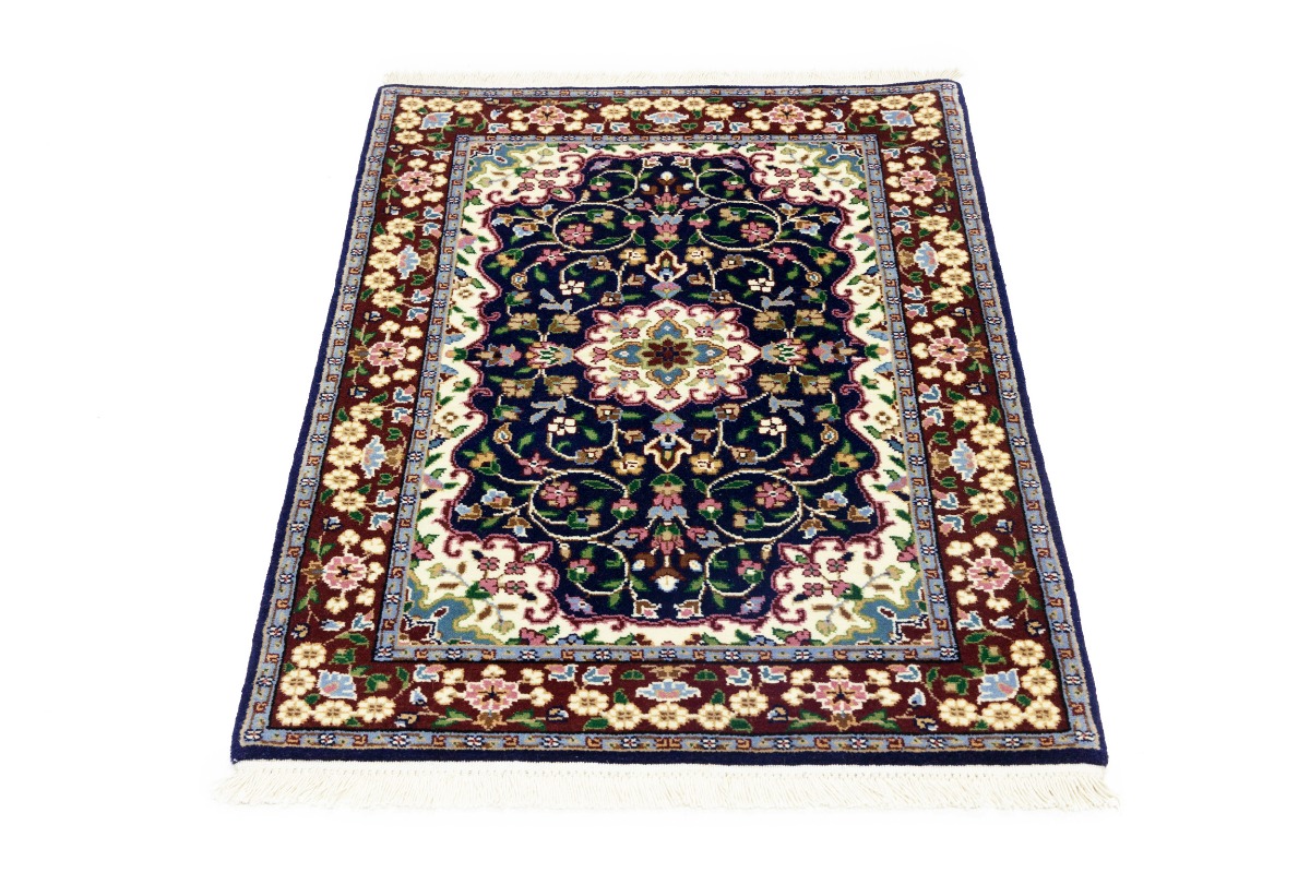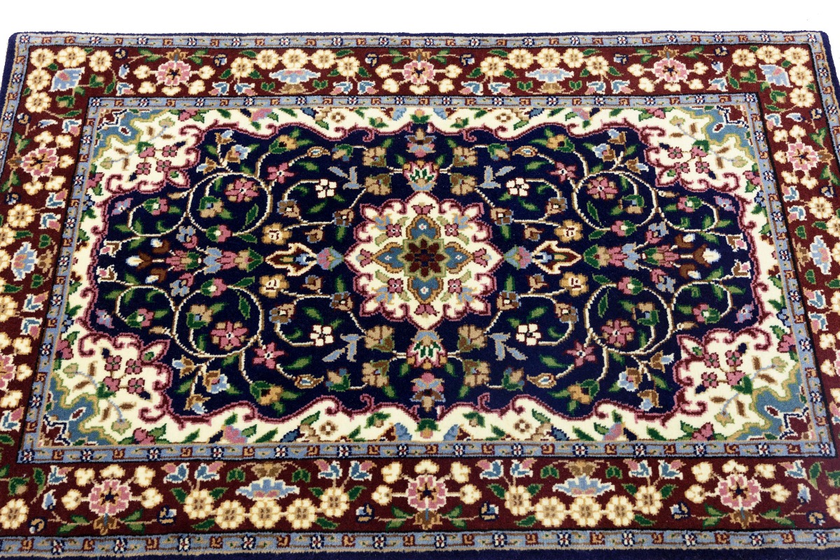 Handmade 3X4 blue oriental rug made with vegetable dyes (fine wool pile and cotton foundation), exceptional knot count, and appealing ancient designs. This Oriental rug never will go out of style and would be among your most valuable treasures.