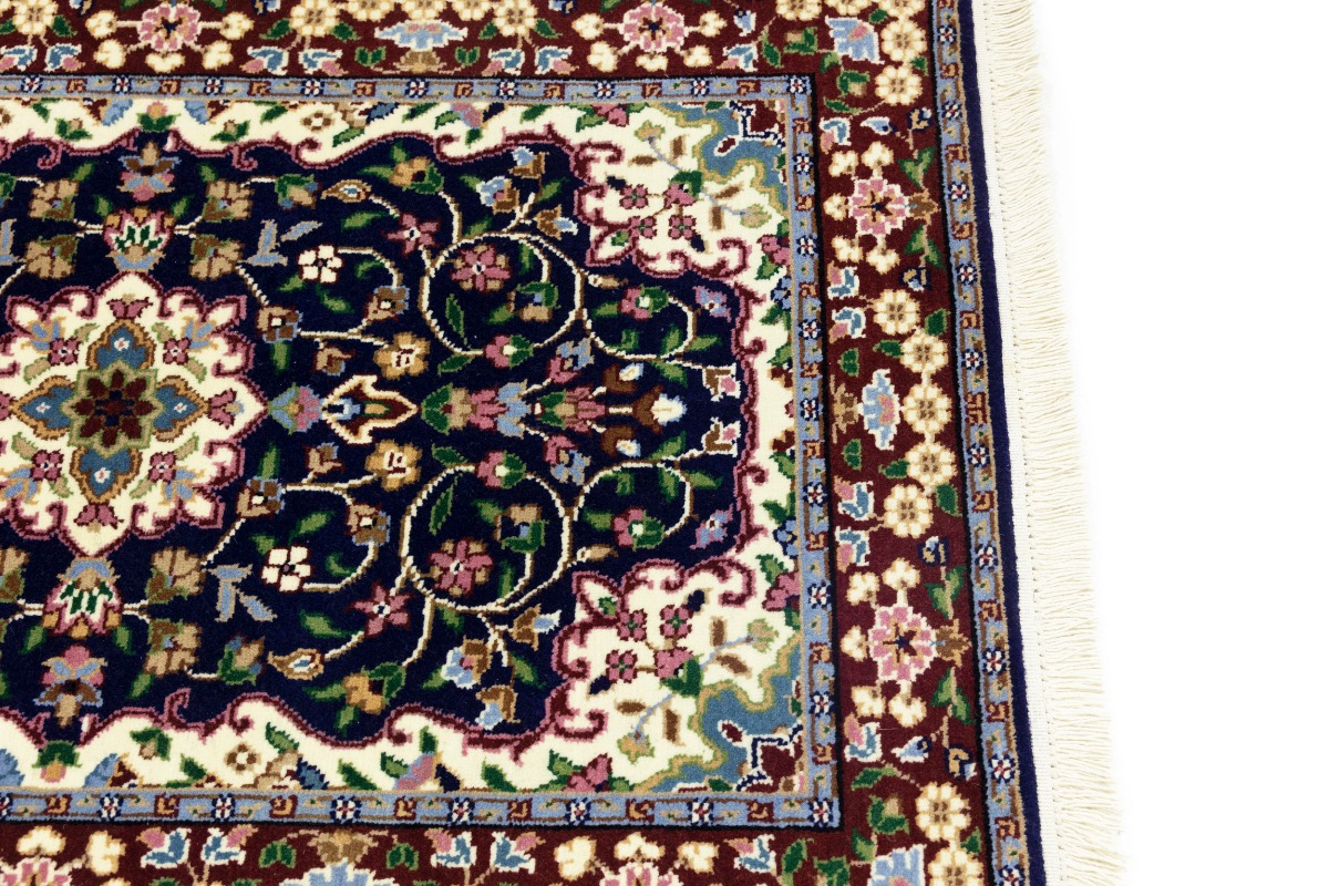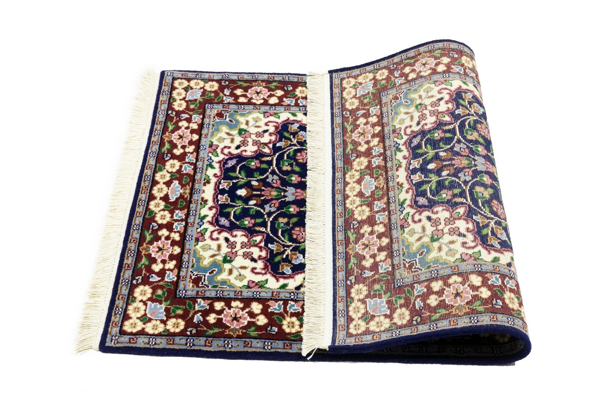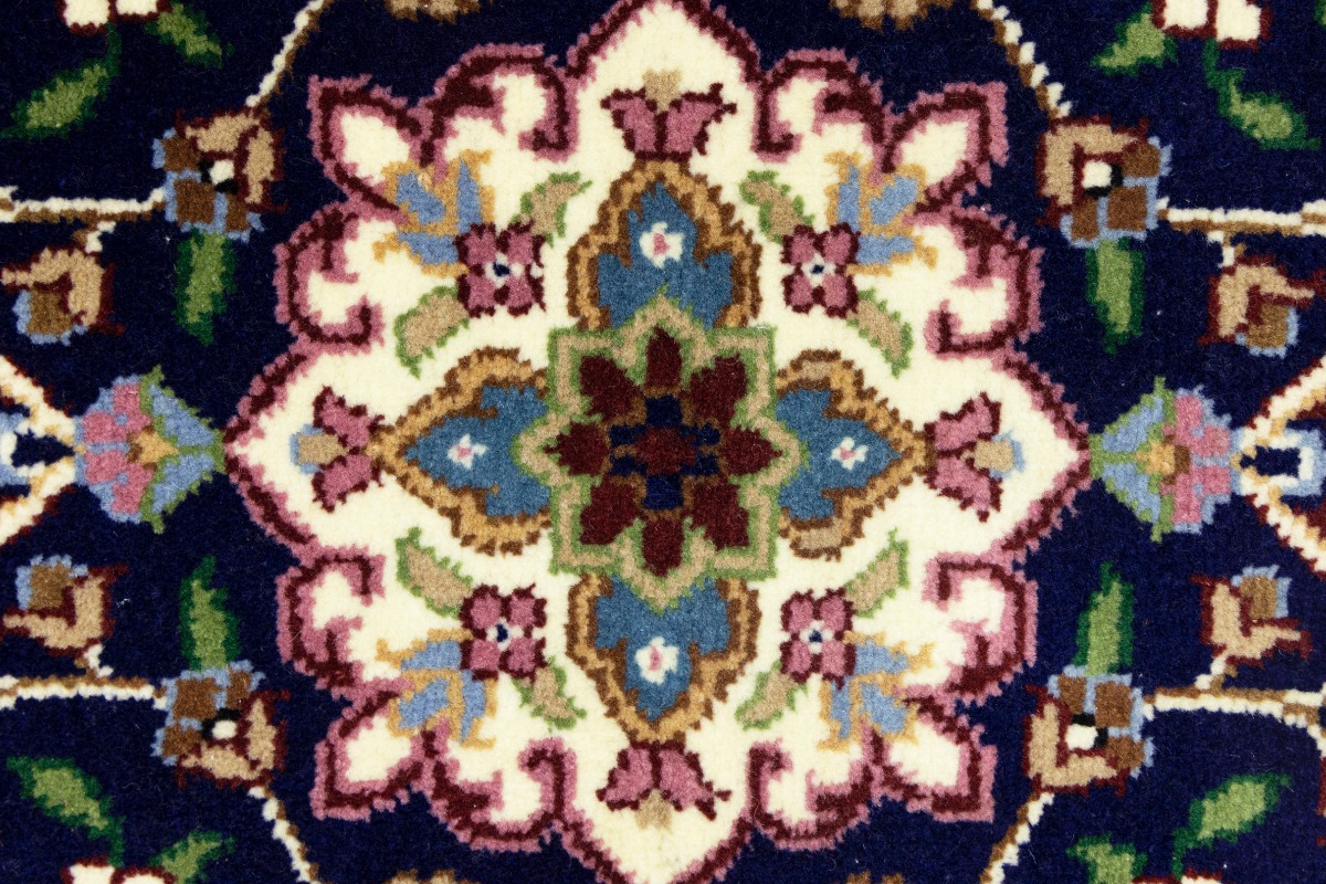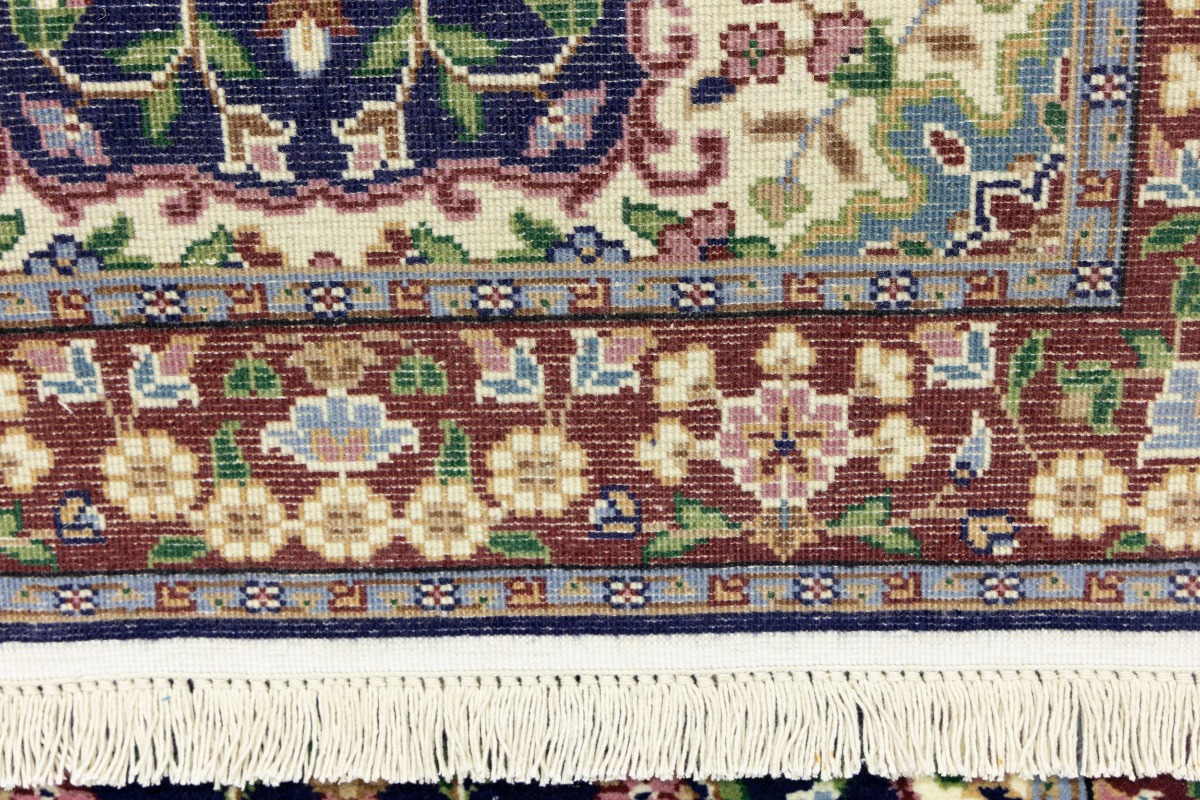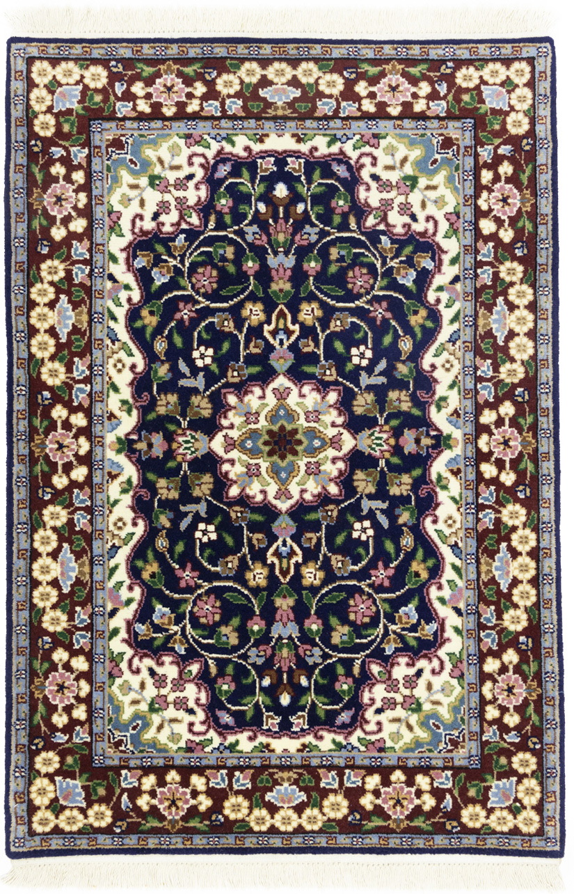 Handmade 3X4 blue oriental rug made with vegetable dyes (fine wool pile and cotton foundation), exceptional knot count, and appealing ancient designs. This Oriental rug never will go out of style and would be among your most valuable treasures.