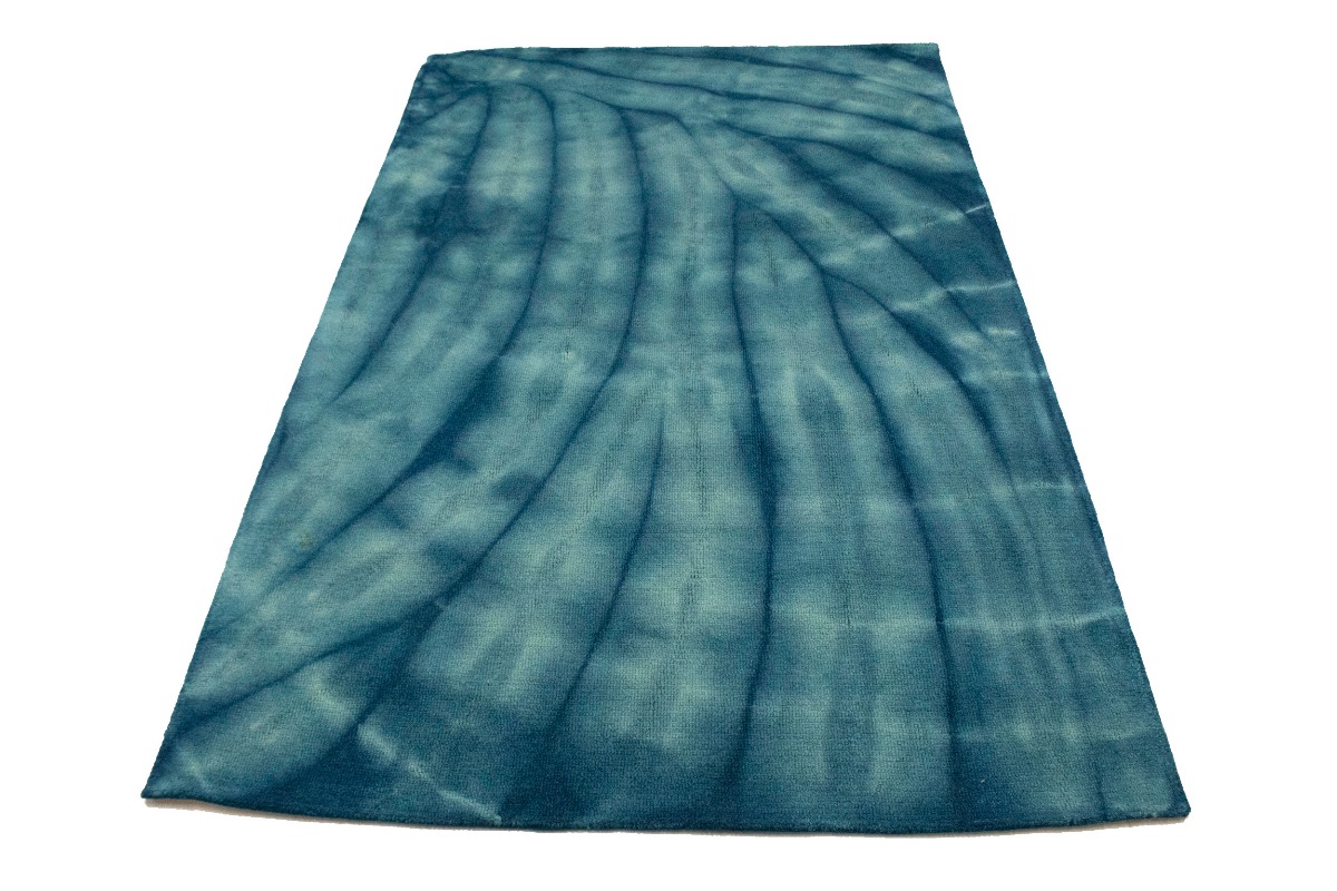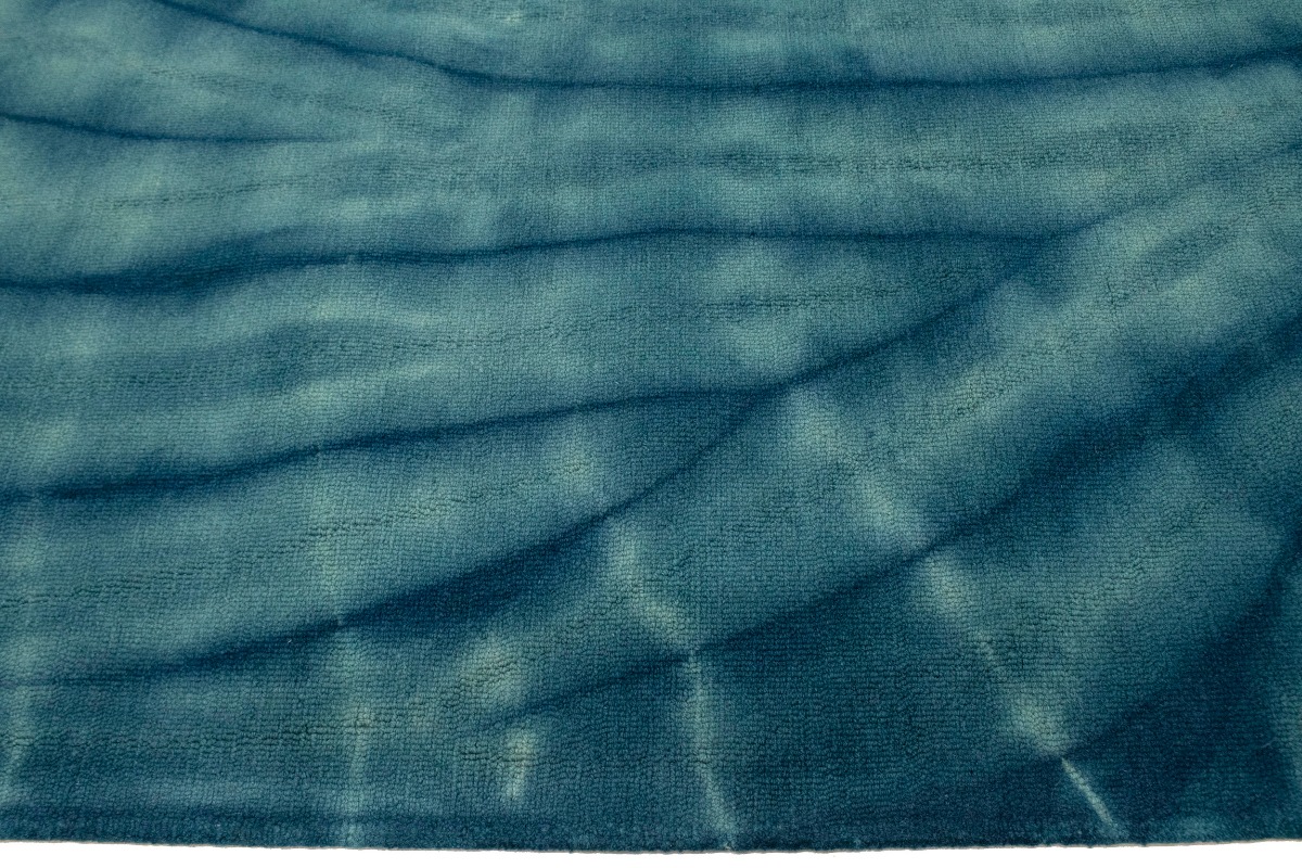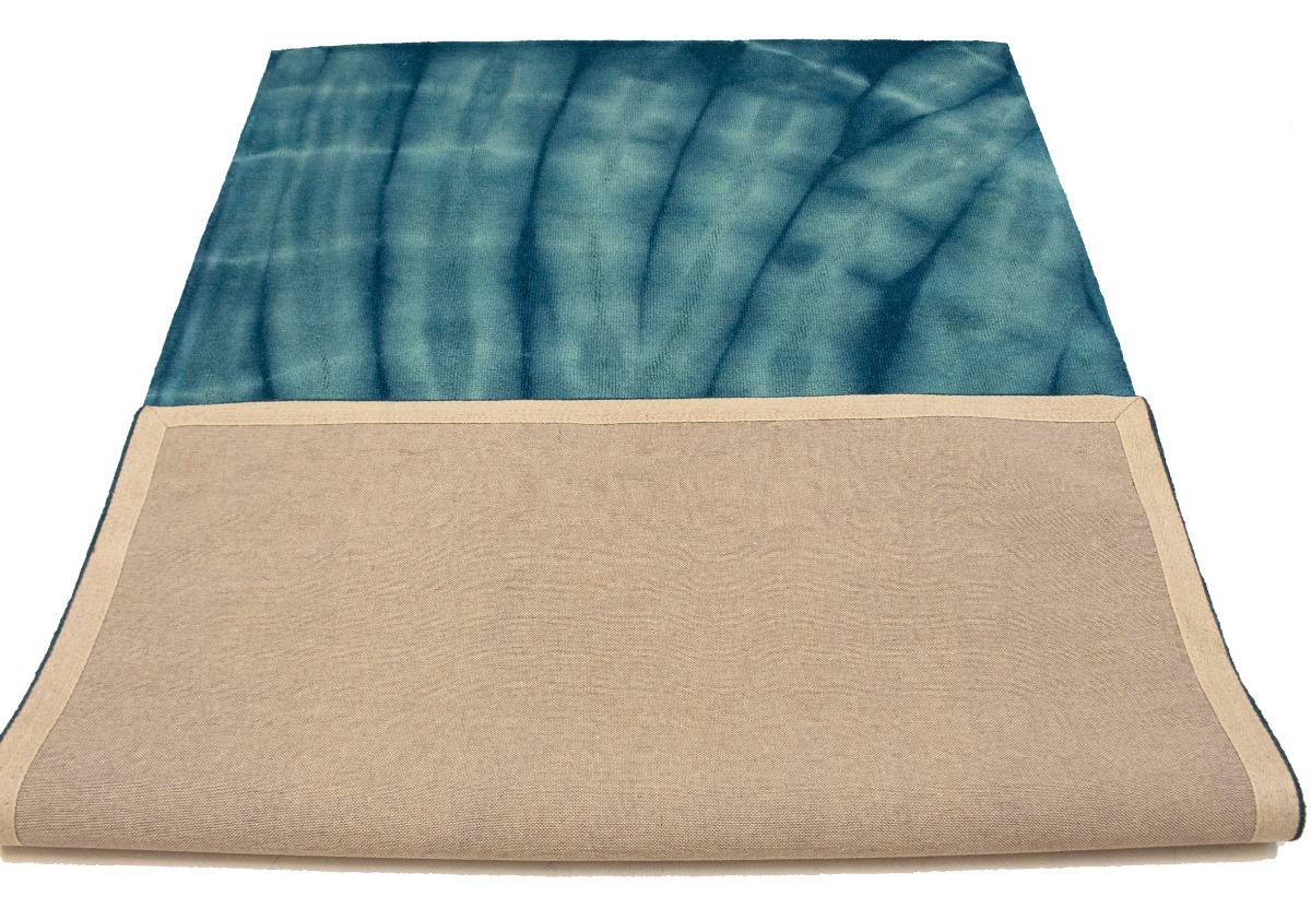 Ocean Blue Hand-Tufted Rug Tie-Dye Wool 5X8 Modern Contemporary Kids Room Capet