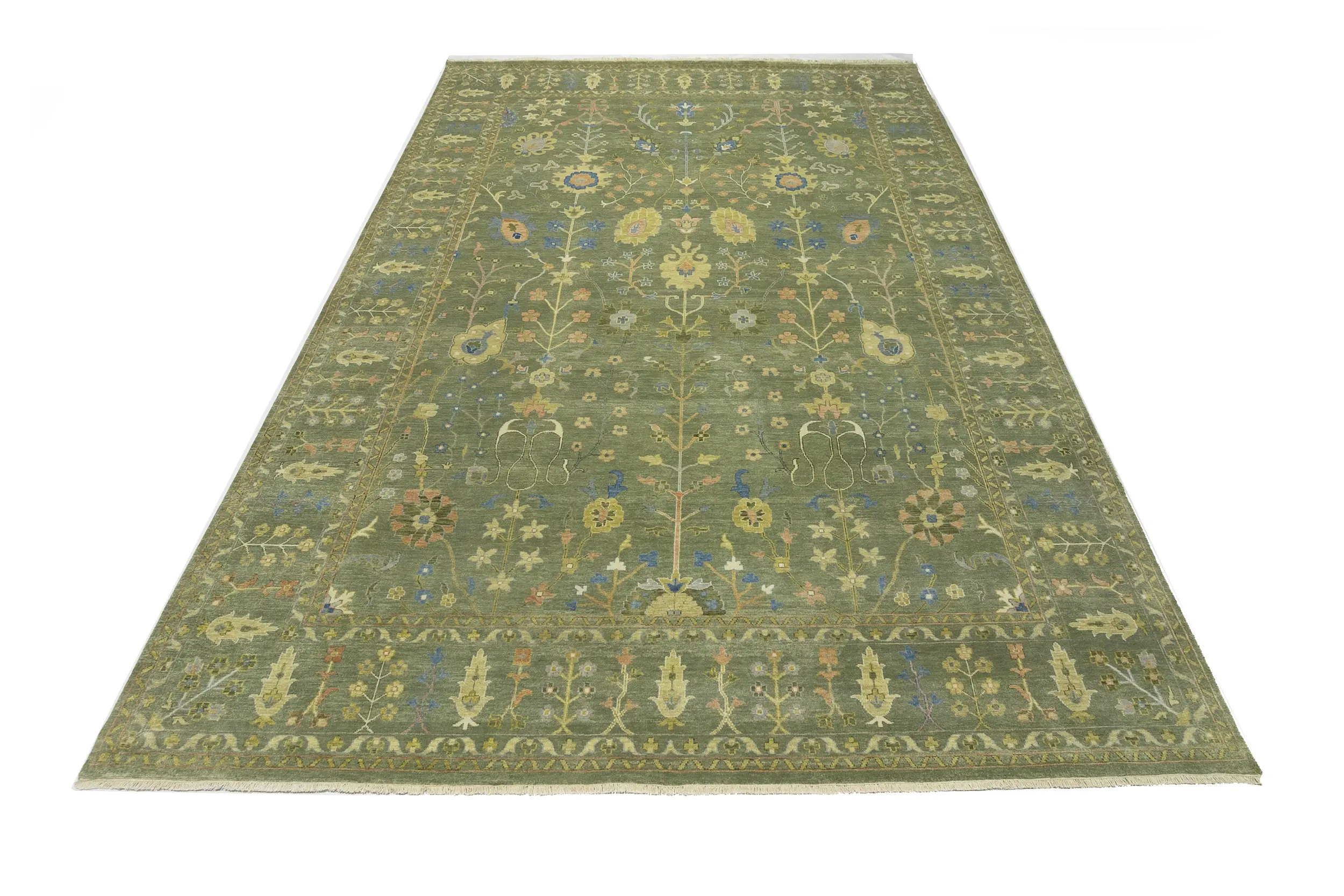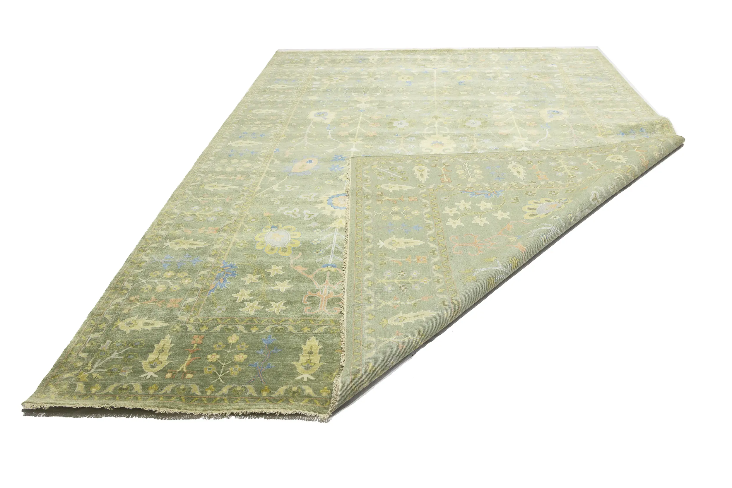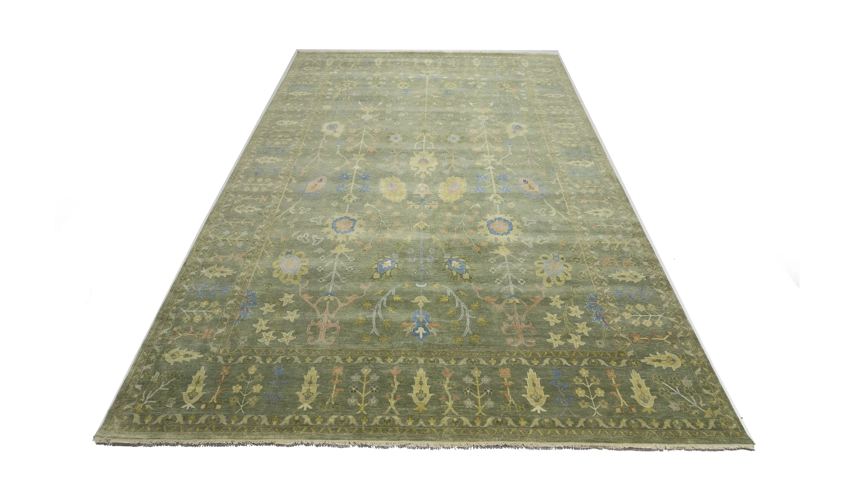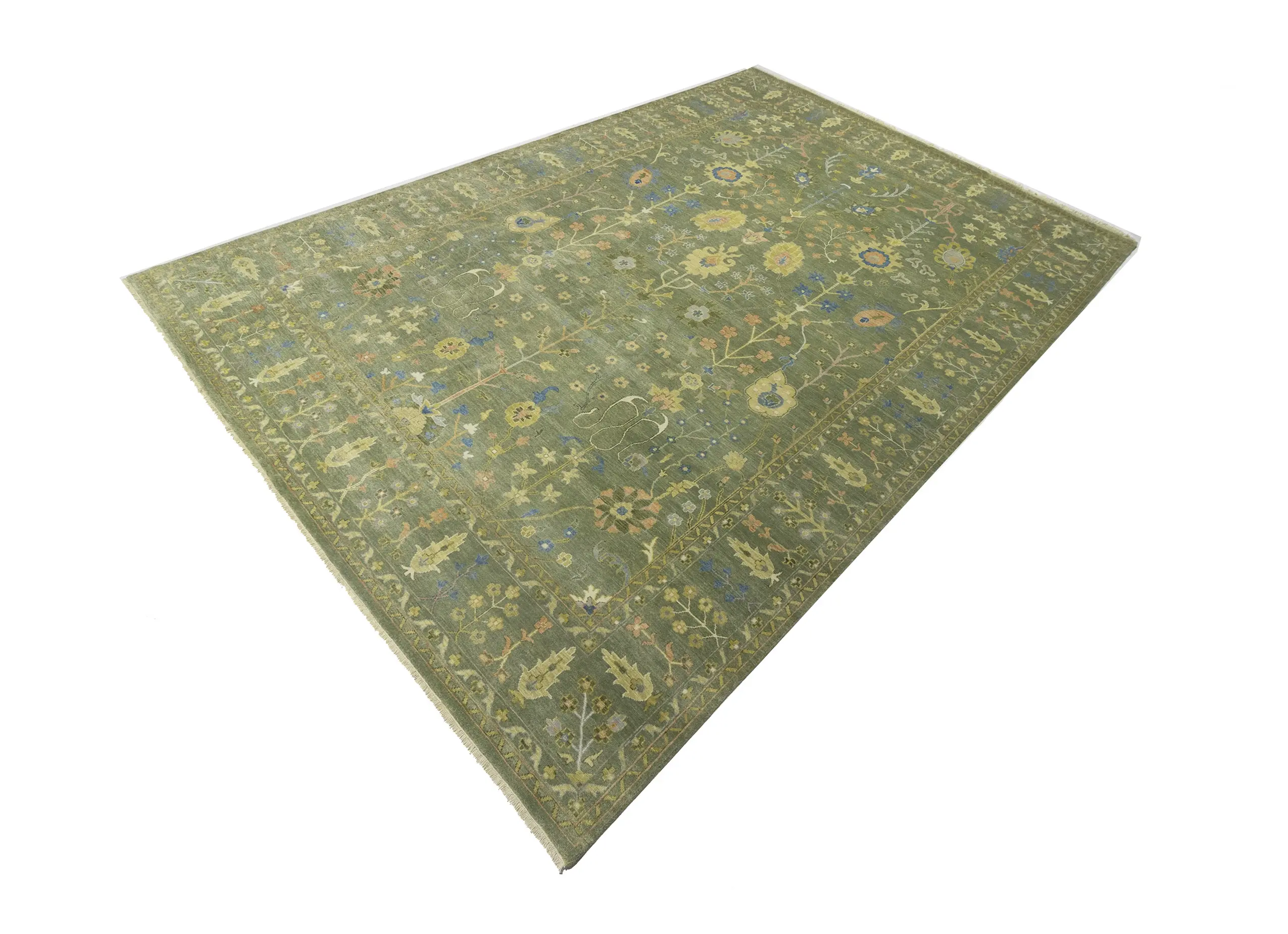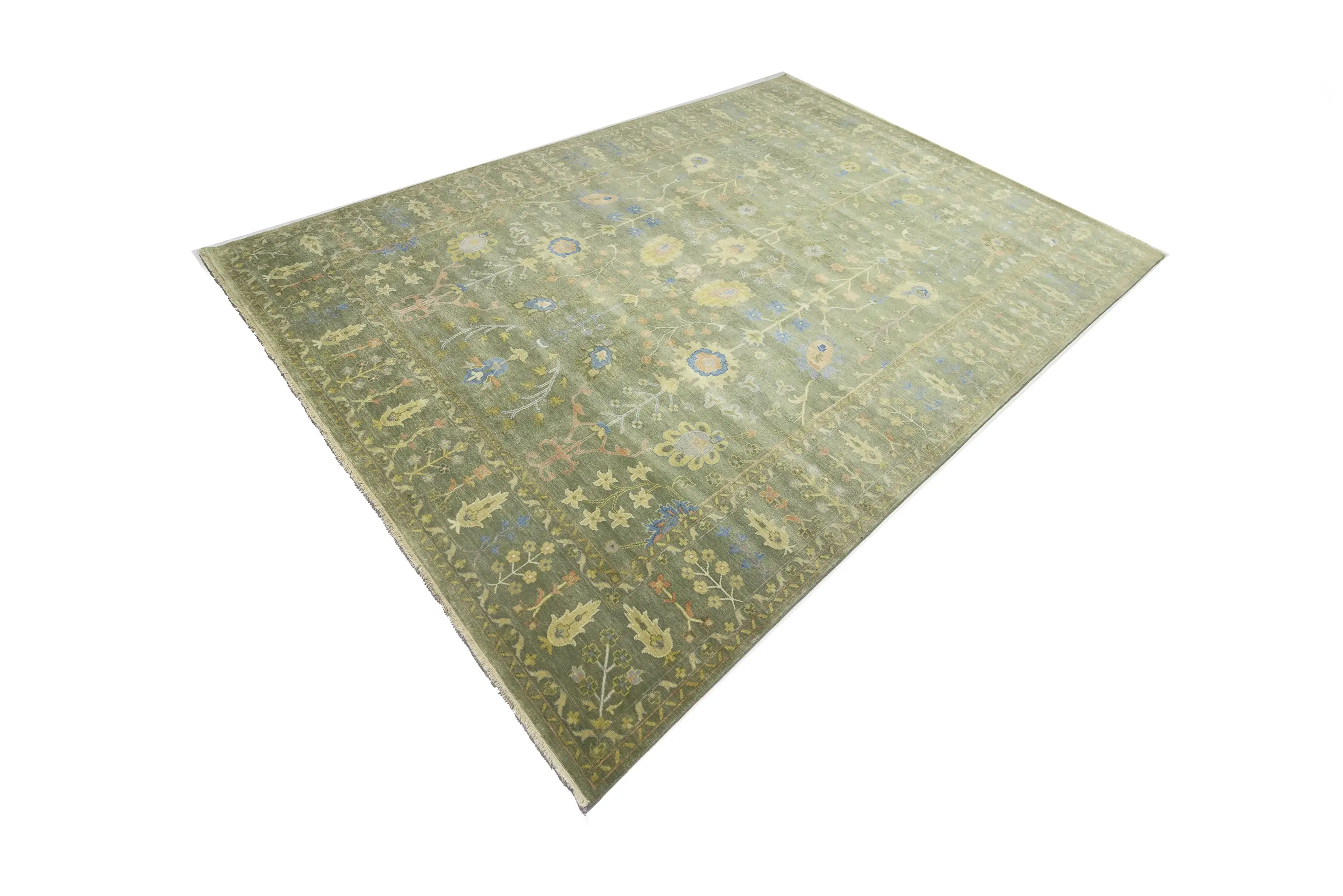 Olive Green Floral Traditional 10X14 Oushak Chobi Oriental Rug