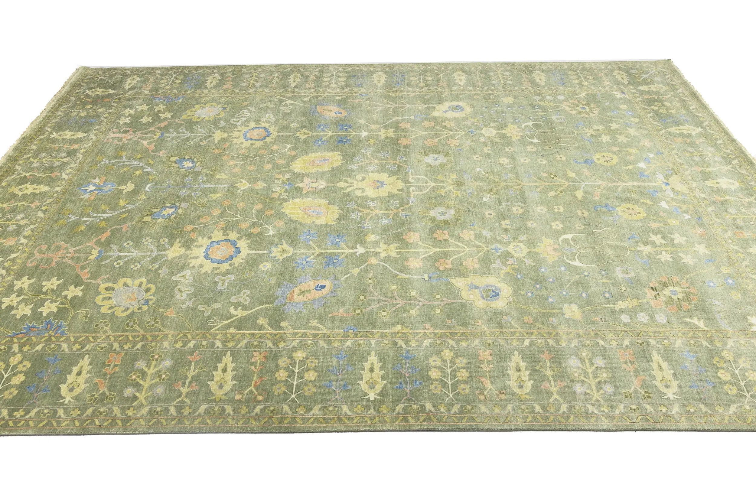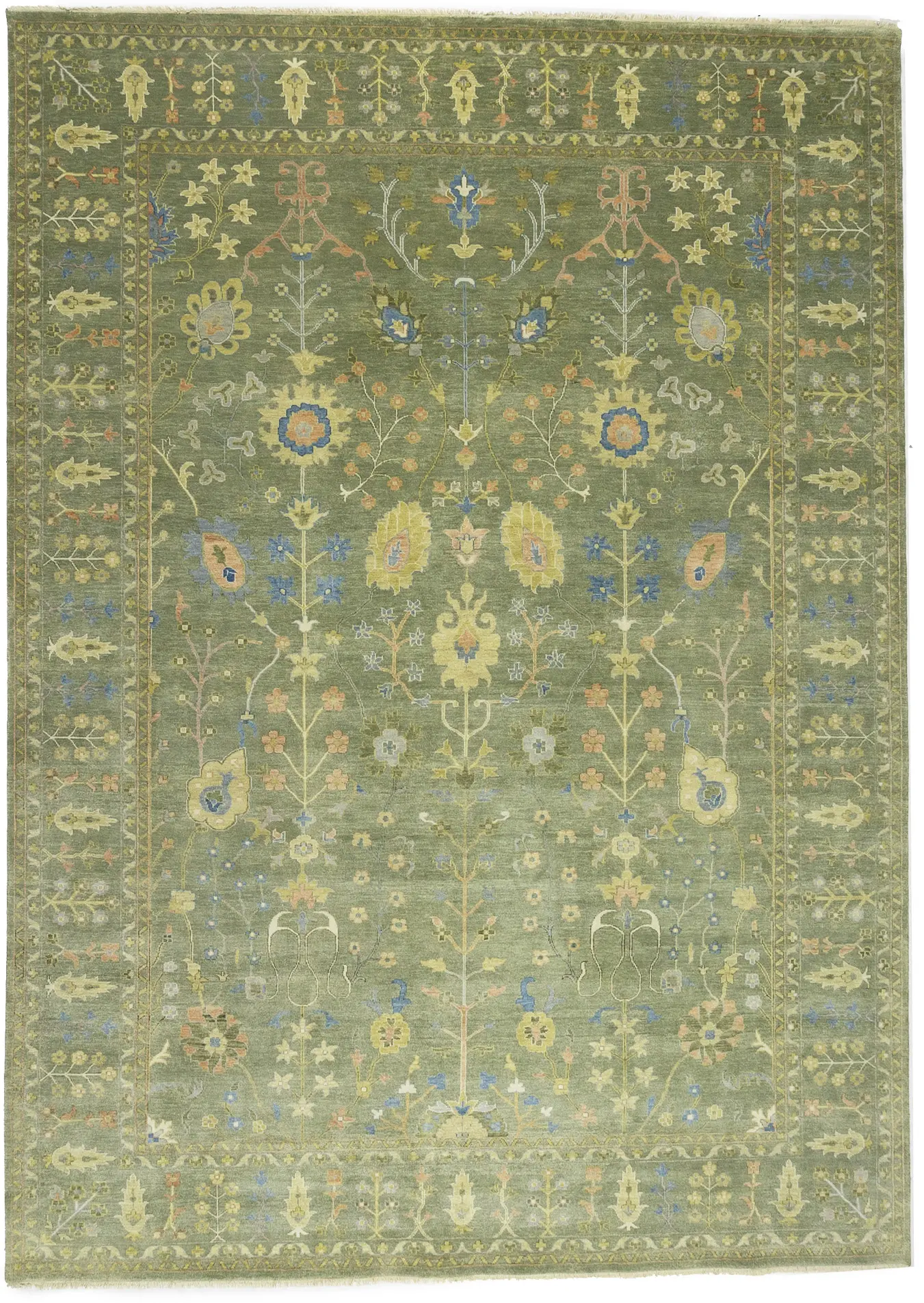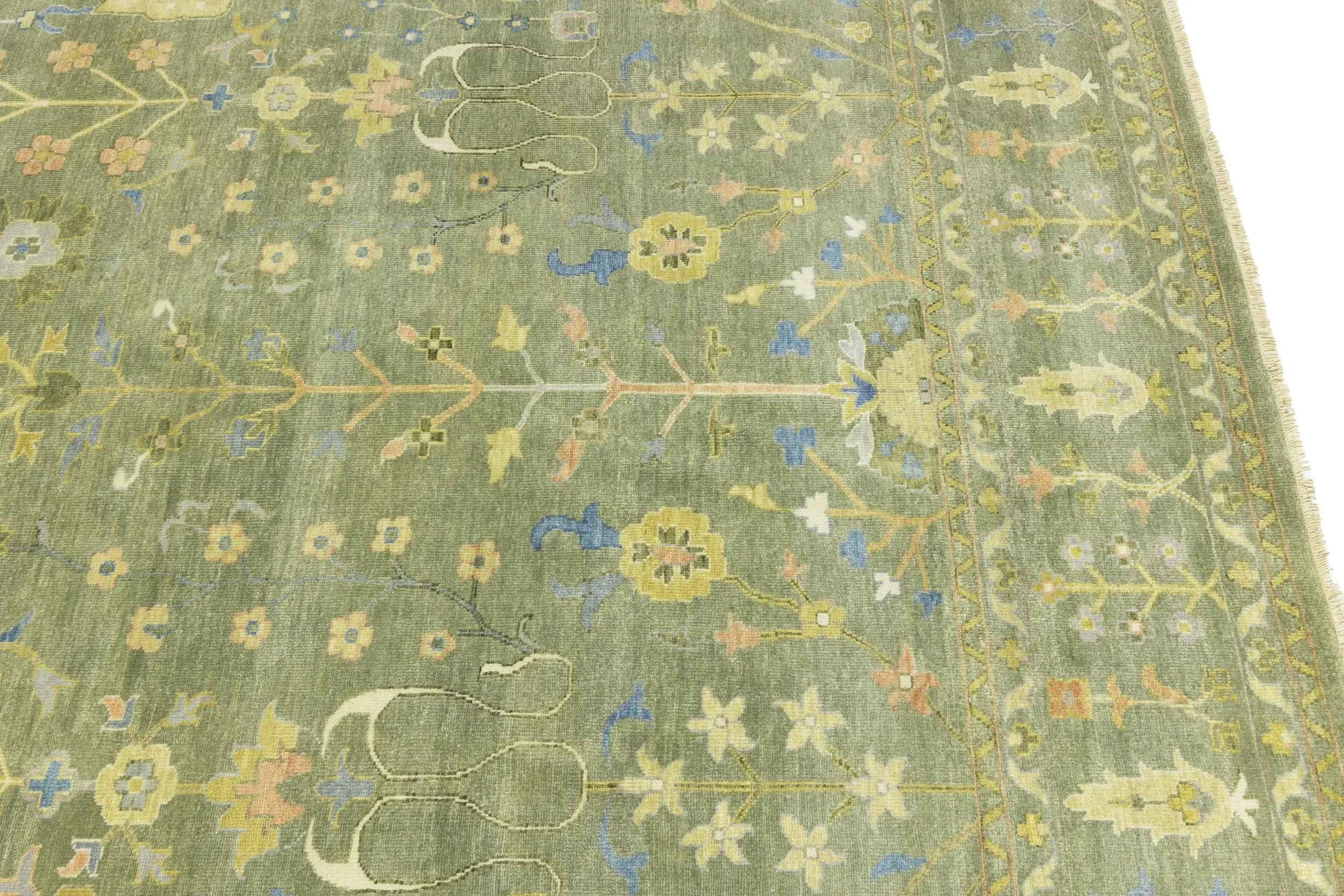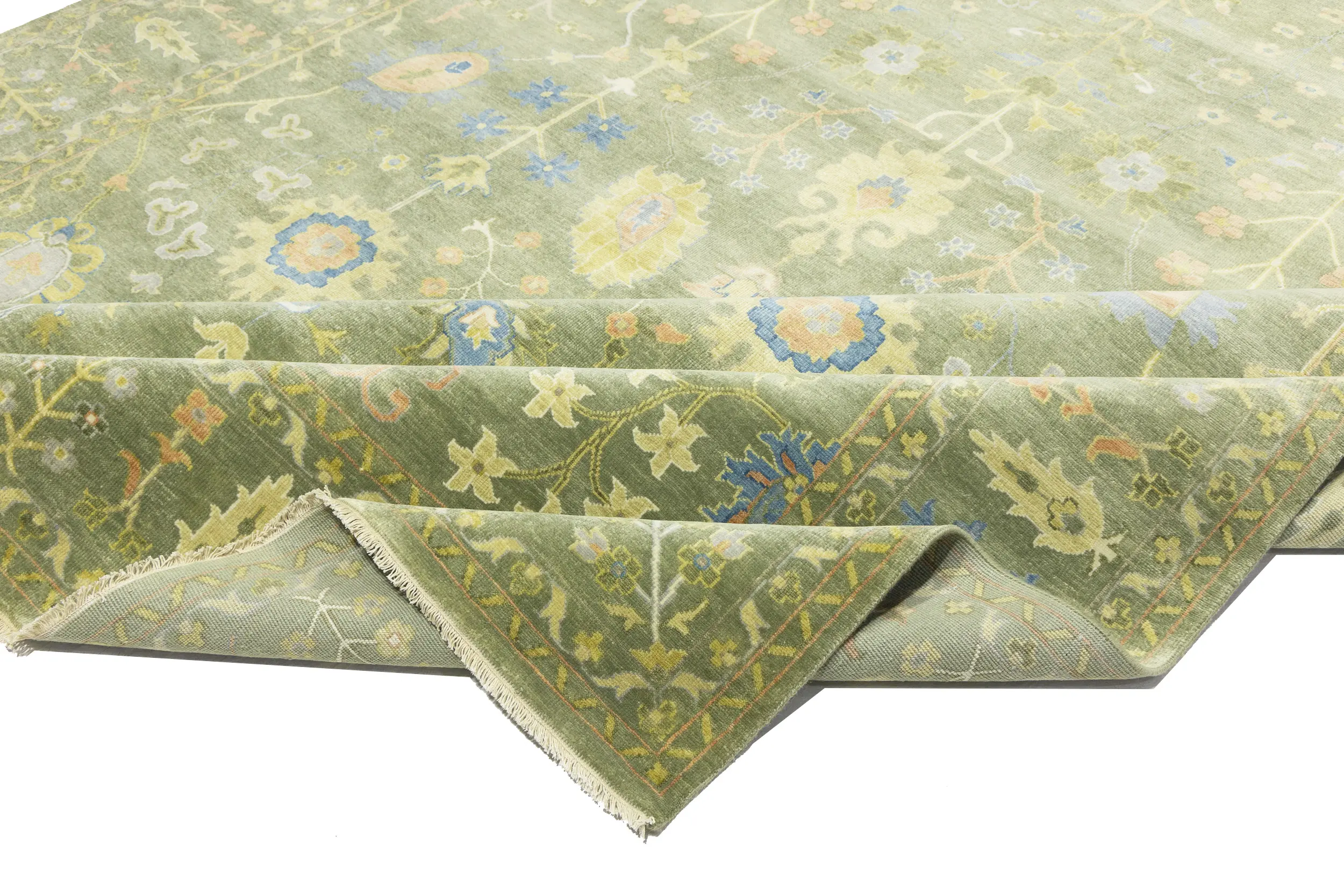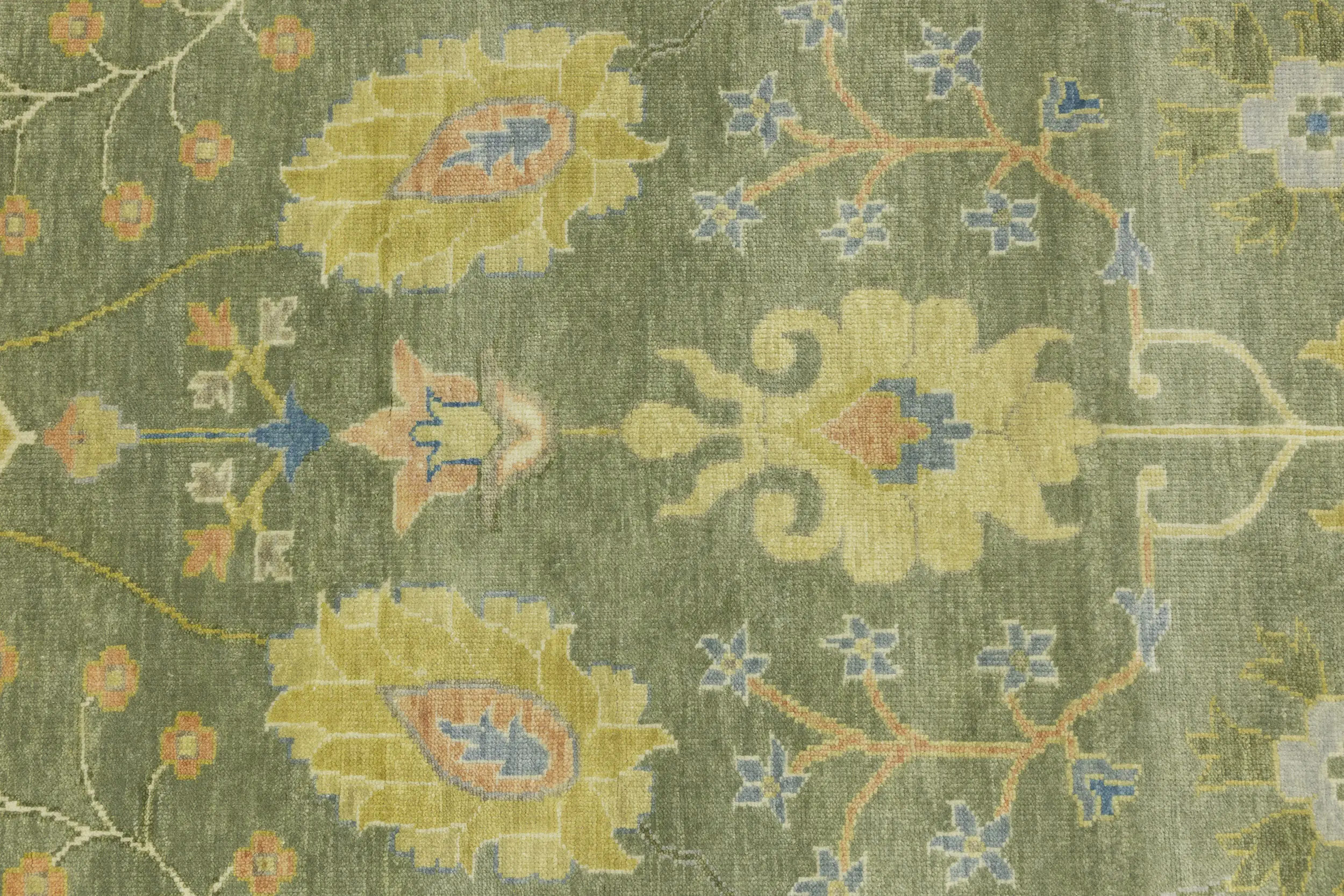 Olive Green Floral Traditional 10X14 Oushak Chobi Oriental Rug