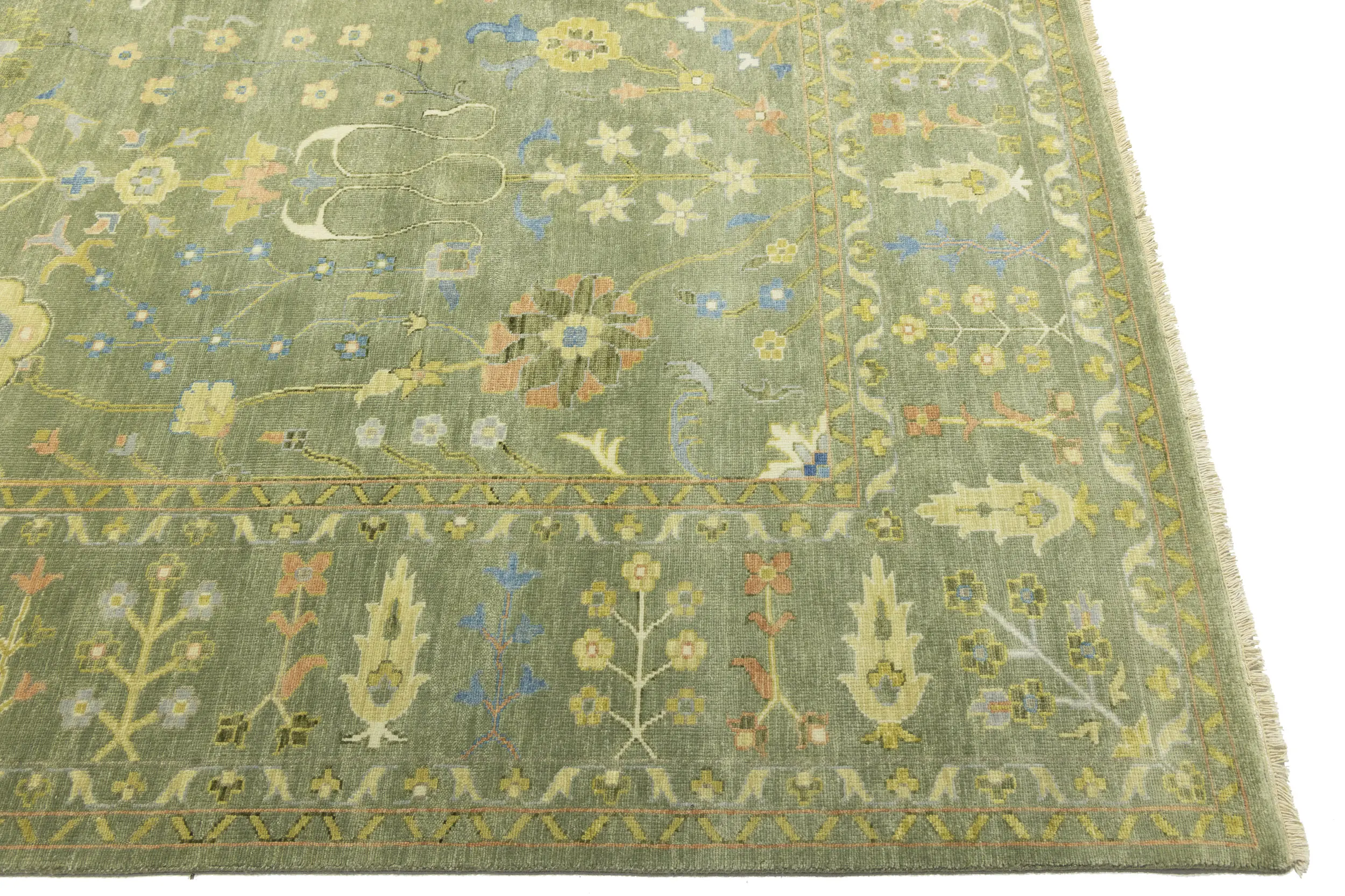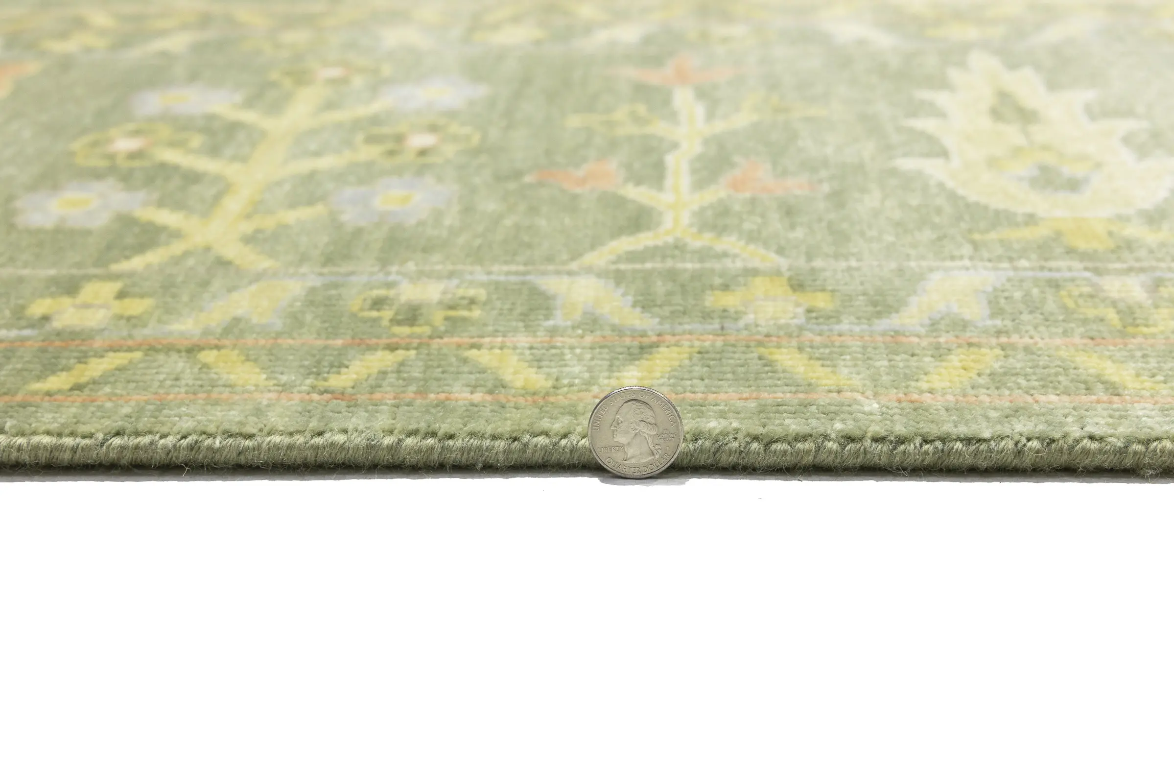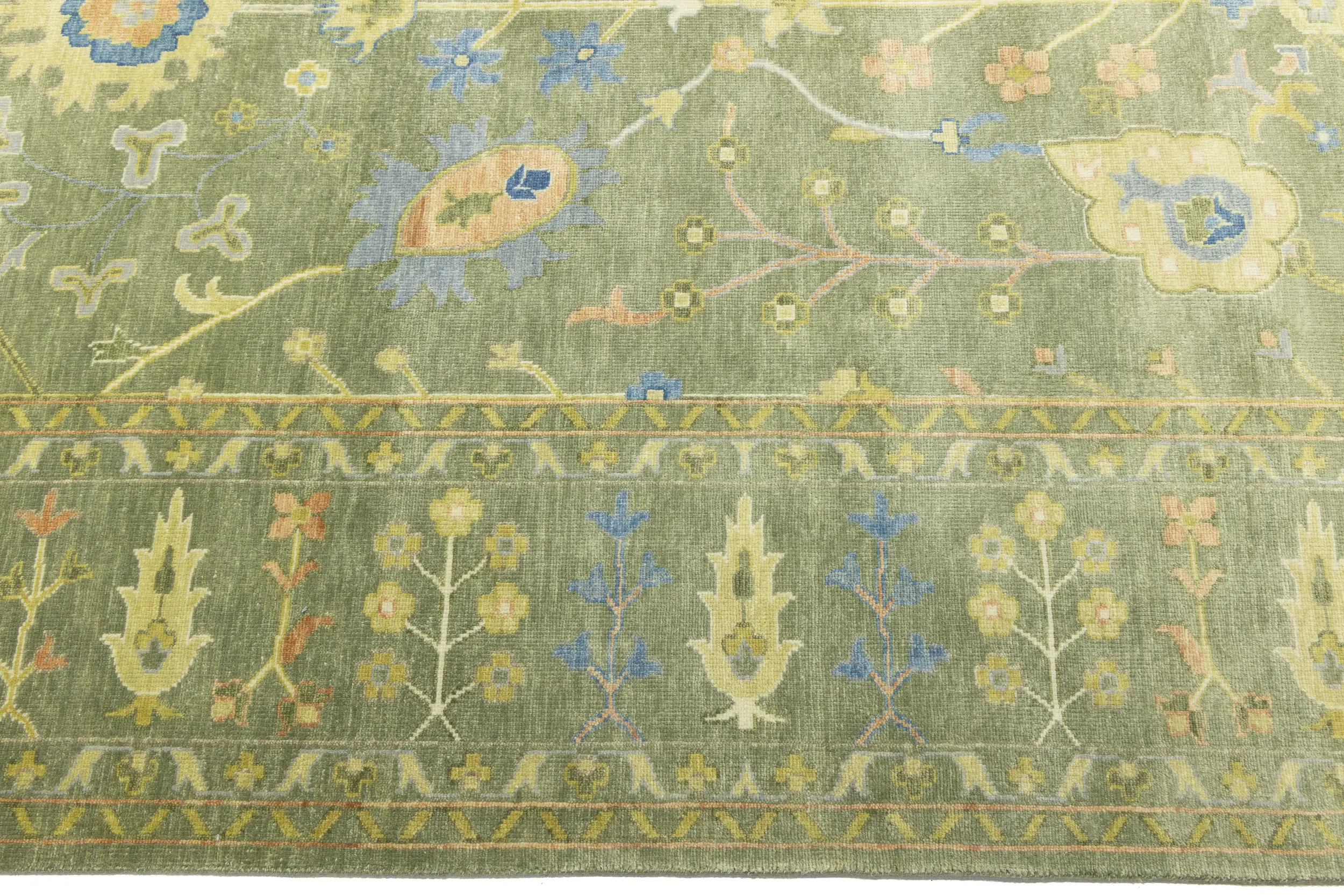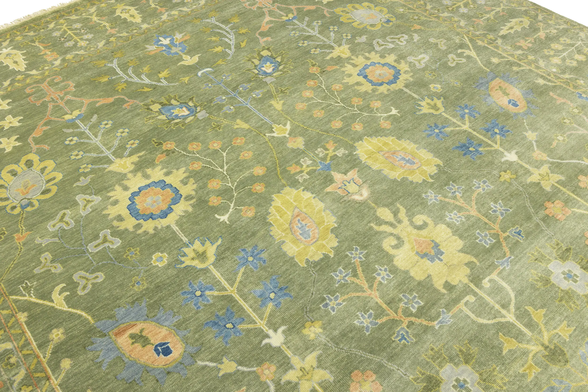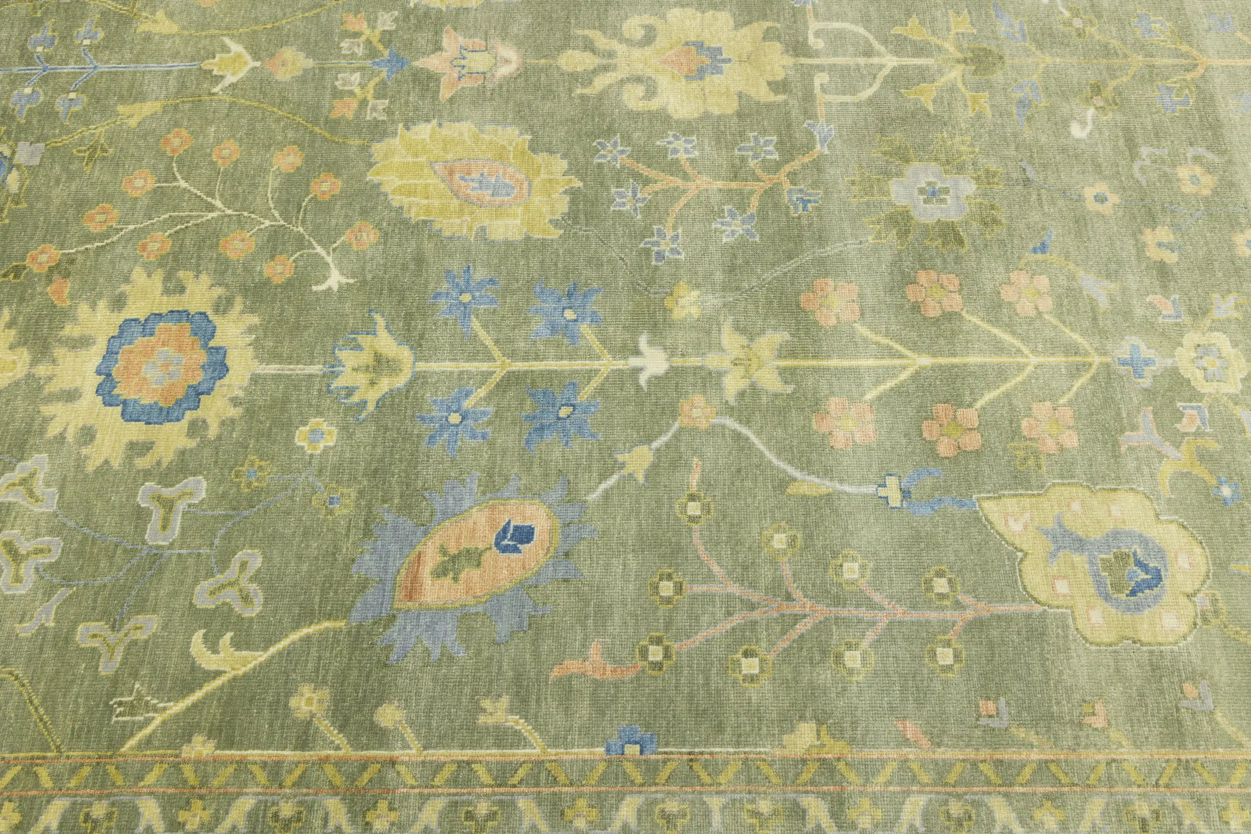 Olive Green Floral Traditional 10X14 Oushak Chobi Oriental Rug