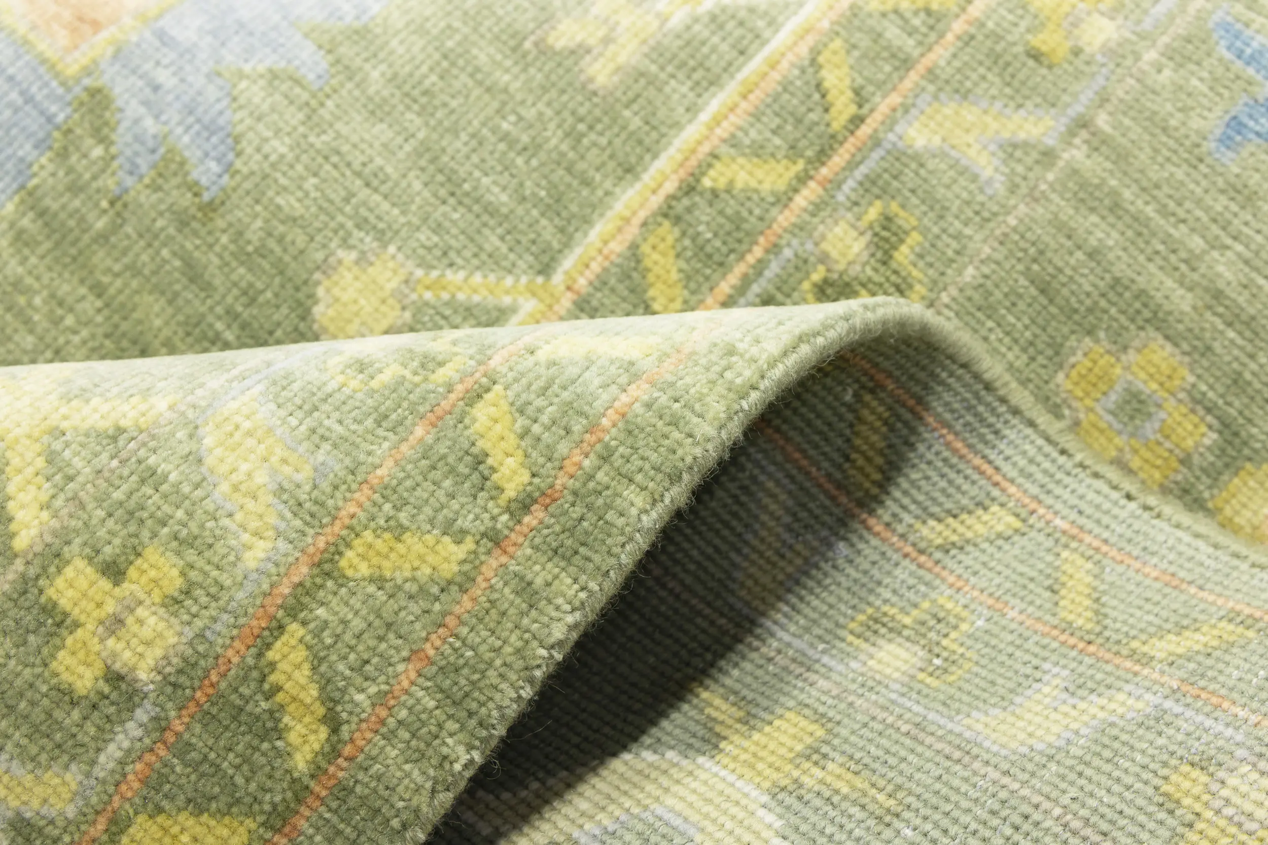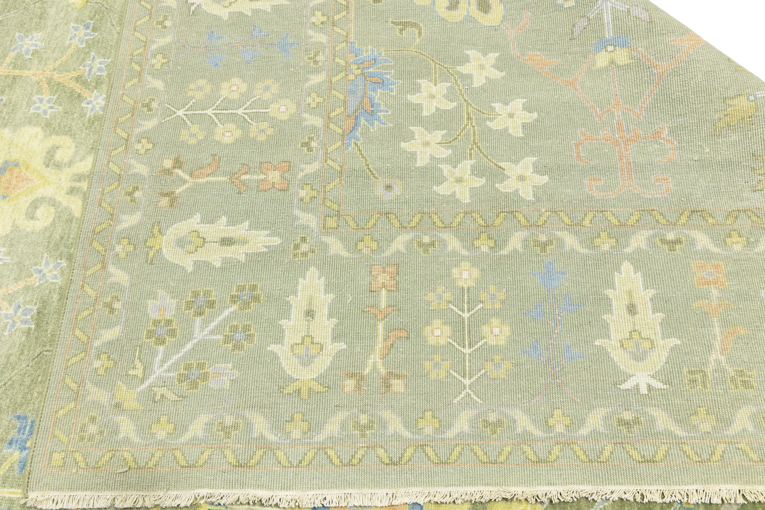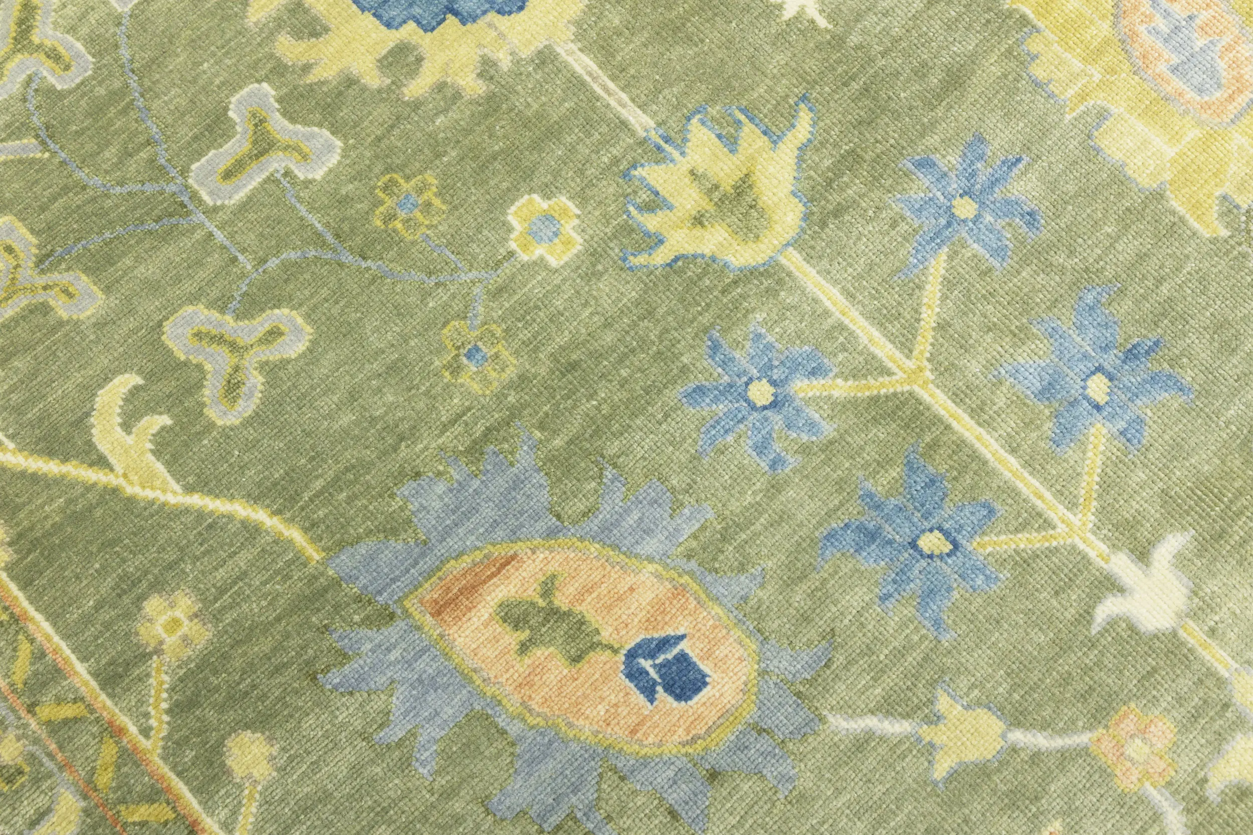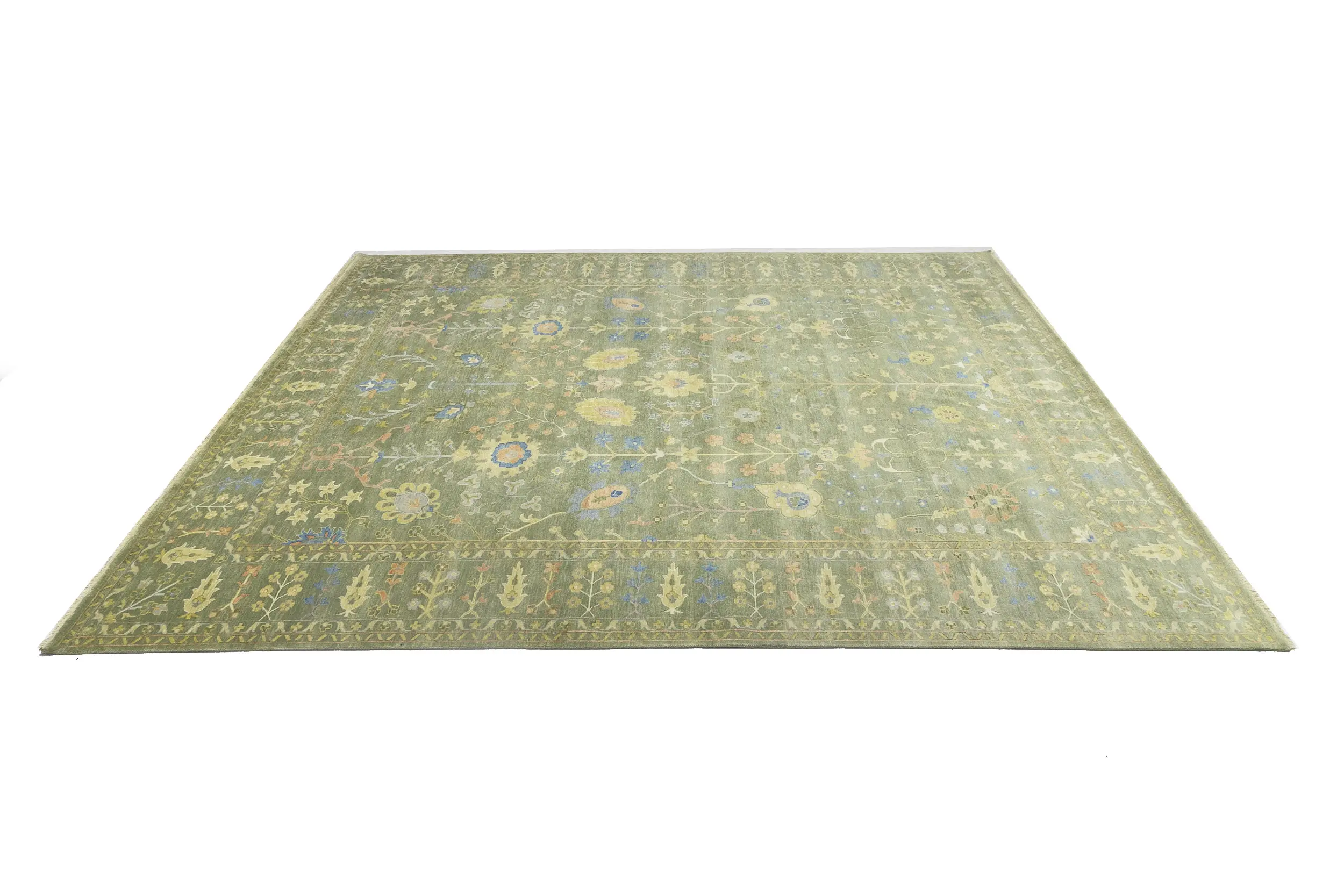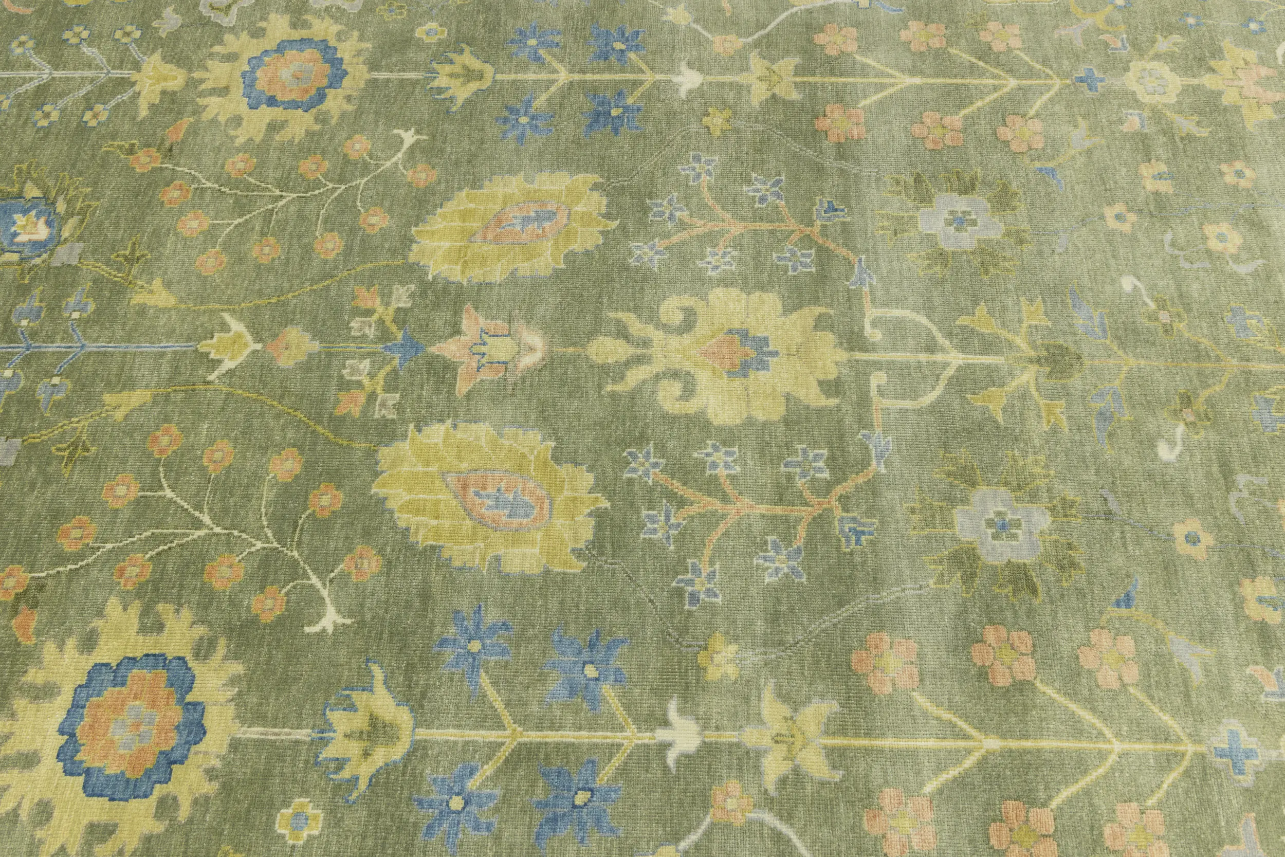 Olive Green Floral Traditional 10X14 Oushak Chobi Oriental Rug