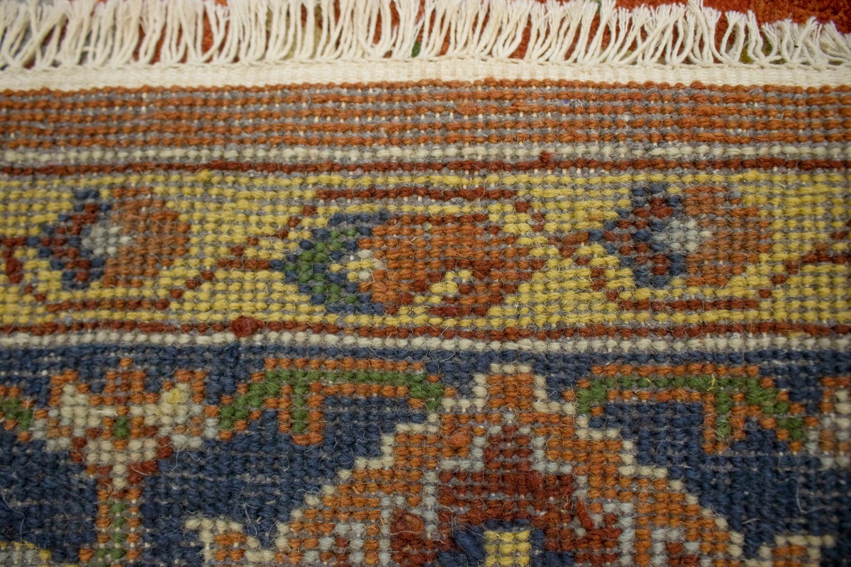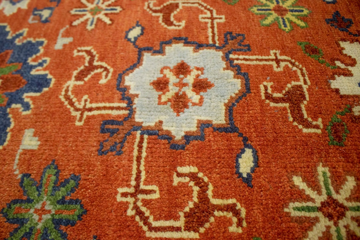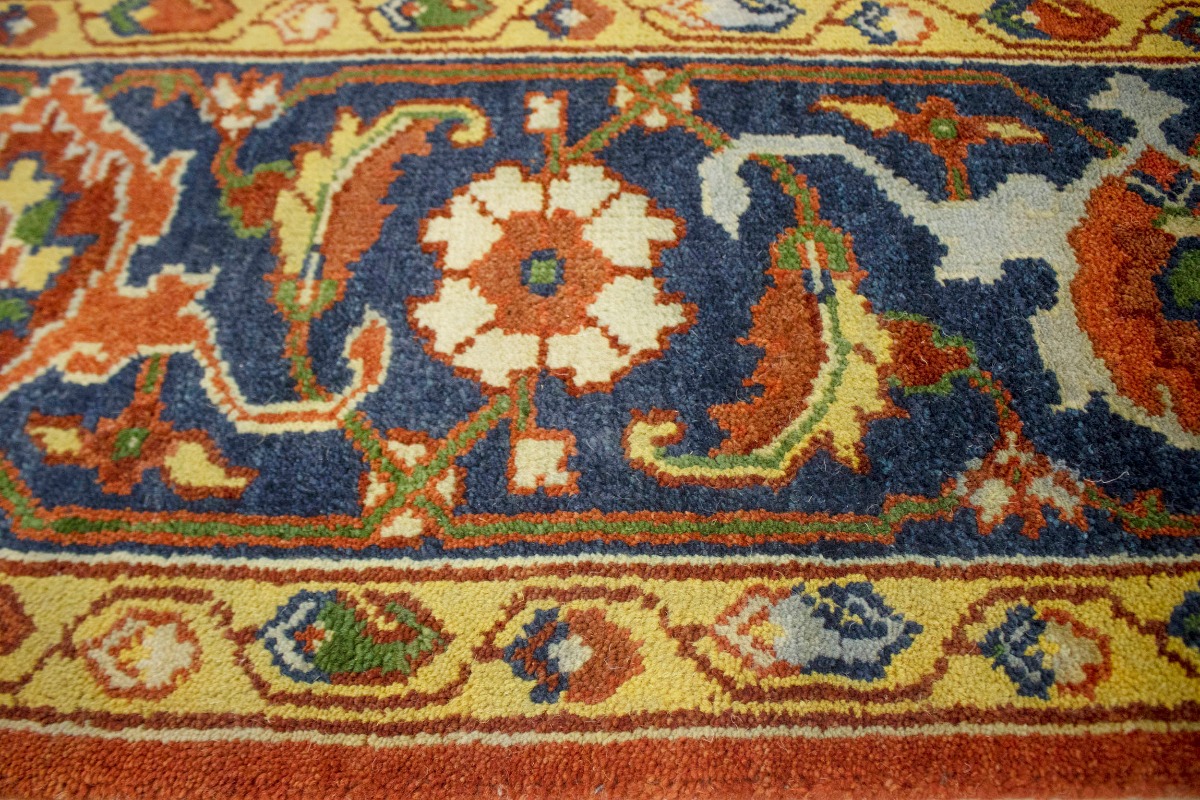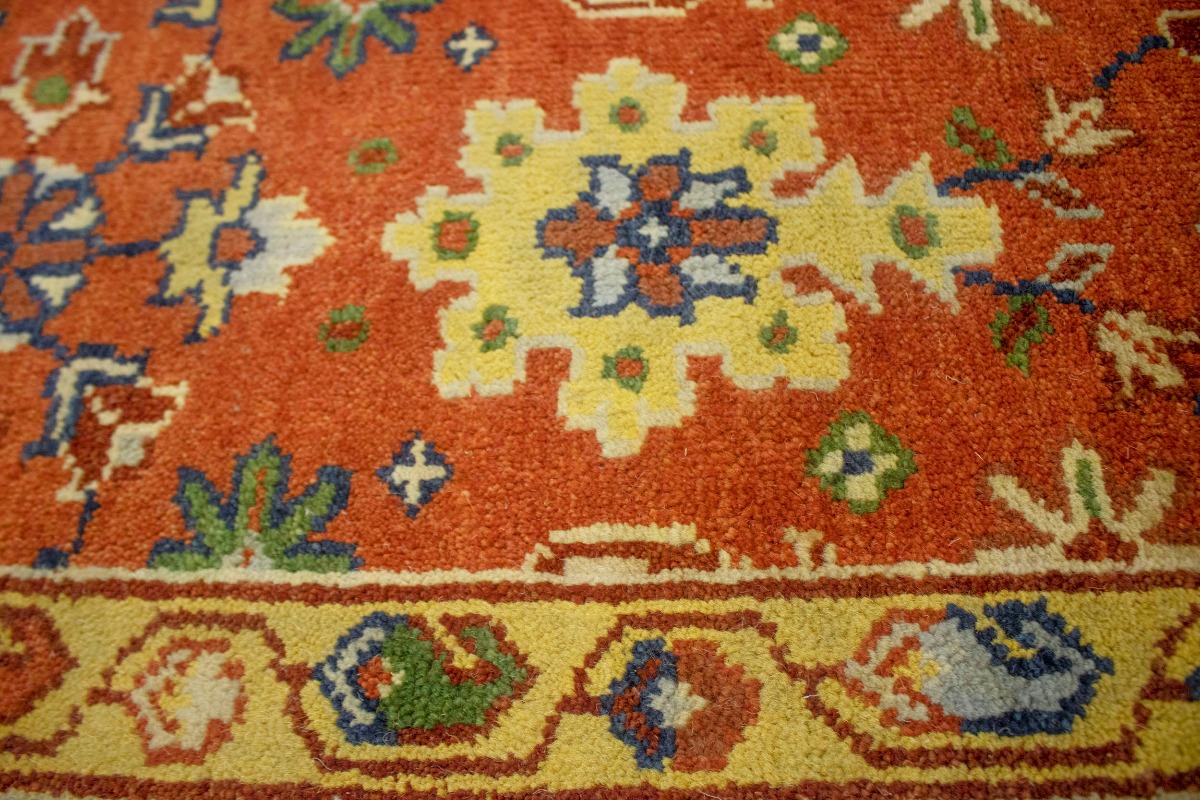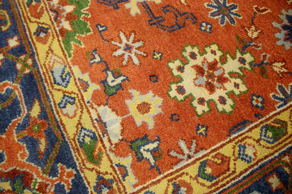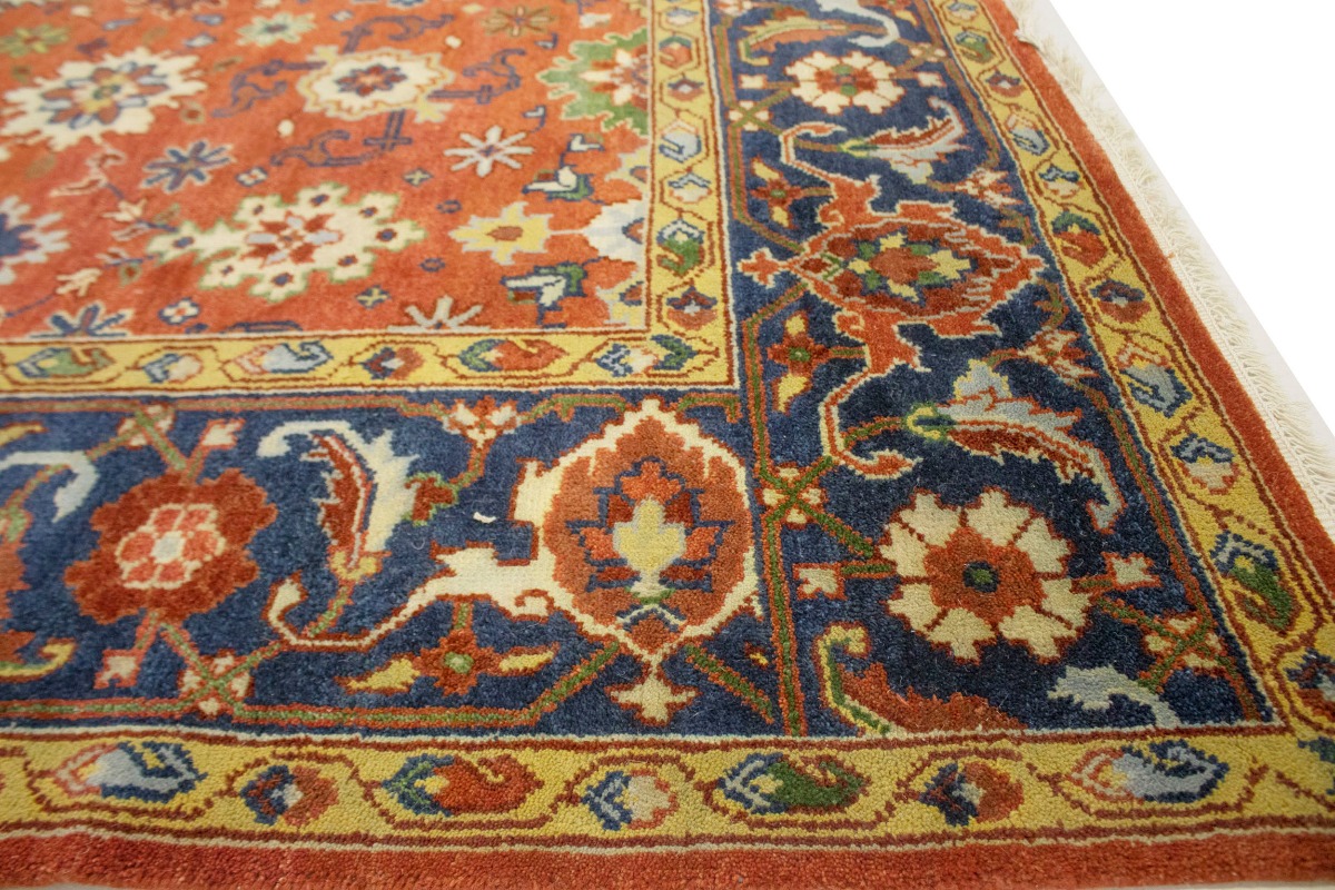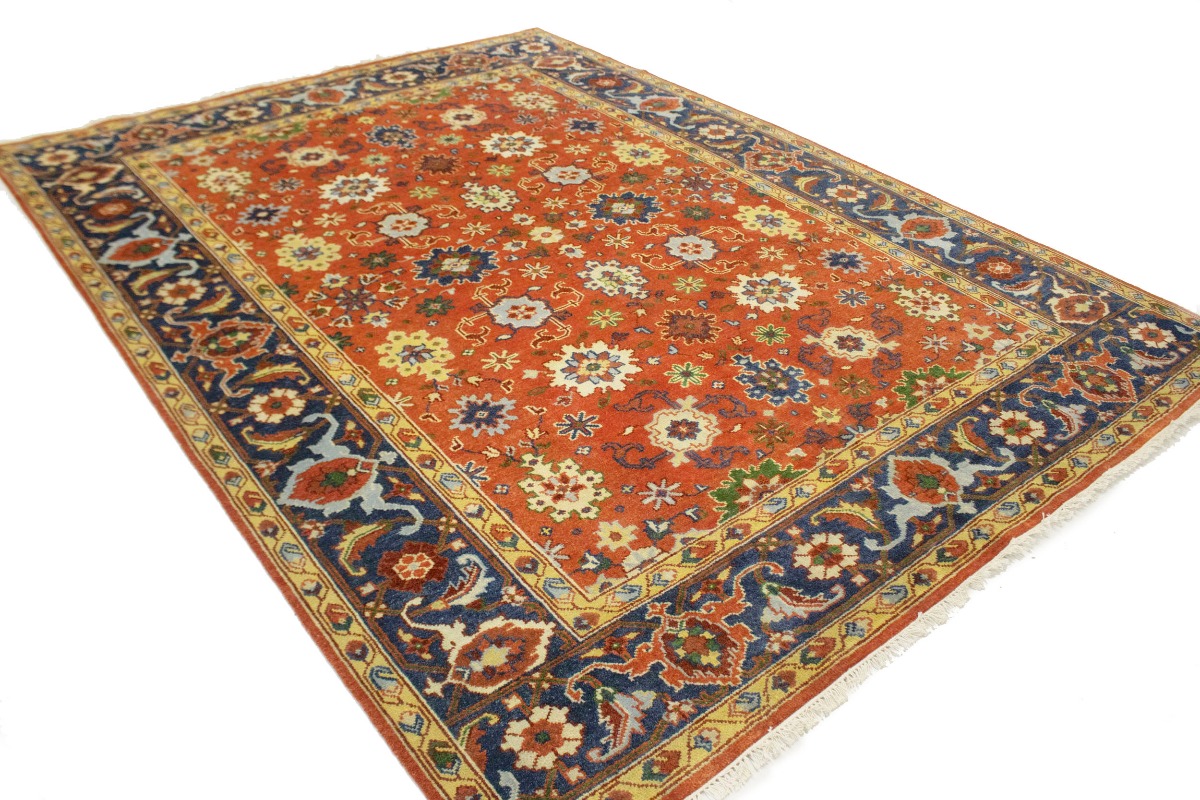 This authentic 9X12 orange new Oriental rug was masterly knotted by the hands of weavers inspired by a variety of wonderful artistic designs, to recreate the aged look of the original piece with a richness of color and intricate patterned background field. What set this vintage style Oriental area rug from the others are the material and dye used (wool pile and cotton foundation), knot count, antique designs, fantastic grades, and its regional historical connection: it has deep roots, from the story of the people who produced it to the meaning of the symbols and colors displayed across its canvas that have been praised for centuries. This Indian home décor carpet will be completely cozy and inviting that never will go out of style! Also, this Oriental rug would be among your most valuable treasures, it is a great investment that accrues value over time, and it will last for generations because was woven with high-quality, all-natural wool. Environmentally friendly, opulent yet affordable; this rug will give you a thorough amount of character to help define your living space with luxury and warmth that will capture the eyes and attention of your audience (homeowners, designers, decorators, family and friends). OT-4117