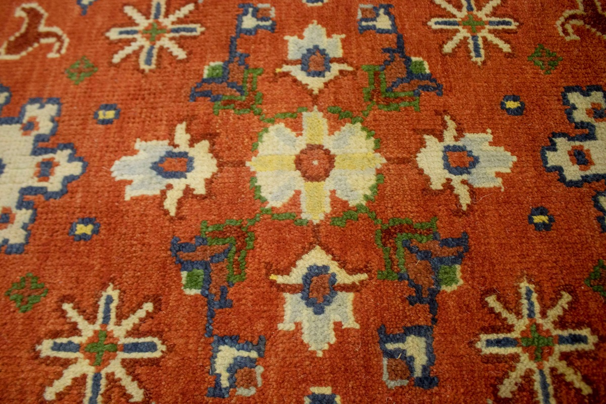 Hand Knotted 9X12 orange rug made with natural dyes (fine wool pile and cotton foundation), superior knot count, and appealing ancient designs. This Oriental rug never will go out of style and would be among your most valuable treasures.
