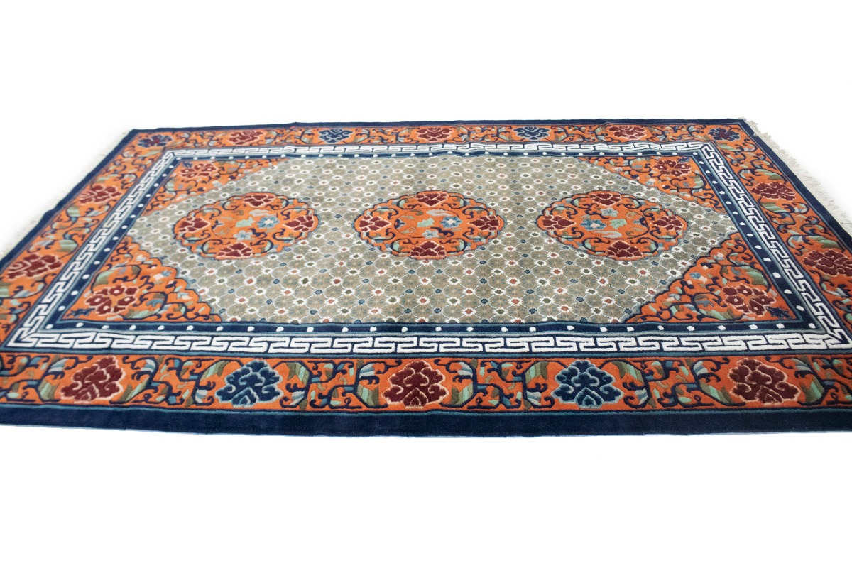 Orange Geometric 6X9 Chinese Style Oriental Rug