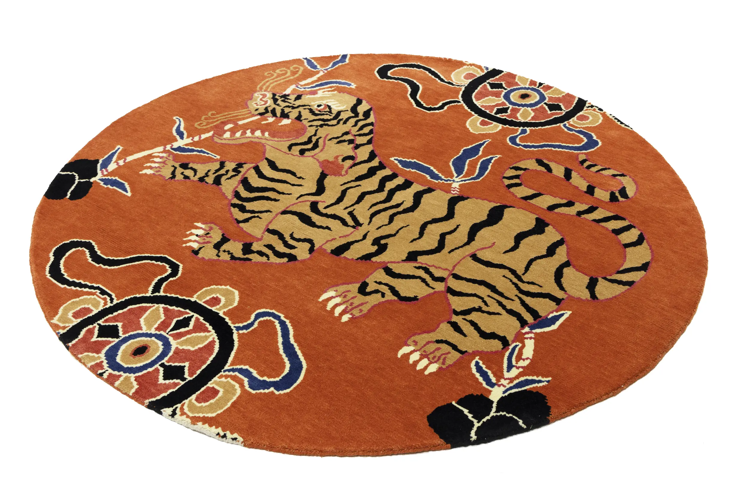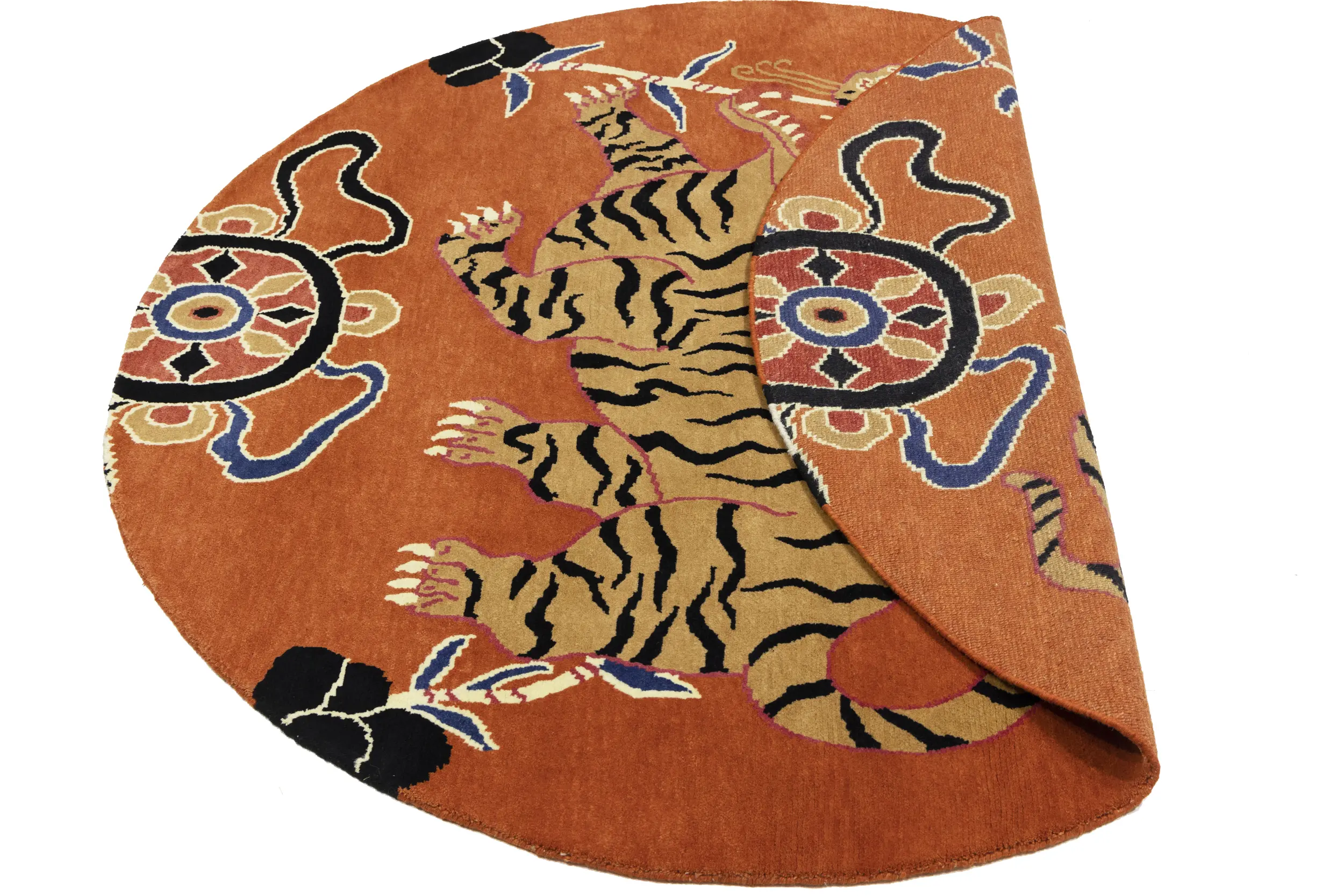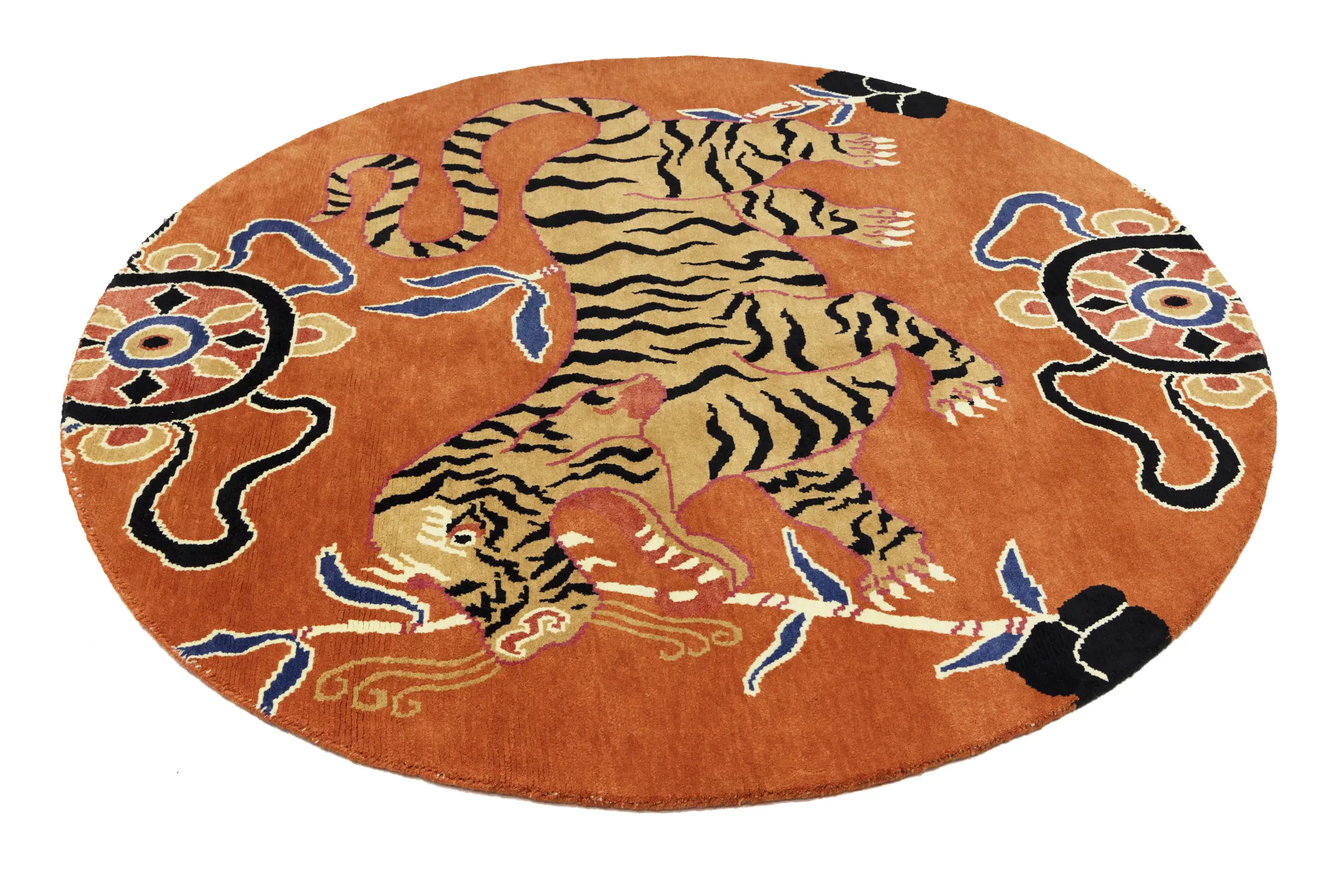Handmade 6X6 orange Oriental rug made with vegetable dyes (fine wool pile and cotton foundation), superior knot count, and appealing ancient designs. This Oriental rug never will go out of style and would be among your most valuable treasures.