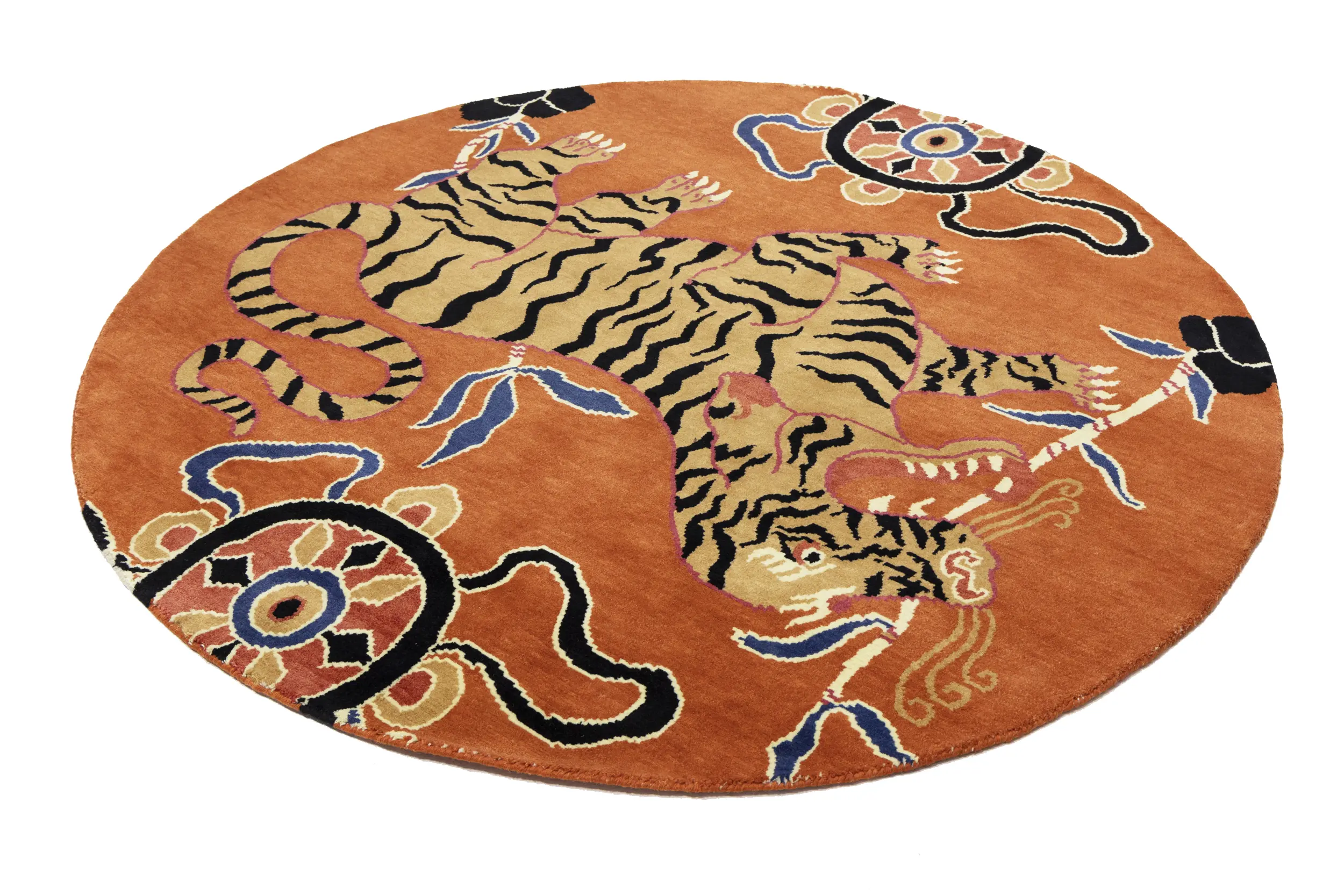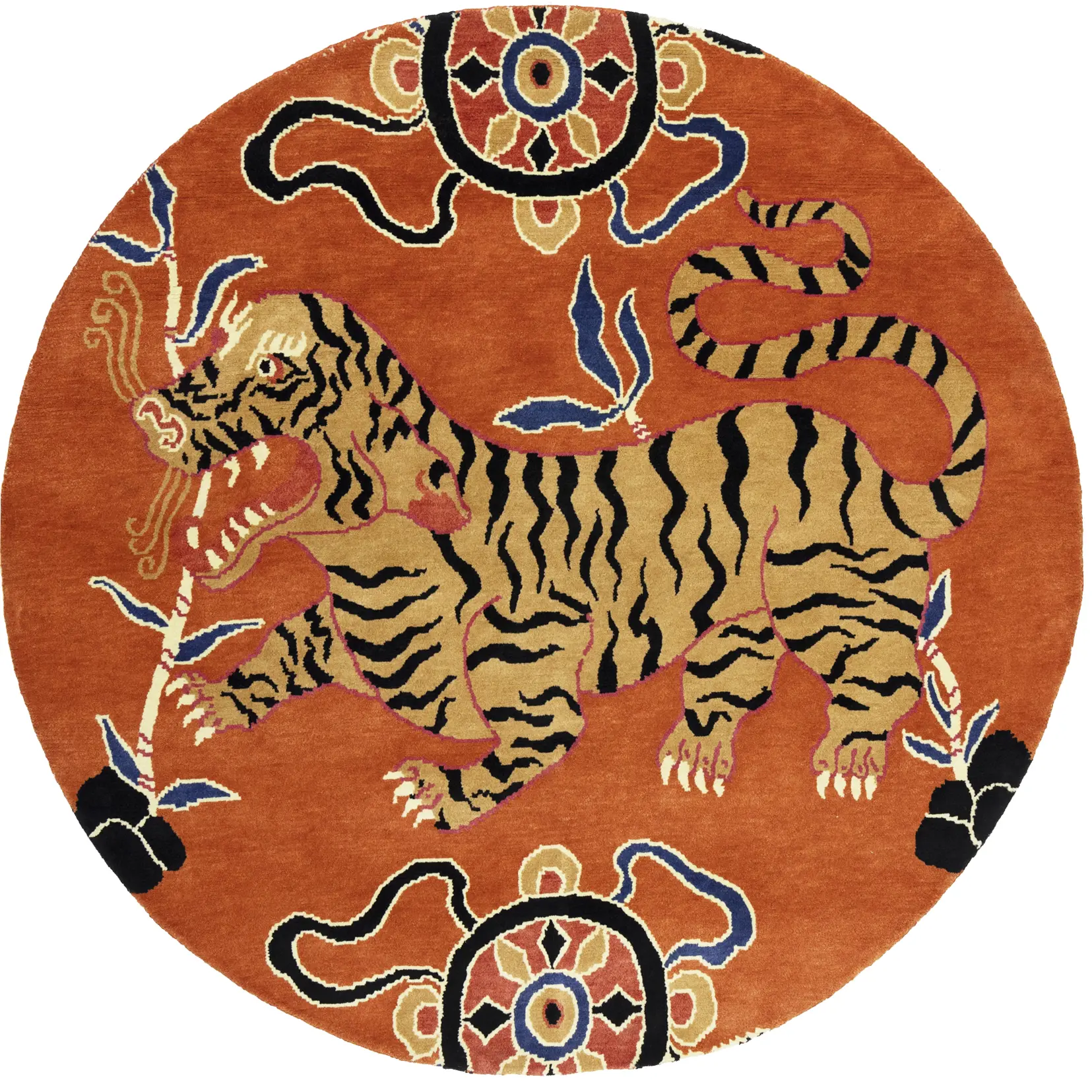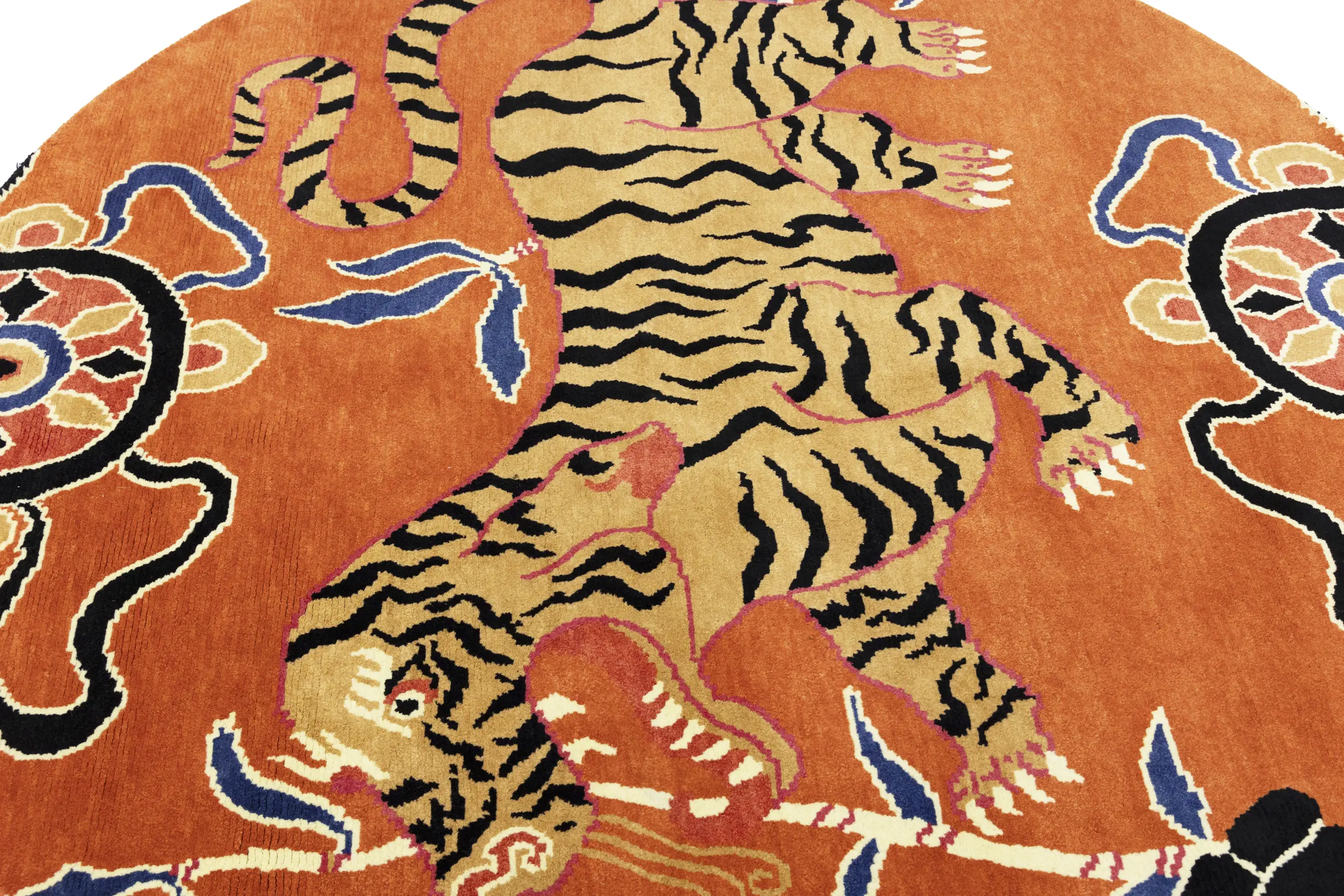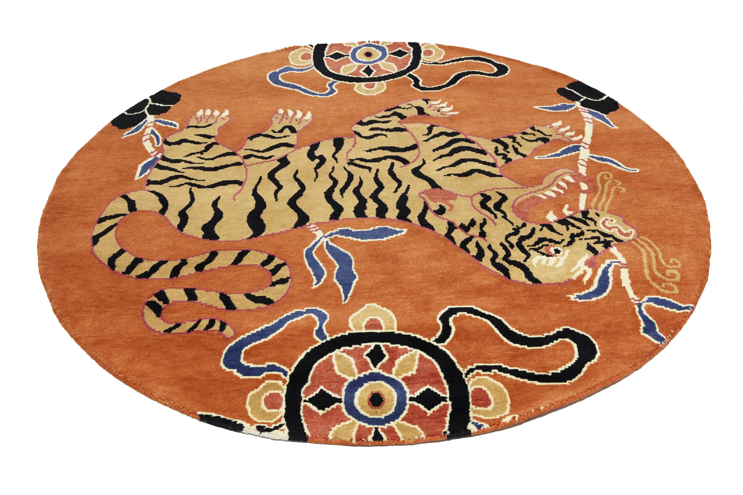 Handmade 6X6 orange Oriental rug made with vegetable dyes (fine wool pile and cotton foundation), superior knot count, and appealing ancient designs. This Oriental rug never will go out of style and would be among your most valuable treasures.