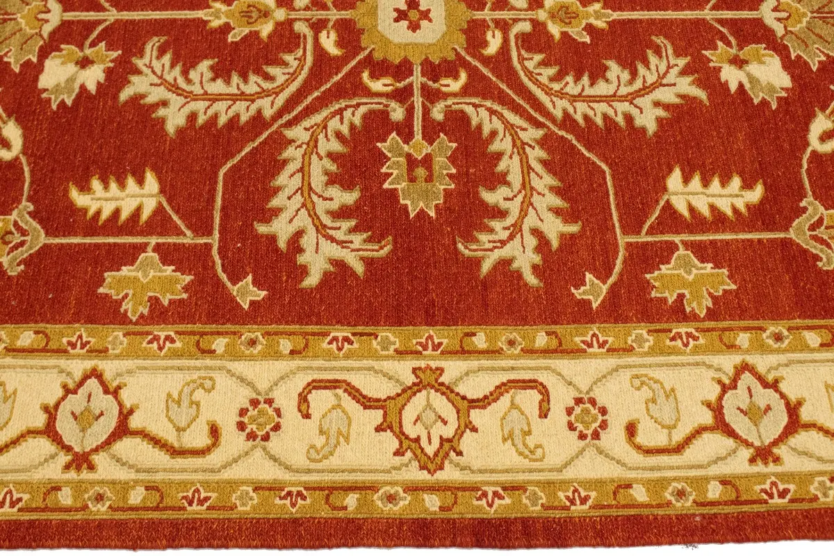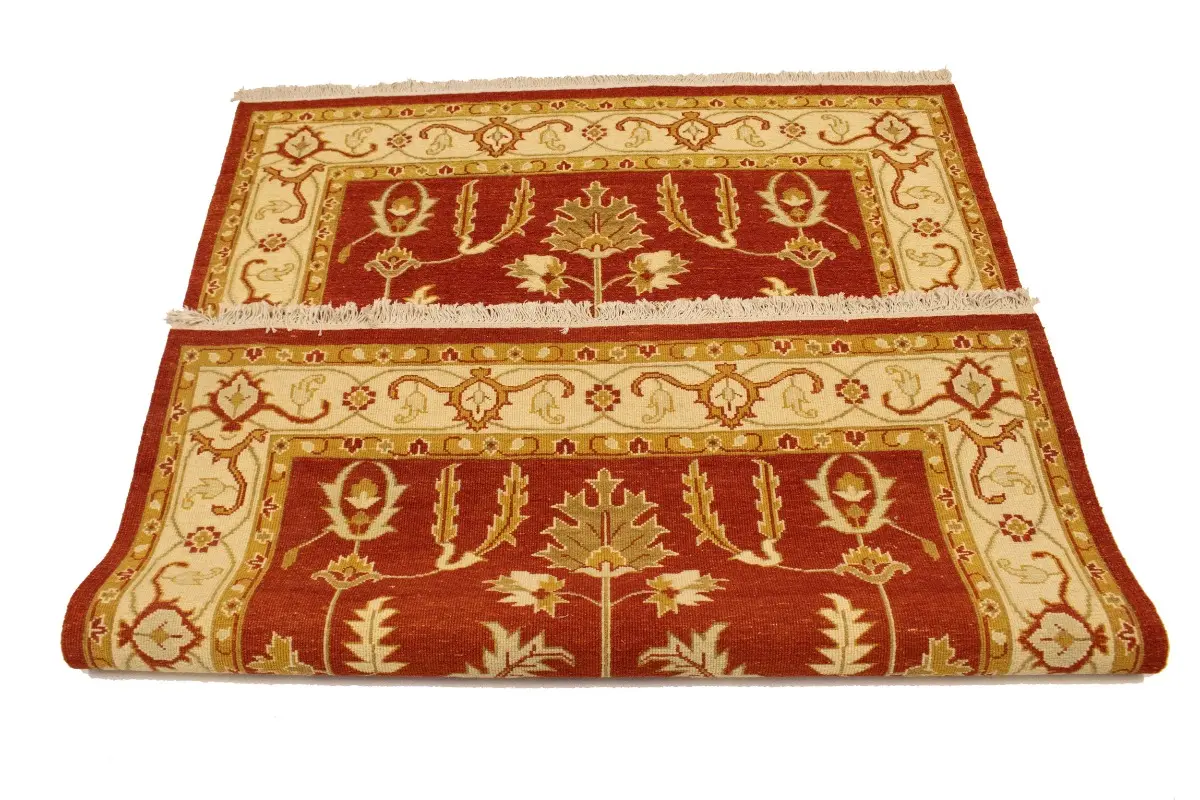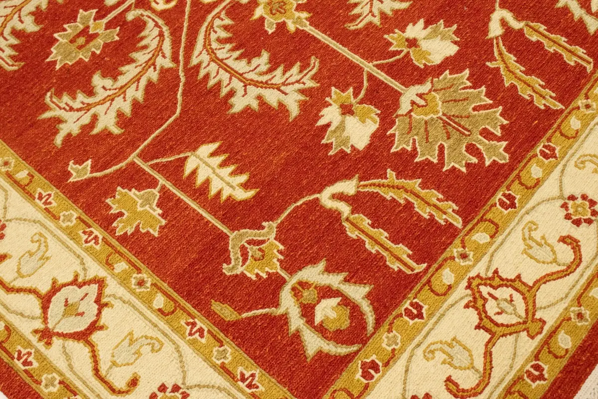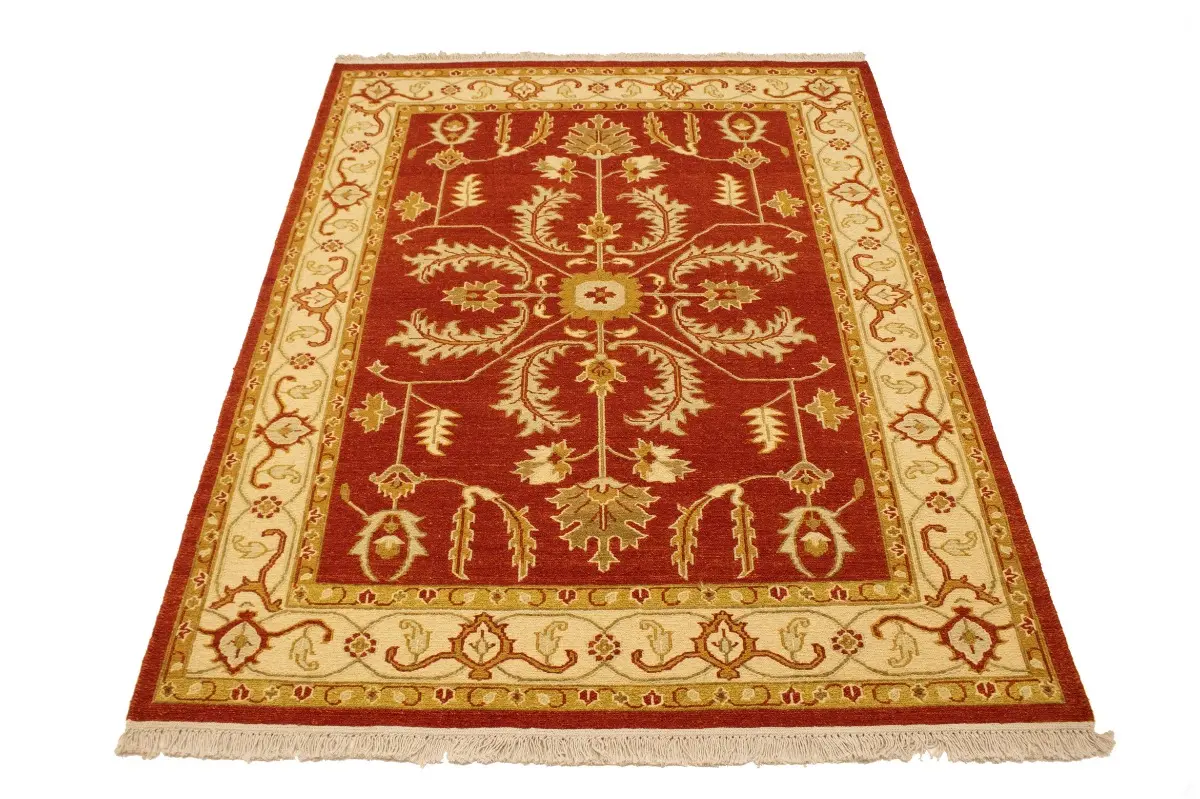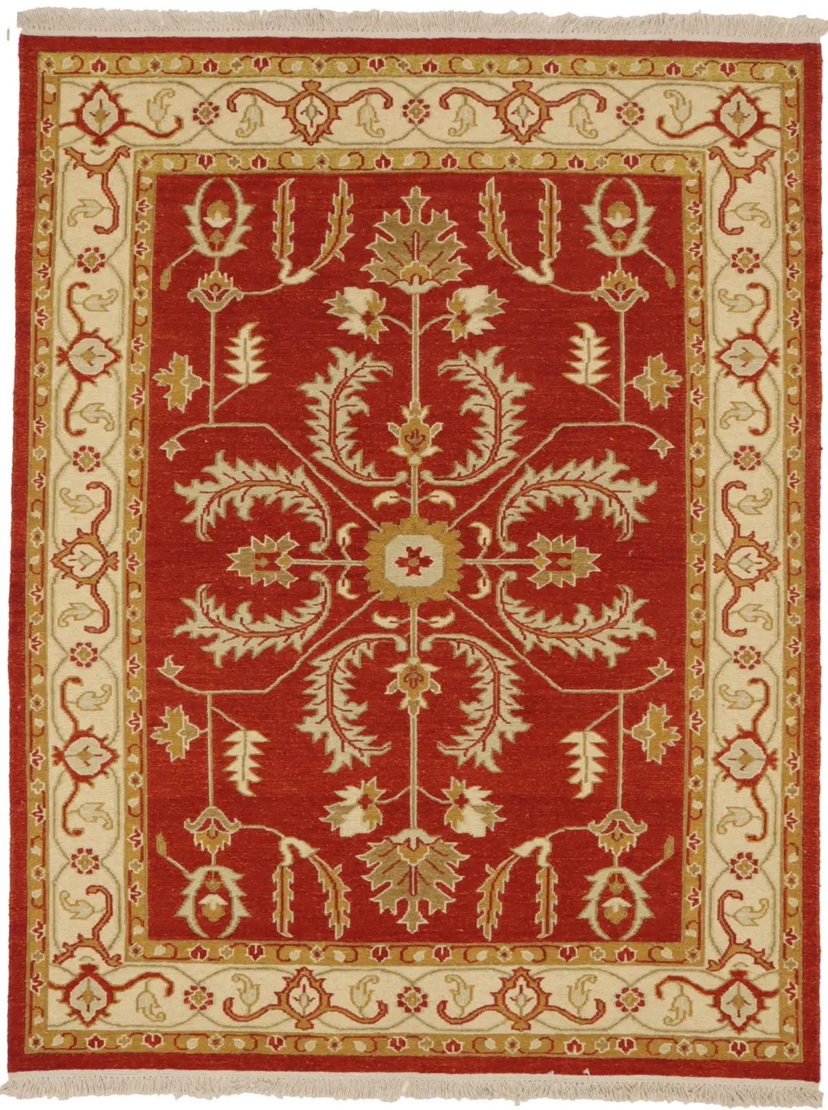 This authentic 5X7 orange new Oriental rug was masterly knotted by the hands of weavers inspired by a variety of wonderful artistic designs, to recreate the aged look of the original piece with a richness of color and intricate patterned background field. What set this vintage style Oriental area rug from the others are the material and dye used (wool pile and cotton foundation), knot count, antique designs, fantastic grades, and its regional historical connection: it has deep roots, from the story of the people who produced it to the meaning of the symbols and colors displayed across its canvas that have been praised for centuries. This Indian home décor carpet will be completely cozy and inviting that never will go out of style! Also, this Oriental rug would be among your most valuable treasures, it is a great investment that accrues value over time, and it will last for generations because was woven with high-quality, all-natural wool. Environmentally friendly, opulent yet affordable; this rug will give you a thorough amount of character to help define your living space with luxury and warmth that will capture the eyes and attention of your audience (homeowners, designers, decorators, family and friends). OT-6551