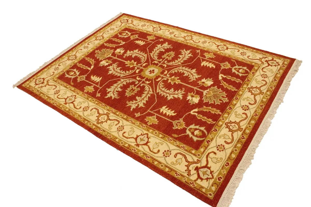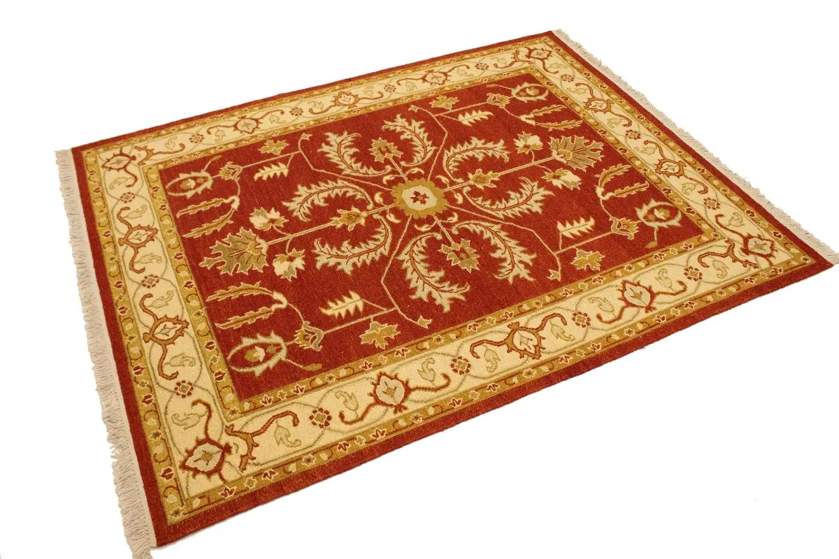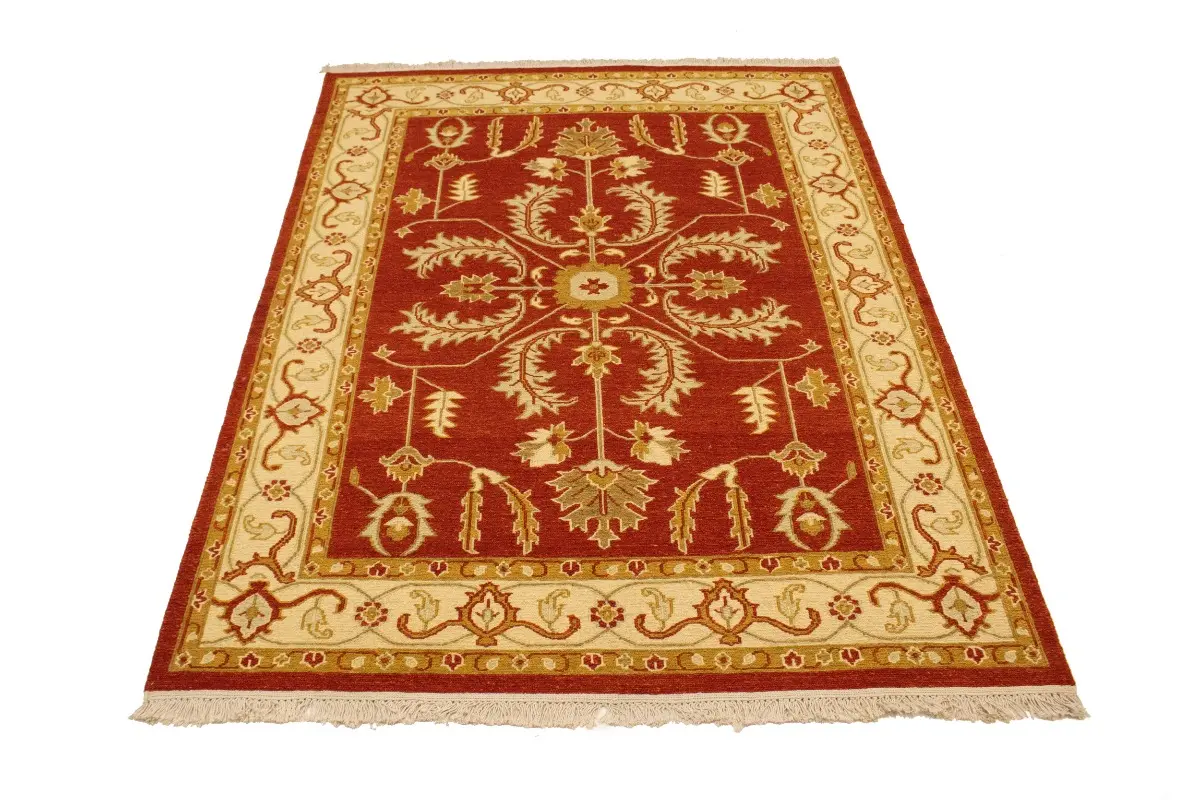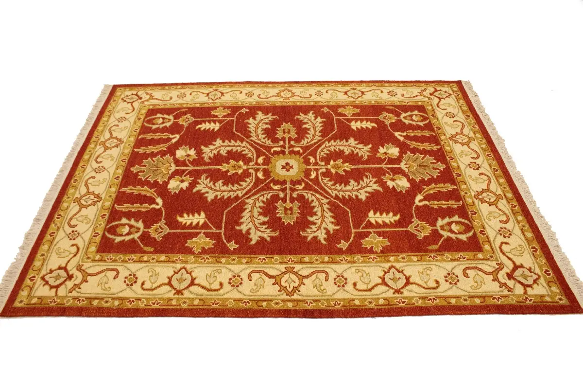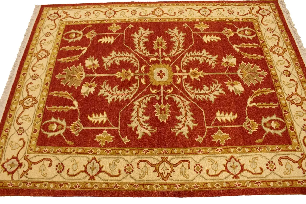 Hand Knotted 5X7 orange Oriental rug made with vegetable dyes (fine wool pile and cotton foundation), superior knot count, and appealing ancient designs. This Oriental rug never will go out of style and would be among your most valuable treasures.