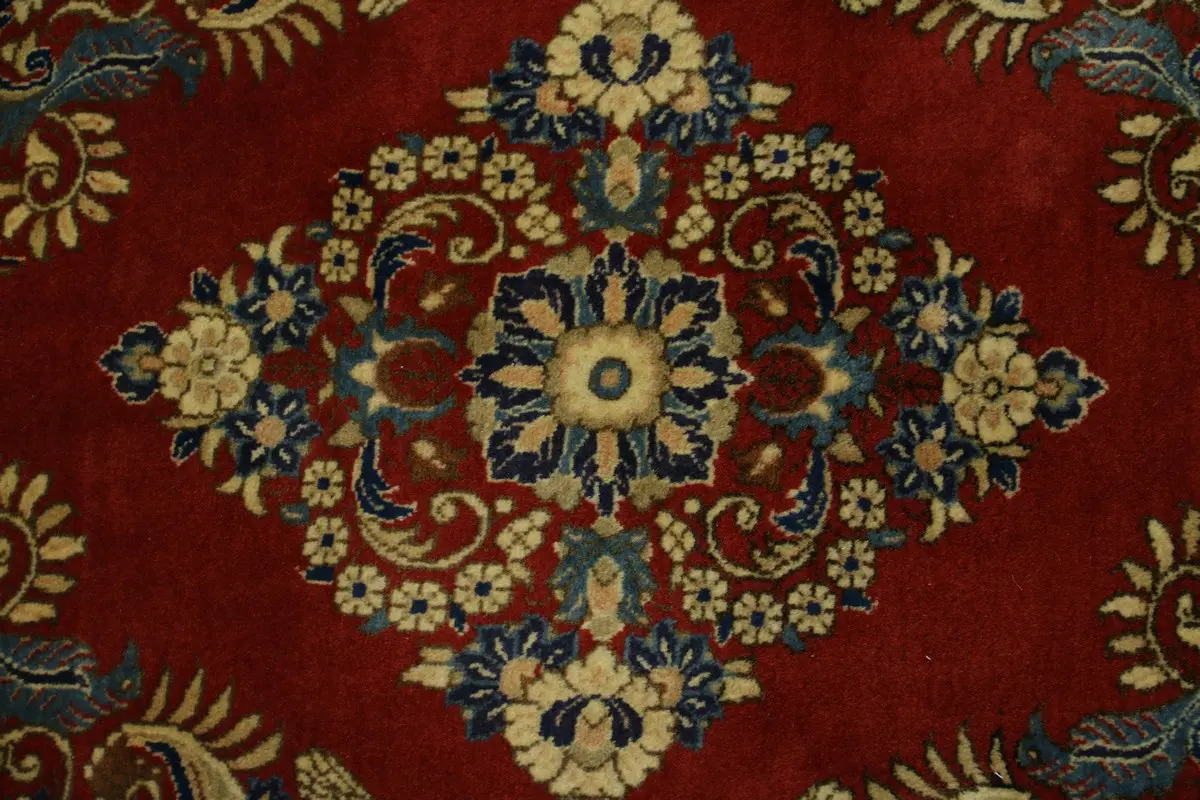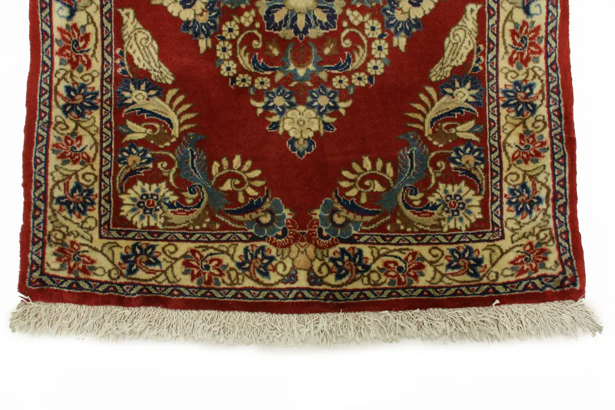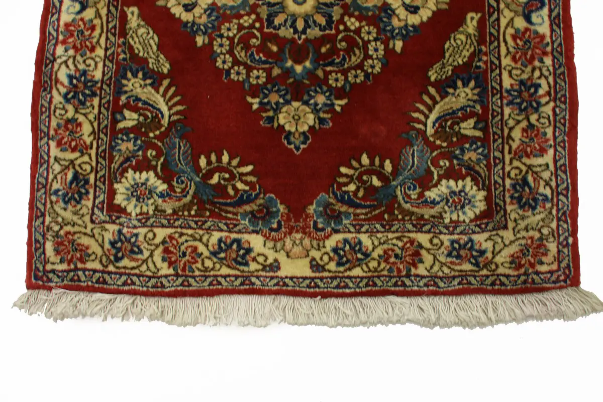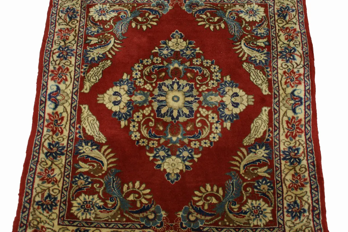 Hand Knotted vintage 2X3 orange-red Persian rug made with vegetable dyes (fine wool pile and cotton foundation), superior knot count, and appealing ancient designs. This Oriental rug/runner never will go out of style and would be among your most valuable treasures.