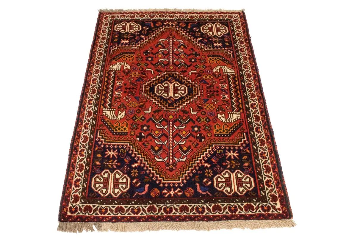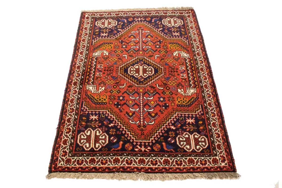 Orange-red Tribal 3'5X5 Shiraz Persian Rug