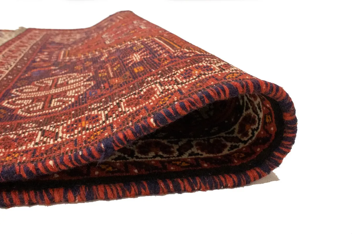 This authentic 3'5X5 orange-red vintage Persian rug was finely knotted by the hands of weavers influenced by a variety of amazing artistic designs, to recreate the aged look of the exceptional piece with a richness of color and embellished background field. What set this tribal Oriental area rug from the others are the material and dye used (wool pile and cotton foundation), knot count, antique designs, fantastic grades, and its regional historical connection: it has deep roots, from the story of the people who produced it to the meaning of the symbols and colors displayed across its canvas that have been praised for centuries. This home décor carpet will be completely cozy and inviting that never will go out of style! Also, this Oriental rug would be among your most valuable treasures, it is a great investment that increase in value over time, and it will last a lifetime because was woven with high-quality, all-natural wool; it won’t rip, tear, or shed. Eco-friendly, opulent yet affordable; this Persian rug will give you an extra pop of character to help define your home environment with luxury and warmth that will capture the eyes and attention of your audience (homeowners, designers, decorators, family and friends). RT-2317