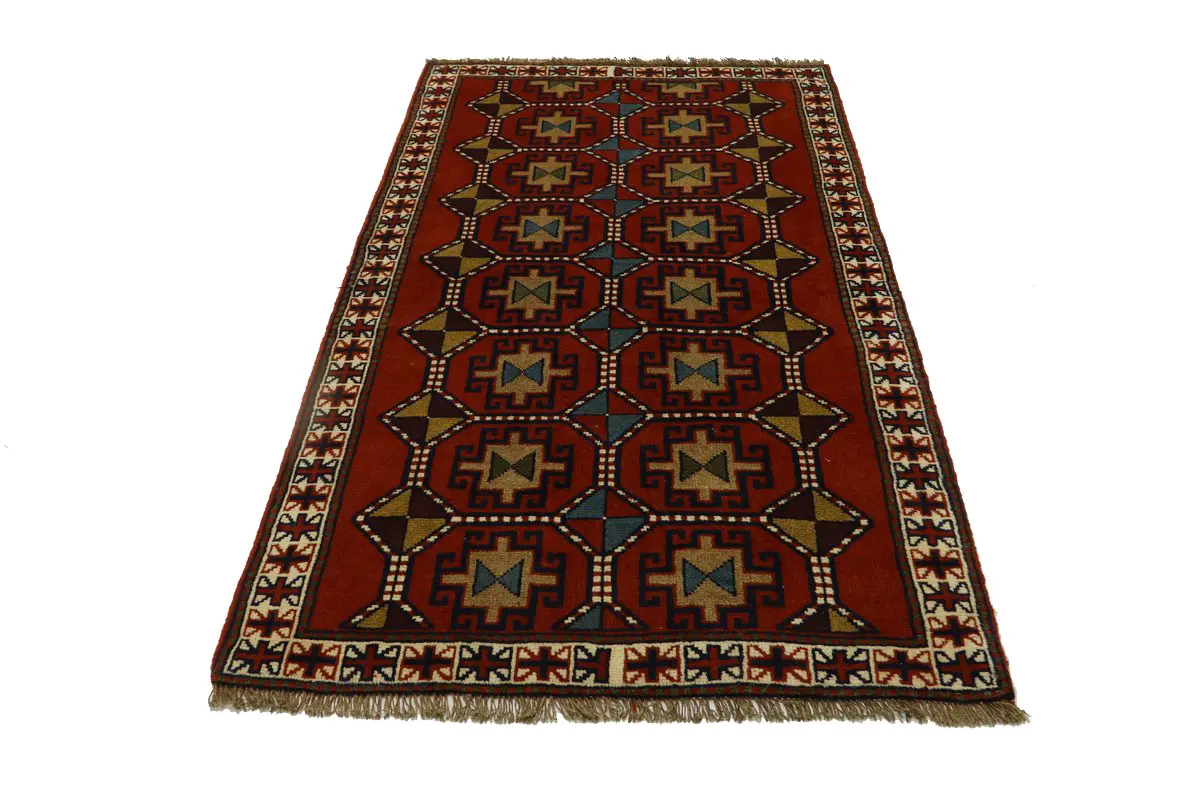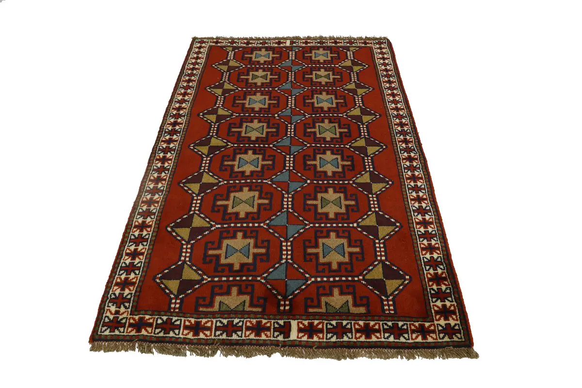 Orange-red Tribal 4X7 Ghoochan Persian Rug