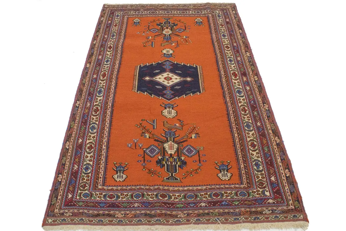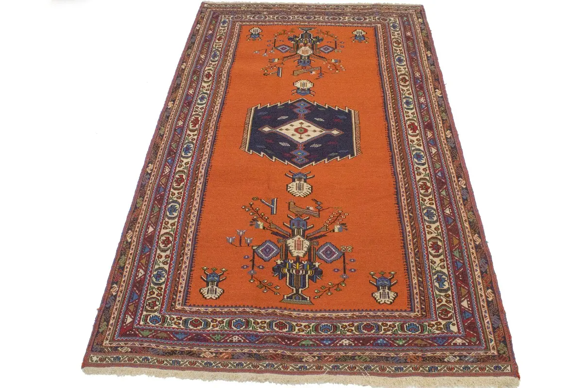 Hand Knotted 4X7 orange Persian rug made with vegetable dyes (fine wool pile and cotton foundation), exceptional knot count, and appealing ancient designs. This Oriental rug never will go out of style and would be among your most valuable treasures.