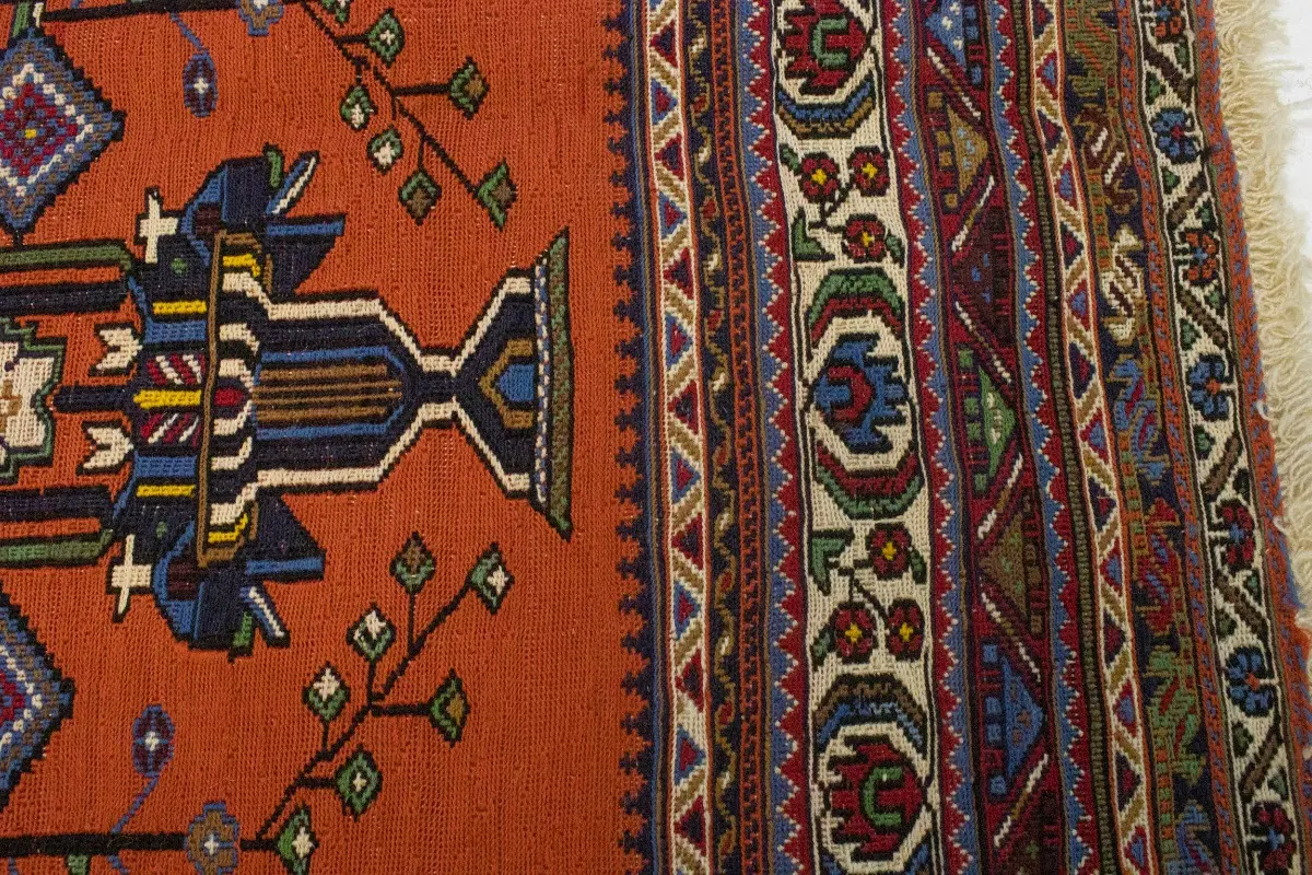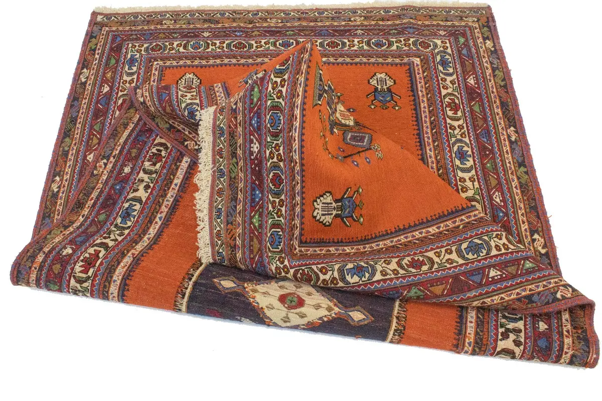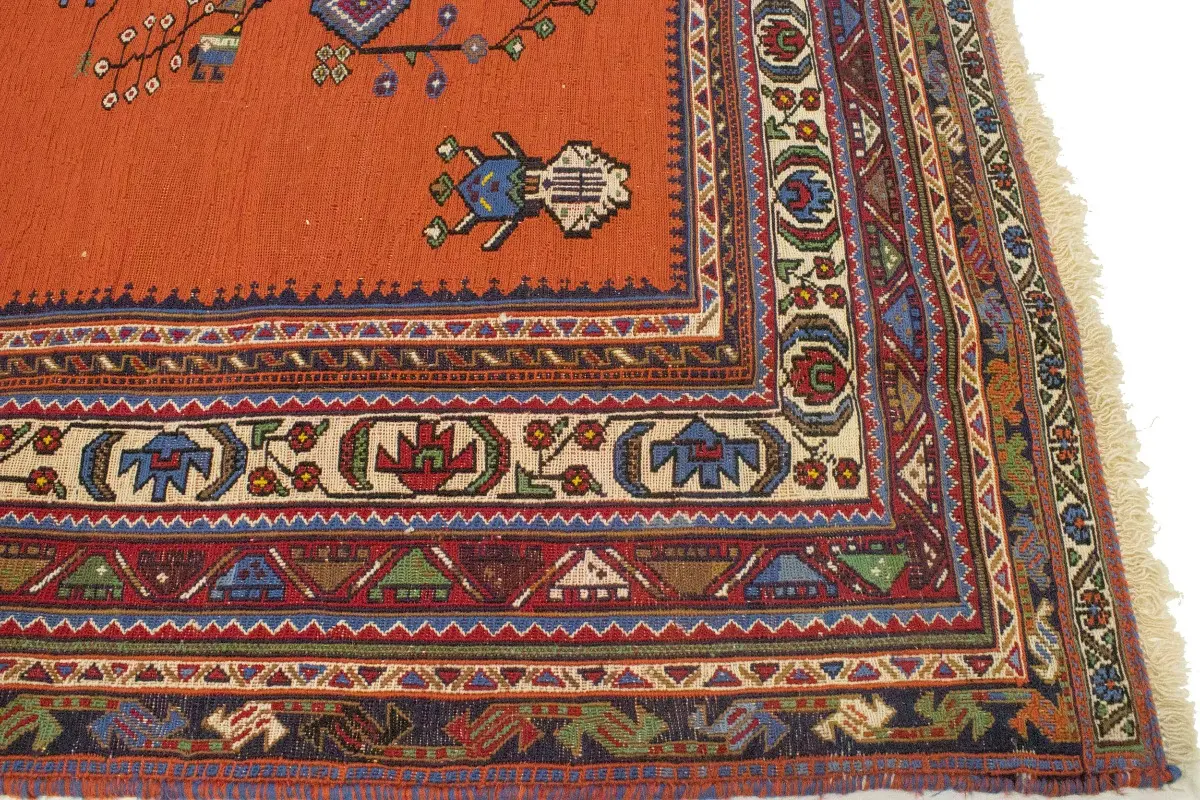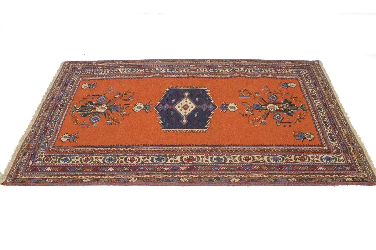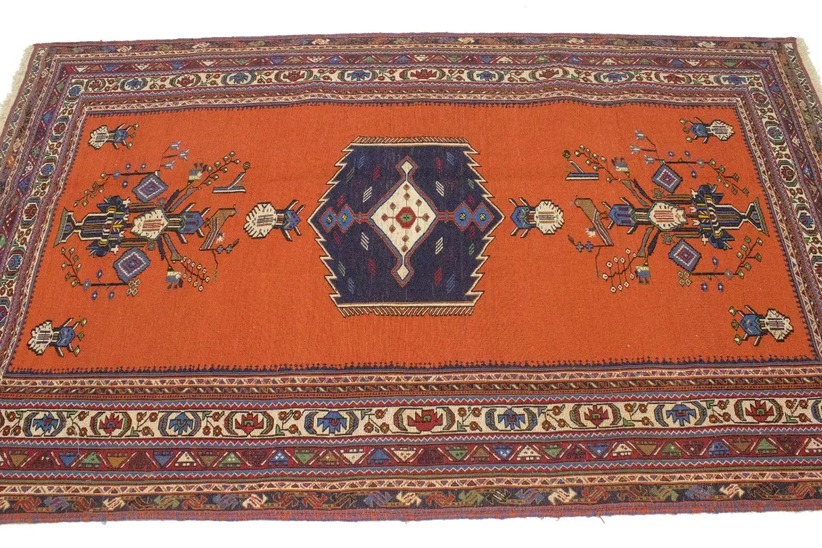 This original 4X7 orange vintage Persian rug was well-constructed by the hands of master weavers motivated by a variety of stunning artistic designs, to recreate the aged look of the exceptional piece with a richness of color and developed decorative background field. What set this tribal Oriental area rug from the others are the material and dye used (wool pile and cotton foundation), knot count, ancient designs, fantastic grades, and its regional historical connection: it has deep roots, from the story of the people who produced it to the meaning of the symbols and colors displayed across its canvas that have been praised for centuries. This home décor carpet will be completely cozy and inviting that never will go out of style! Also, this Oriental rug would be among your most valuable treasures, it is a great investment that increase in value over time, and it will last a lifetime because was woven with high-quality, all-natural wool; it won’t rip, tear, or shed. Eco-friendly, opulent yet affordable; this Persian rug will give you an extra pop of character to help define your home environment with elegance and warmth that will capture the eyes and attention of your audience (homeowners, designers, decorators, family and friends). RT-1849
