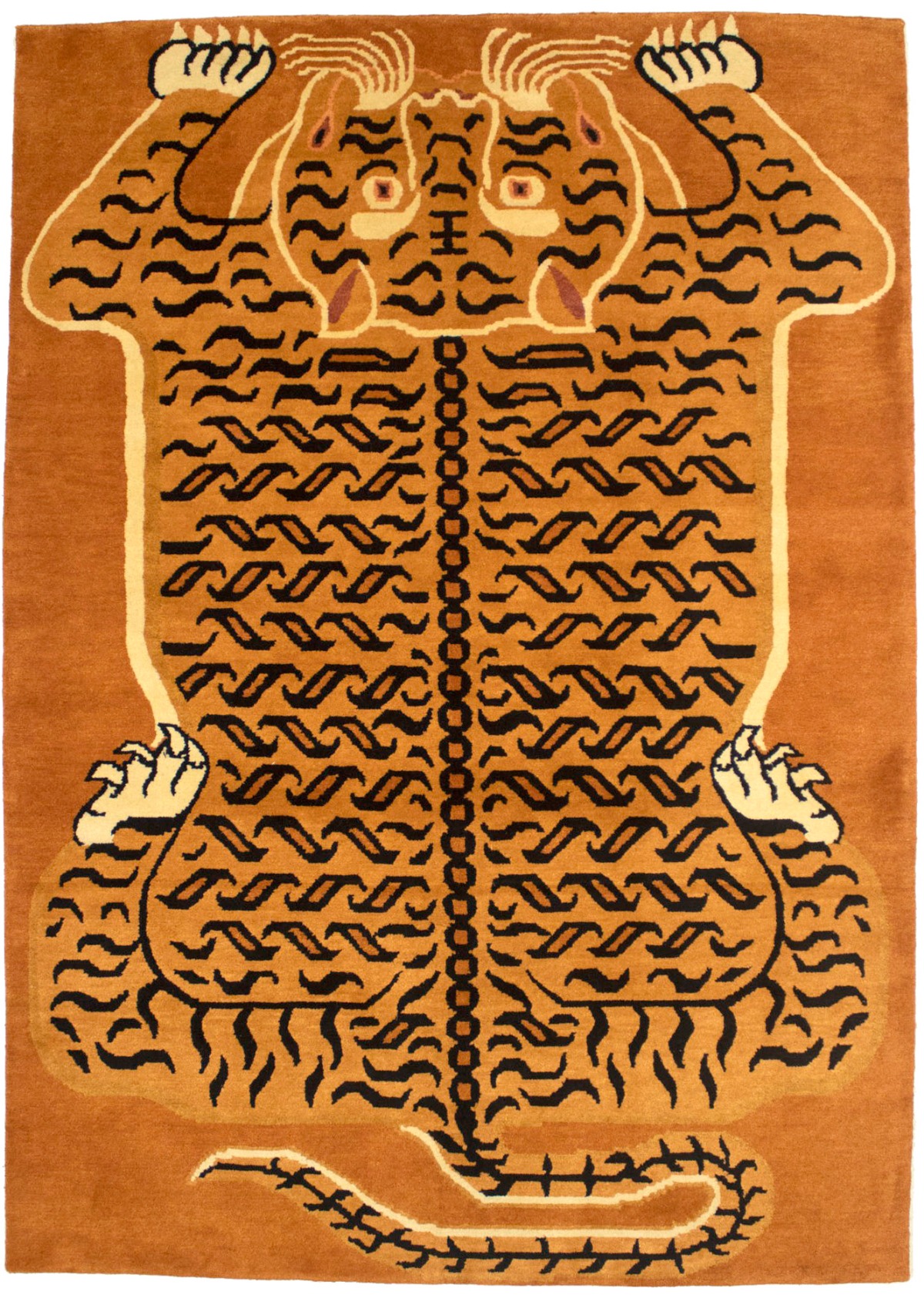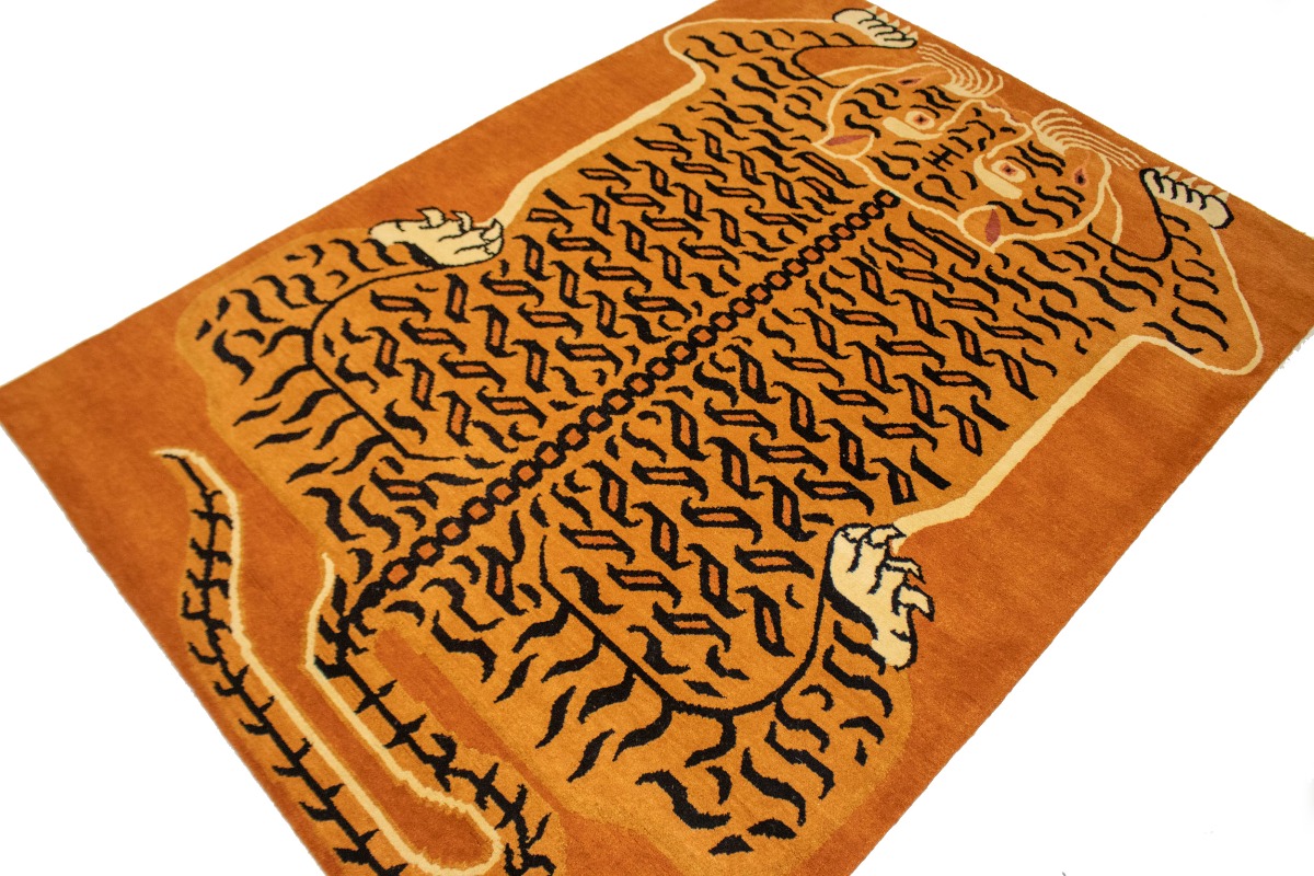 Tiger Orange Tribal 5X7 Fine Nepali Oriental Rug