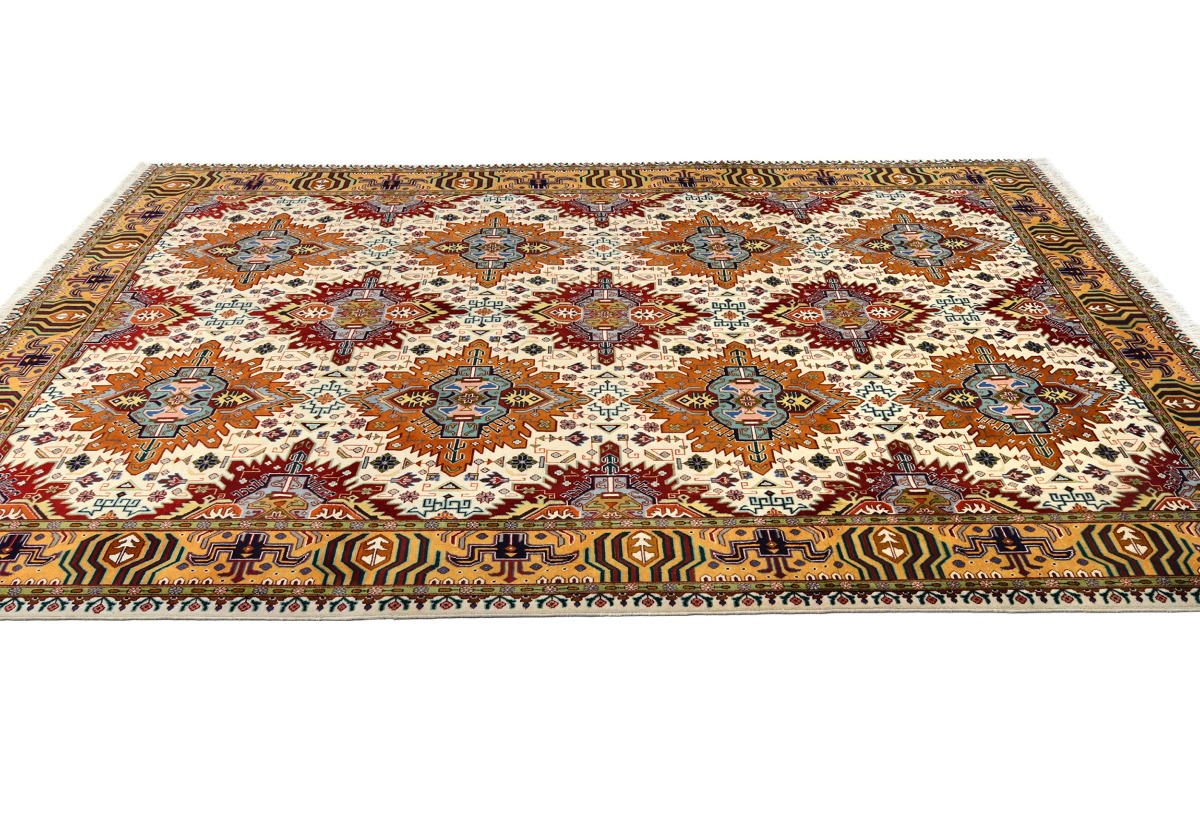 Handmade vintage 7x10 Cream Persian rug/runner made with vegetable dyes (fine wool pile and cotton foundation), superior knot count, and alluring ancient designs. This Oriental rug/runner never will go out of style and would be among your most valuable treasures.