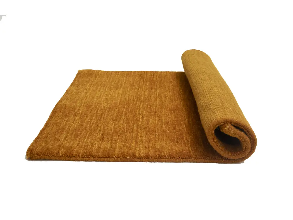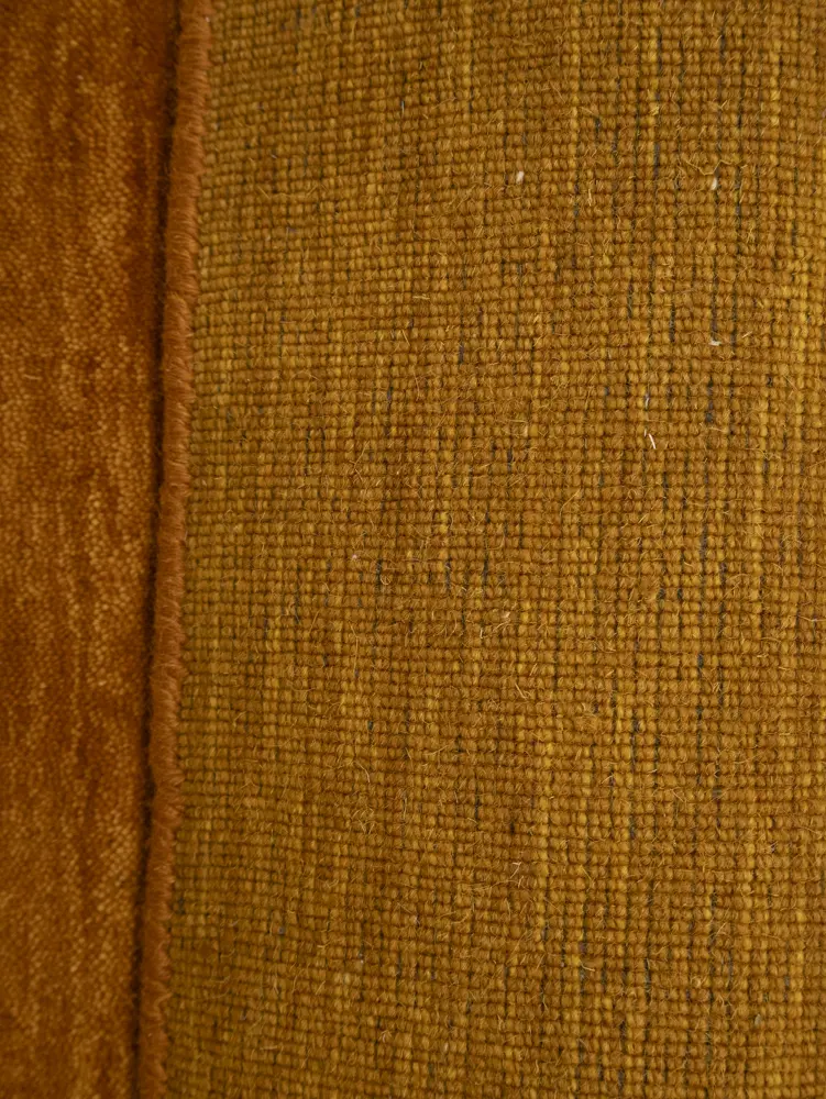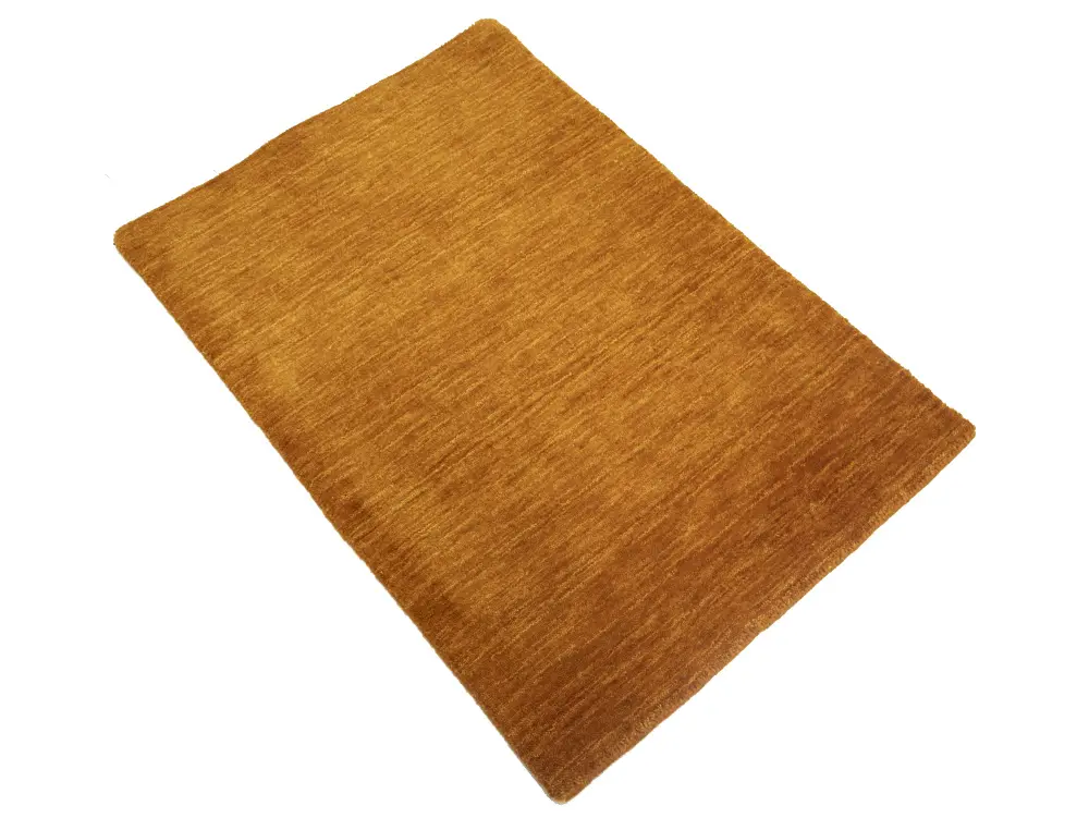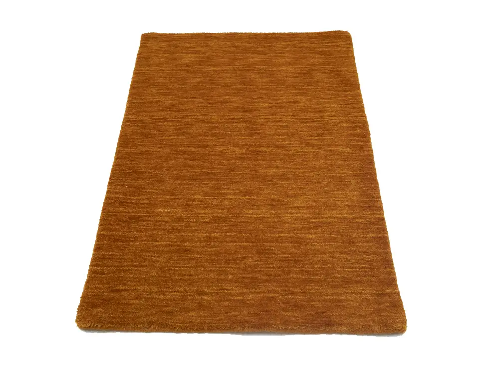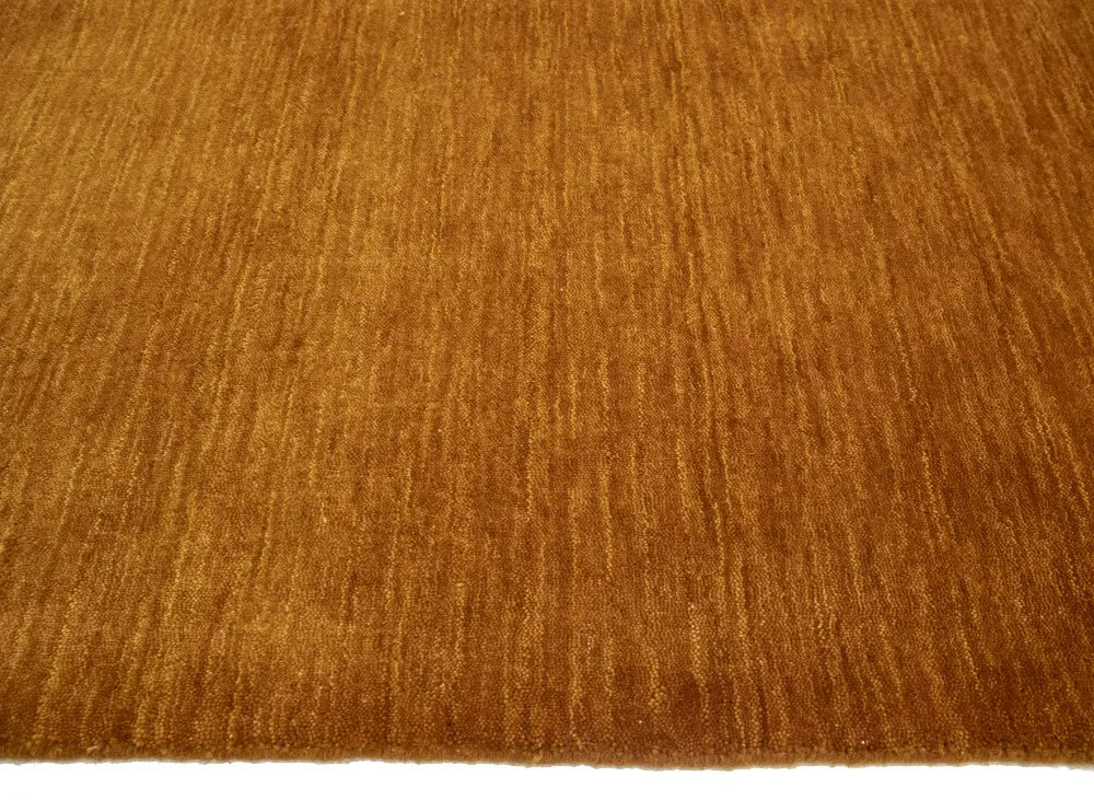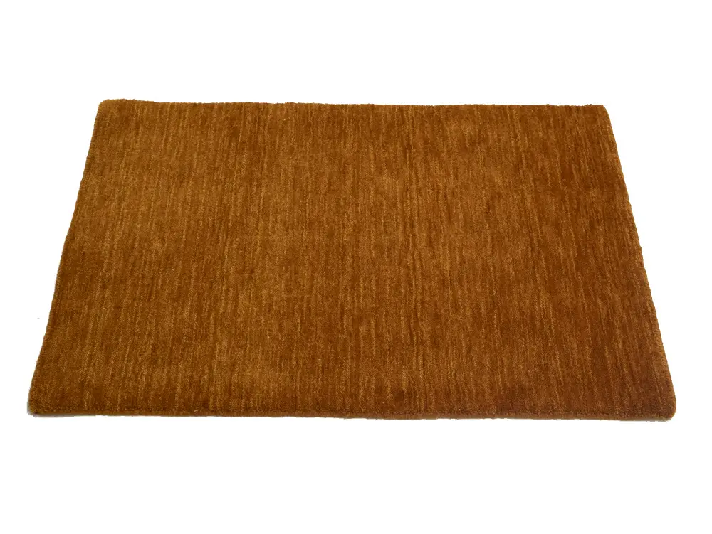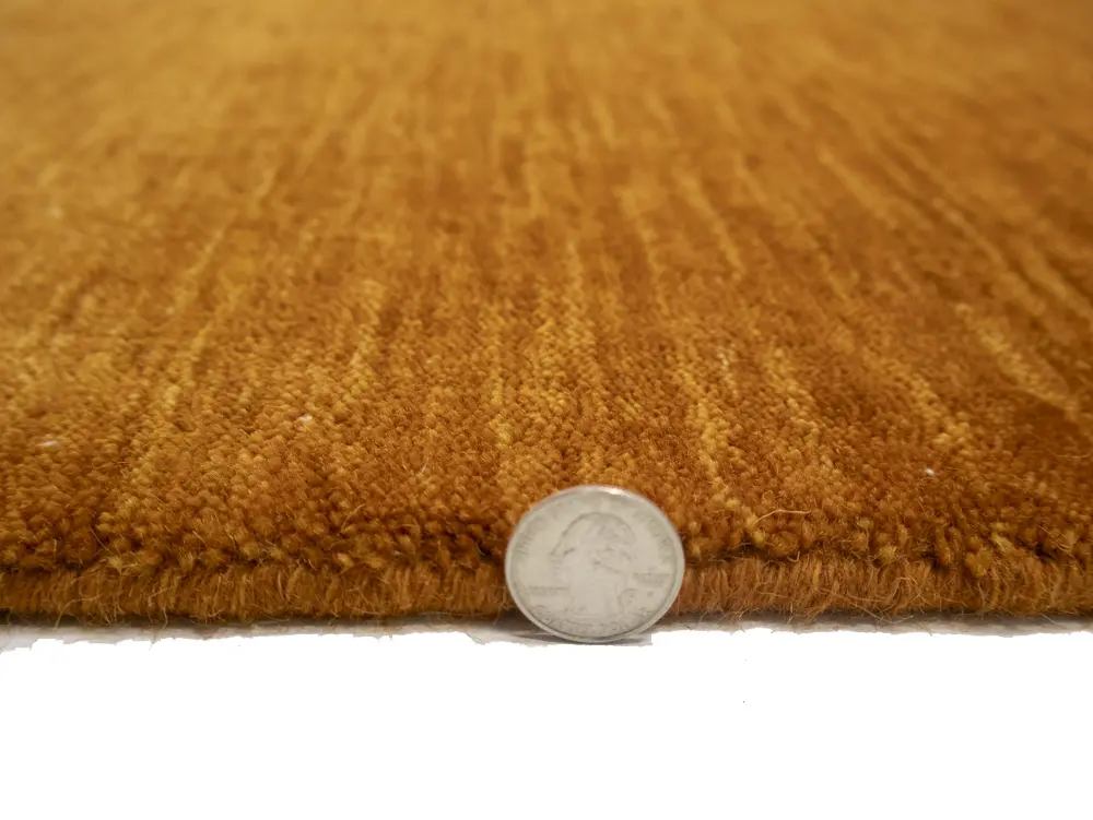 This hand-loomed 2X3 Orange Oriental rug from India features a modern, Solid design that seamlessly integrates traditional craftsmanship with contemporary style, showcasing a striking Orange primary color. It provides a luxuriant softness and durability underfoot, as it is constructed from premium wool with a cotton foundation. The rug is optimized for high-traffic areas due to its medium pile height and knot density of 100 knots per square inch, which ensures durability and comfort. This rug, which is in exceptional condition and was recently manufactured, is an ideal complement to any contemporary setting, providing both versatility and timeless elegance.