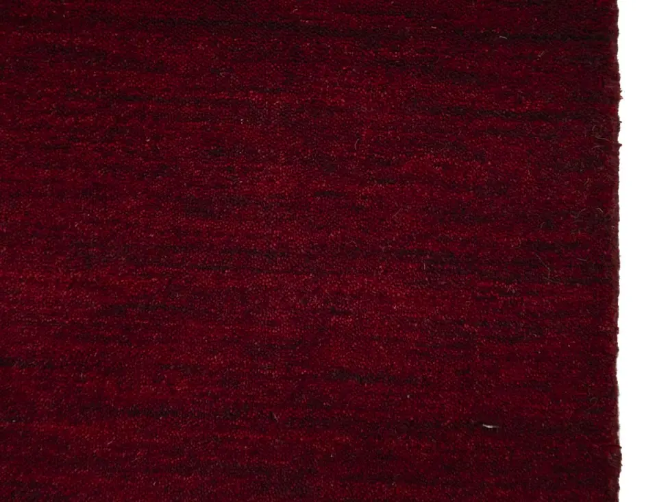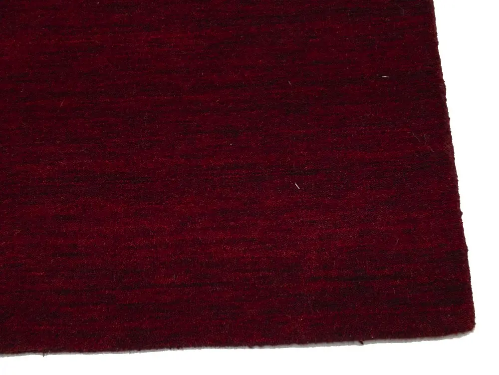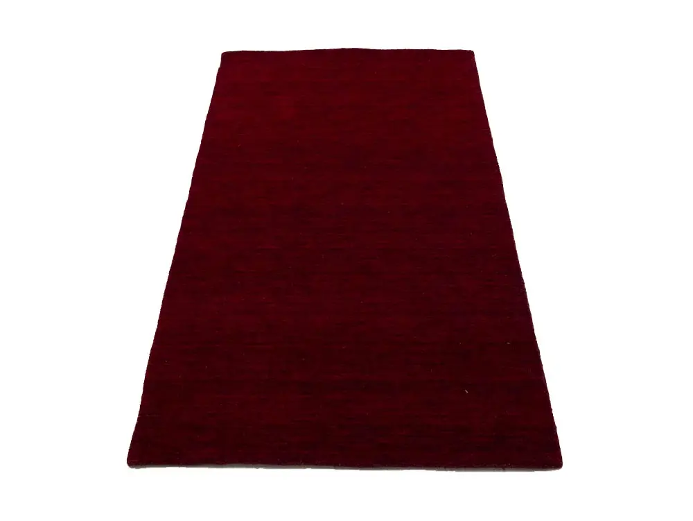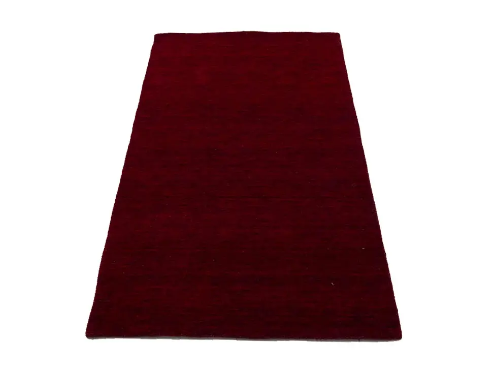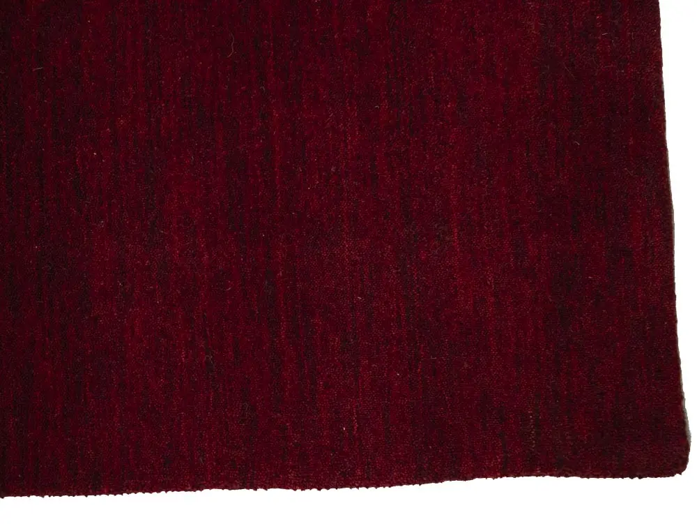 This hand-loomed 3X5 Maroon Red Oriental rug from India features a modern, Solid design that seamlessly integrates traditional craftsmanship with contemporary style, showcasing a striking Maroon Red primary color. It provides a luxuriant softness and durability underfoot, as it is constructed from premium wool with a cotton foundation. The rug is optimized for high-traffic areas due to its medium pile height and knot density of 100 knots per square inch, which ensures durability and comfort. This rug, which is in exceptional condition and was recently manufactured, is an ideal complement to any contemporary setting, providing both versatility and timeless elegance.