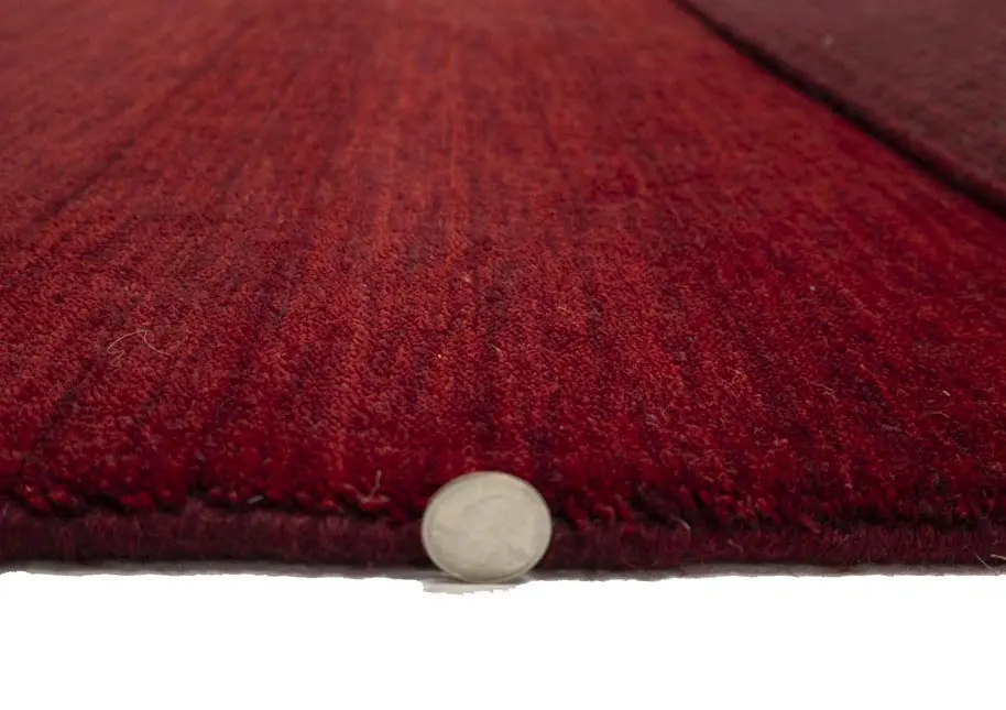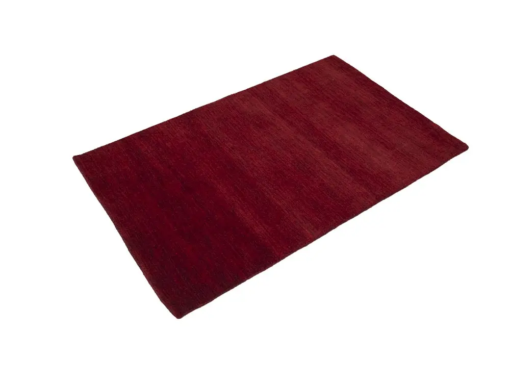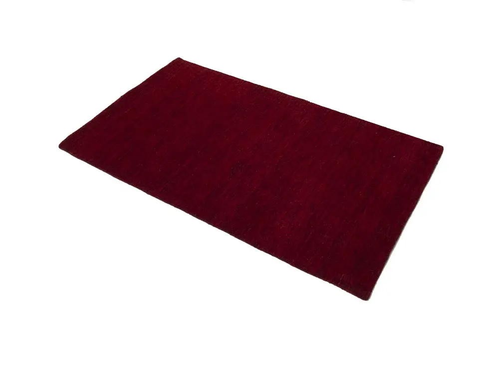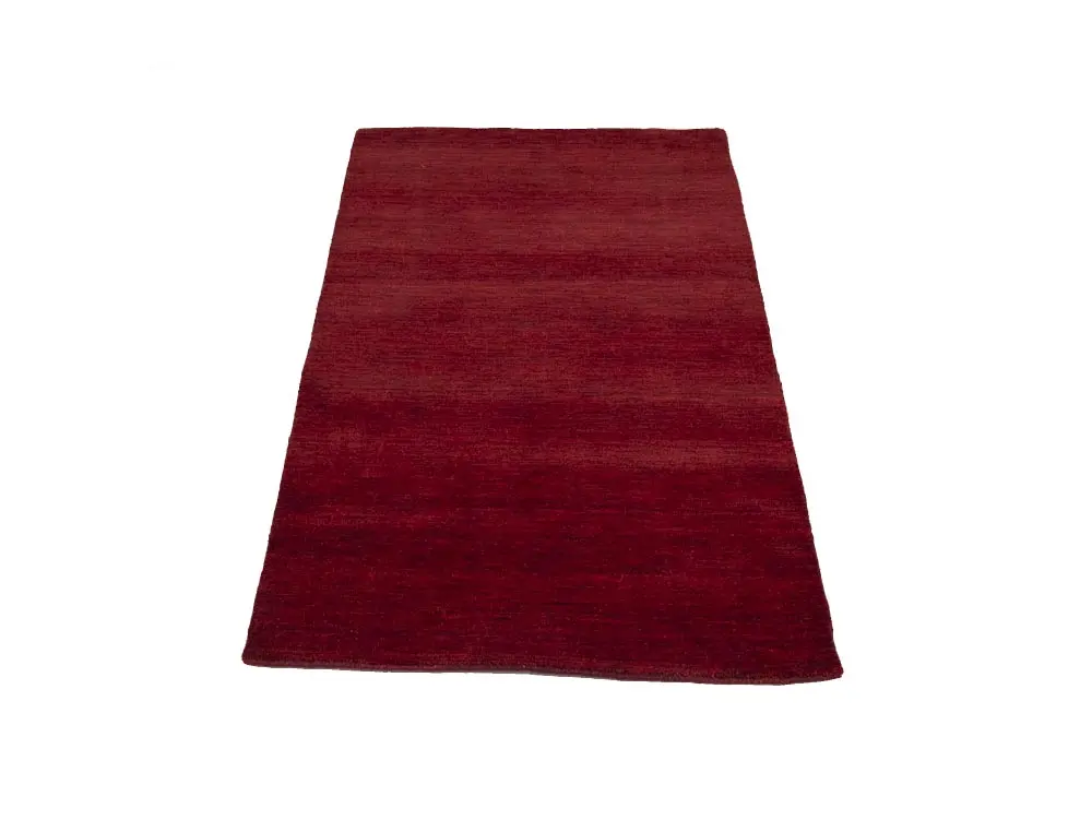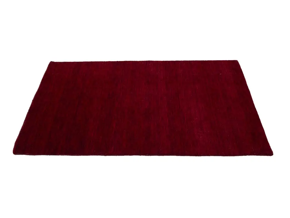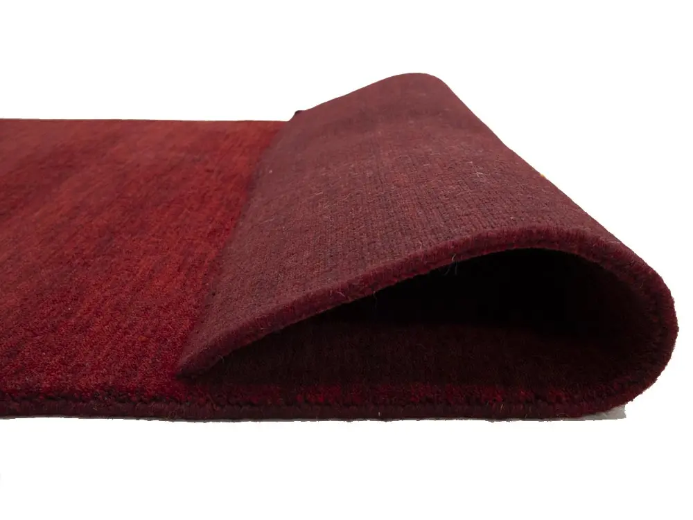 This hand-loomed 3X5 Maroon Red Oriental rug from India features a modern, Solid design that seamlessly integrates traditional craftsmanship with contemporary style, showcasing a striking Maroon Red primary color. It provides a luxuriant softness and durability underfoot, as it is constructed from premium wool with a cotton foundation. The rug is optimized for high-traffic areas due to its medium pile height and knot density of 100 knots per square inch, which ensures durability and comfort. This rug, which is in exceptional condition and was recently manufactured, is an ideal complement to any contemporary setting, providing both versatility and timeless elegance.