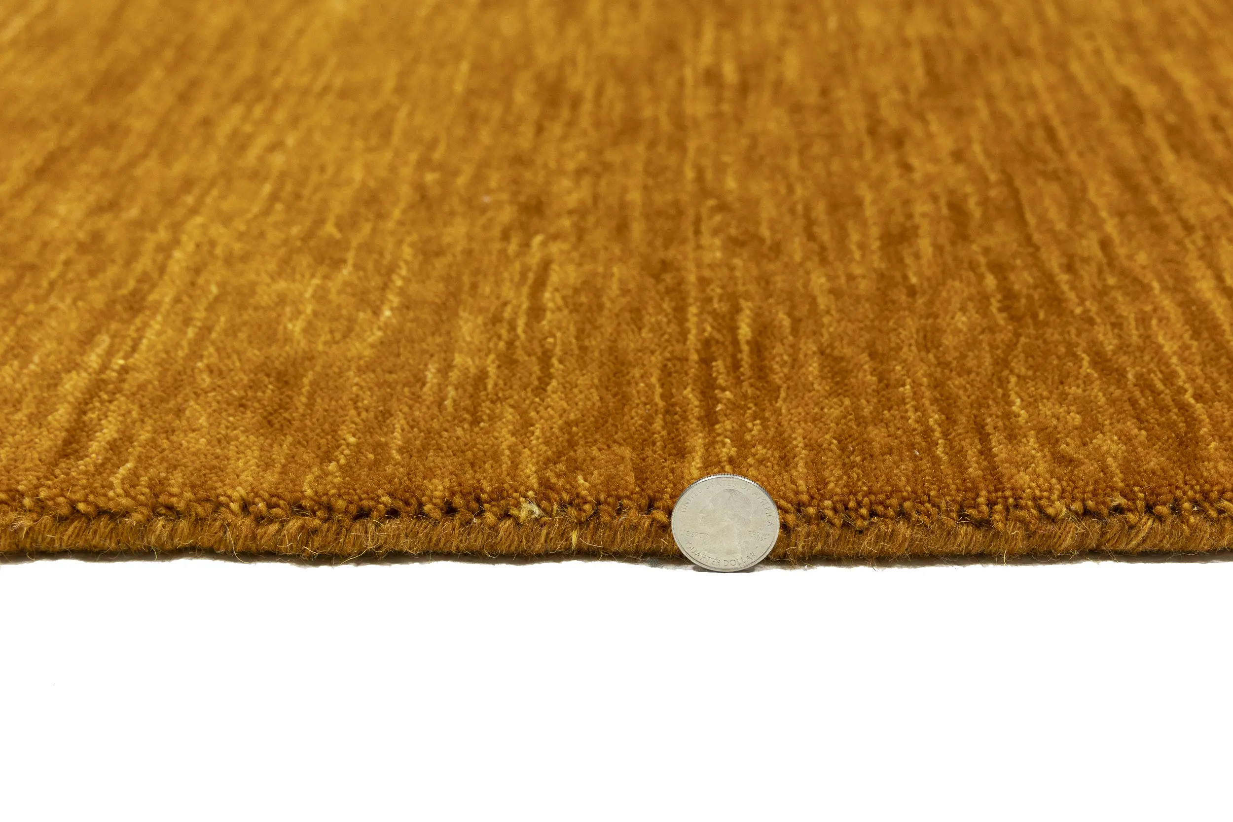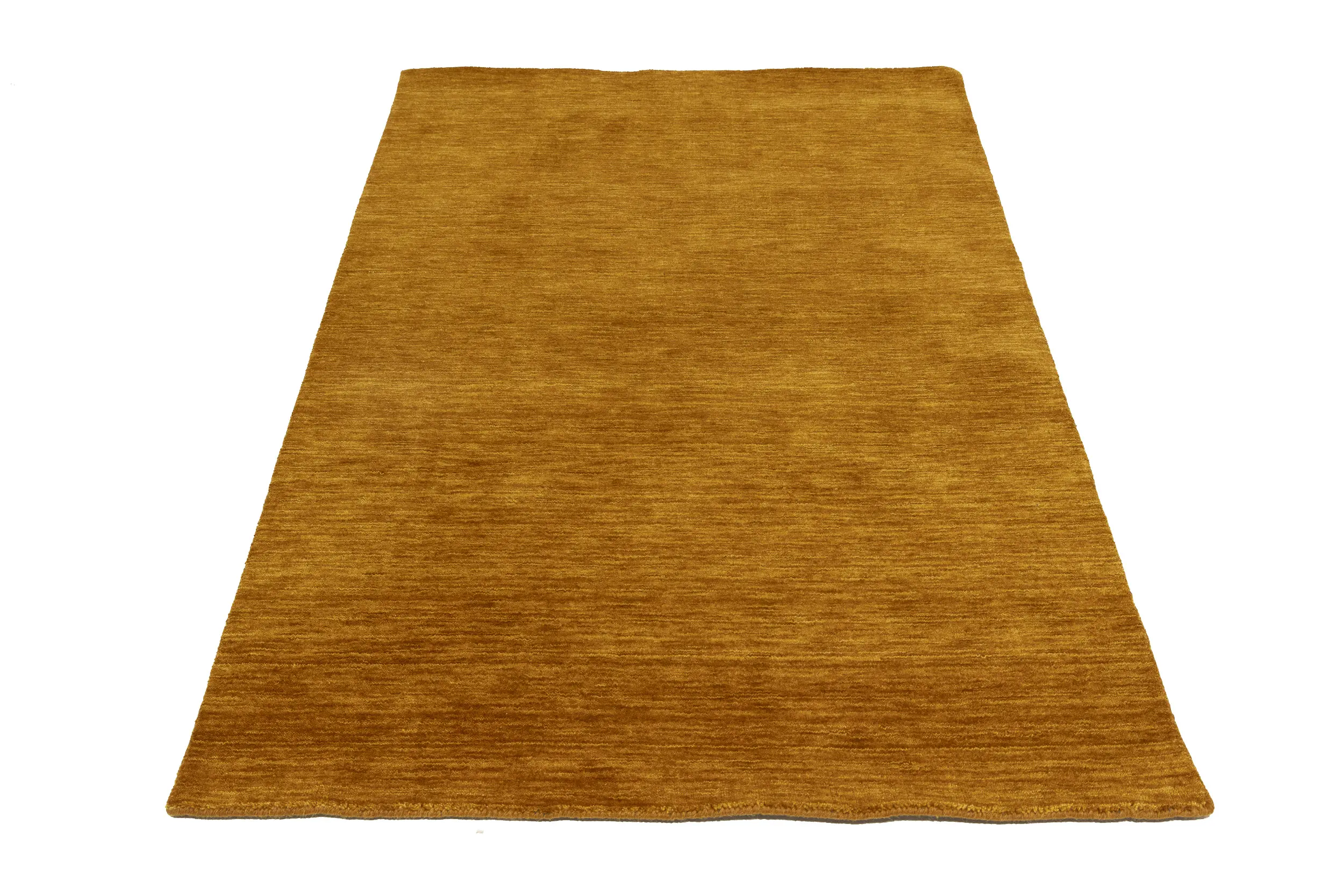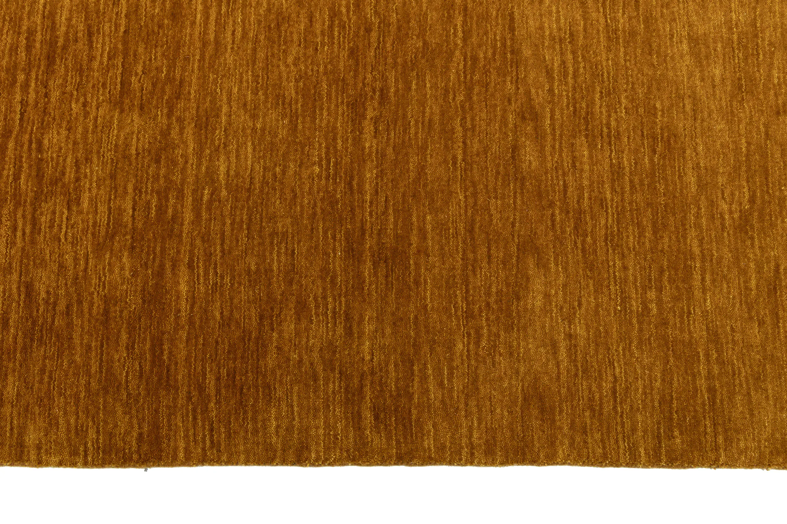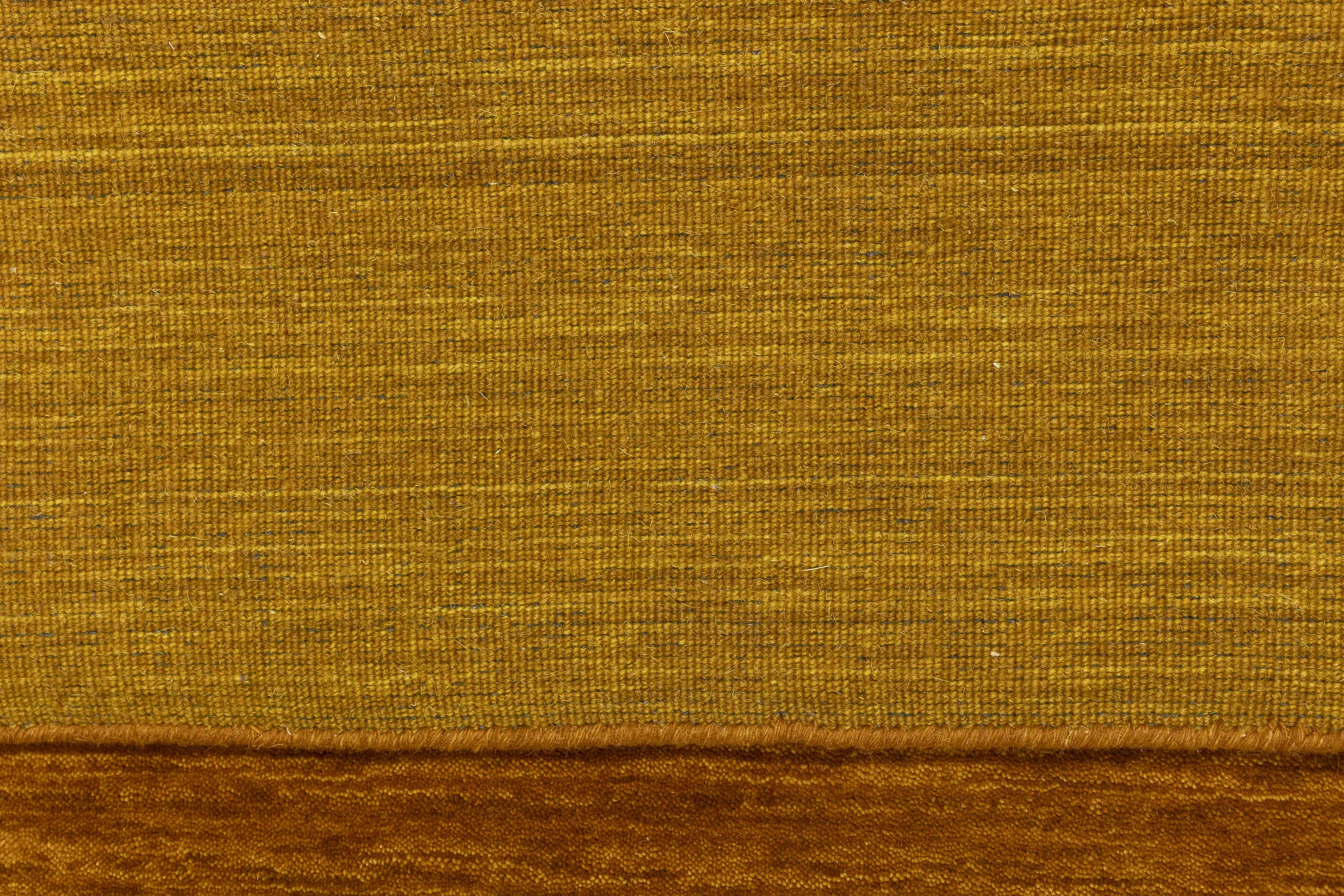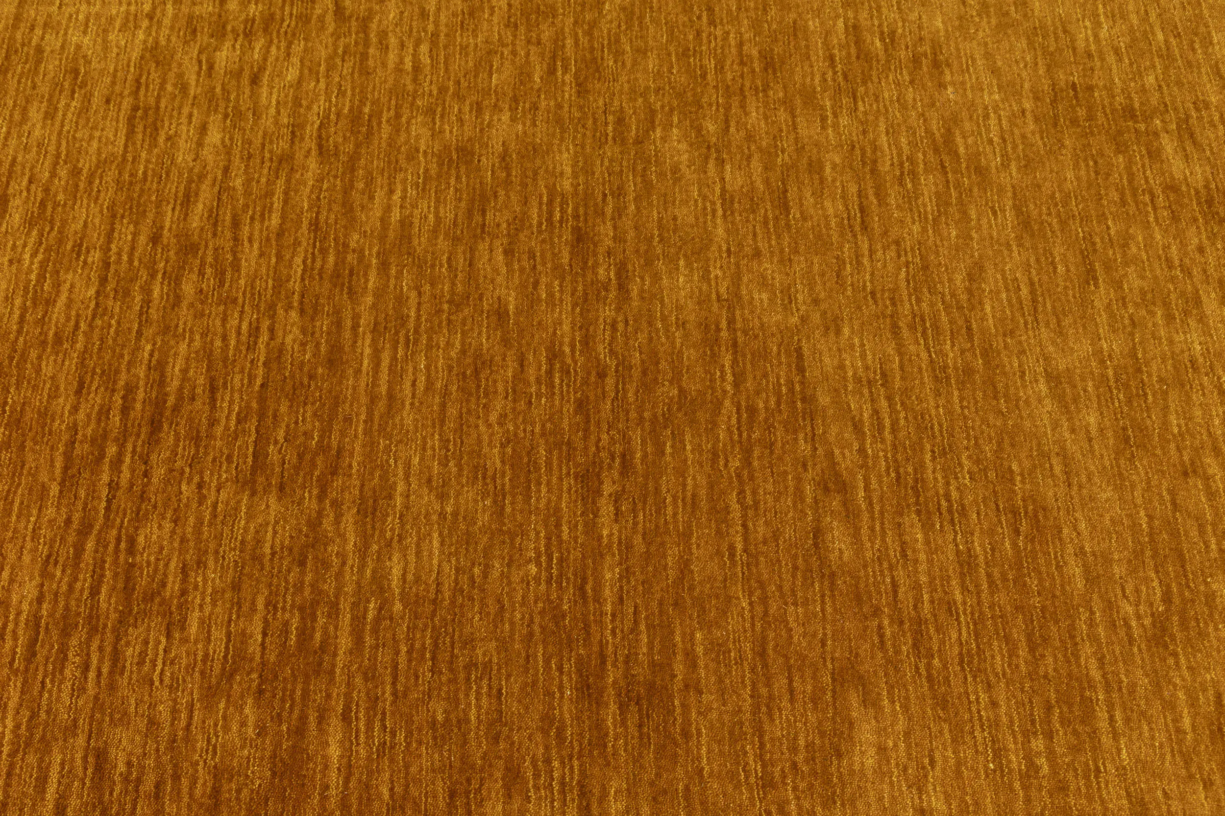 This hand-loomed 4X6 Orange Oriental rug from India features a modern, Solid design that seamlessly integrates traditional craftsmanship with contemporary style, showcasing a striking Orange primary color. It provides a luxuriant softness and durability underfoot, as it is constructed from premium wool with a cotton foundation. The rug is optimized for high-traffic areas due to its medium pile height and knot density of 100 knots per square inch, which ensures durability and comfort. This rug, which is in exceptional condition and was recently manufactured, is an ideal complement to any contemporary setting, providing both versatility and timeless elegance.