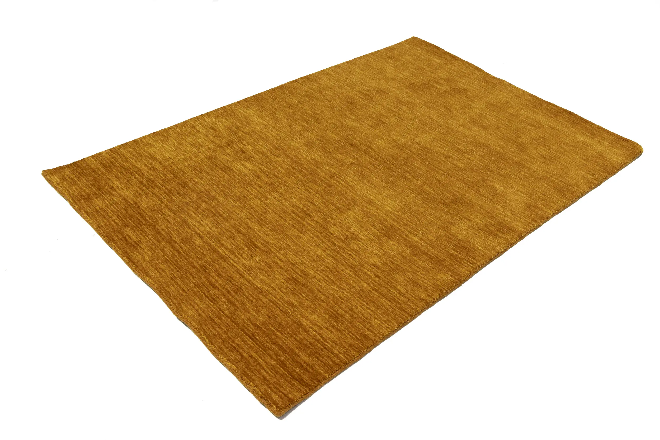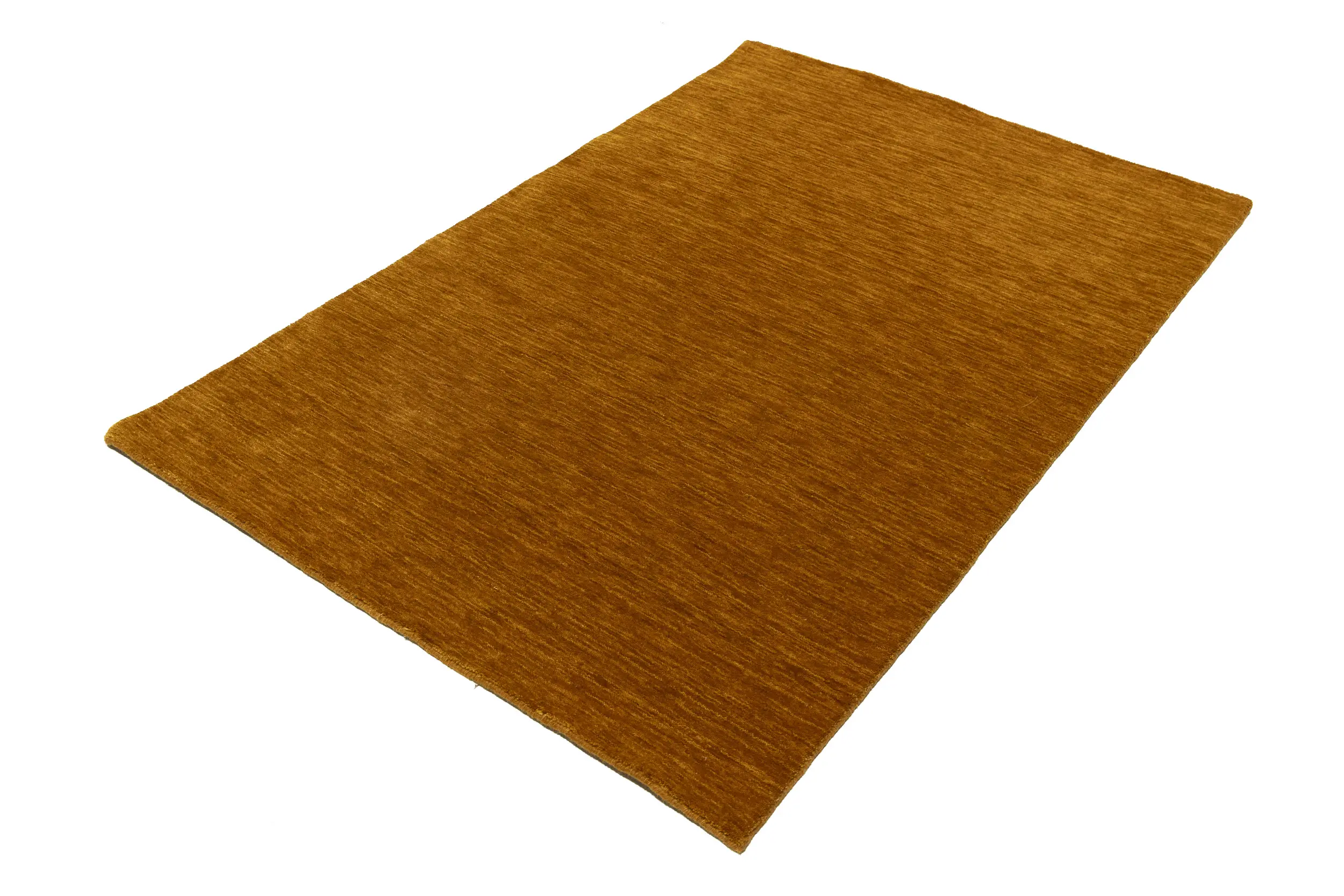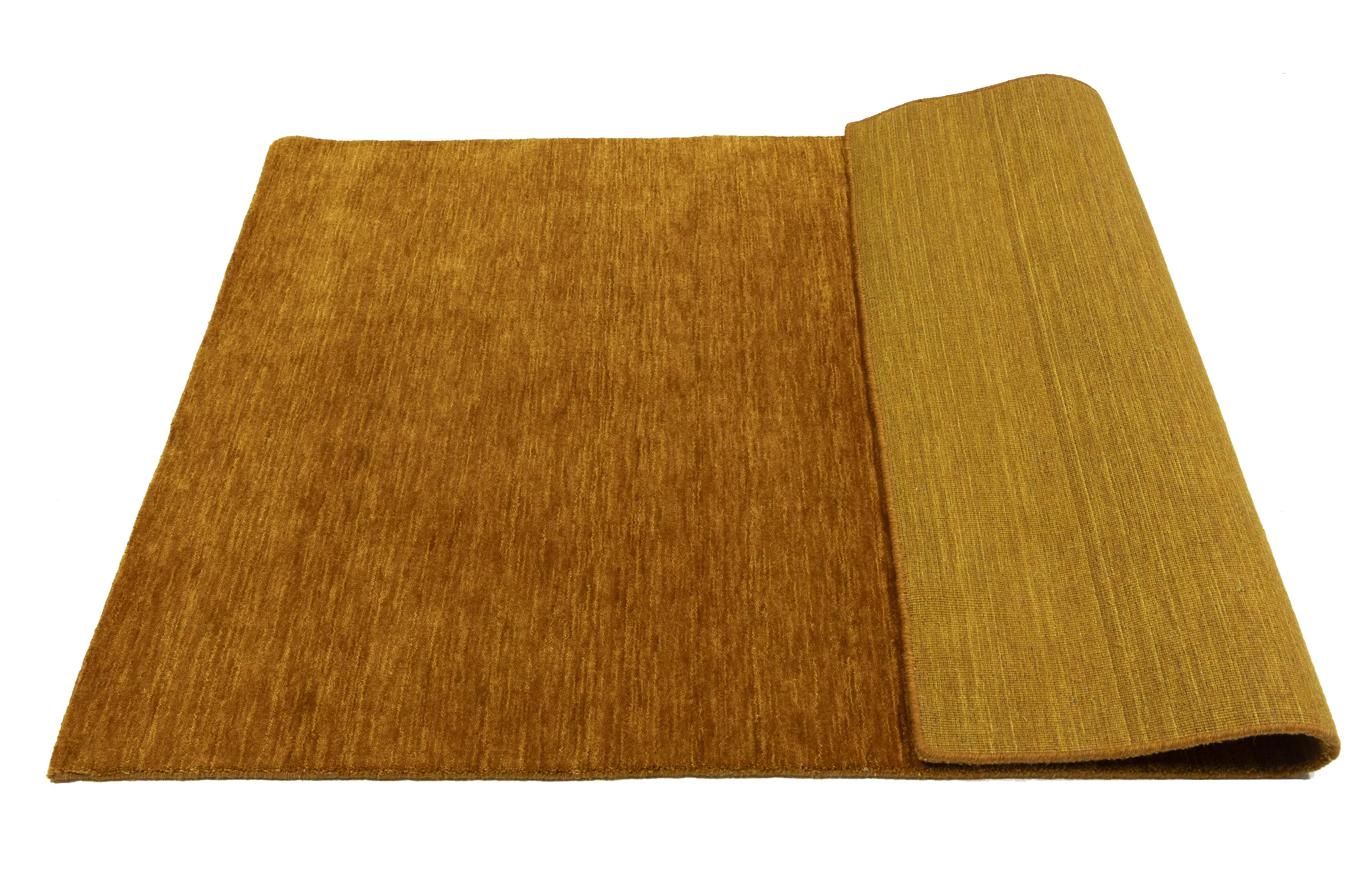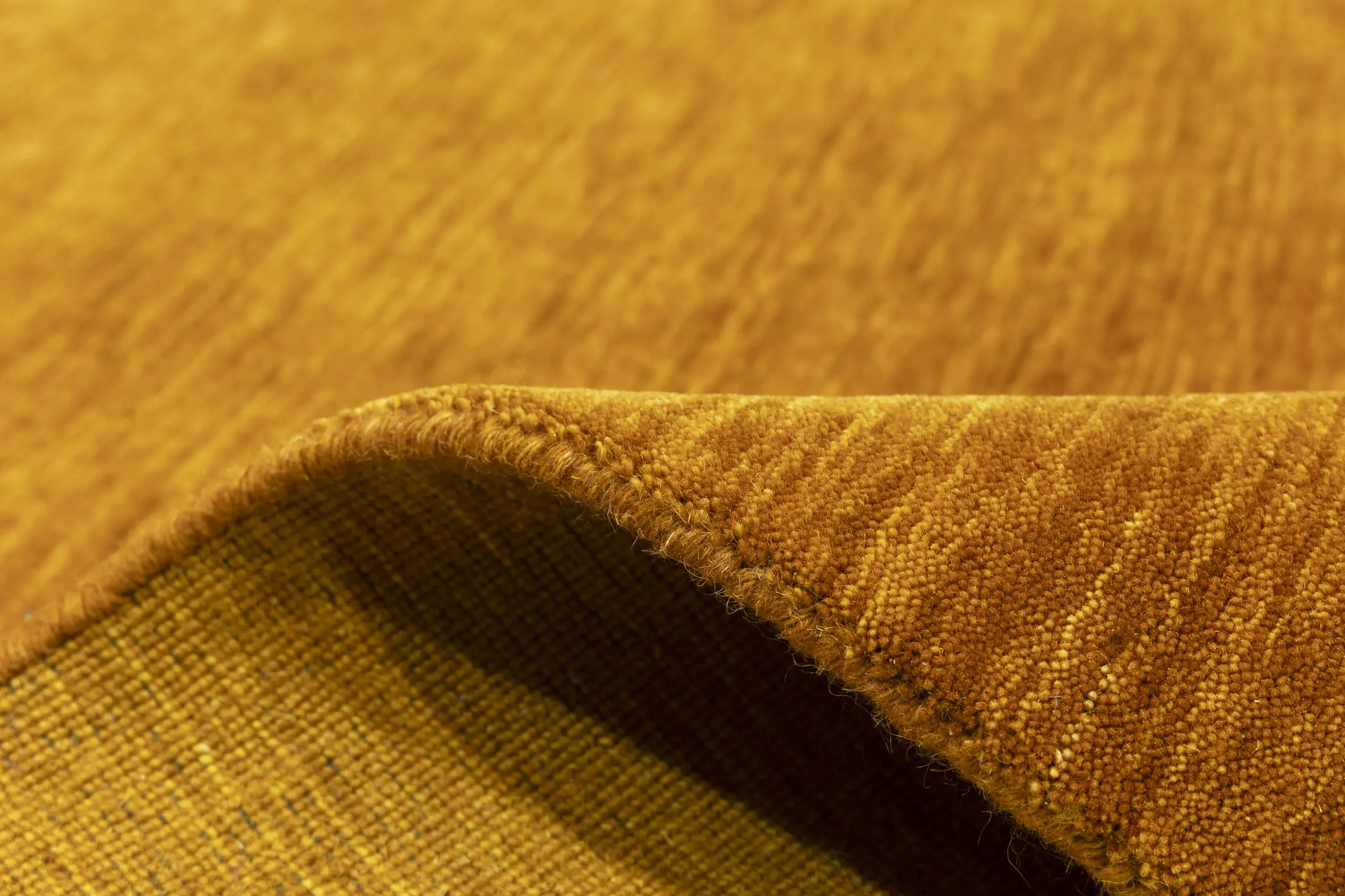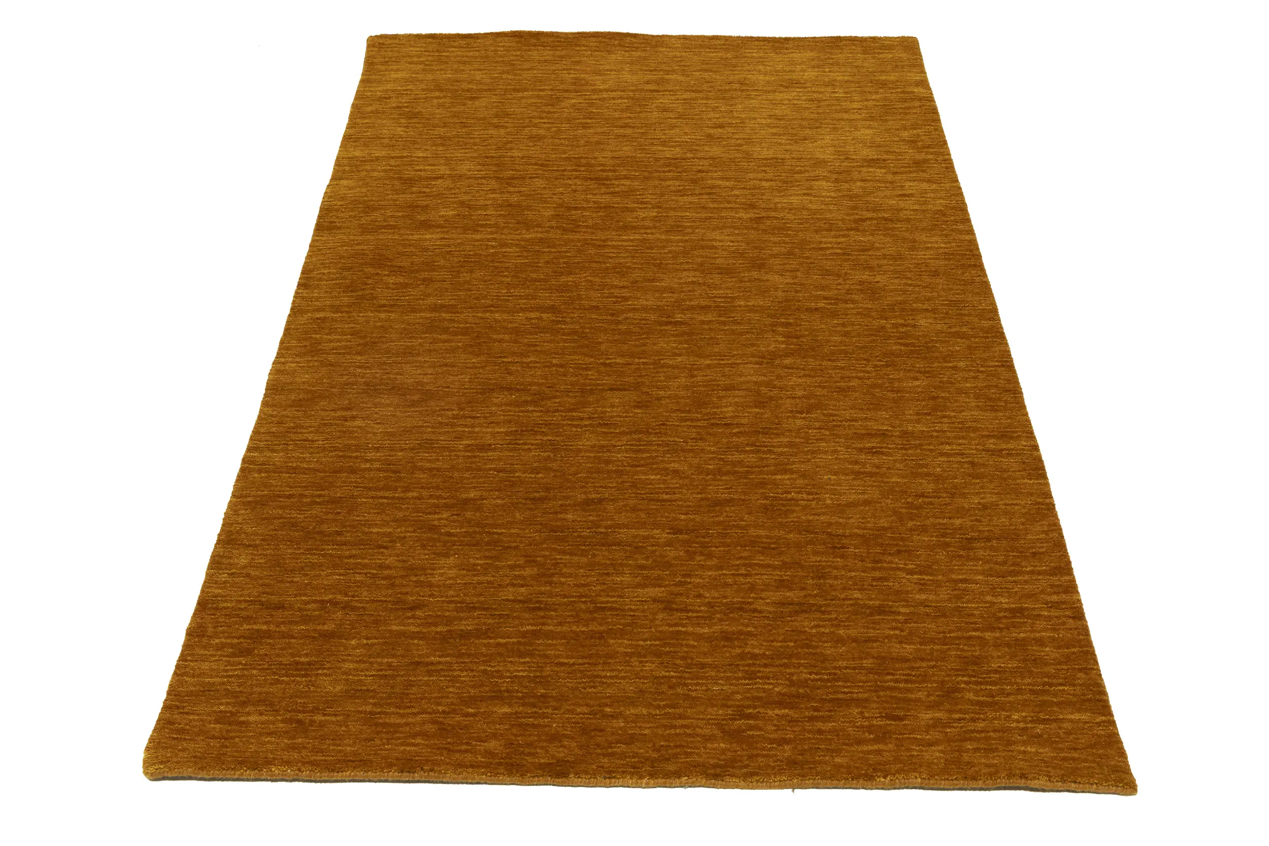 This hand-loomed 4X6 Orange Oriental rug from India features a modern, Solid design that seamlessly integrates traditional craftsmanship with contemporary style, showcasing a striking Orange primary color. It provides a luxuriant softness and durability underfoot, as it is constructed from premium wool with a cotton foundation. The rug is optimized for high-traffic areas due to its medium pile height and knot density of 100 knots per square inch, which ensures durability and comfort. This rug, which is in exceptional condition and was recently manufactured, is an ideal complement to any contemporary setting, providing both versatility and timeless elegance.