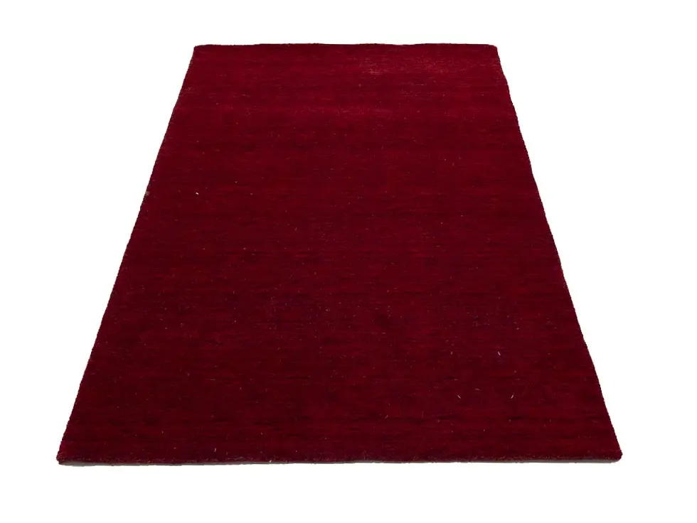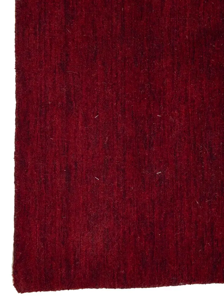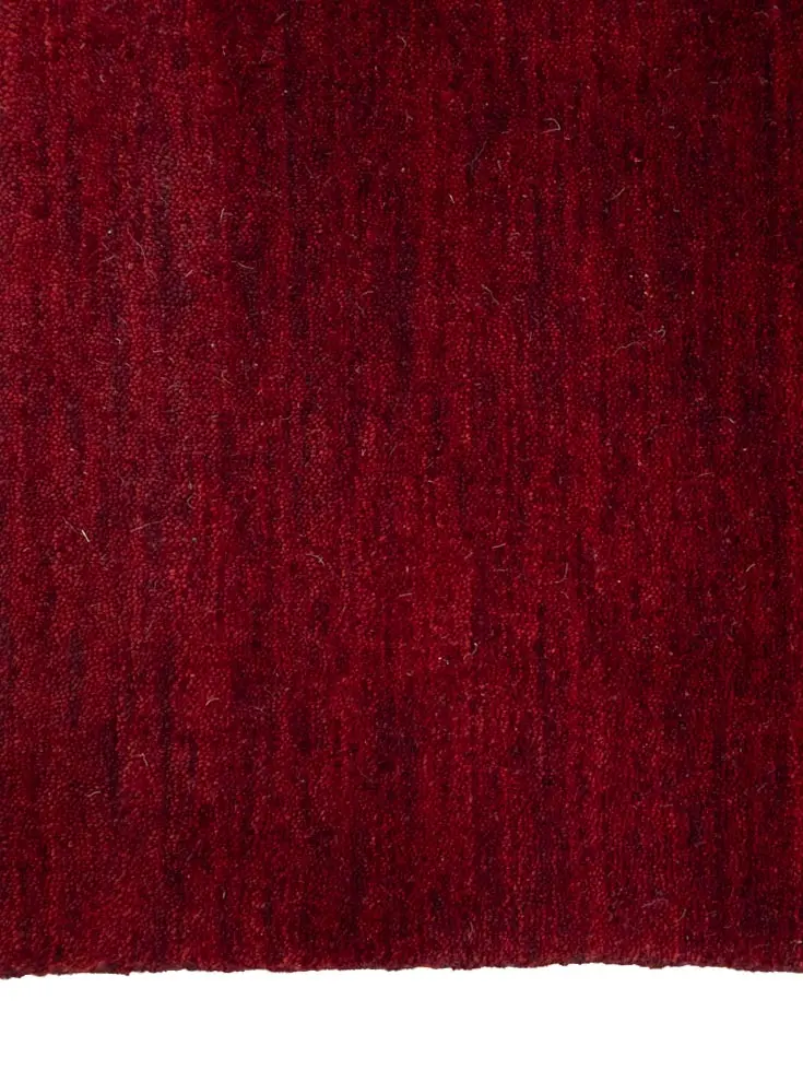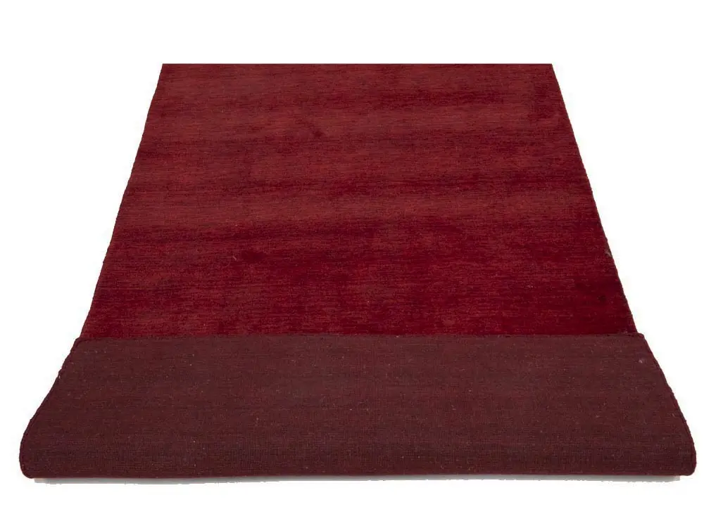 This hand-loomed 4X6 Maroon Red Oriental rug from India features a modern, Solid design that seamlessly integrates traditional craftsmanship with contemporary style, showcasing a striking Maroon Red primary color. It provides a luxuriant softness and durability underfoot, as it is constructed from premium wool with a cotton foundation. The rug is optimized for high-traffic areas due to its medium pile height and knot density of 100 knots per square inch, which ensures durability and comfort. This rug, which is in exceptional condition and was recently manufactured, is an ideal complement to any contemporary setting, providing both versatility and timeless elegance.