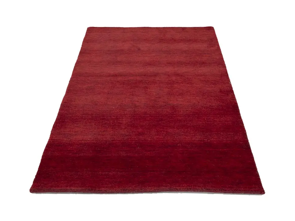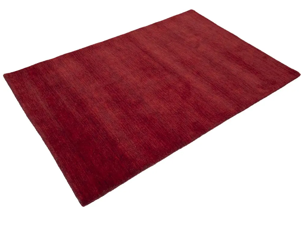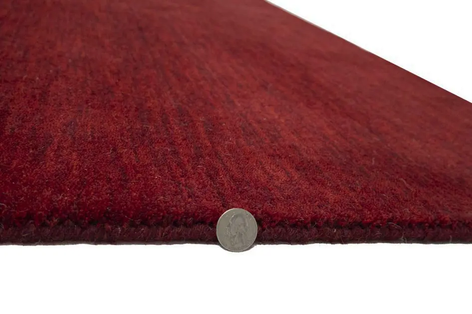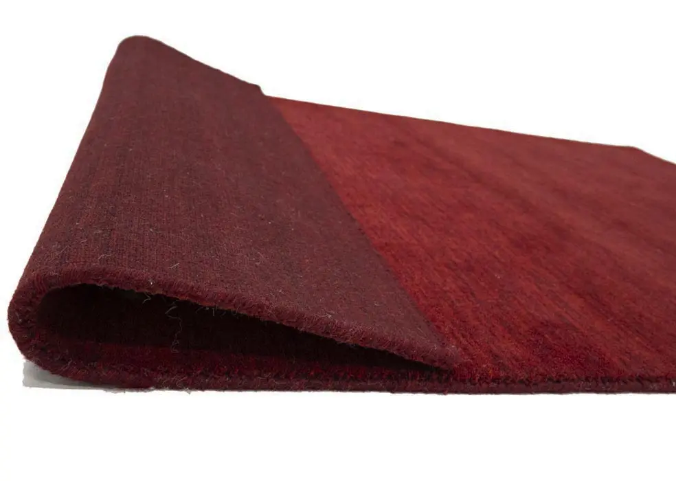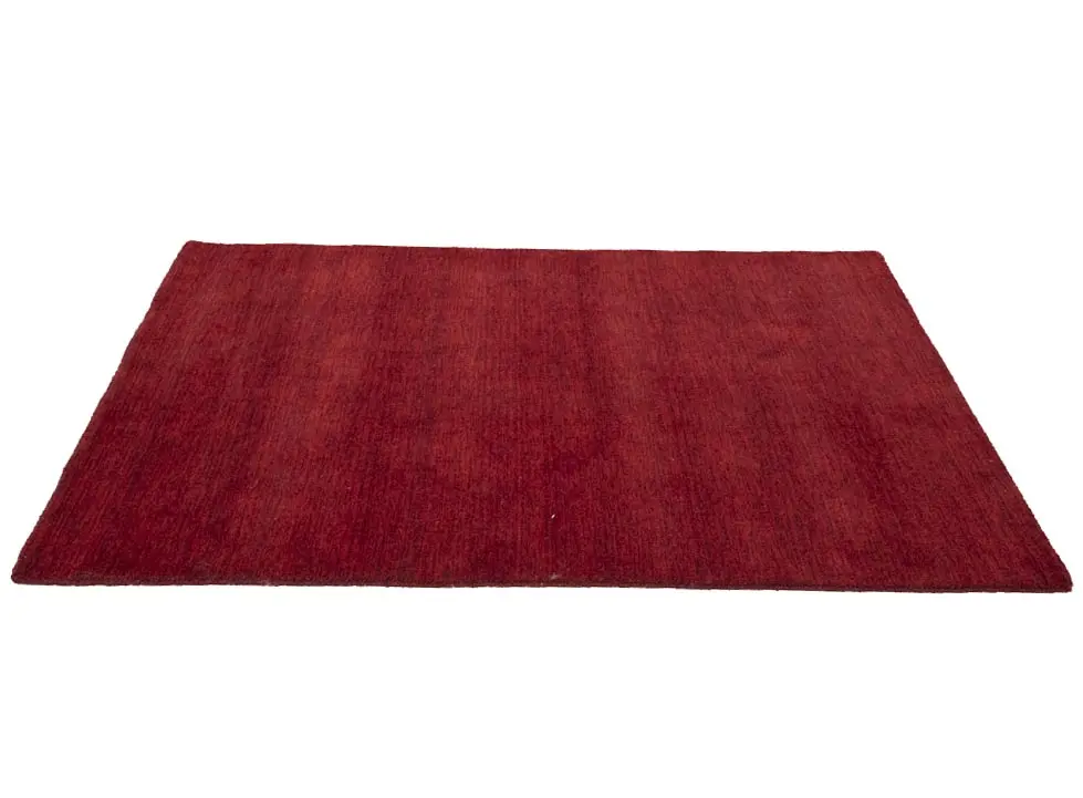 This hand-loomed 4X6 Maroon Red Oriental rug from India features a modern, Solid design that seamlessly integrates traditional craftsmanship with contemporary style, showcasing a striking Maroon Red primary color. It provides a luxuriant softness and durability underfoot, as it is constructed from premium wool with a cotton foundation. The rug is optimized for high-traffic areas due to its medium pile height and knot density of 100 knots per square inch, which ensures durability and comfort. This rug, which is in exceptional condition and was recently manufactured, is an ideal complement to any contemporary setting, providing both versatility and timeless elegance.
