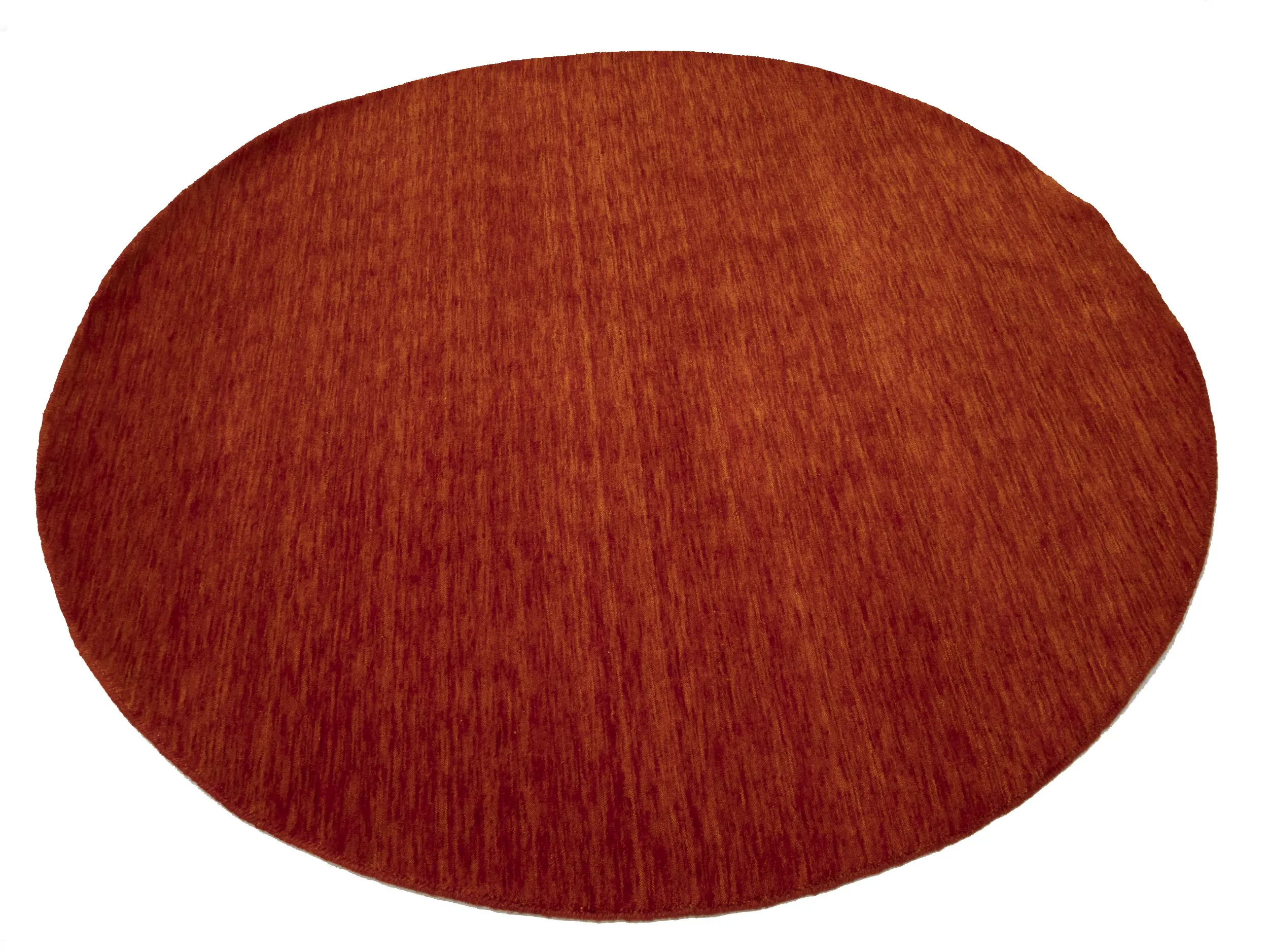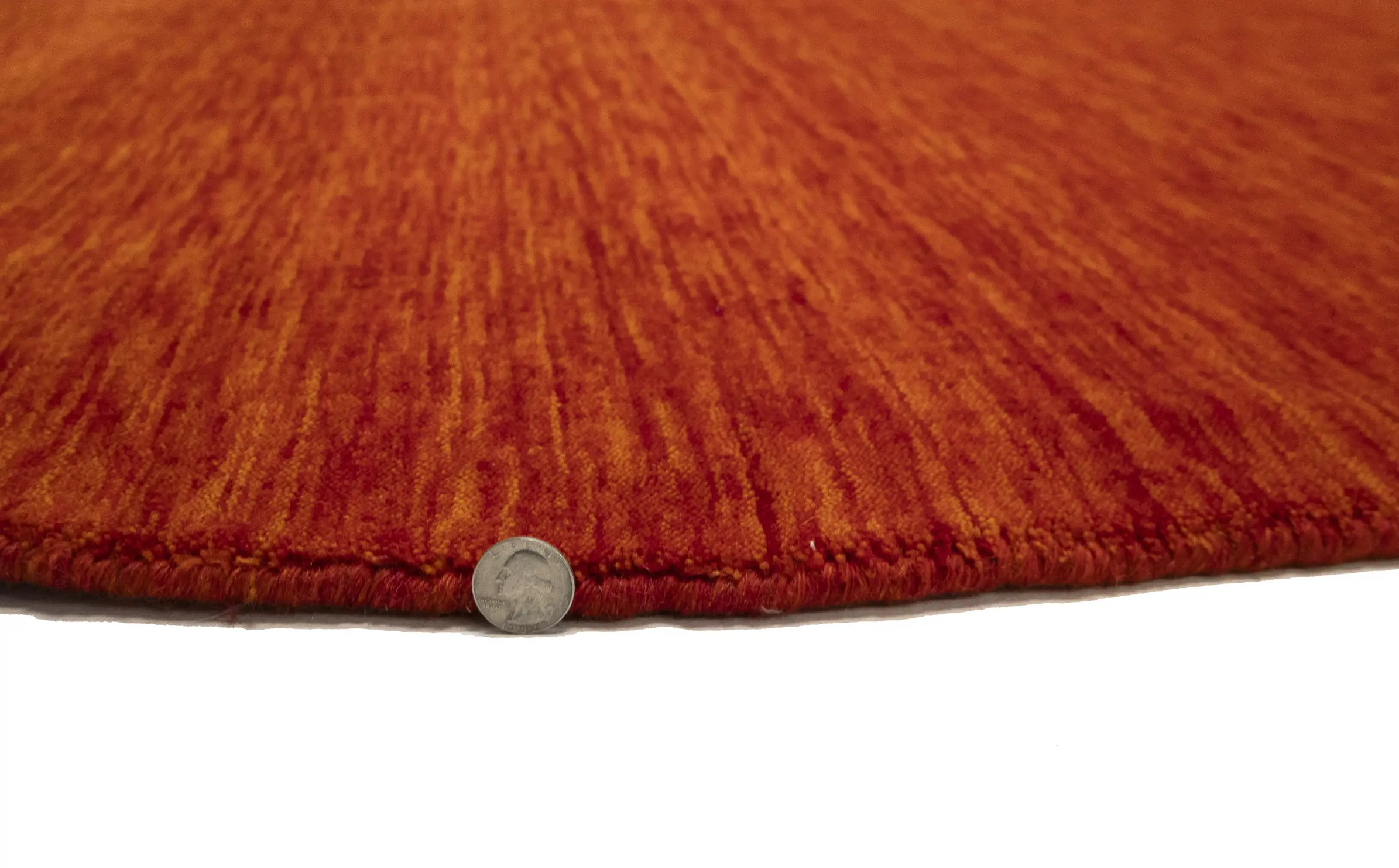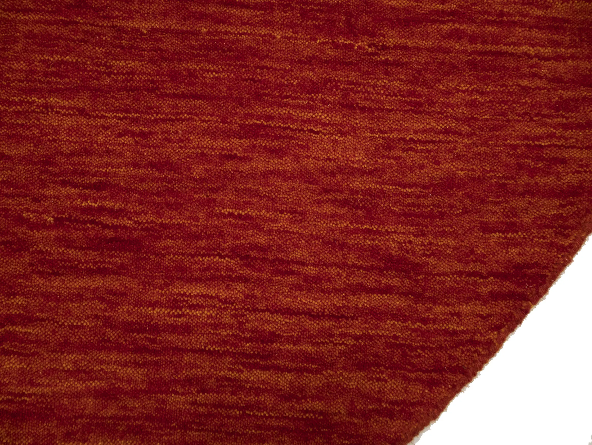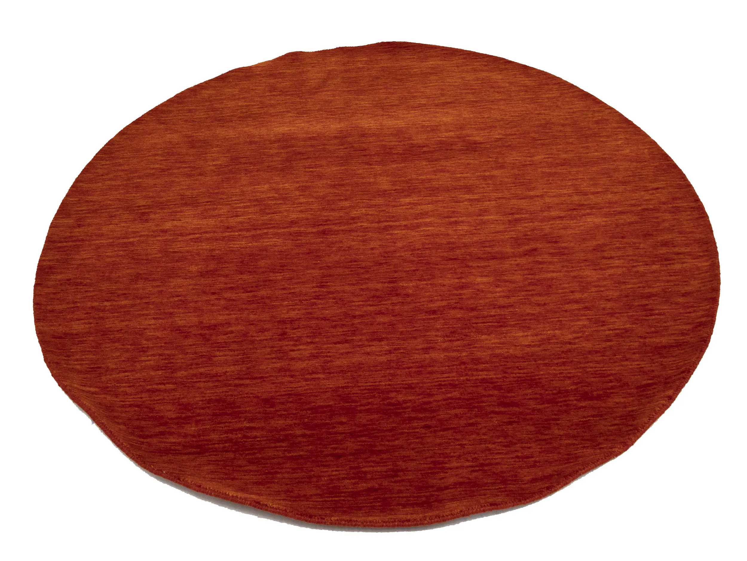 This hand-loomed 6X6 Orange Red Oriental rug from India features a modern, Solid design that seamlessly integrates traditional craftsmanship with contemporary style, showcasing a striking Orange Red primary color. It provides a luxuriant softness and durability underfoot, as it is constructed from premium wool with a cotton foundation. The rug is optimized for high-traffic areas due to its medium pile height and knot density of 100 knots per square inch, which ensures durability and comfort. This rug, which is in exceptional condition and was recently manufactured, is an ideal complement to any contemporary setting, providing both versatility and timeless elegance.