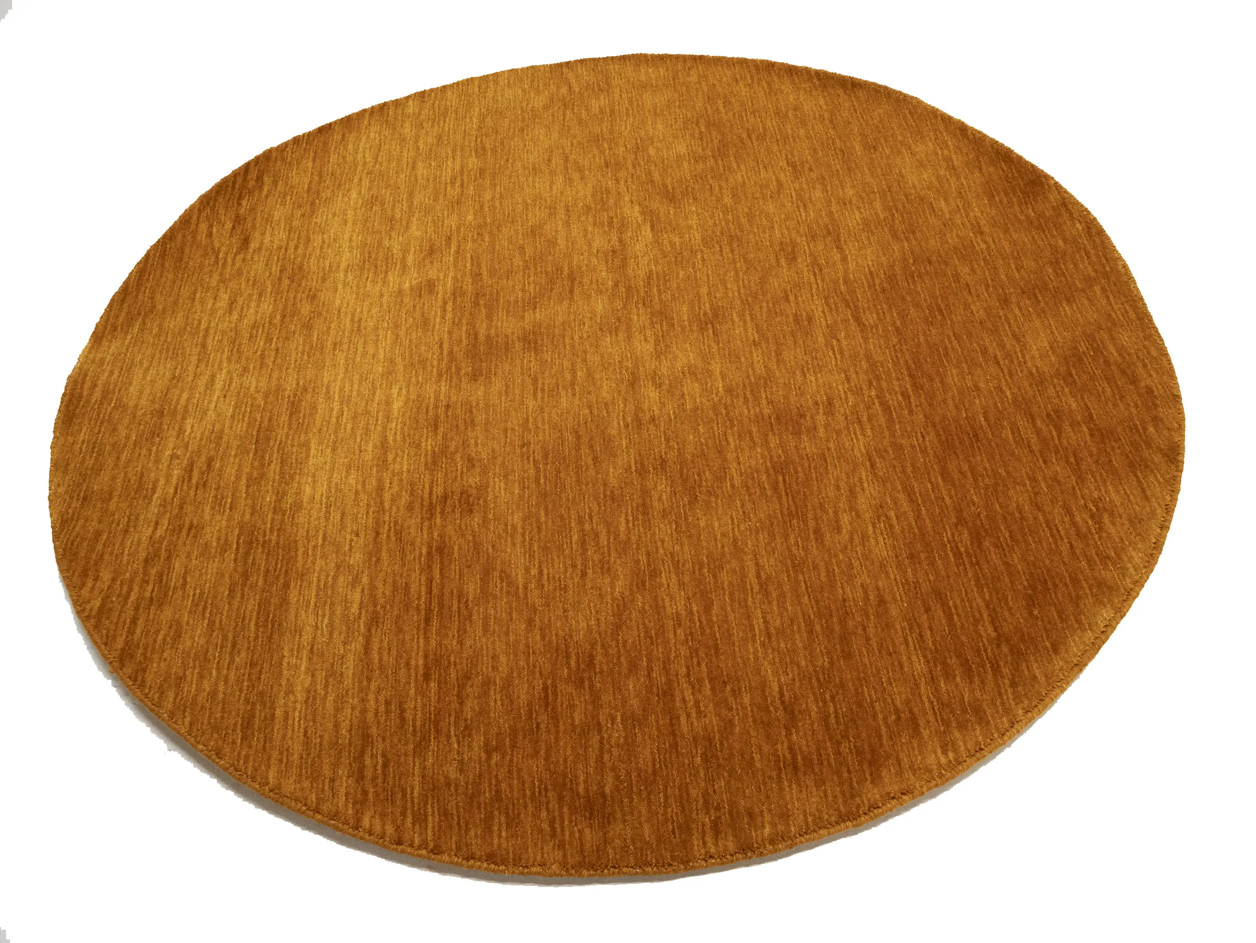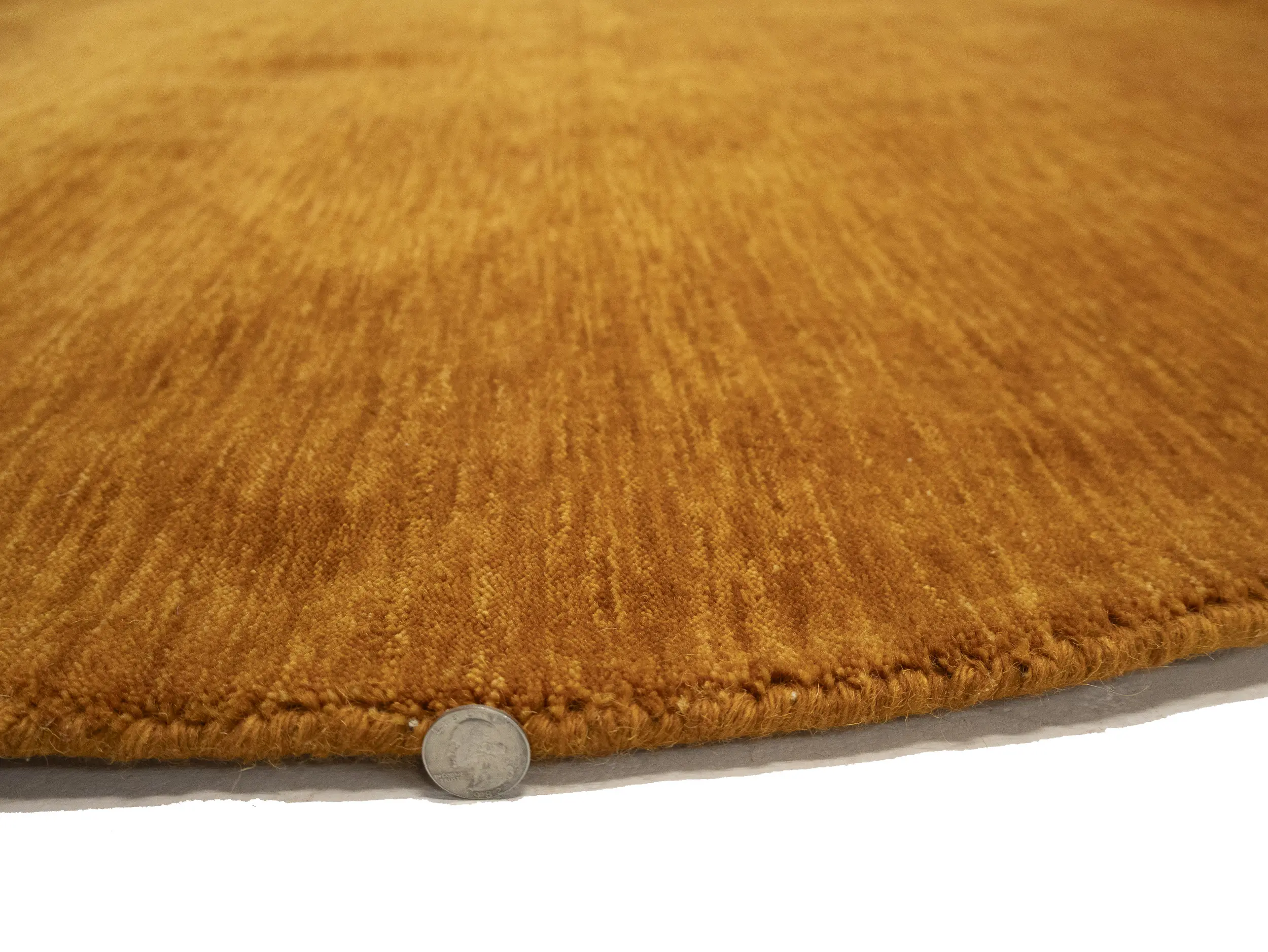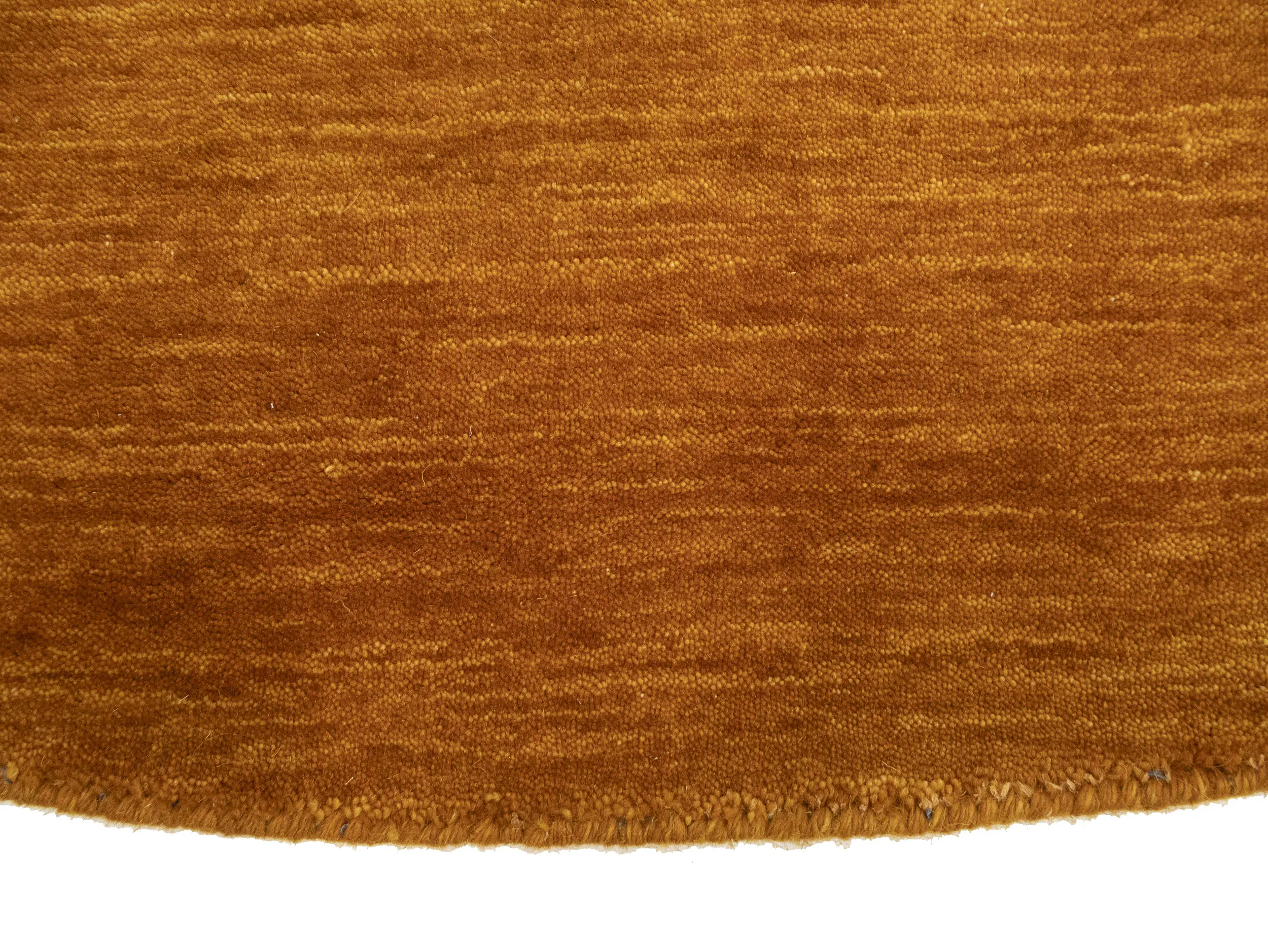 This hand-loomed 6X6 Orange Oriental Round rug from India features a modern, Solid design that seamlessly integrates traditional craftsmanship with contemporary style, showcasing a striking Orange primary color. It provides a luxuriant softness and durability underfoot, as it is constructed from premium wool with a cotton foundation. The rug is optimized for high-traffic areas due to its medium pile height and knot density of 100 knots per square inch, which ensures durability and comfort. This rug, which is in exceptional condition and was recently manufactured, is an ideal complement to any contemporary setting, providing both versatility and timeless elegance.