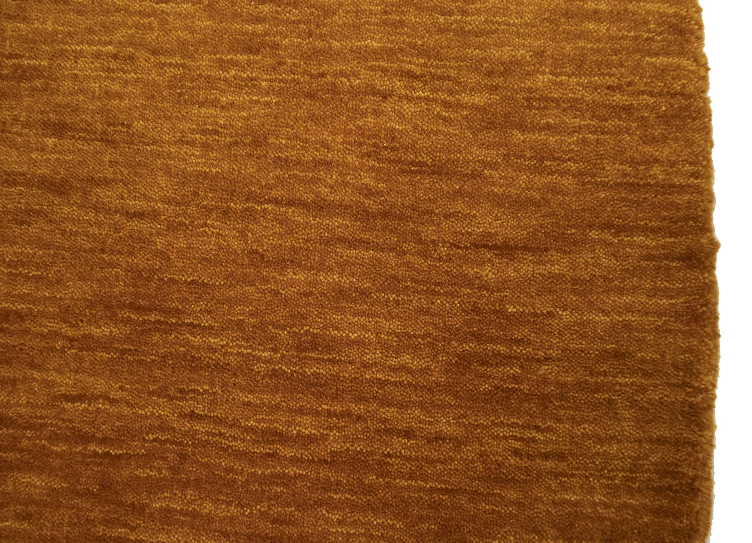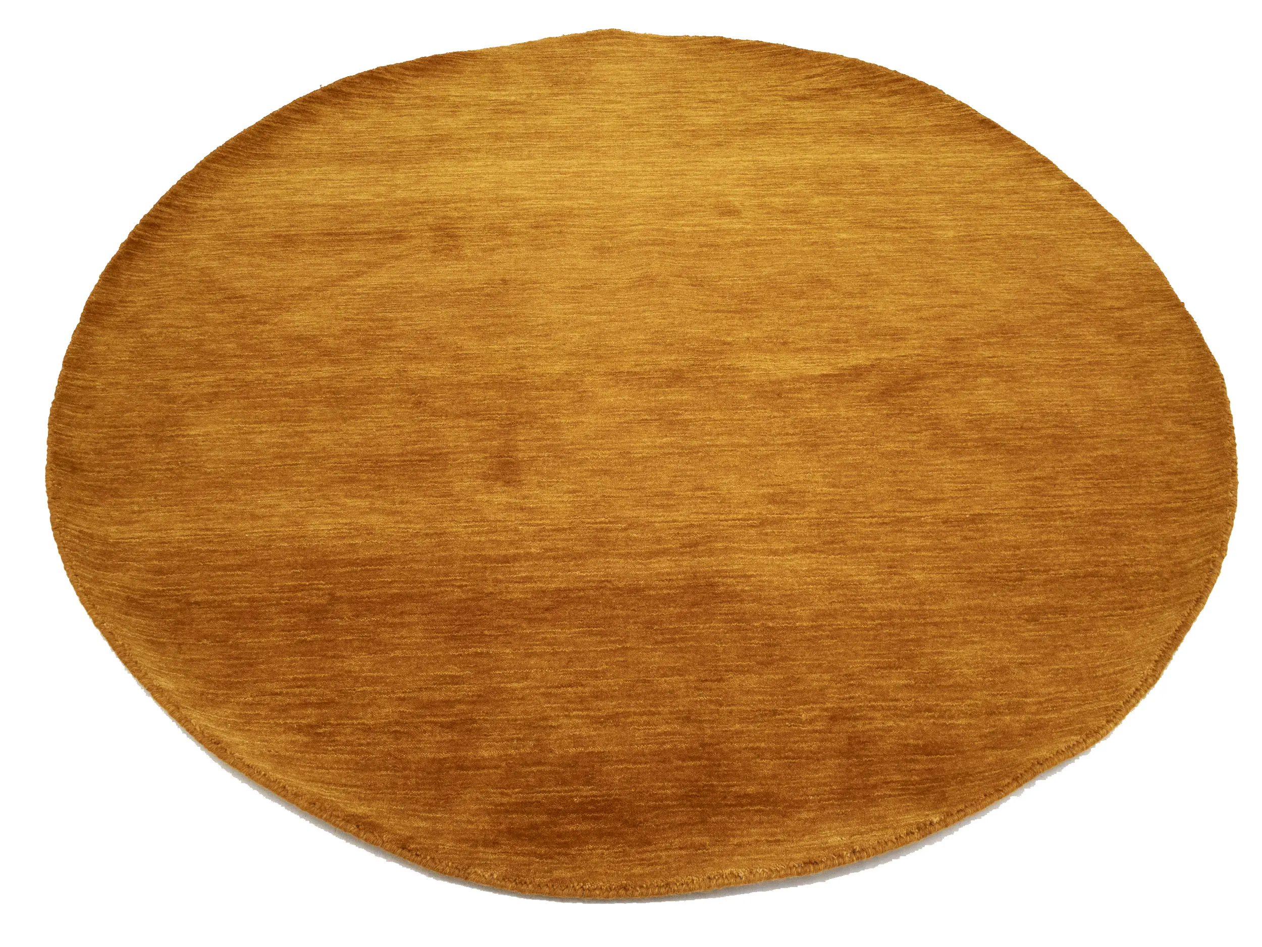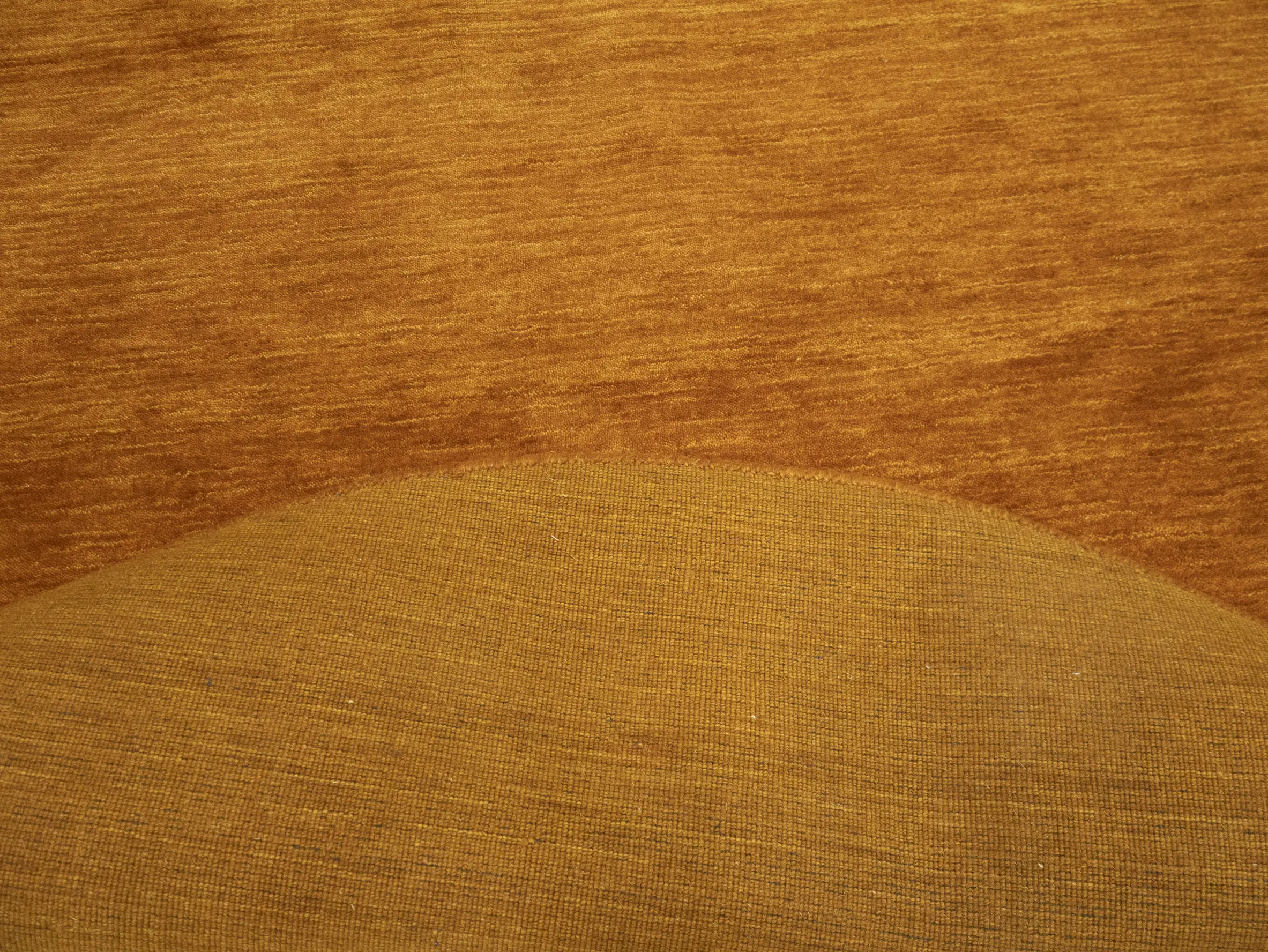This hand-loomed 6X6 Orange Oriental Round rug from India features a modern, Solid design that seamlessly integrates traditional craftsmanship with contemporary style, showcasing a striking Orange primary color. It provides a luxuriant softness and durability underfoot, as it is constructed from premium wool with a cotton foundation. The rug is optimized for high-traffic areas due to its medium pile height and knot density of 100 knots per square inch, which ensures durability and comfort. This rug, which is in exceptional condition and was recently manufactured, is an ideal complement to any contemporary setting, providing both versatility and timeless elegance.