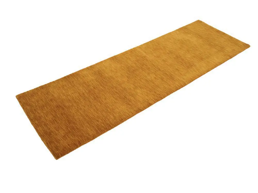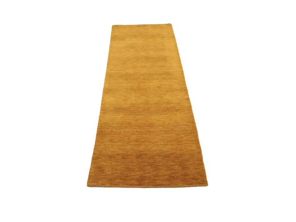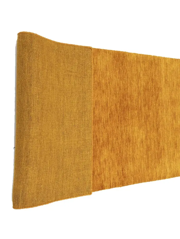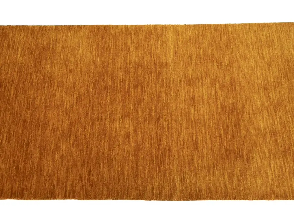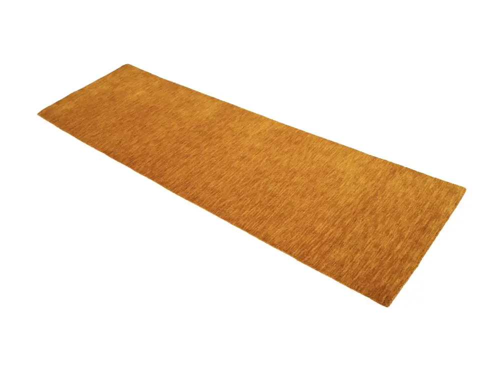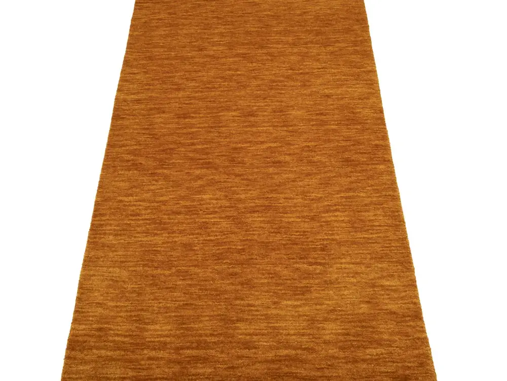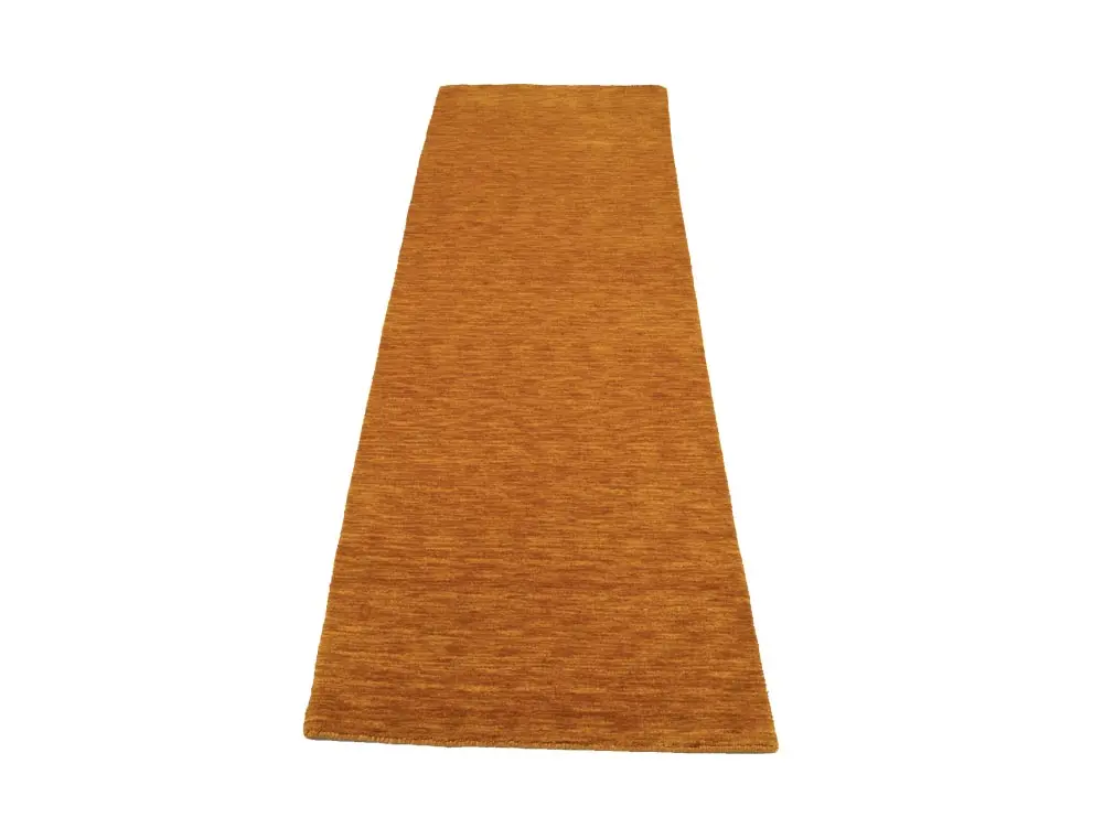 This hand-loomed 3X8 Orange Oriental Runner rug from India features a modern, Solid design that seamlessly integrates traditional craftsmanship with contemporary style, showcasing a striking Orange primary color. It provides a luxuriant softness and durability underfoot, as it is constructed from premium wool with a cotton foundation. The rug is optimized for high-traffic areas due to its medium pile height and knot density of 100 knots per square inch, which ensures durability and comfort. This rug, which is in exceptional condition and was recently manufactured, is an ideal complement to any contemporary setting, providing both versatility and timeless elegance.