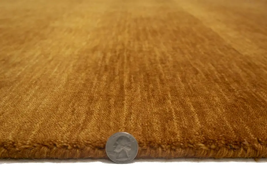 This hand-loomed 6X6 Orange Oriental Square rug from India features a modern, Solid design that seamlessly integrates traditional craftsmanship with contemporary style, showcasing a striking Orange primary color. It provides a luxuriant softness and durability underfoot, as it is constructed from premium wool with a cotton foundation. The rug is optimized for high-traffic areas due to its medium pile height and knot density of 100 knots per square inch, which ensures durability and comfort. This rug, which is in exceptional condition and was recently manufactured, is an ideal complement to any contemporary setting, providing both versatility and timeless elegance.
