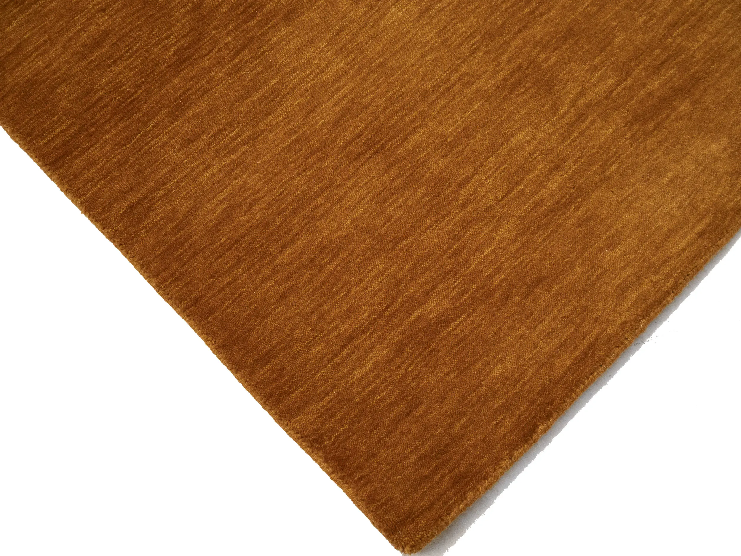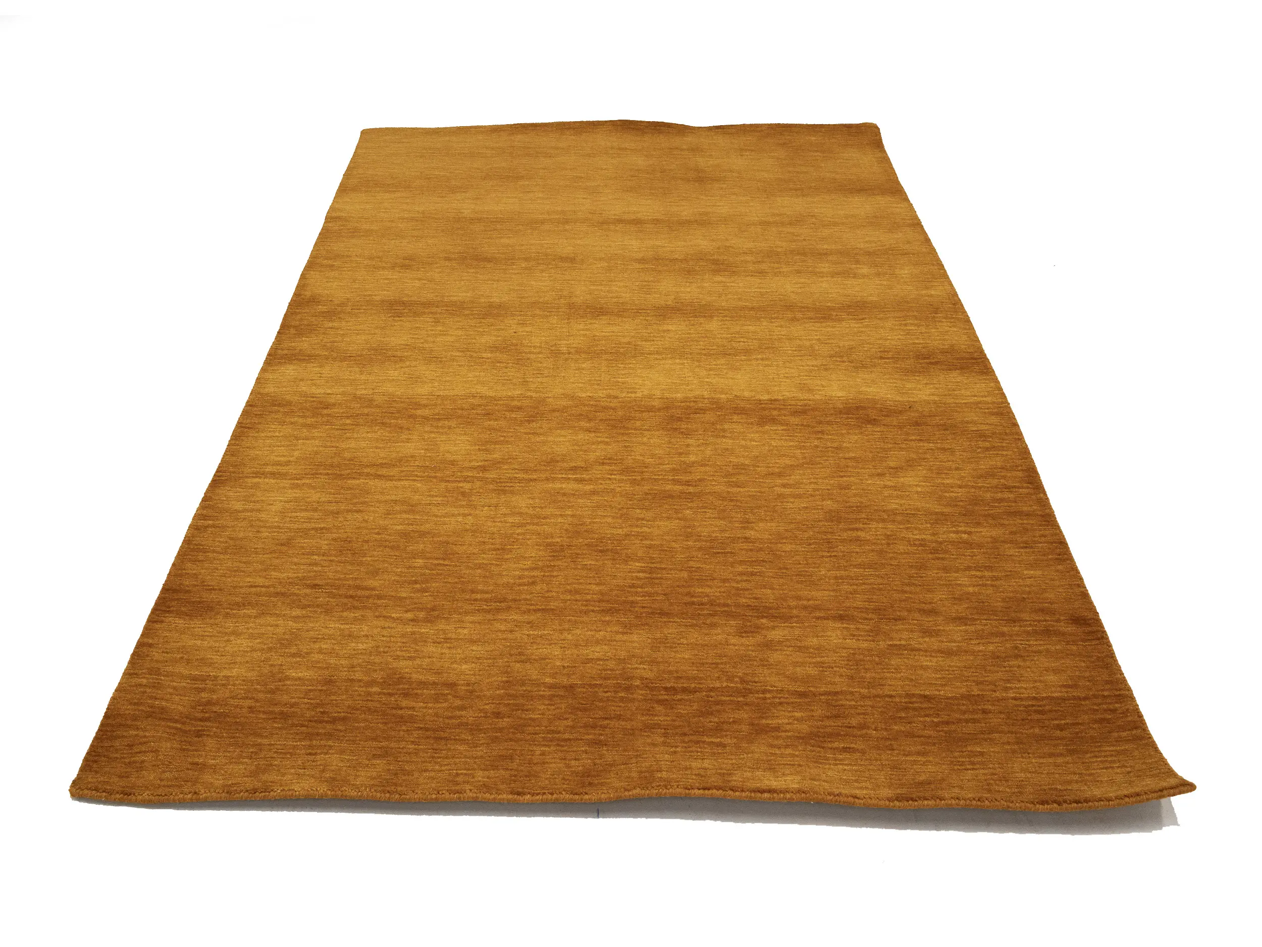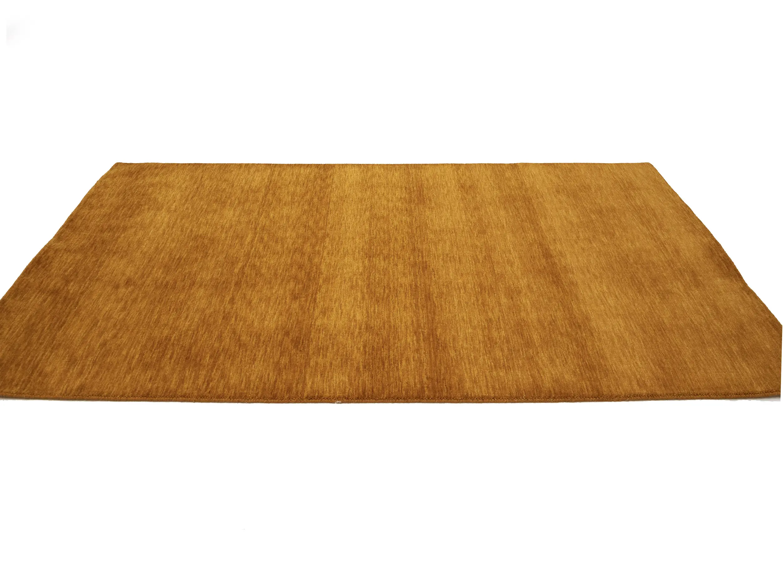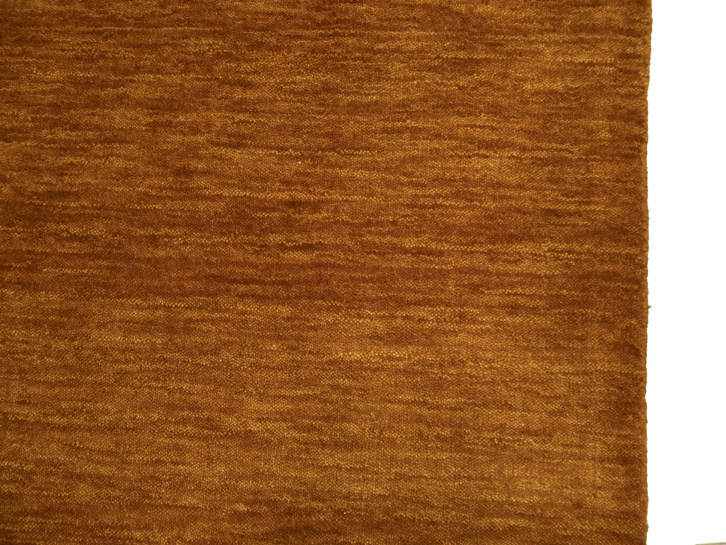 This hand-loomed 5X8 Orange Oriental rug from India features a modern, Solid design that seamlessly integrates traditional craftsmanship with contemporary style, showcasing a striking Orange primary color. It provides a luxuriant softness and durability underfoot, as it is constructed from premium wool with a cotton foundation. The rug is optimized for high-traffic areas due to its medium pile height and knot density of 100 knots per square inch, which ensures durability and comfort. This rug, which is in exceptional condition and was recently manufactured, is an ideal complement to any contemporary setting, providing both versatility and timeless elegance.