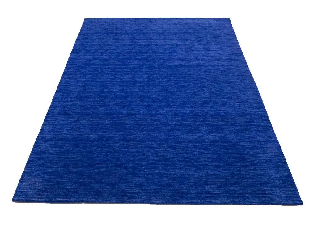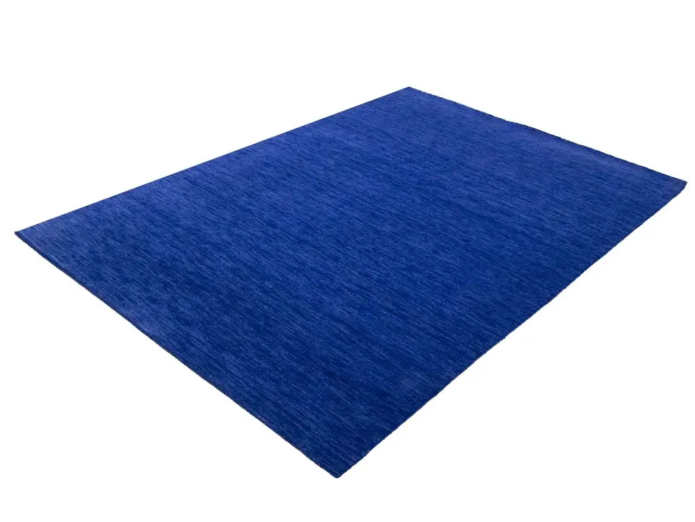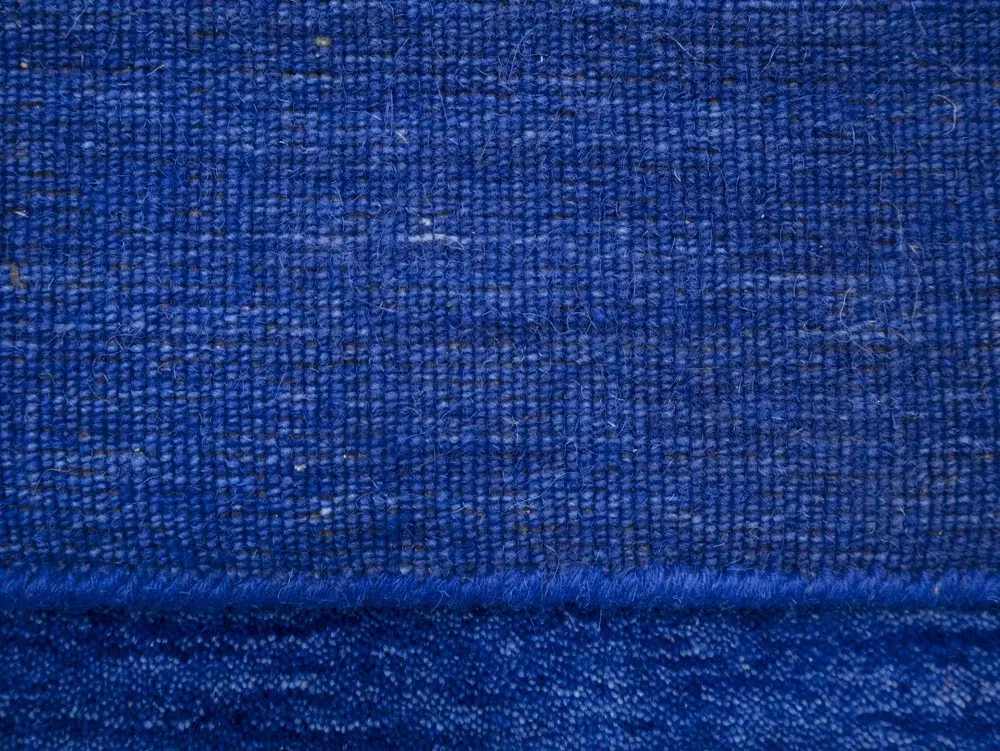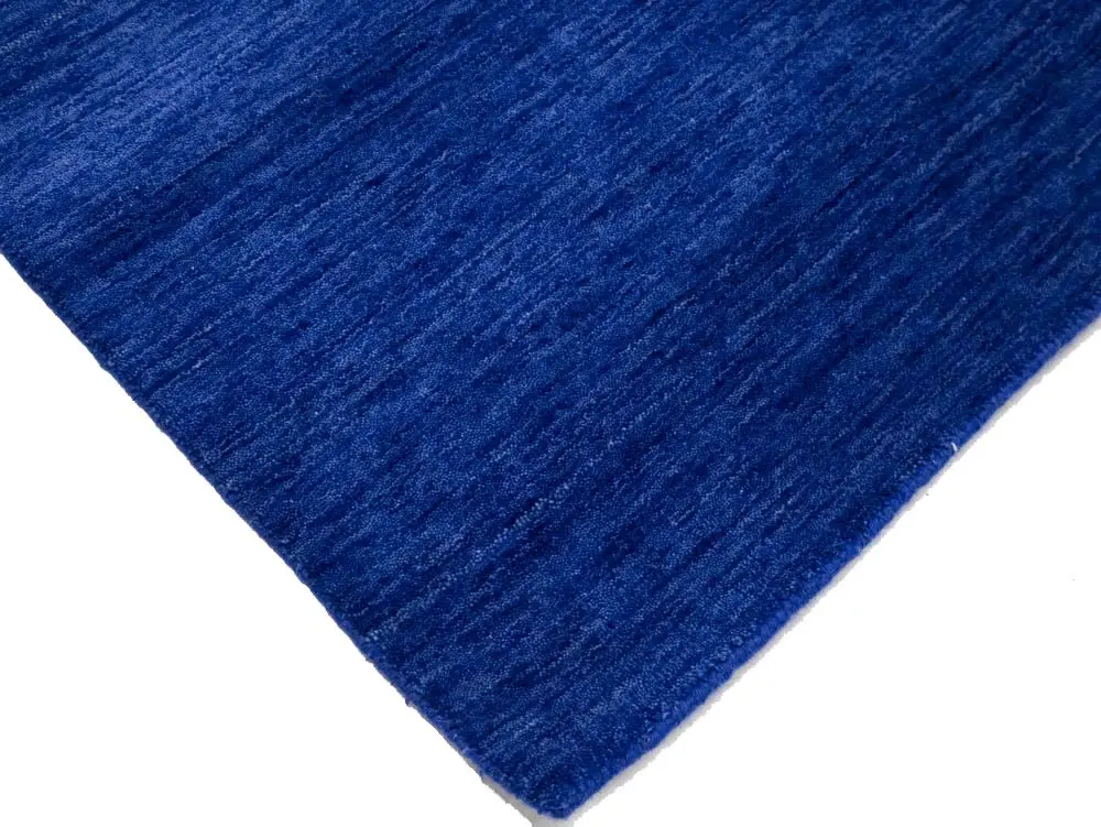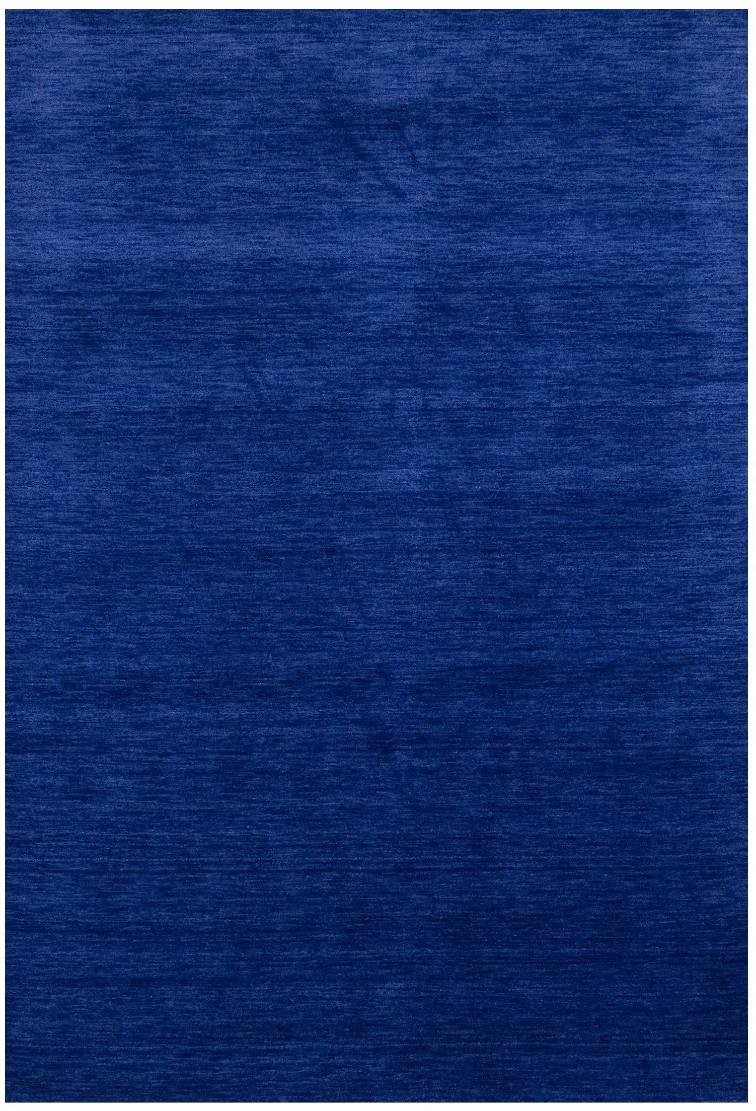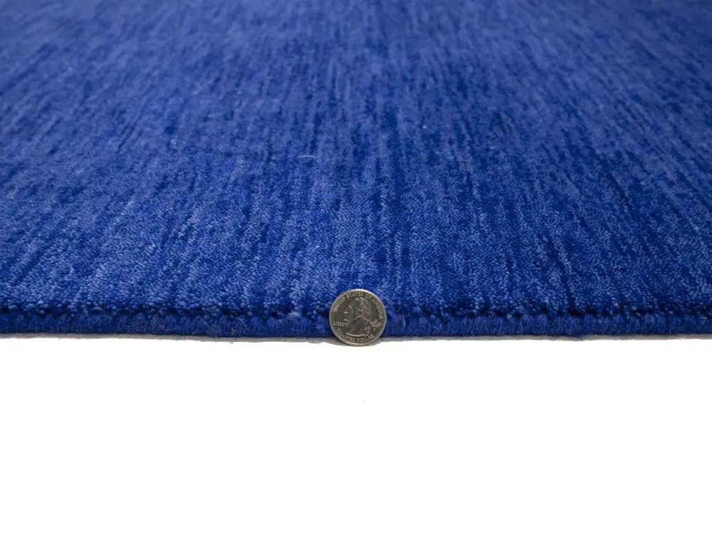 This hand-loomed 6X9 Royal Blue Oriental rug from India features a modern, Solid design that seamlessly integrates traditional craftsmanship with contemporary style, showcasing a striking Royal Blue primary color. It provides a luxuriant softness and durability underfoot, as it is constructed from premium wool with a cotton foundation. The rug is optimized for high-traffic areas due to its medium pile height and knot density of 100 knots per square inch, which ensures durability and comfort. This rug, which is in exceptional condition and was recently manufactured, is an ideal complement to any contemporary setting, providing both versatility and timeless elegance.