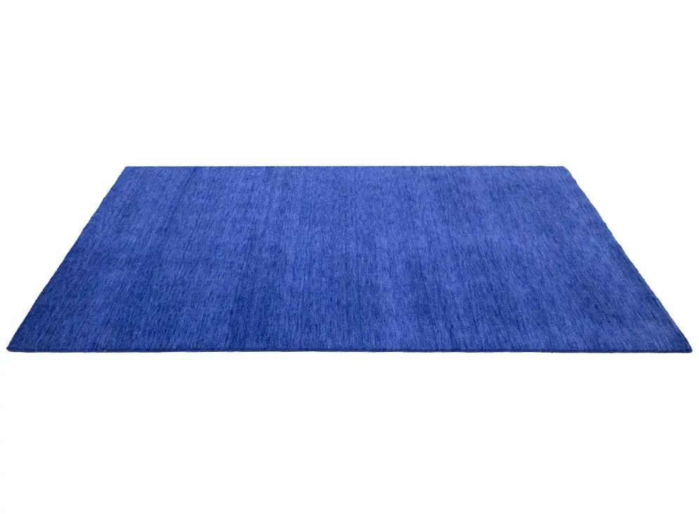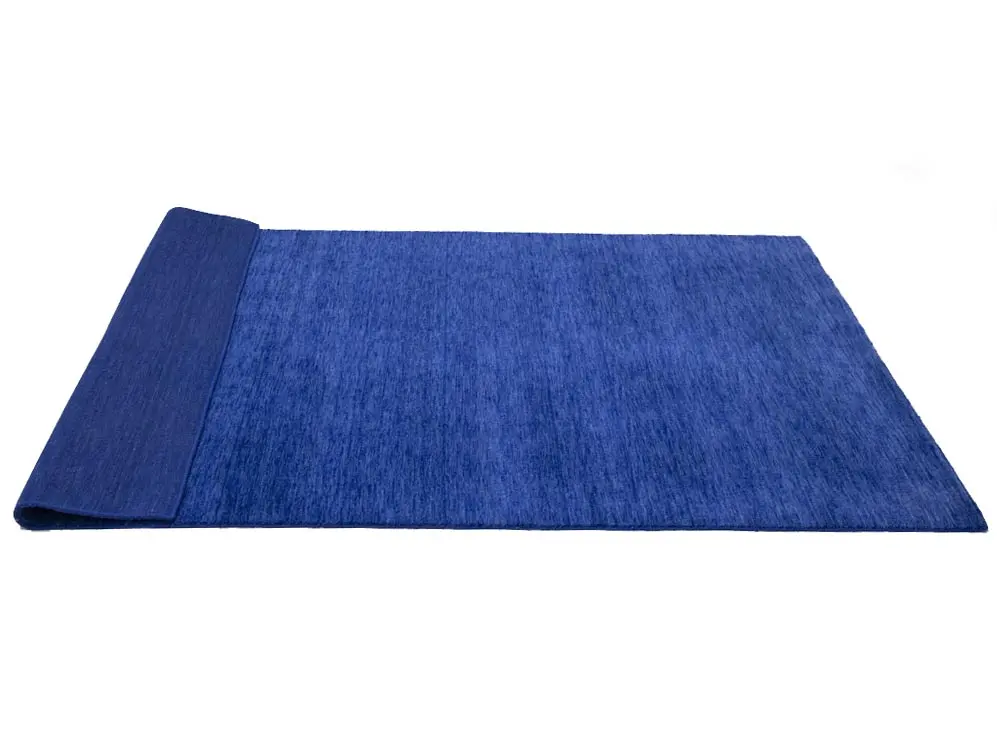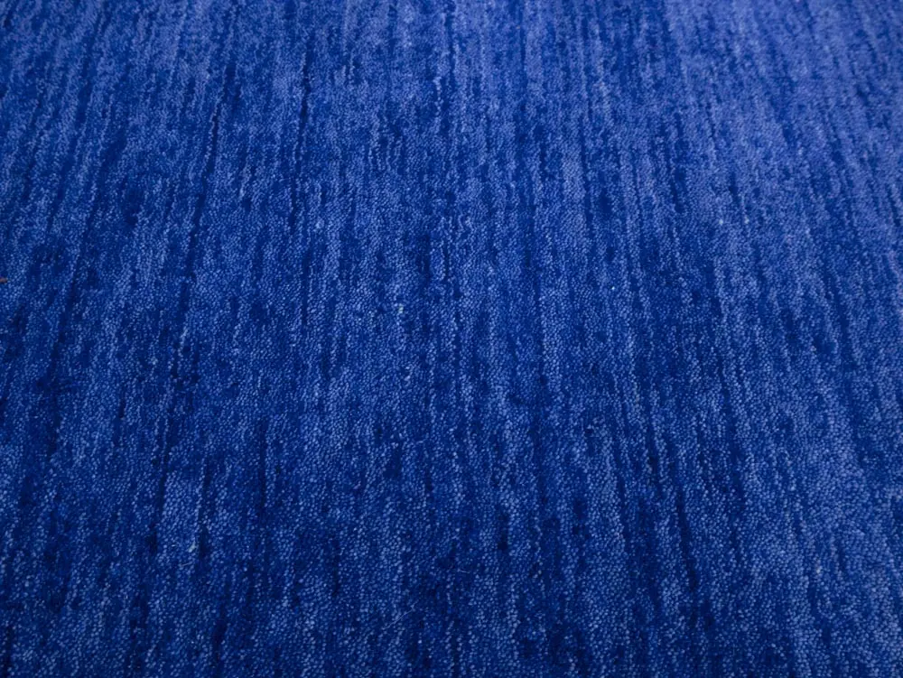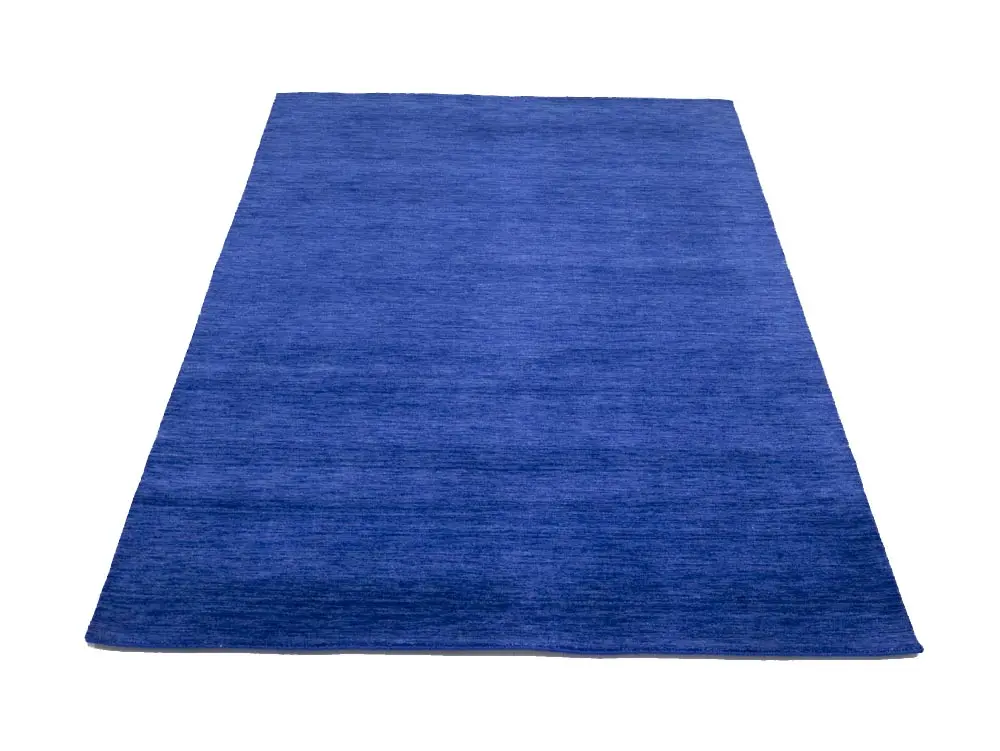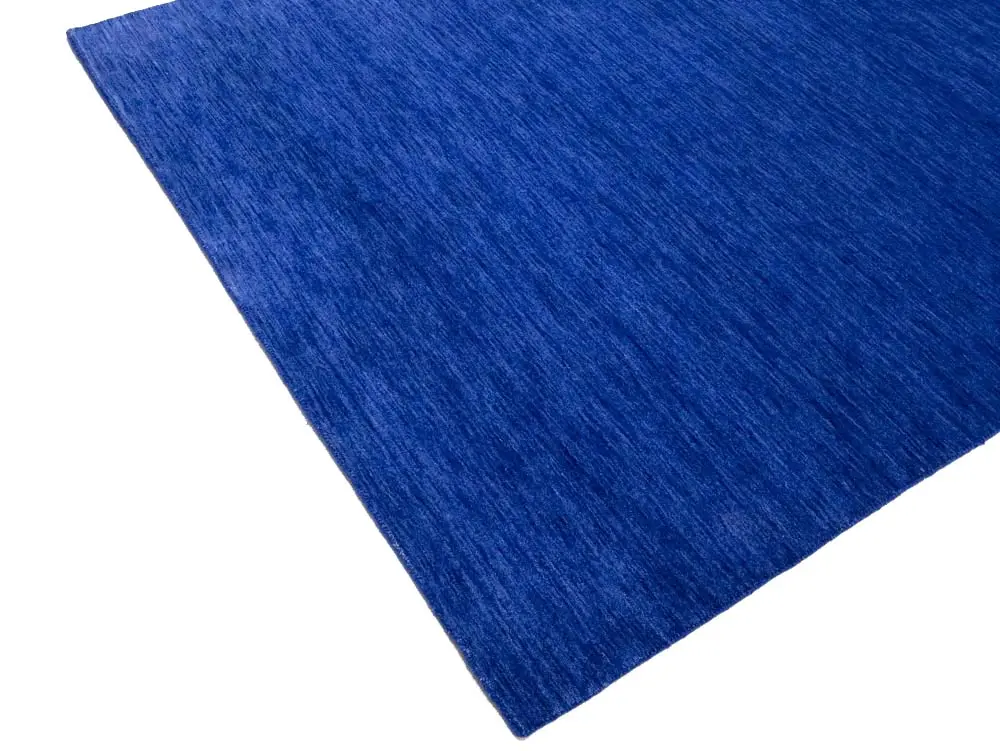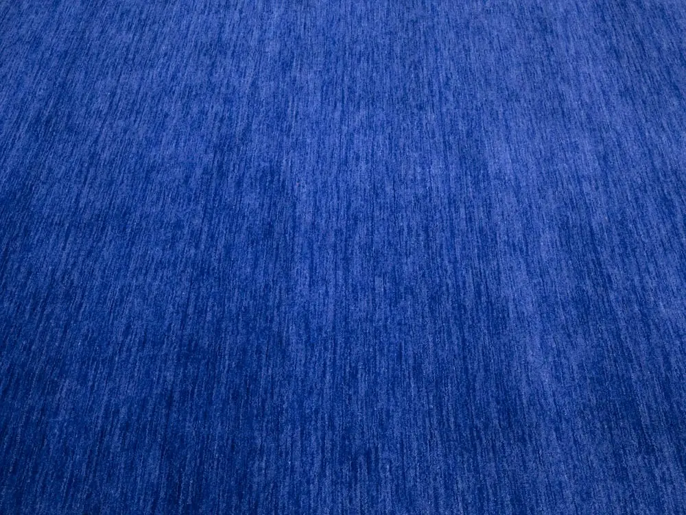 This hand-loomed 6X9 Royal Blue Oriental rug from India features a modern, Solid design that seamlessly integrates traditional craftsmanship with contemporary style, showcasing a striking Royal Blue primary color. It provides a luxuriant softness and durability underfoot, as it is constructed from premium wool with a cotton foundation. The rug is optimized for high-traffic areas due to its medium pile height and knot density of 100 knots per square inch, which ensures durability and comfort. This rug, which is in exceptional condition and was recently manufactured, is an ideal complement to any contemporary setting, providing both versatility and timeless elegance.
