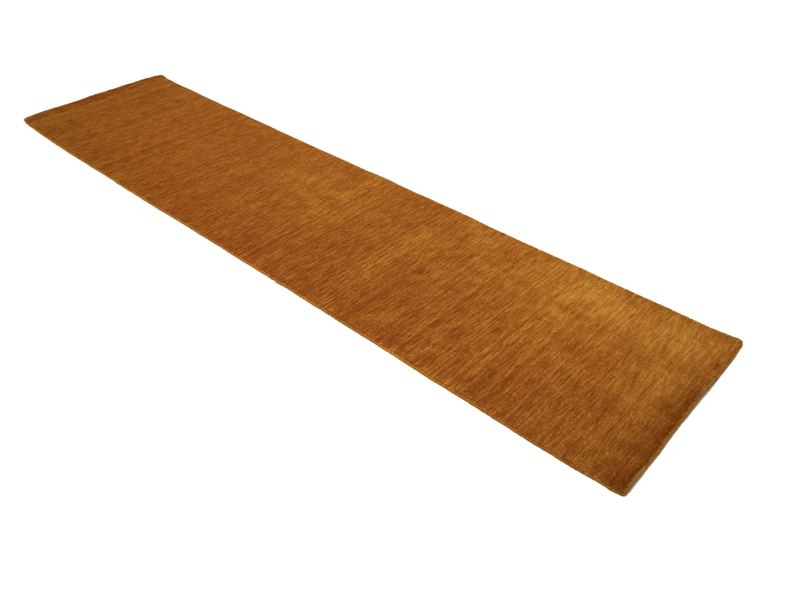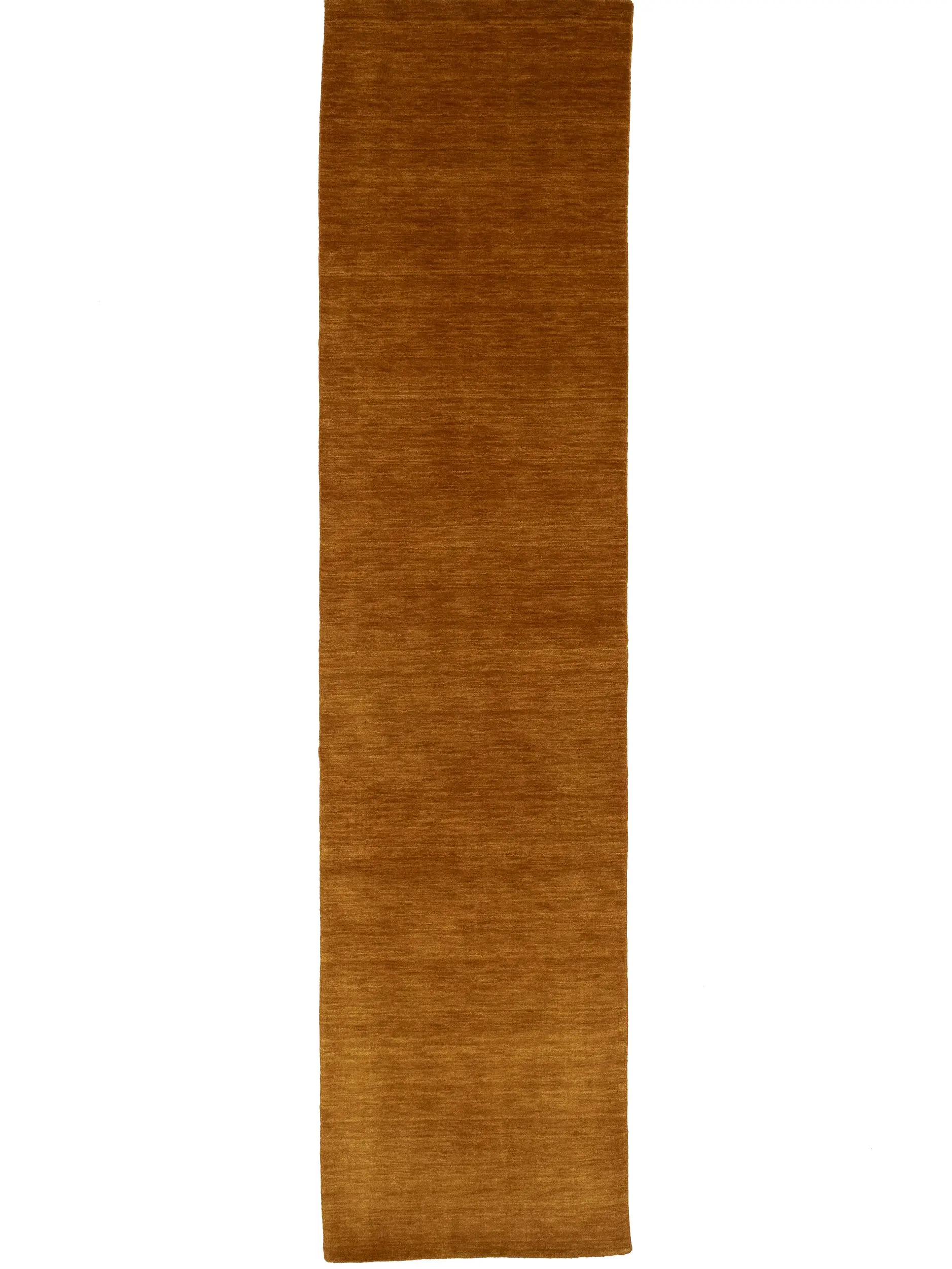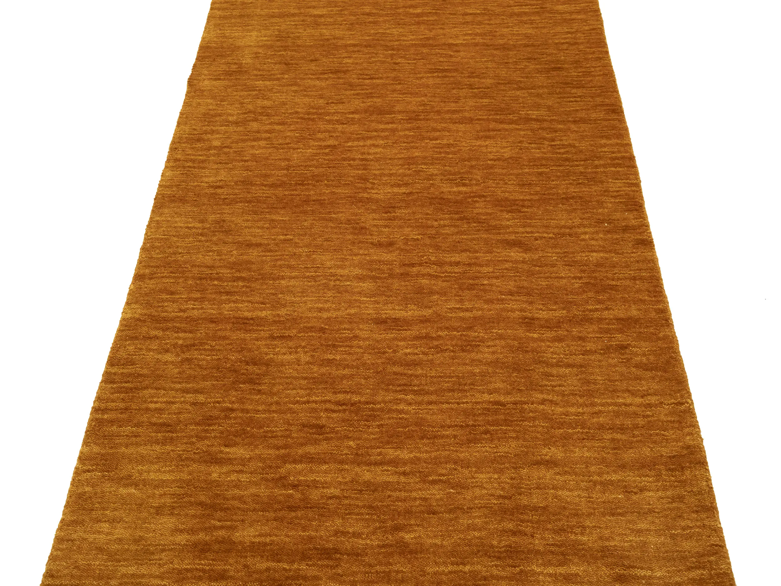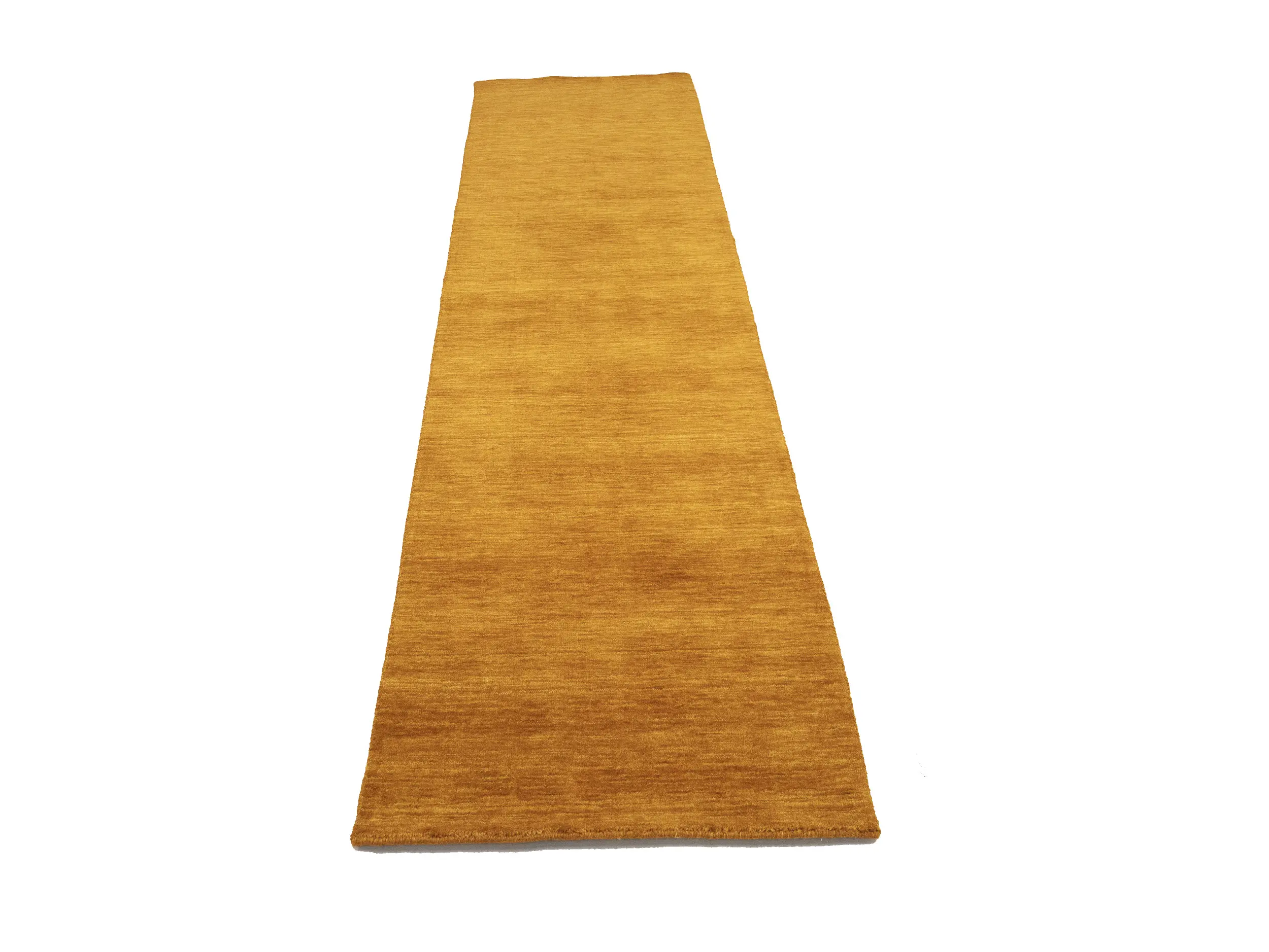 This hand-loomed 3X10 Orange Oriental Runner rug from India features a modern, Solid design that seamlessly integrates traditional craftsmanship with contemporary style, showcasing a striking Orange primary color. It provides a luxuriant softness and durability underfoot, as it is constructed from premium wool with a cotton foundation. The rug is optimized for high-traffic areas due to its medium pile height and knot density of 100 knots per square inch, which ensures durability and comfort. This rug, which is in exceptional condition and was recently manufactured, is an ideal complement to any contemporary setting, providing both versatility and timeless elegance.