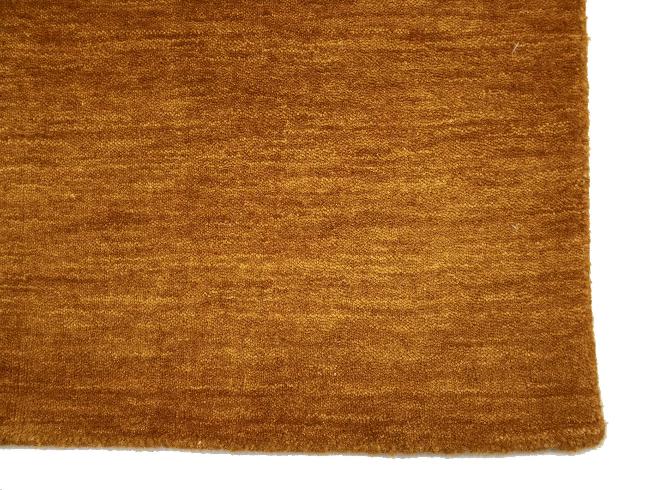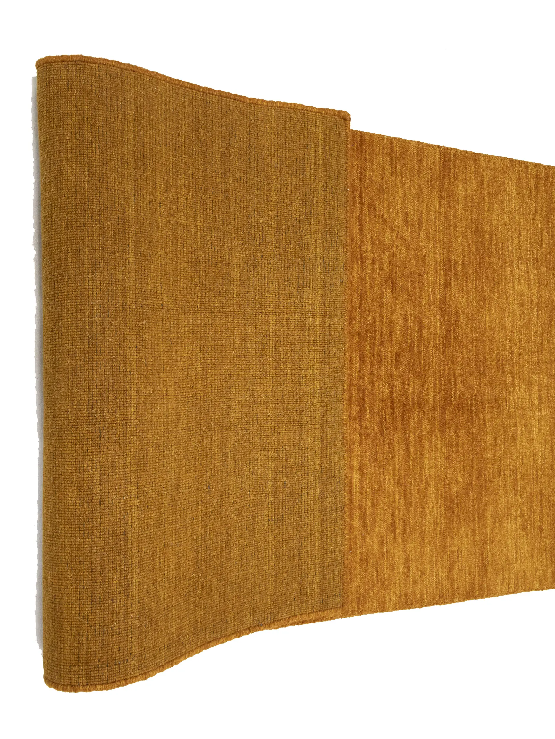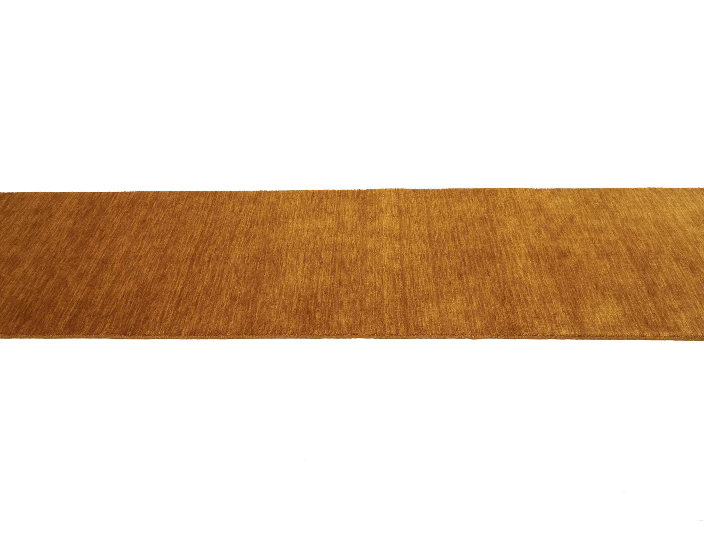 This hand-loomed 3X10 Orange Oriental Runner rug from India features a modern, Solid design that seamlessly integrates traditional craftsmanship with contemporary style, showcasing a striking Orange primary color. It provides a luxuriant softness and durability underfoot, as it is constructed from premium wool with a cotton foundation. The rug is optimized for high-traffic areas due to its medium pile height and knot density of 100 knots per square inch, which ensures durability and comfort. This rug, which is in exceptional condition and was recently manufactured, is an ideal complement to any contemporary setting, providing both versatility and timeless elegance.