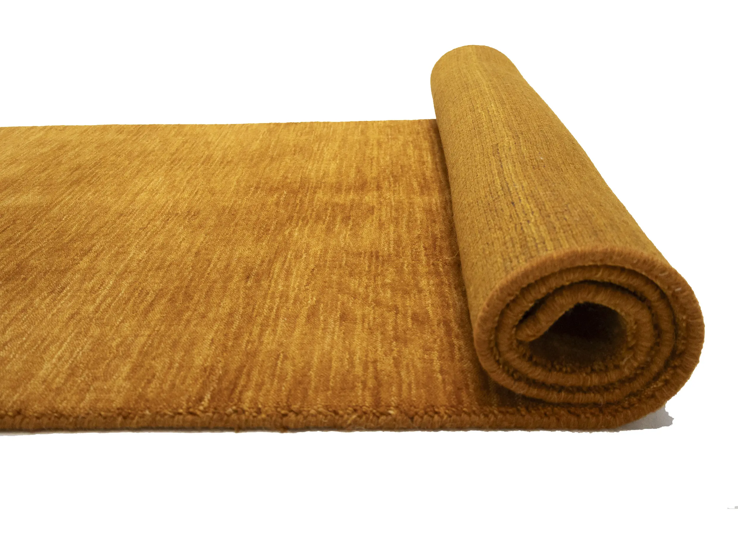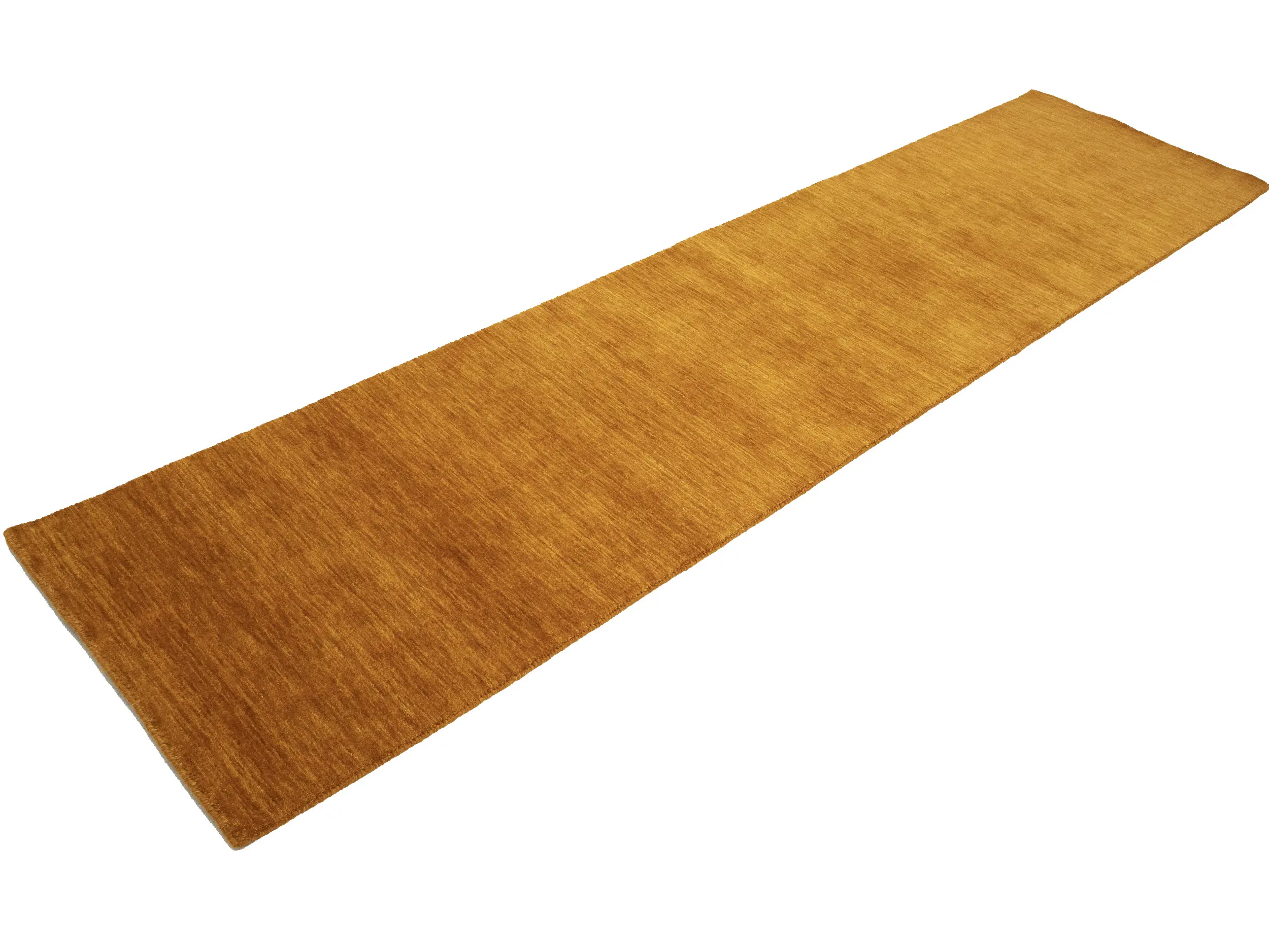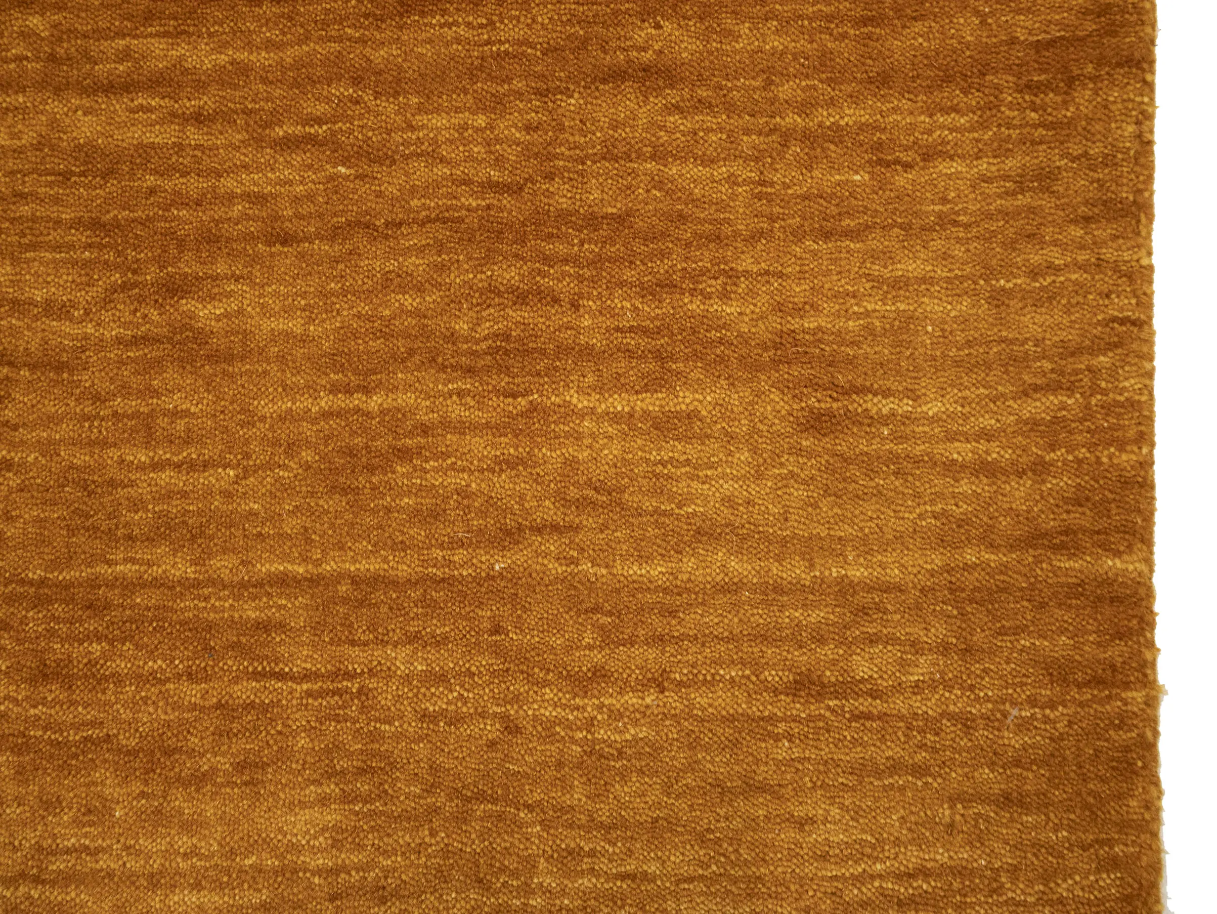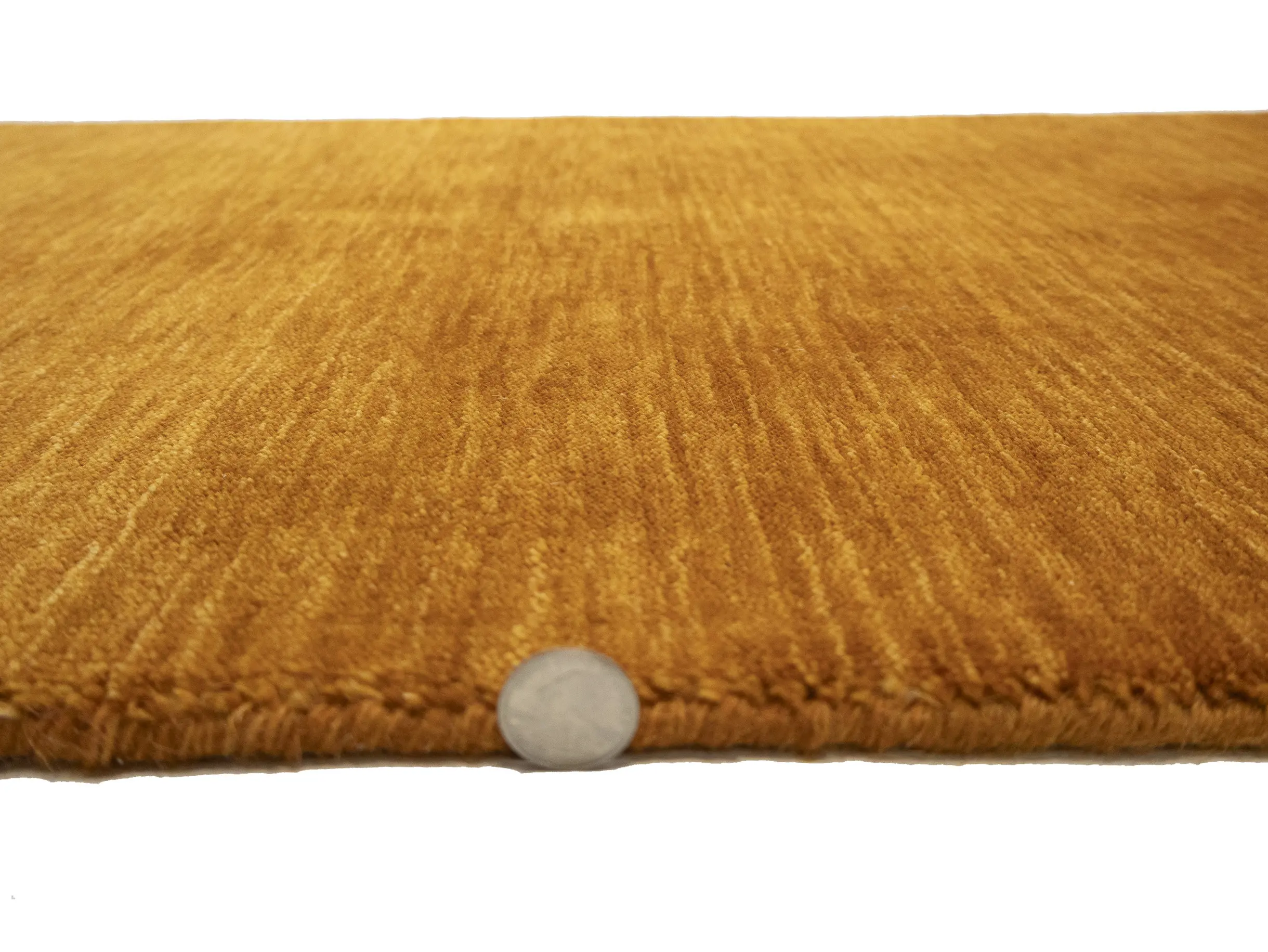 This hand-loomed 3X10 Orange Oriental Runner rug from India features a modern, Solid design that seamlessly integrates traditional craftsmanship with contemporary style, showcasing a striking Orange primary color. It provides a luxuriant softness and durability underfoot, as it is constructed from premium wool with a cotton foundation. The rug is optimized for high-traffic areas due to its medium pile height and knot density of 100 knots per square inch, which ensures durability and comfort. This rug, which is in exceptional condition and was recently manufactured, is an ideal complement to any contemporary setting, providing both versatility and timeless elegance.