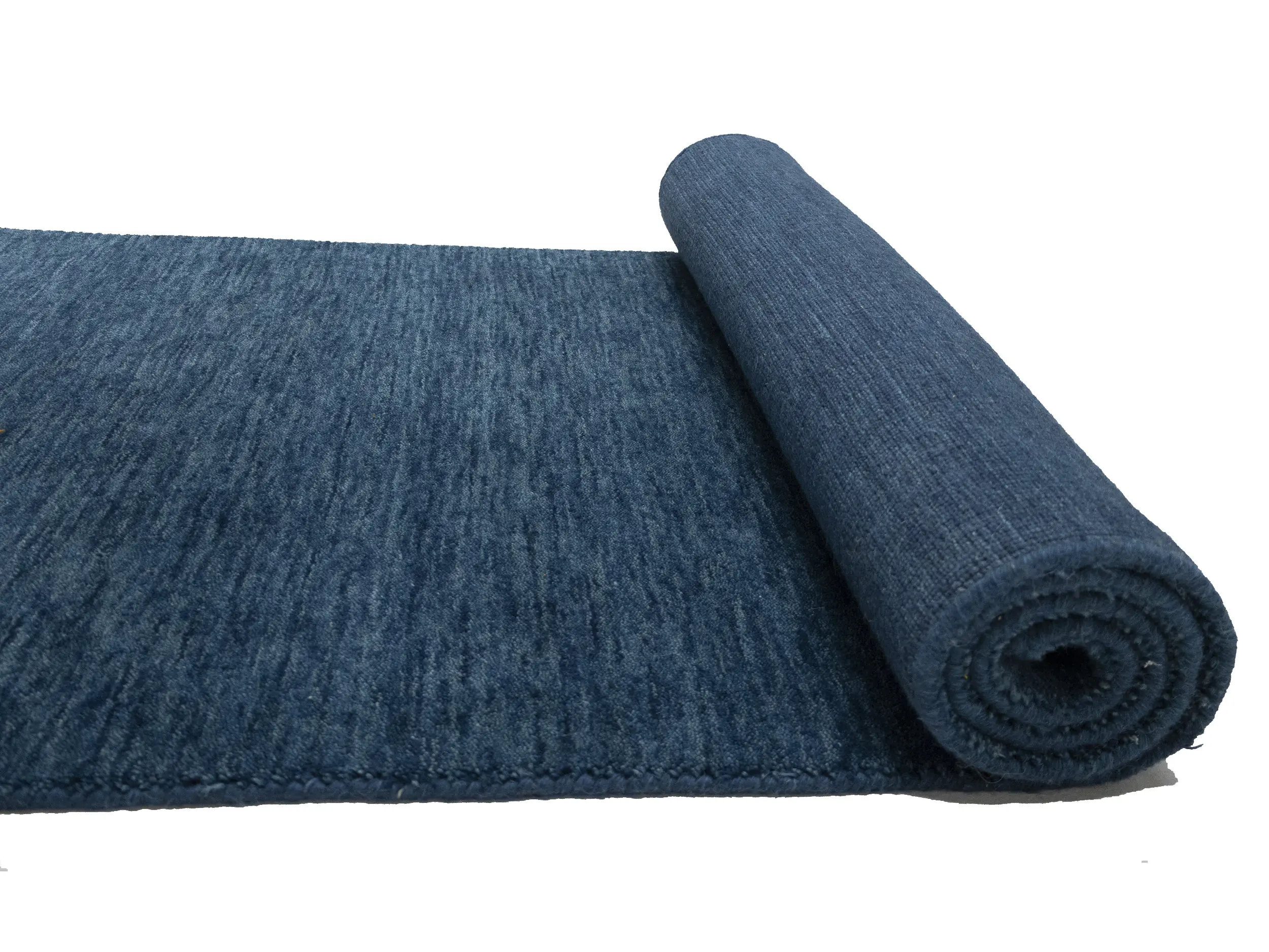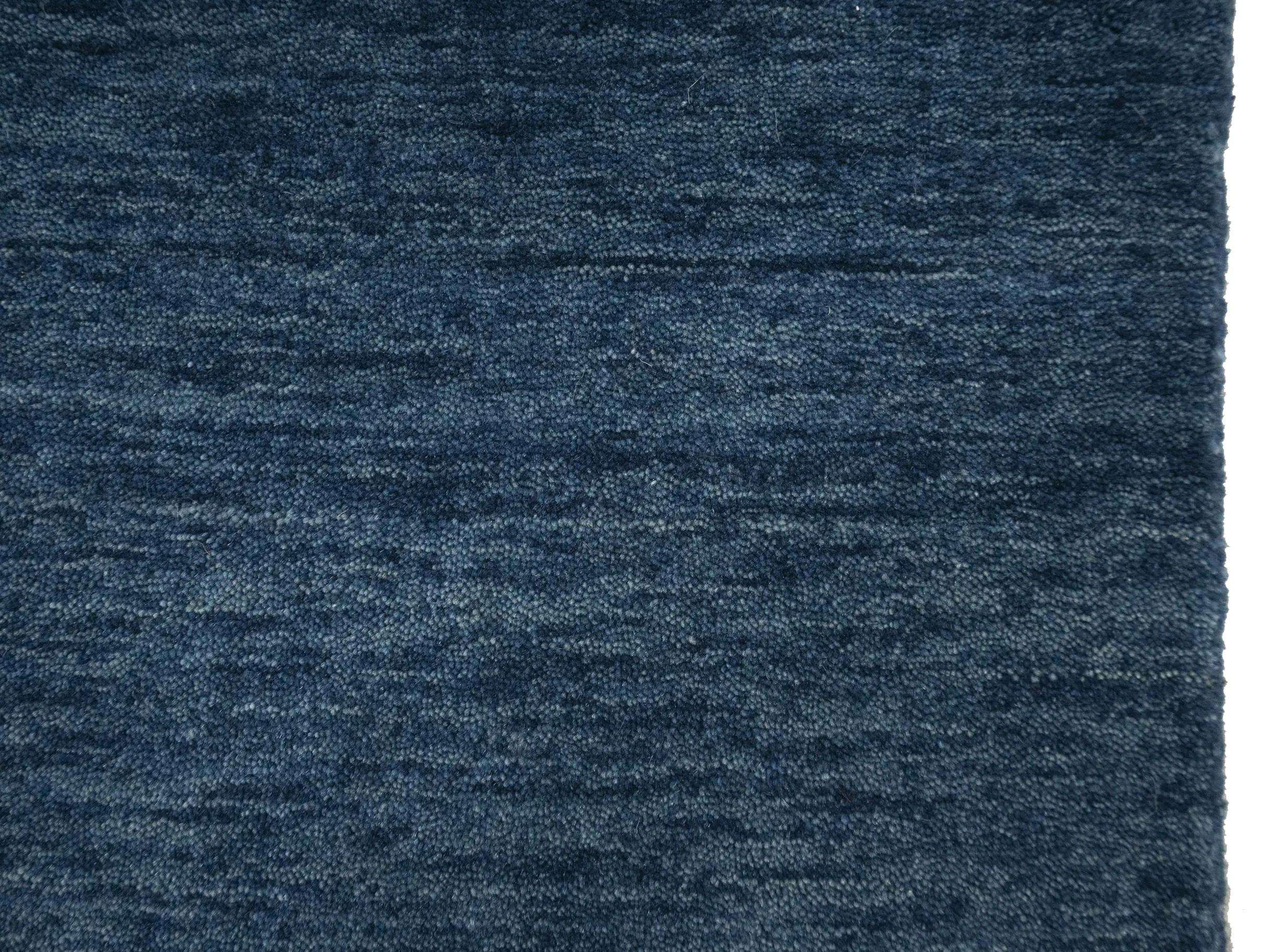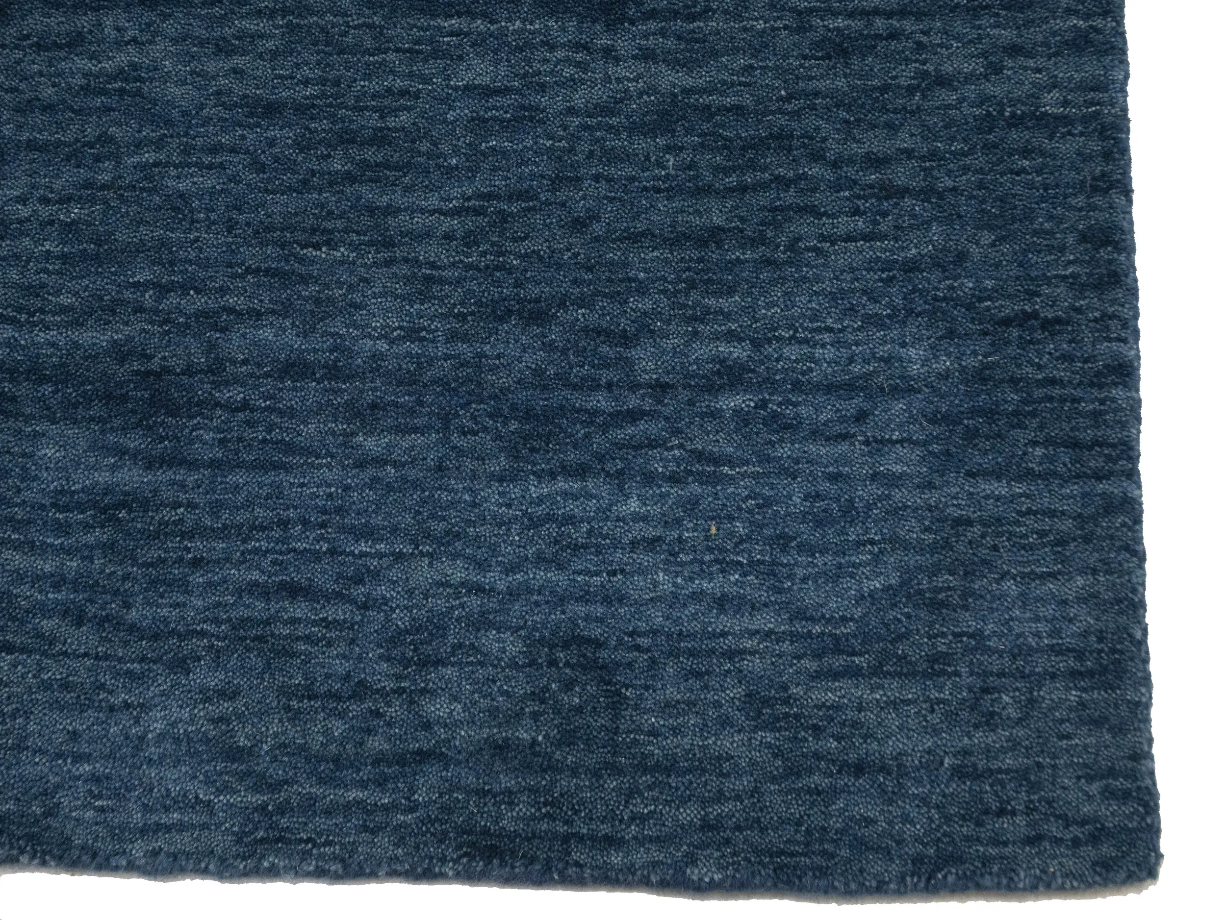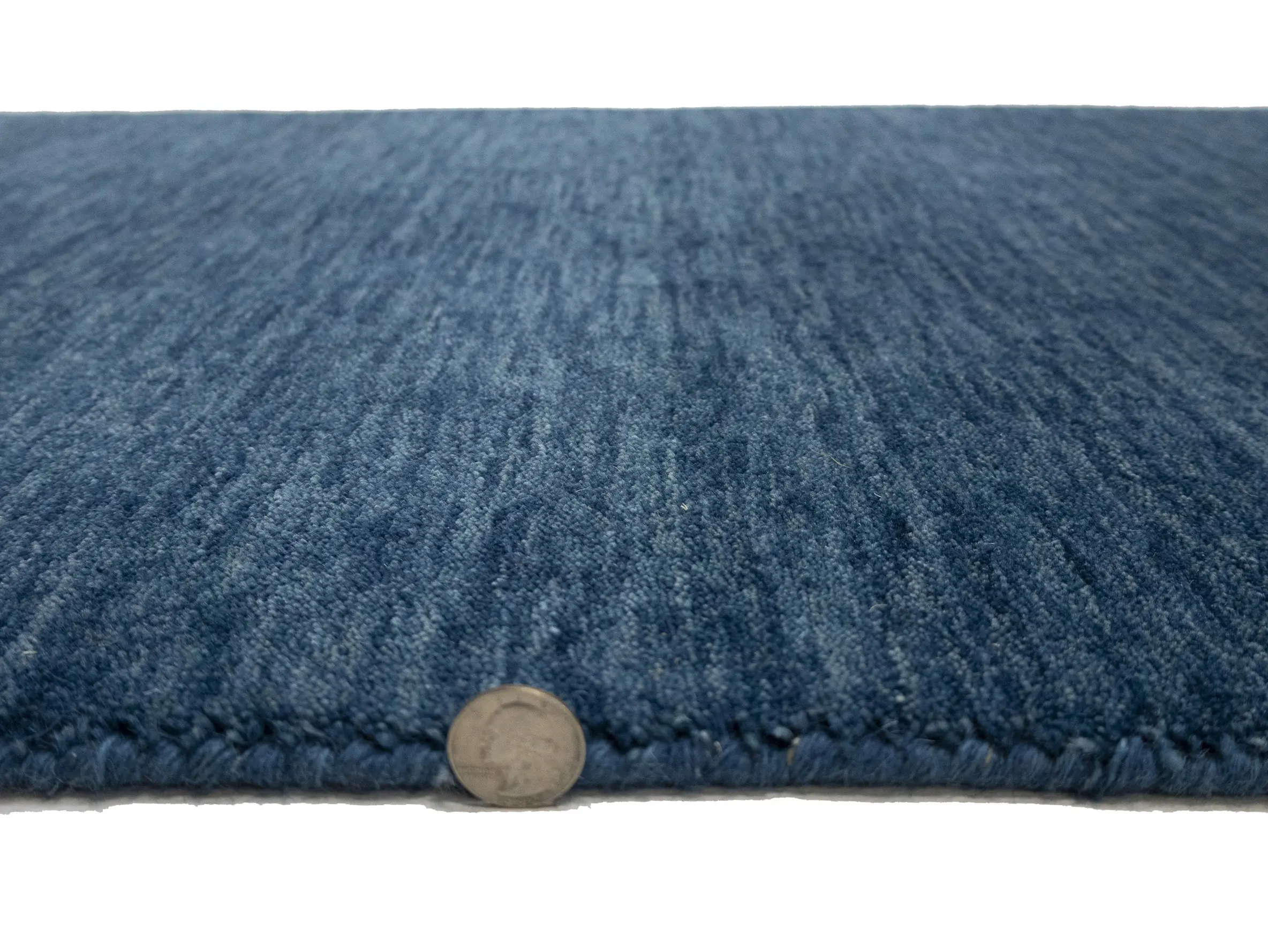 This hand-loomed 3X12 Steel Blue Oriental Runner rug from India features a modern, Solid design that seamlessly integrates traditional craftsmanship with contemporary style, showcasing a striking Steel Blue primary color. It provides a luxuriant softness and durability underfoot, as it is constructed from premium wool with a cotton foundation. The rug is optimized for high-traffic areas due to its medium pile height and knot density of 100 knots per square inch, which ensures durability and comfort. This rug, which is in exceptional condition and was recently manufactured, is an ideal complement to any contemporary setting, providing both versatility and timeless elegance.