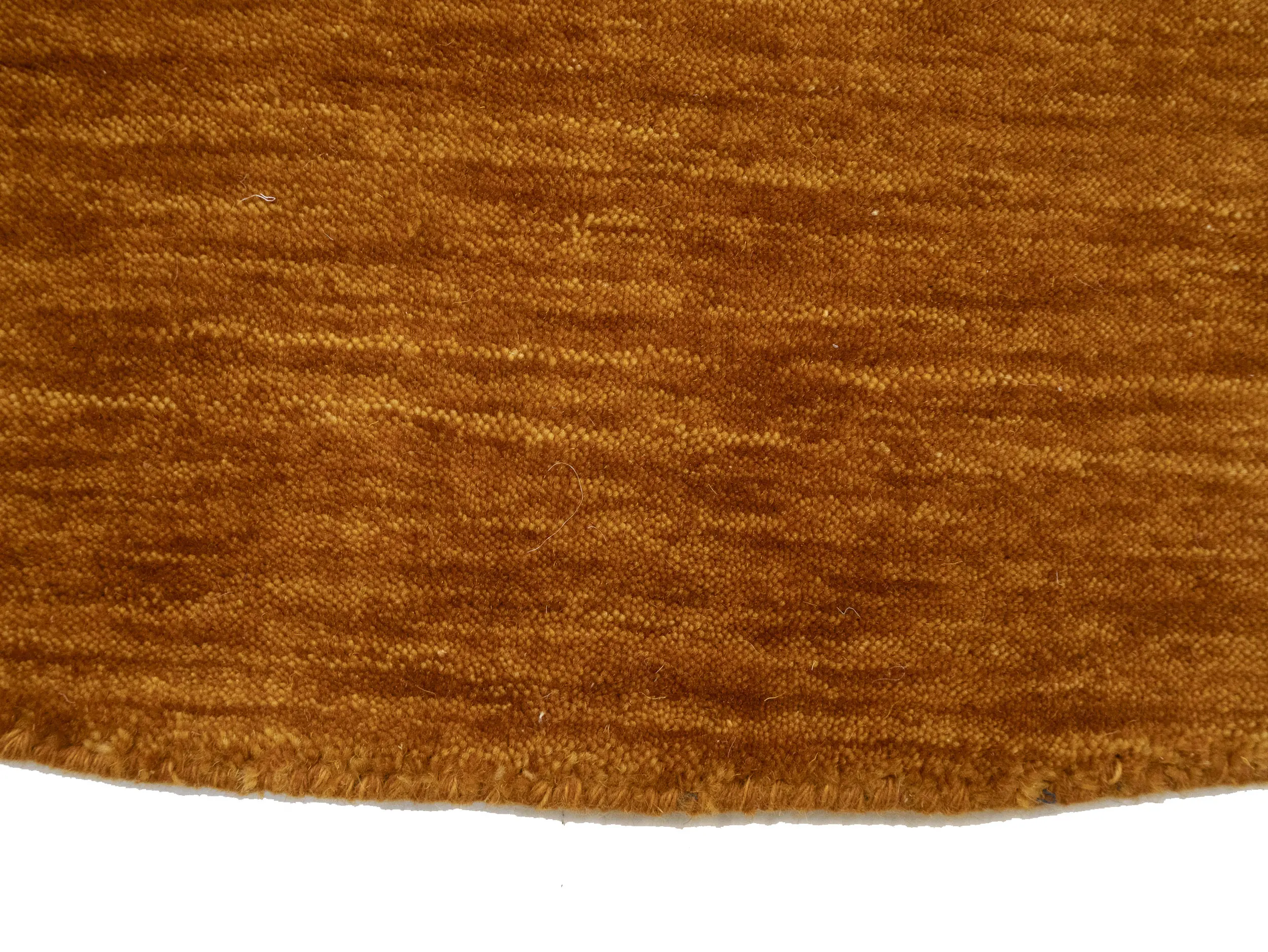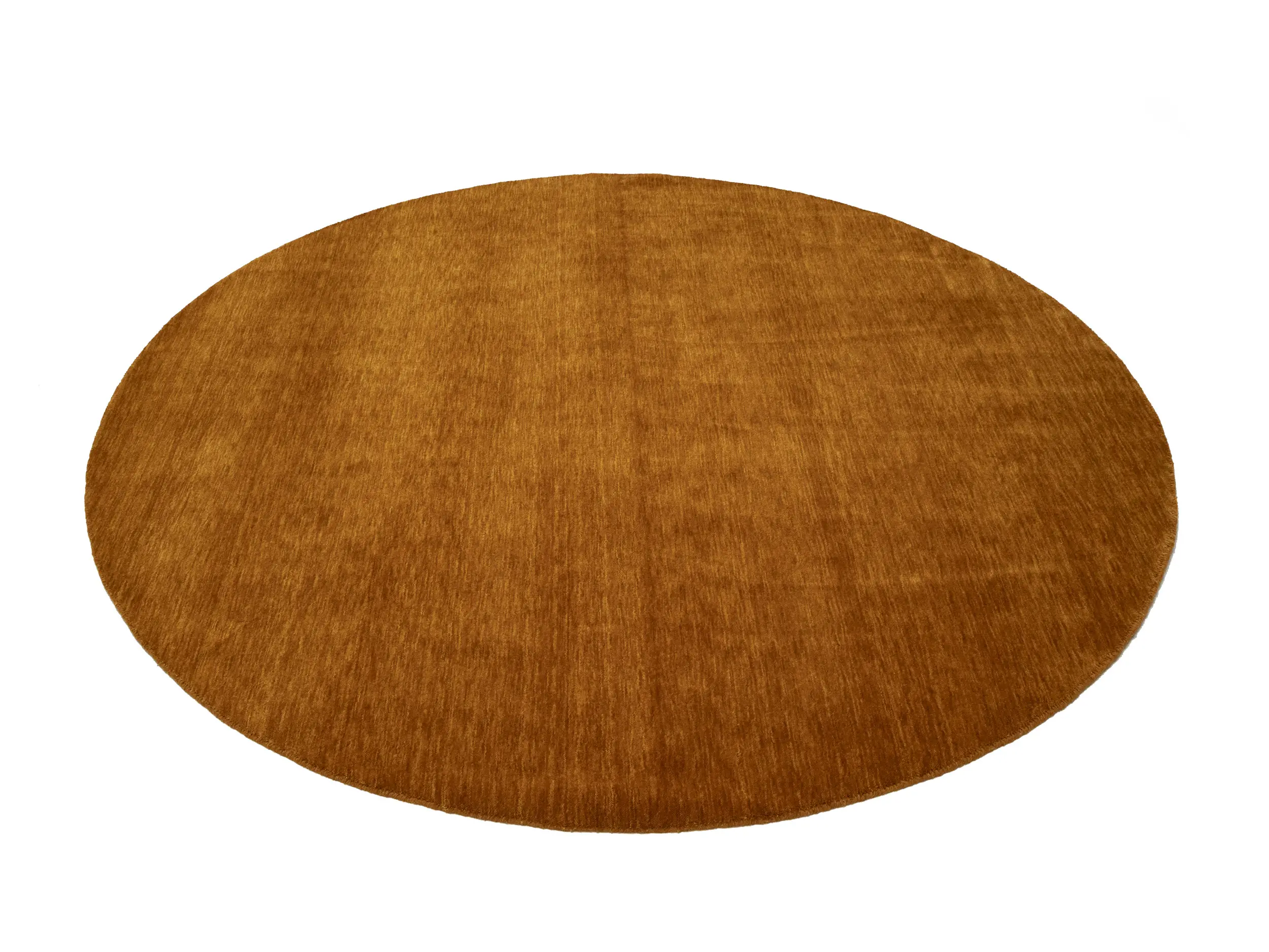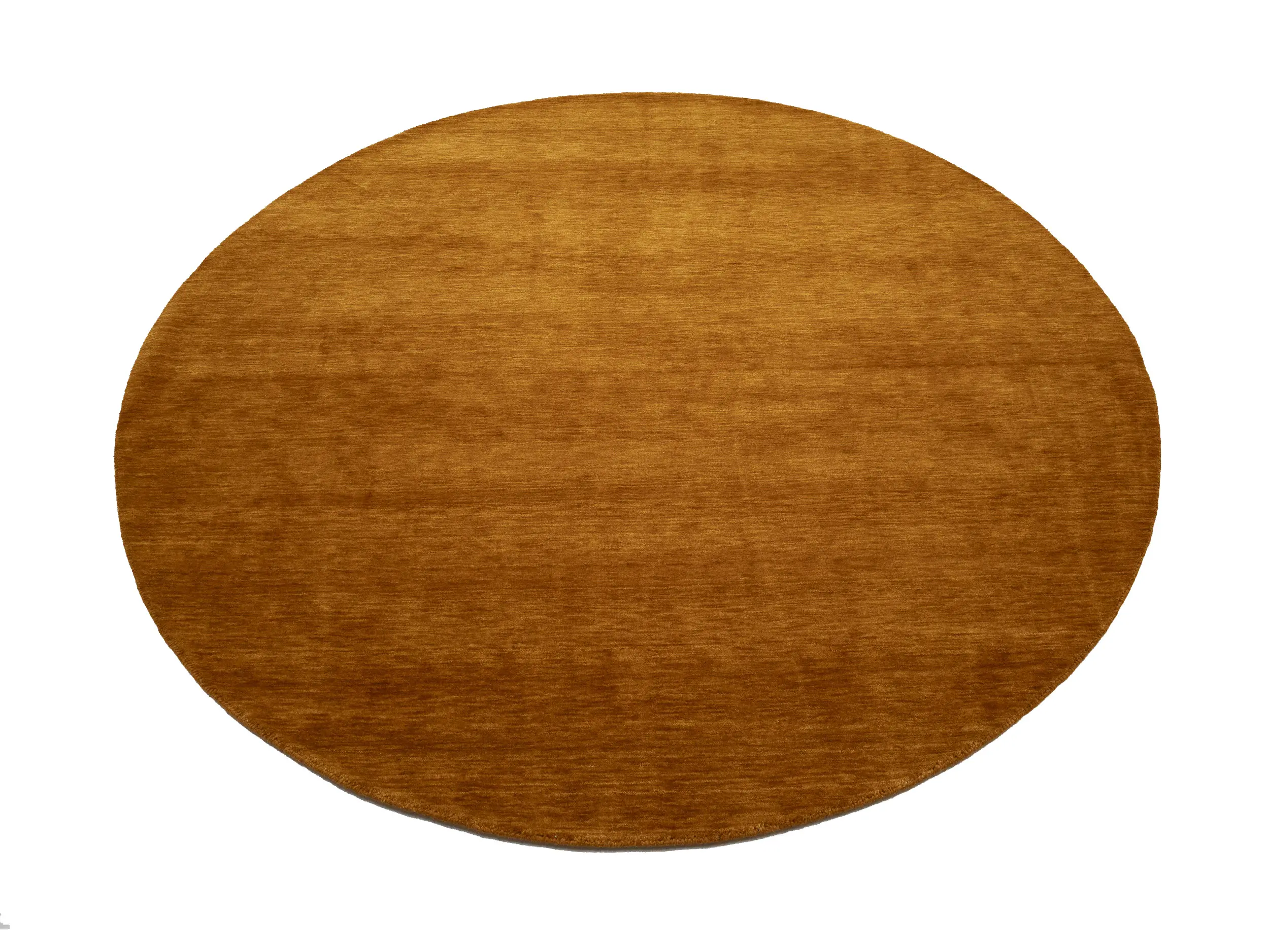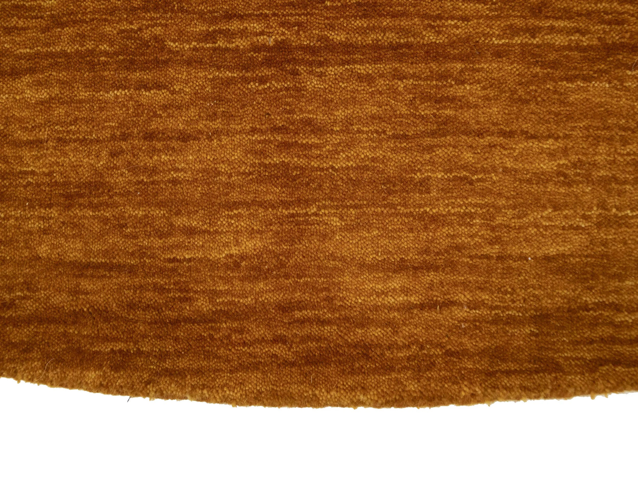 This hand-loomed 8X8 Orange Oriental Round rug from India features a modern, Solid design that seamlessly integrates traditional craftsmanship with contemporary style, showcasing a striking Orange primary color. It provides a luxuriant softness and durability underfoot, as it is constructed from premium wool with a cotton foundation. The rug is optimized for high-traffic areas due to its medium pile height and knot density of 100 knots per square inch, which ensures durability and comfort. This rug, which is in exceptional condition and was recently manufactured, is an ideal complement to any contemporary setting, providing both versatility and timeless elegance.