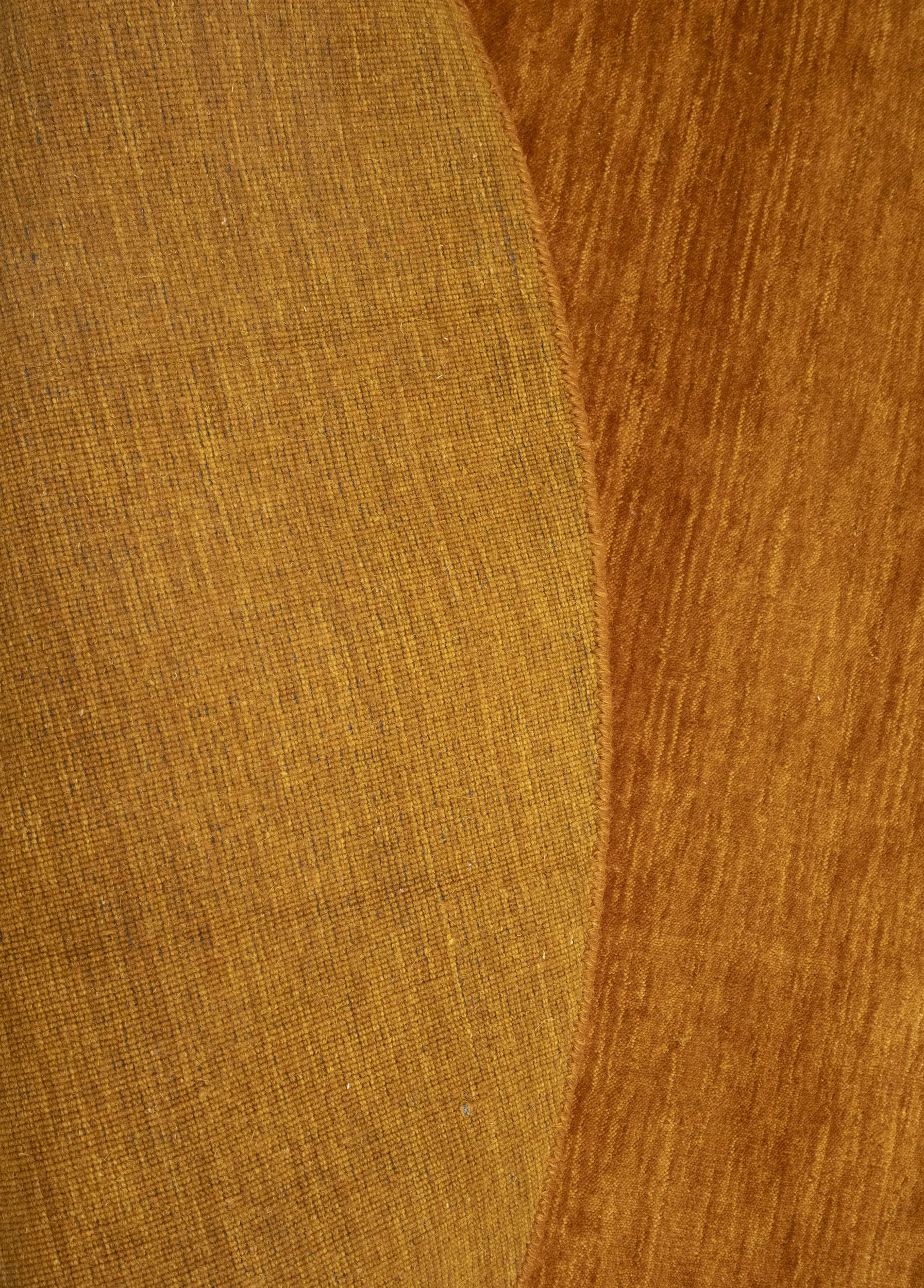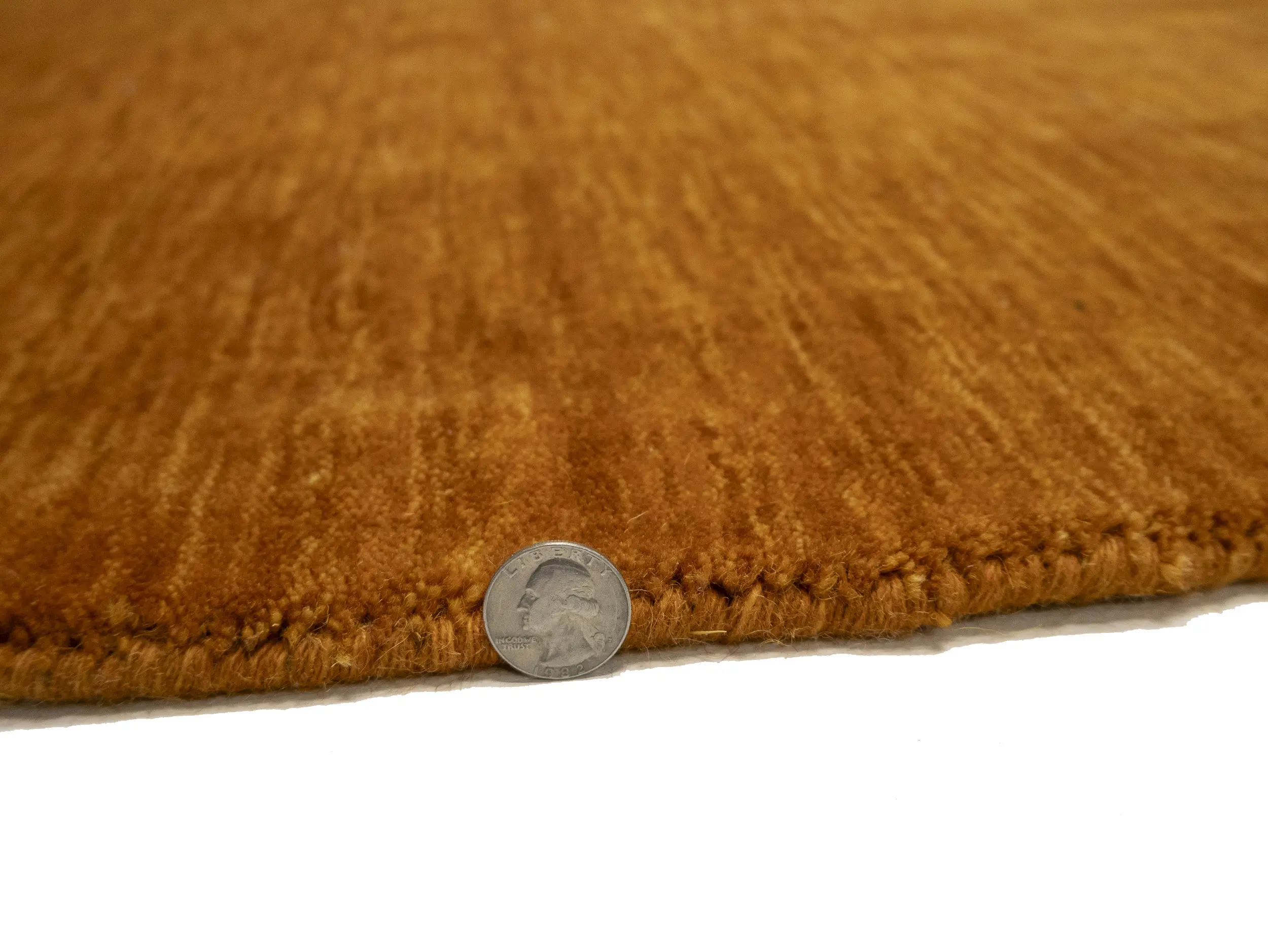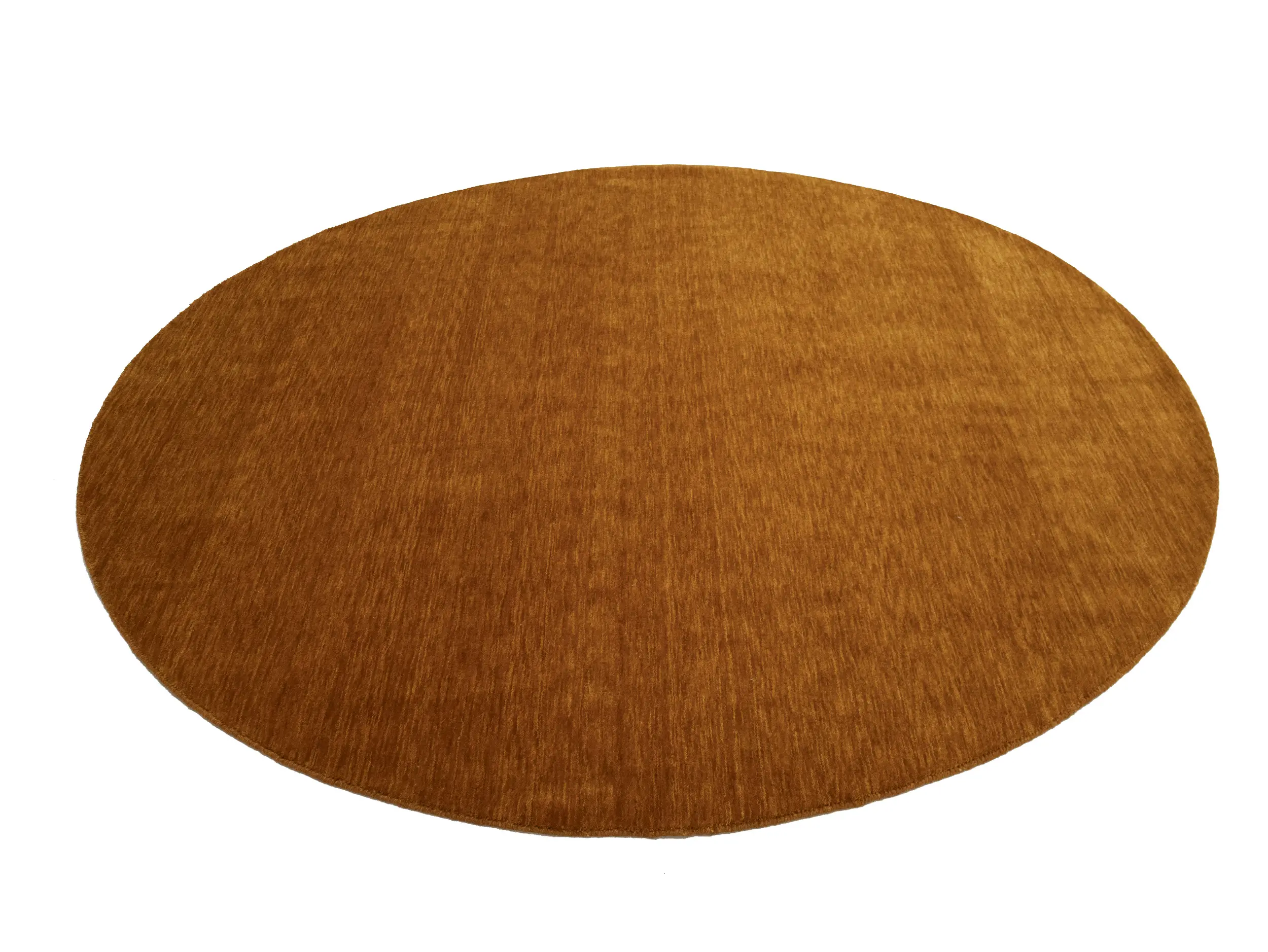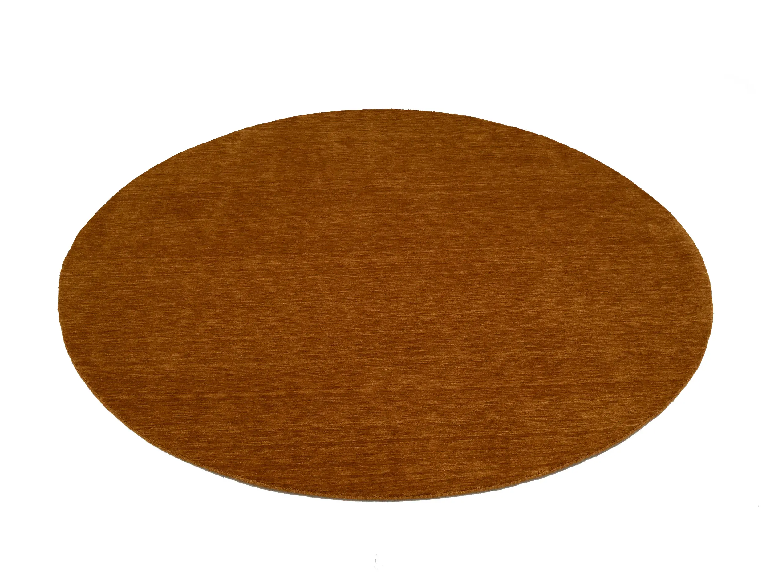 This hand-loomed 8X8 Orange Oriental Round rug from India features a modern, Solid design that seamlessly integrates traditional craftsmanship with contemporary style, showcasing a striking Orange primary color. It provides a luxuriant softness and durability underfoot, as it is constructed from premium wool with a cotton foundation. The rug is optimized for high-traffic areas due to its medium pile height and knot density of 100 knots per square inch, which ensures durability and comfort. This rug, which is in exceptional condition and was recently manufactured, is an ideal complement to any contemporary setting, providing both versatility and timeless elegance.